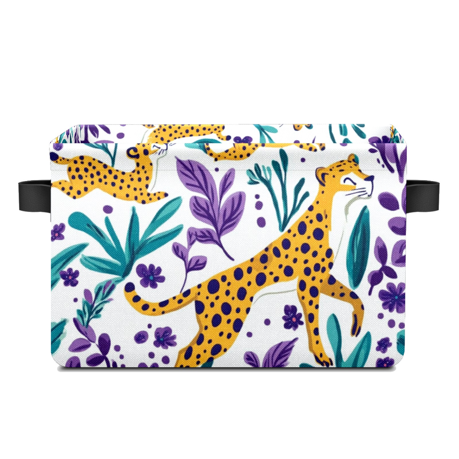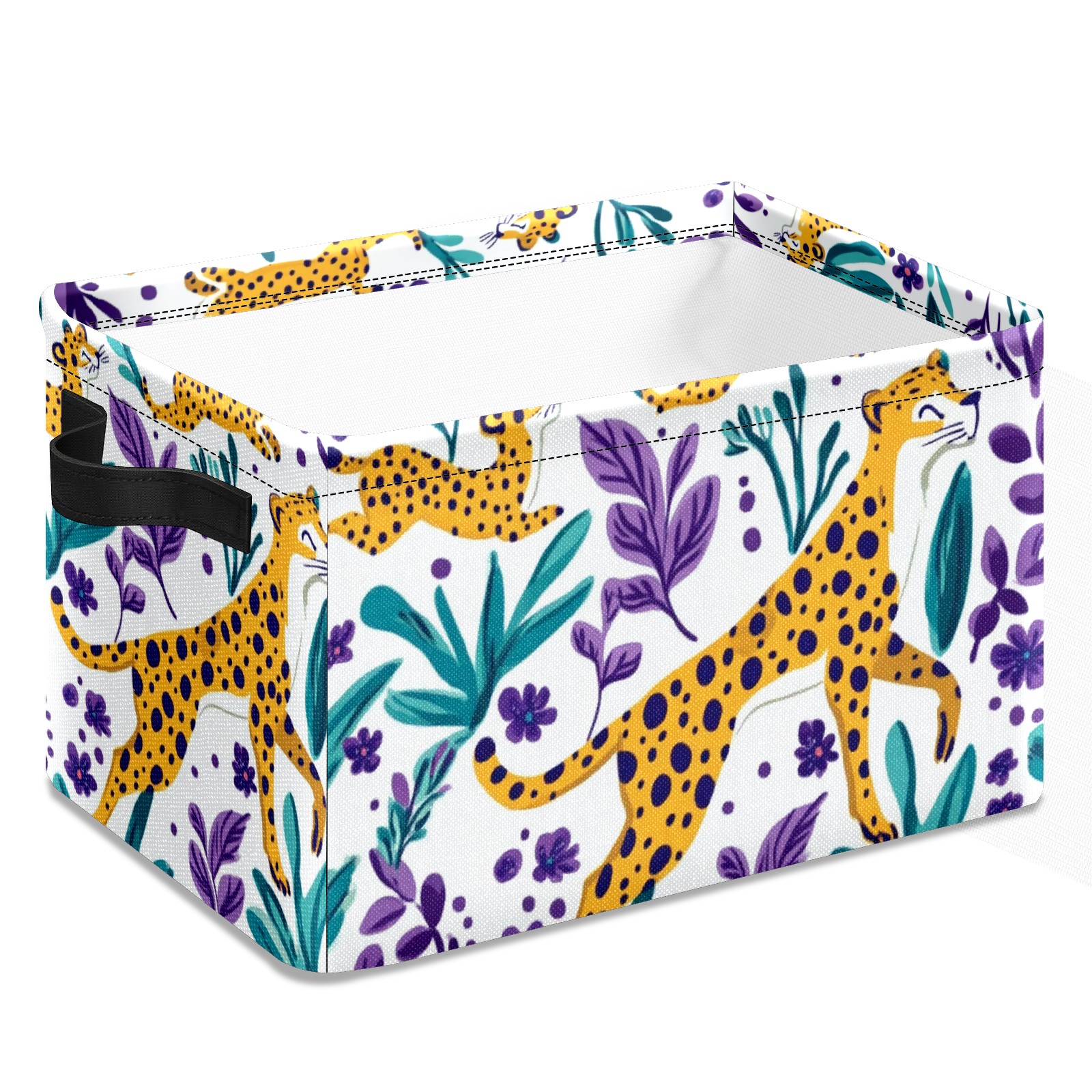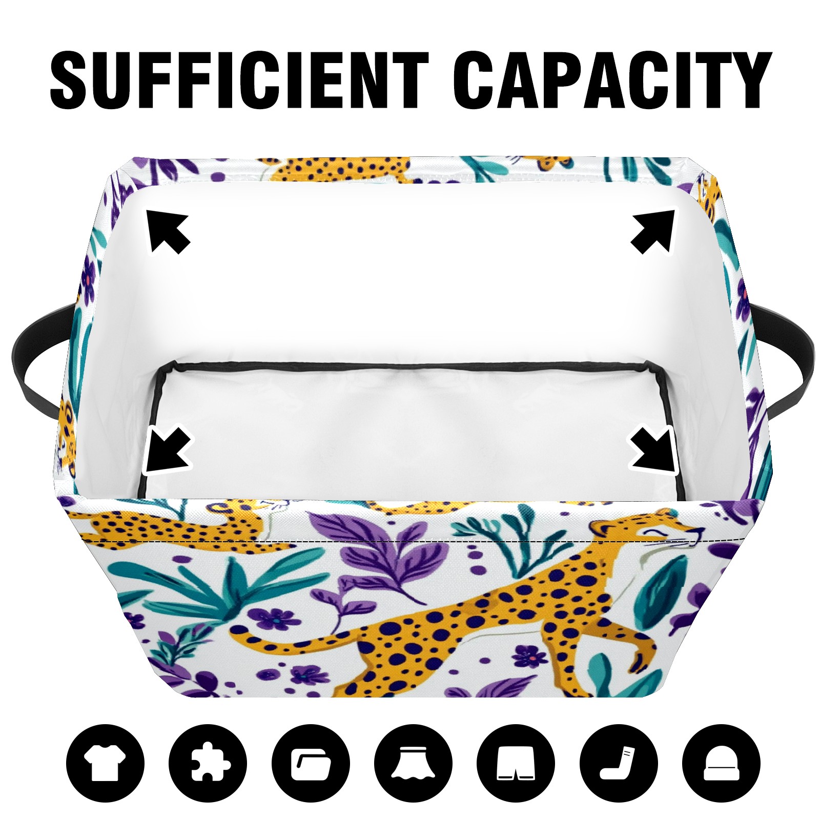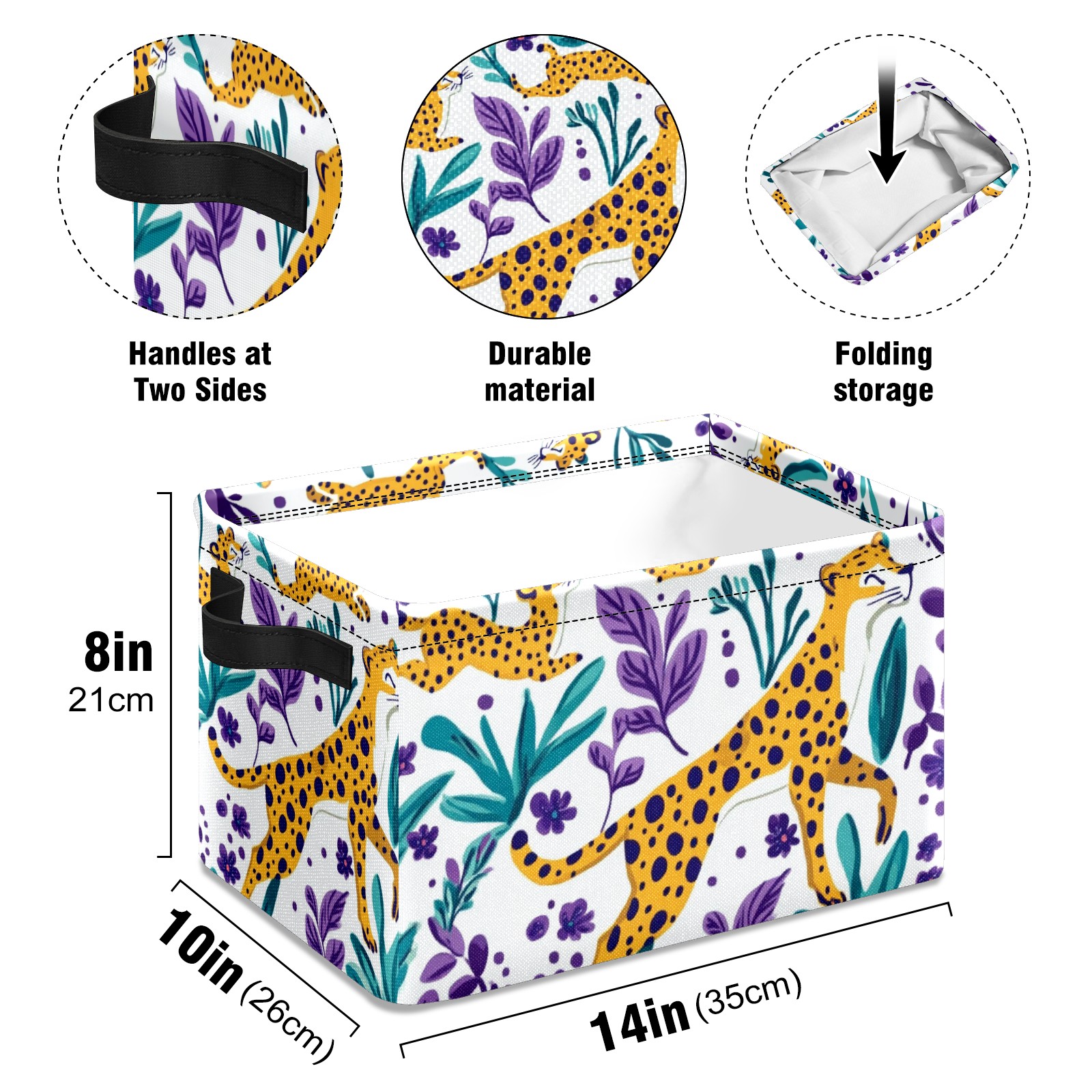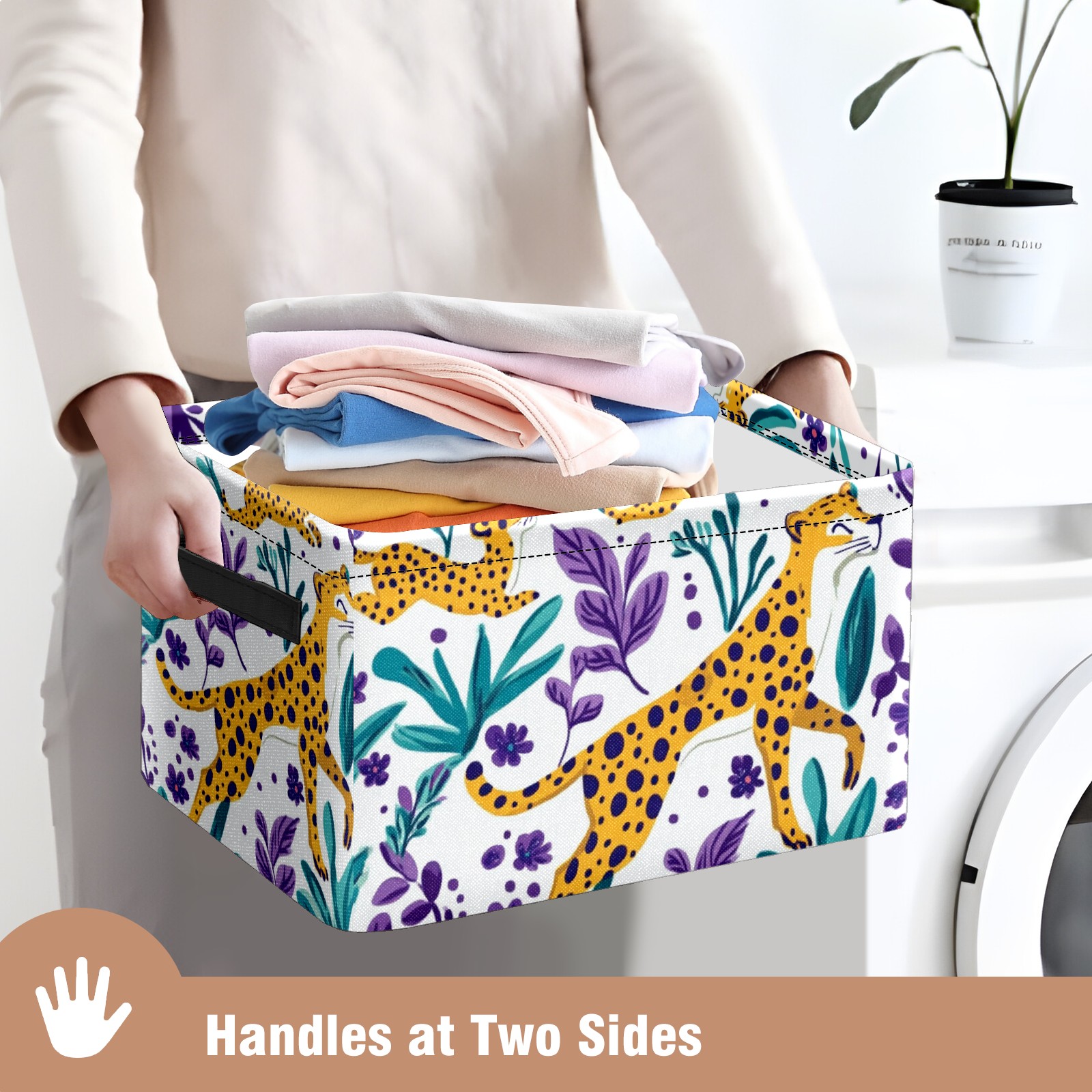 Foldable and Stackable Fabric Storage Basket for Home Organization with Handles, Decorative Closet Bins for Shelves and Laundry Storage( Leopard And Gazelle)