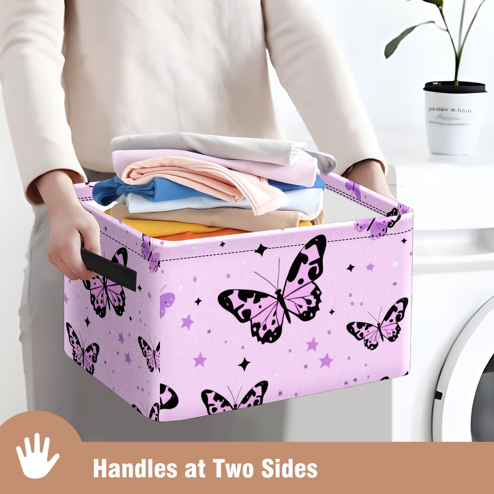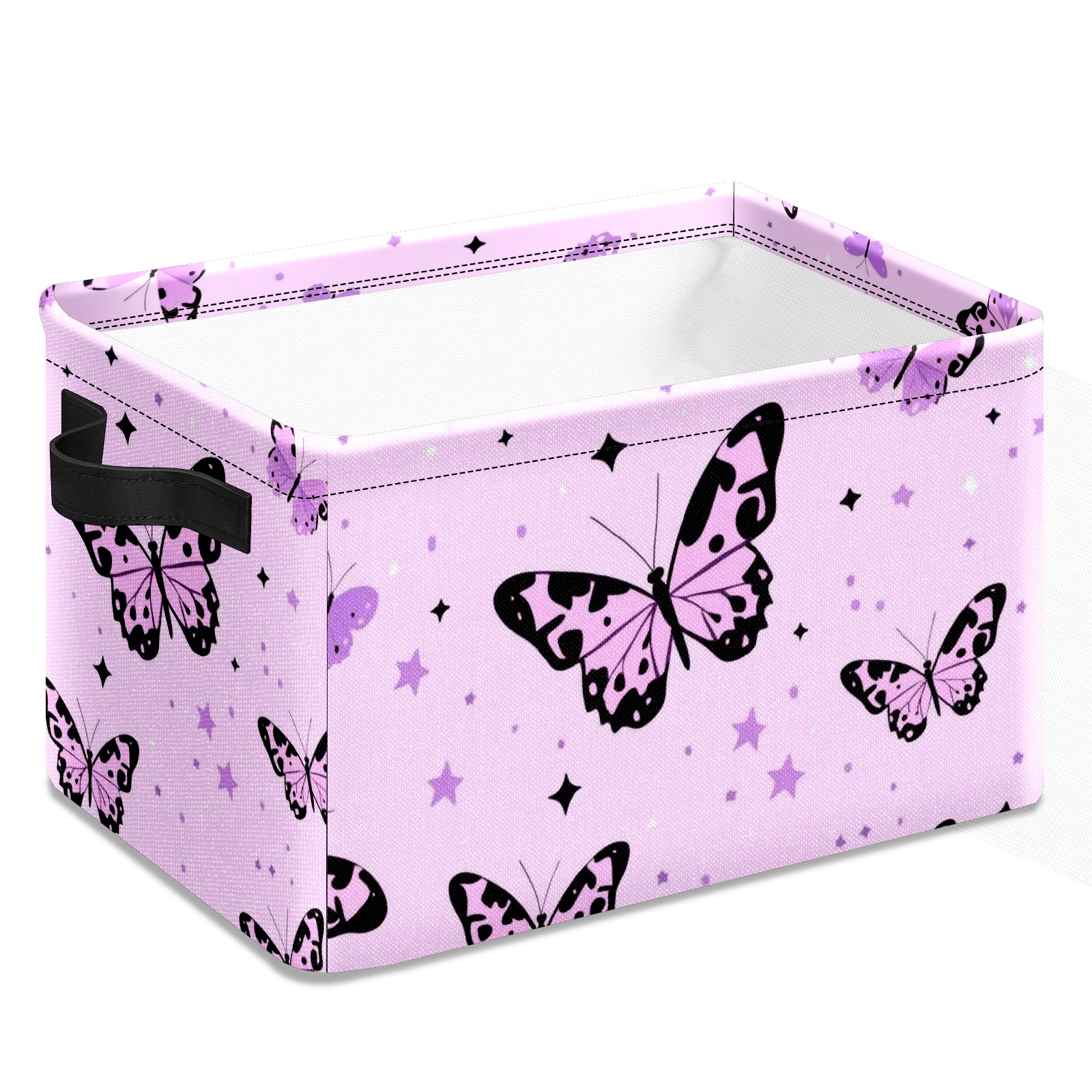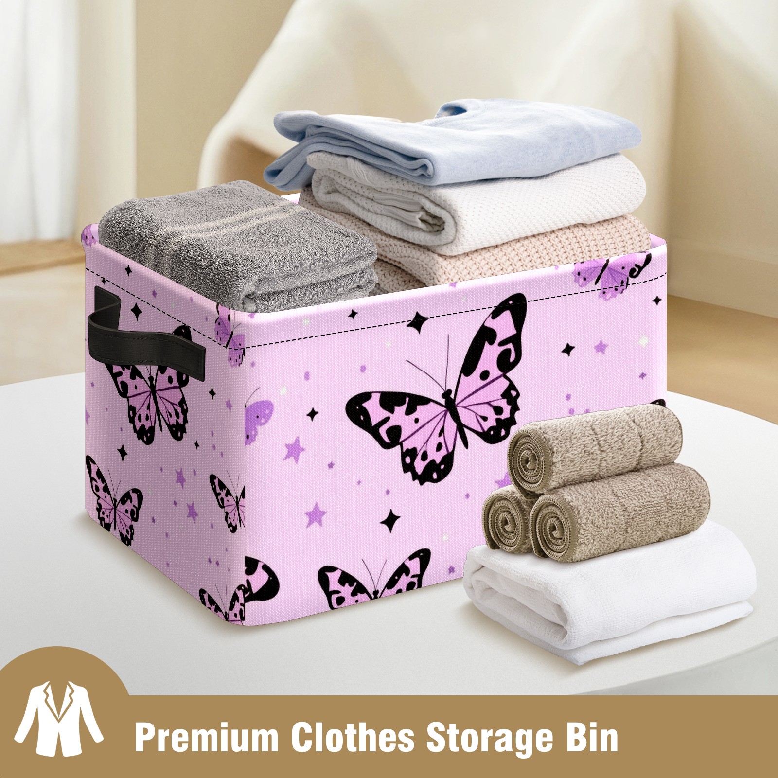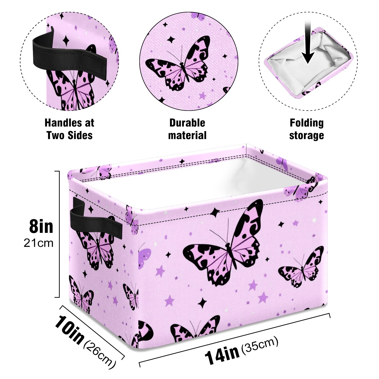 Foldable and Stackable Fabric Storage Basket for Home Organization with Handles, Decorative Closet Bins for Shelves and Laundry Storage( Pink Leopard-print Butterflies)