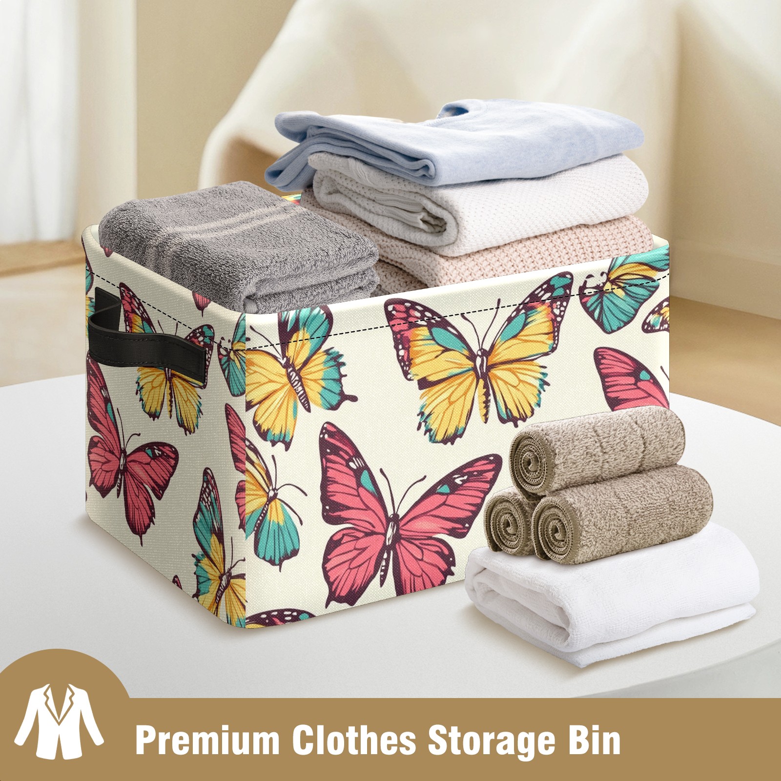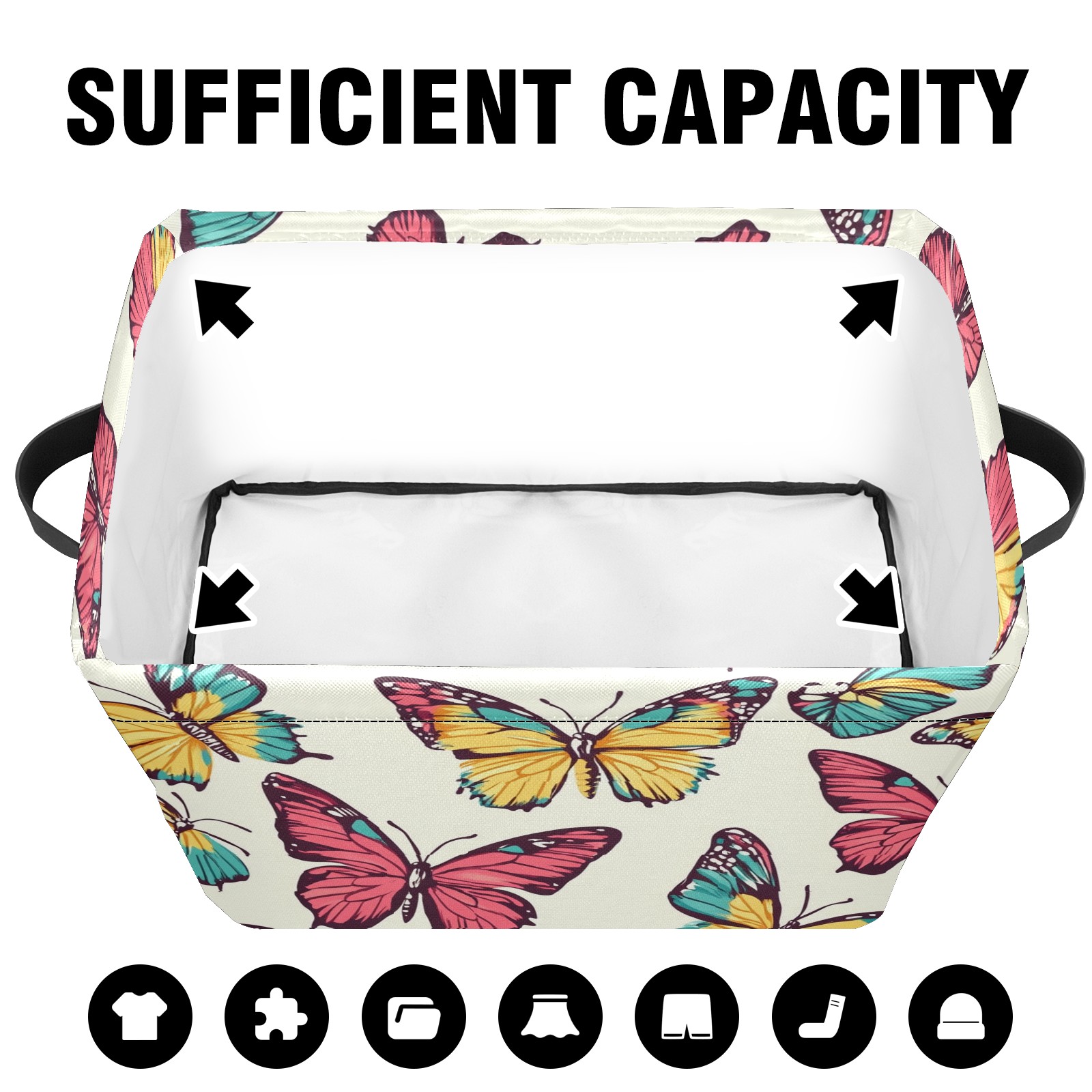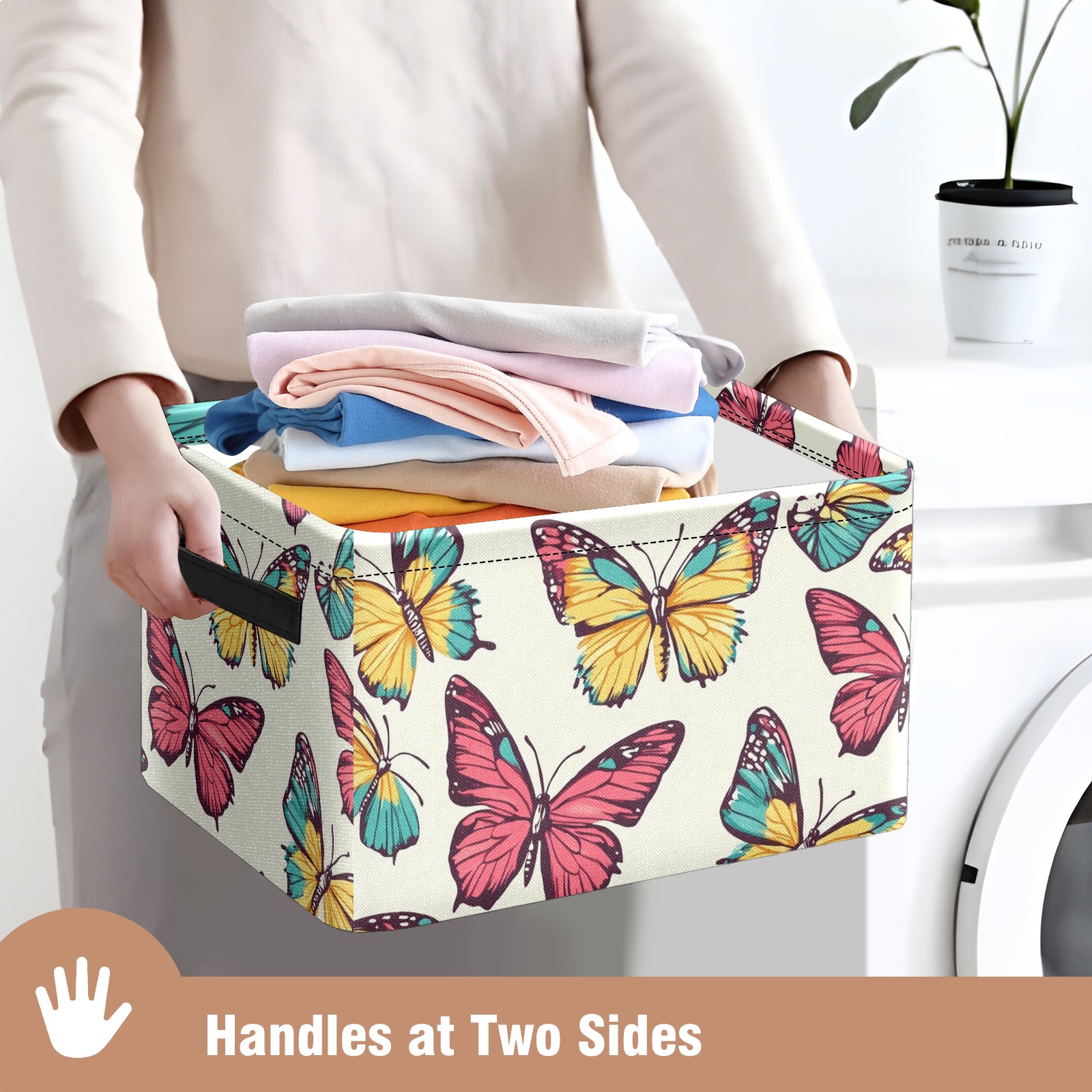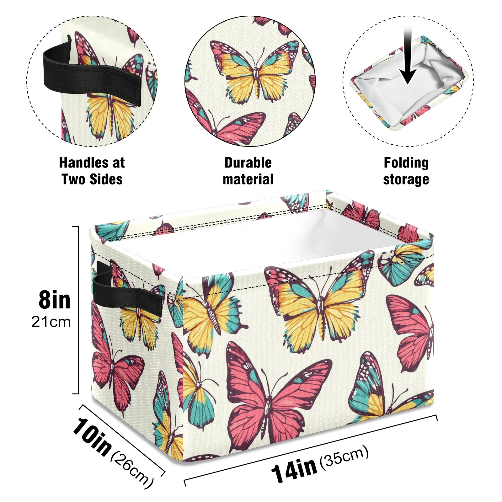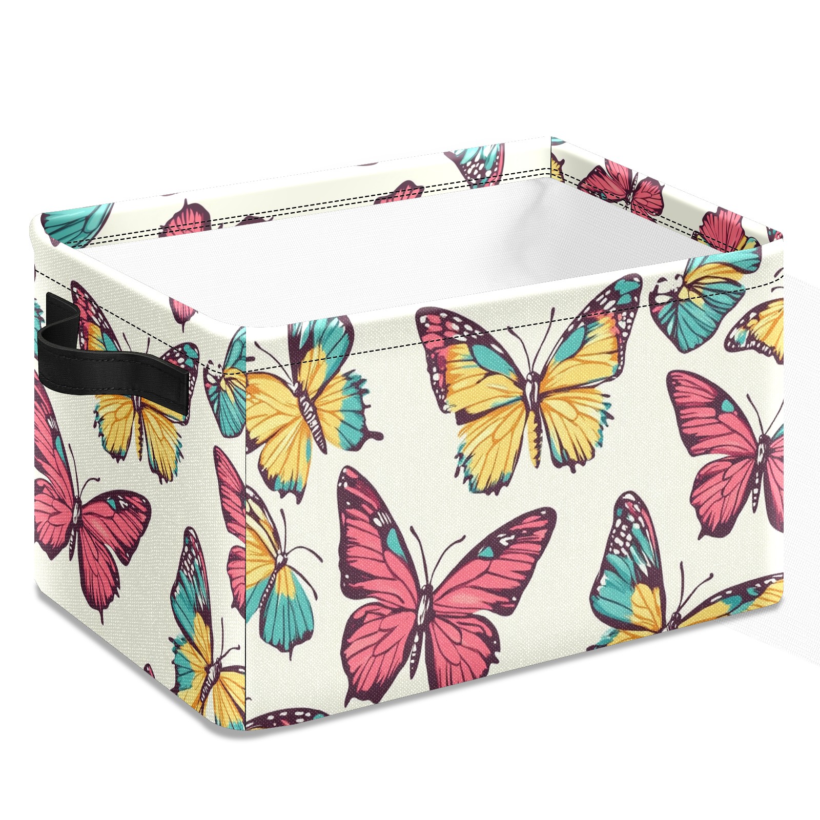 Foldable and Stackable Fabric Storage Basket for Home Organization with Handles, Decorative Closet Bins for Shelves and Laundry Storage( Colorful Butterflies)