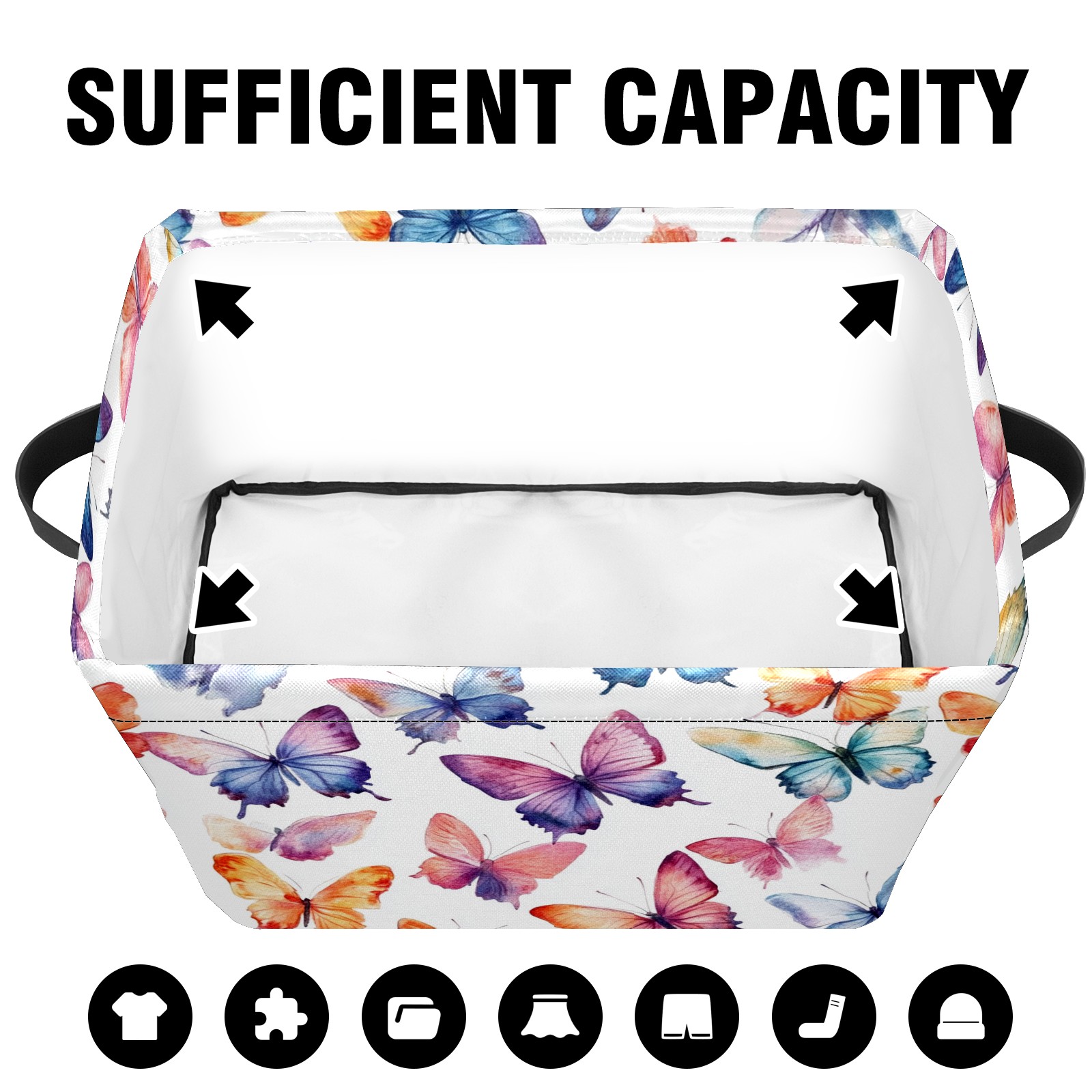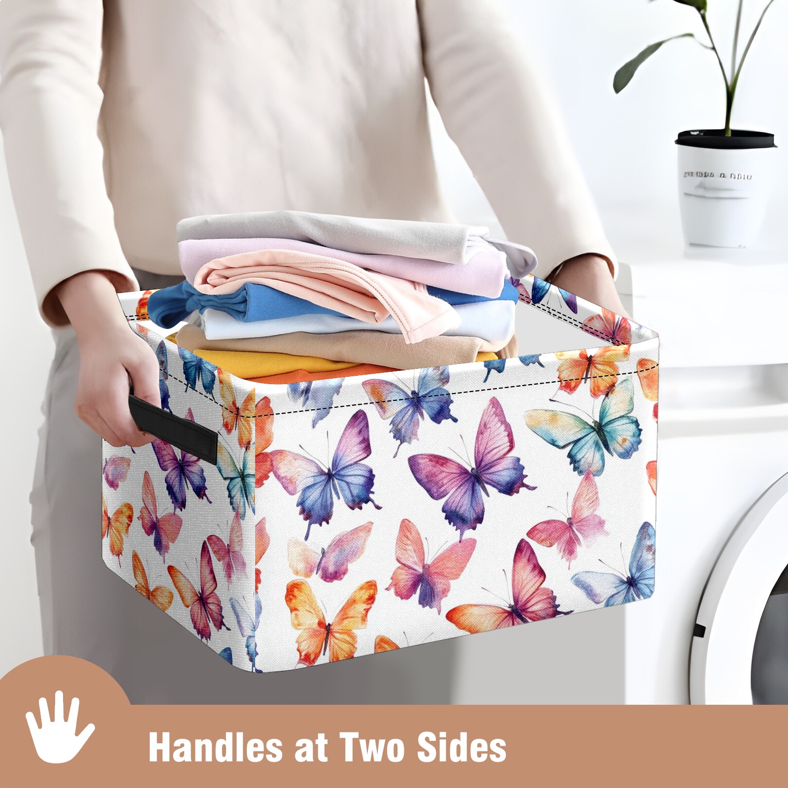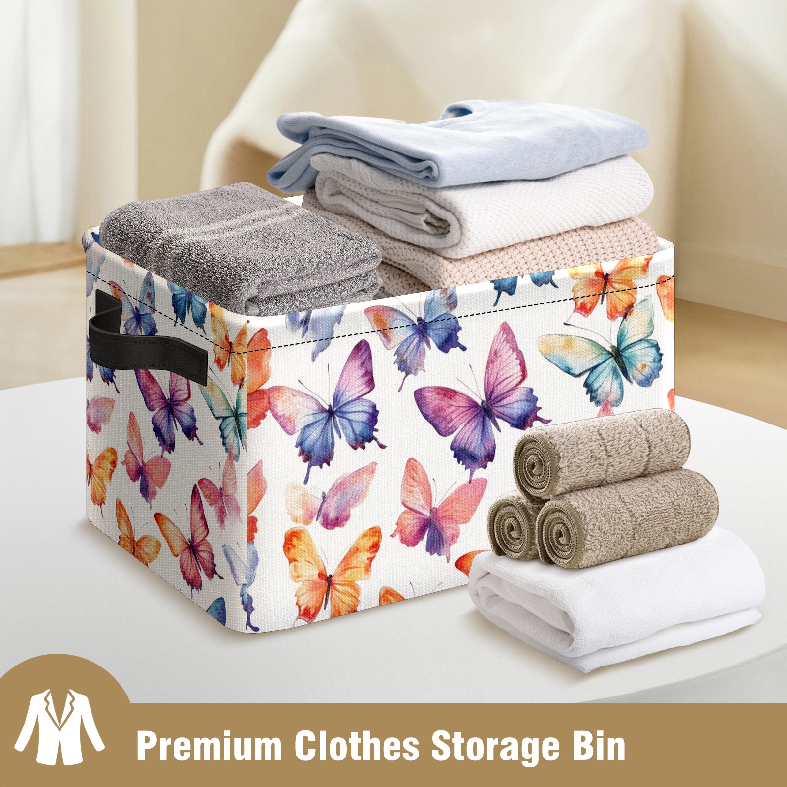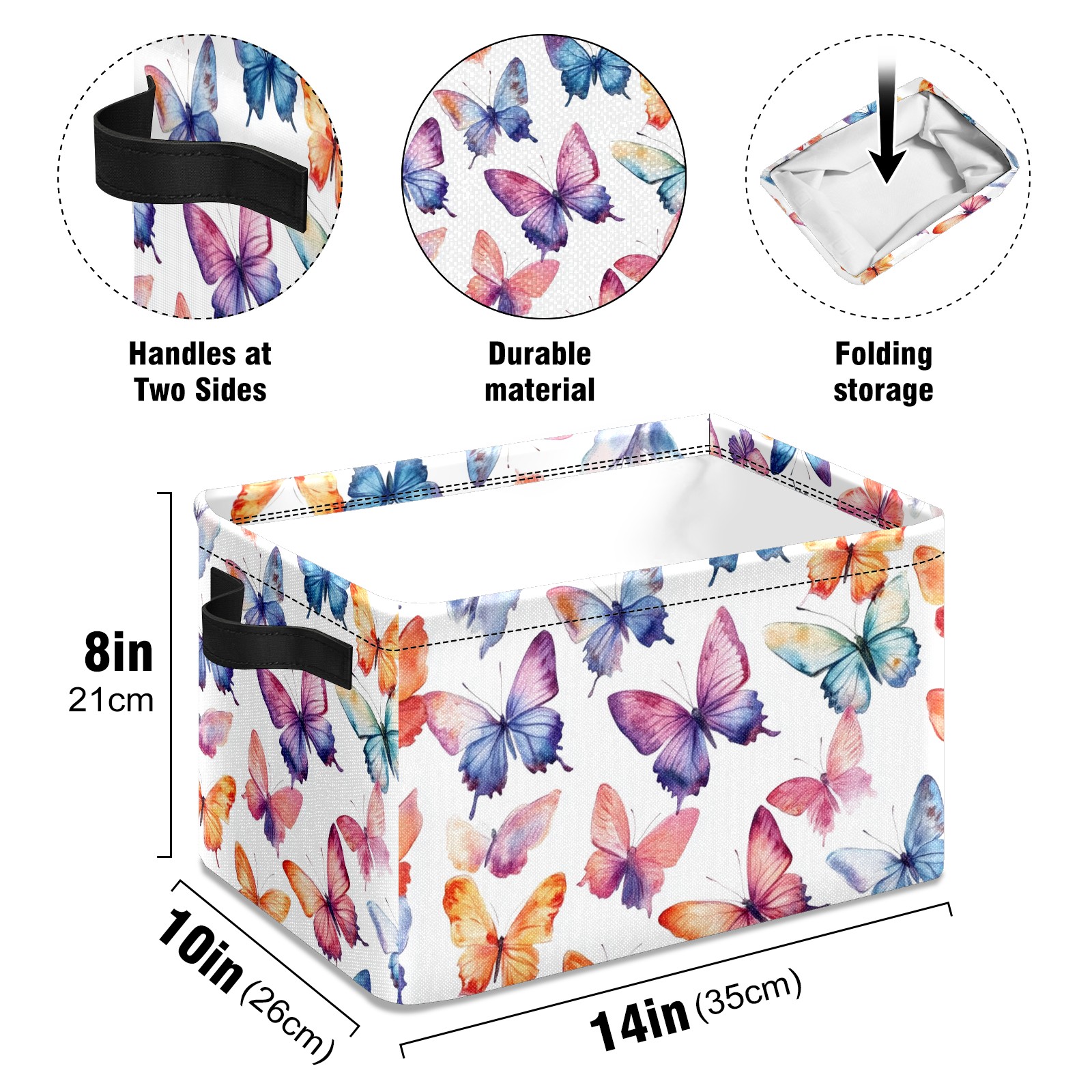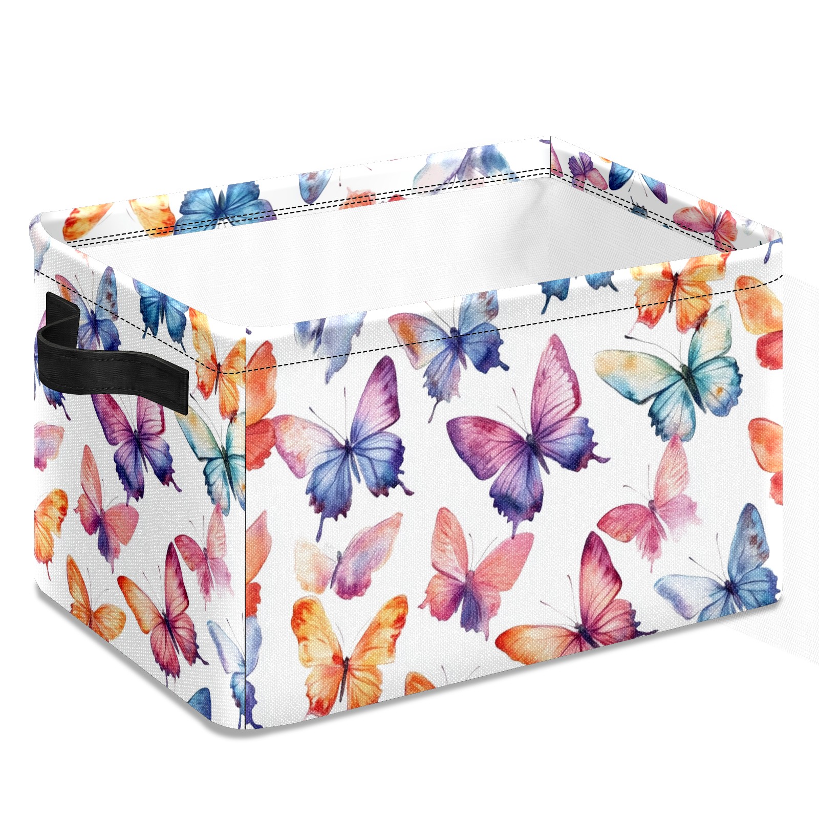 Foldable and Stackable Fabric Storage Basket for Home Organization with Handles, Decorative Closet Bins for Shelves and Laundry Storage( Colorful Watercolor Butterflies)