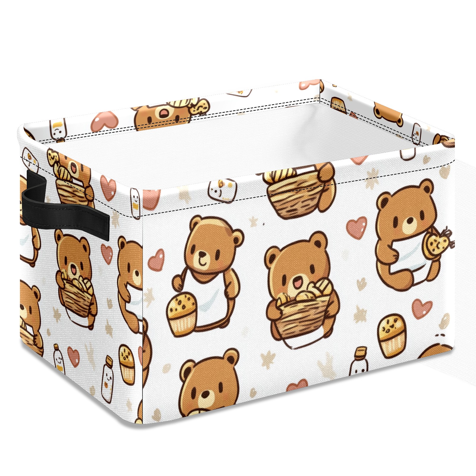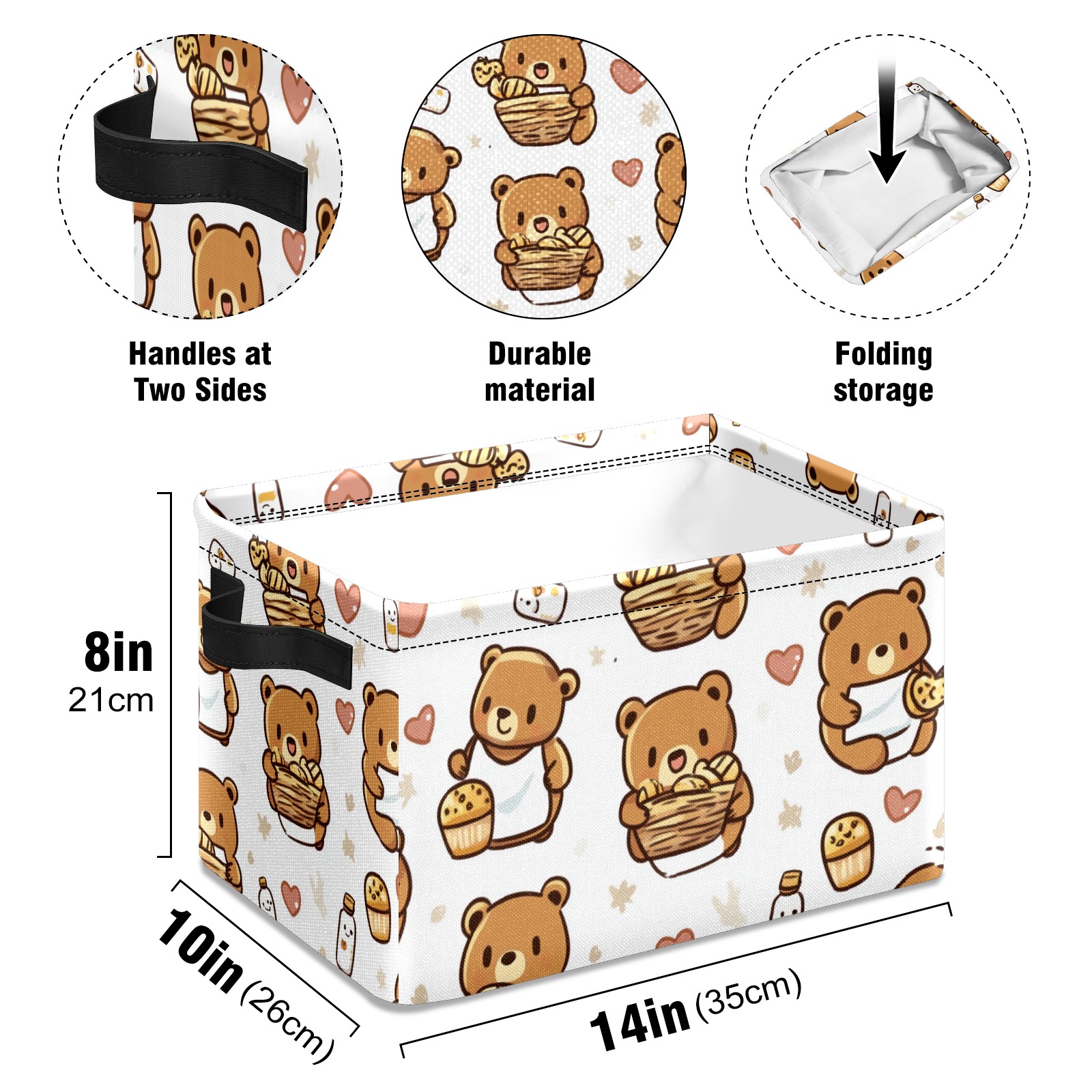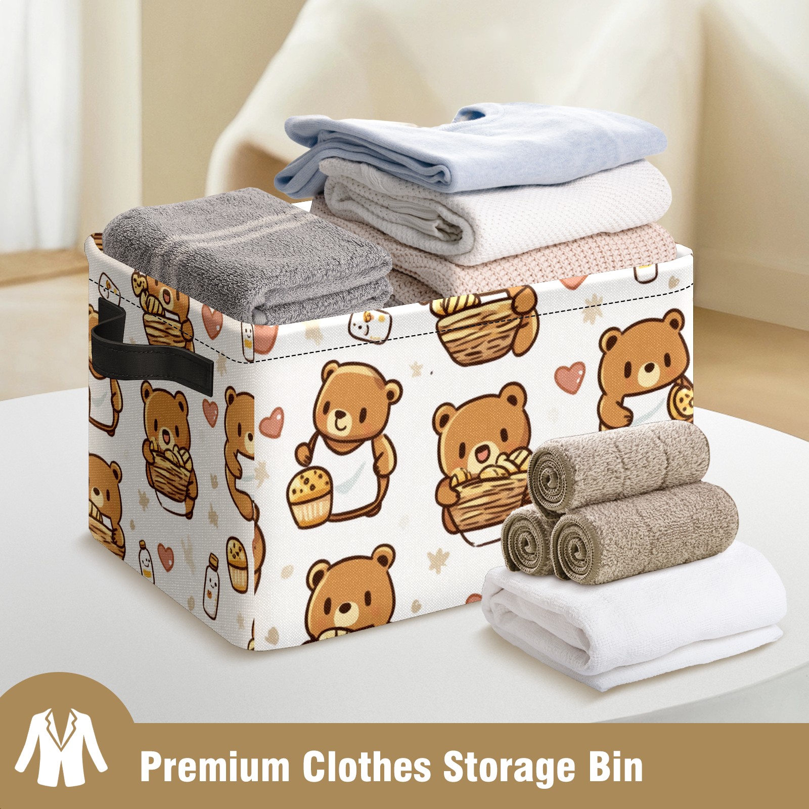 Foldable and Stackable Fabric Storage Basket for Home Organization with Handles, Decorative Closet Bins for Shelves and Laundry Storage( Bear And Honey Pot)