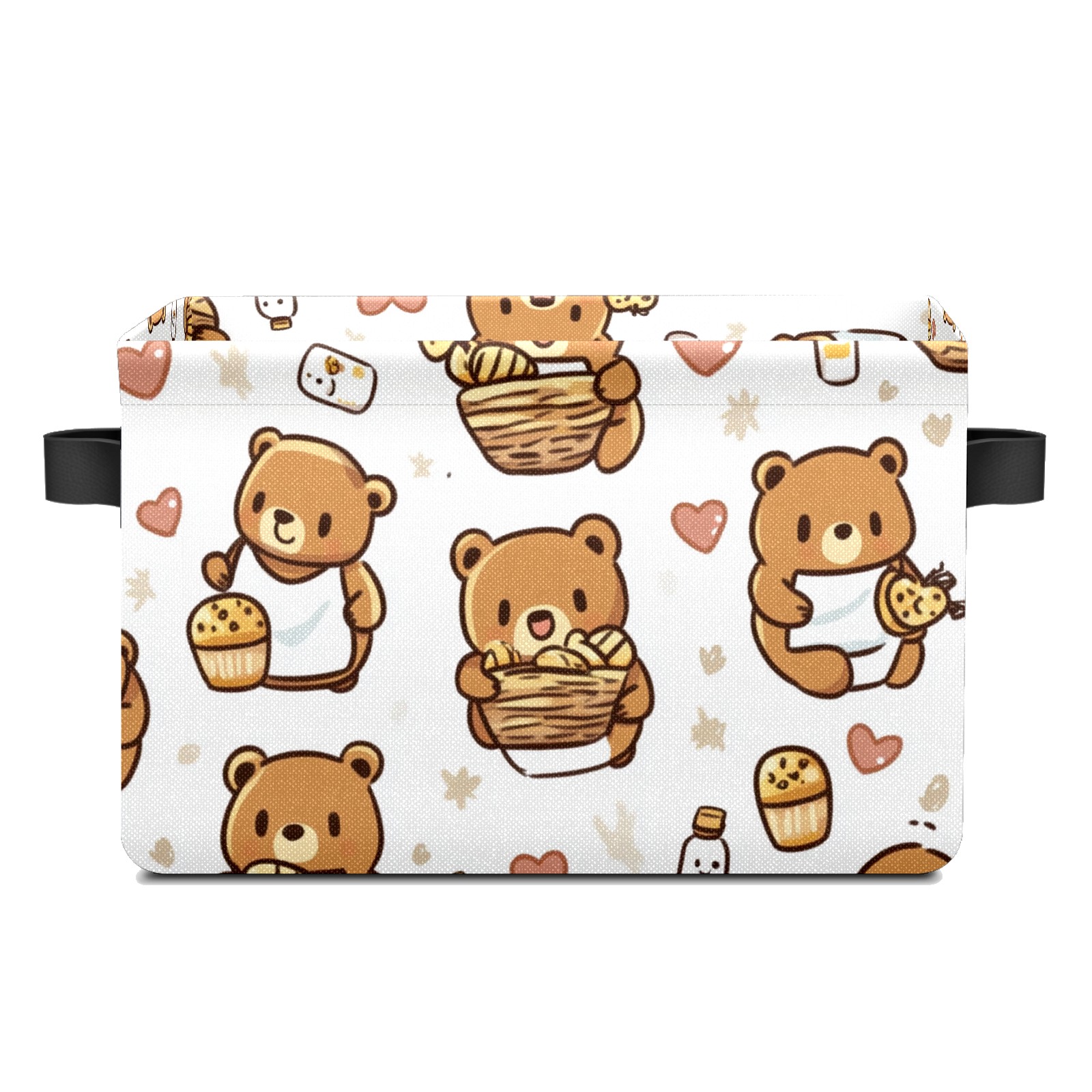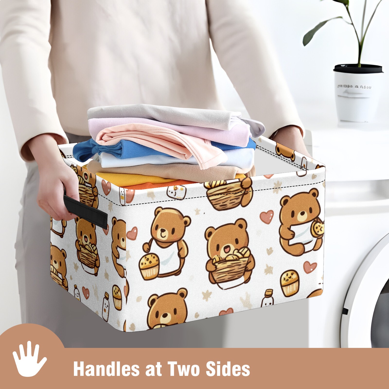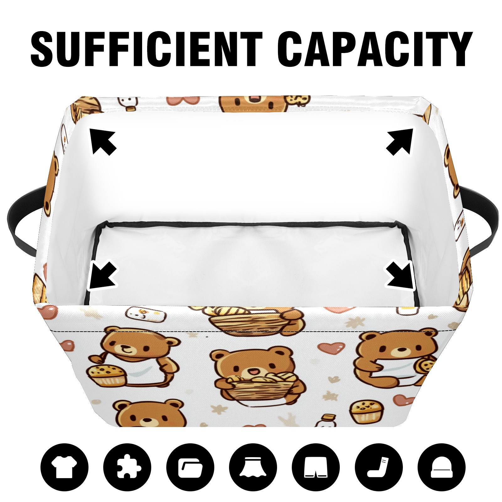Foldable and Stackable Fabric Storage Basket for Home Organization with Handles, Decorative Closet Bins for Shelves and Laundry Storage( Bear And Honey Pot)