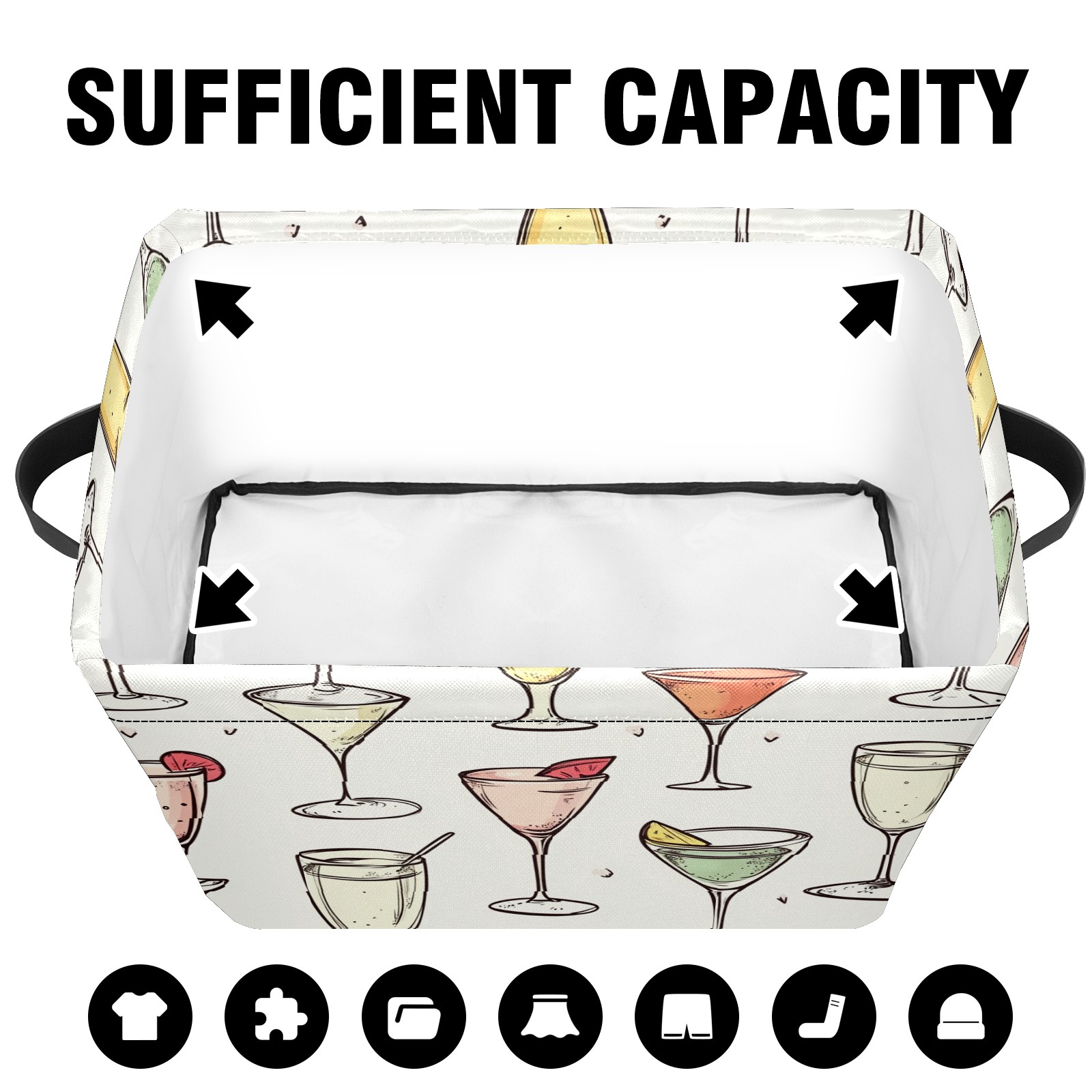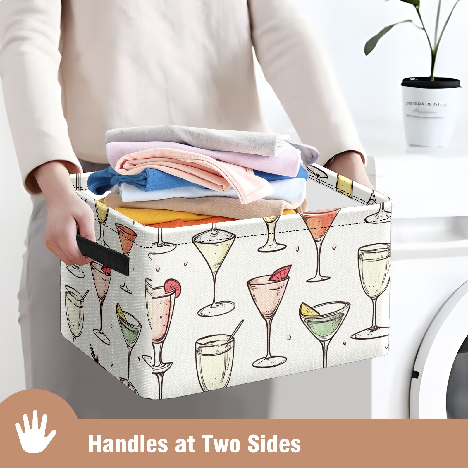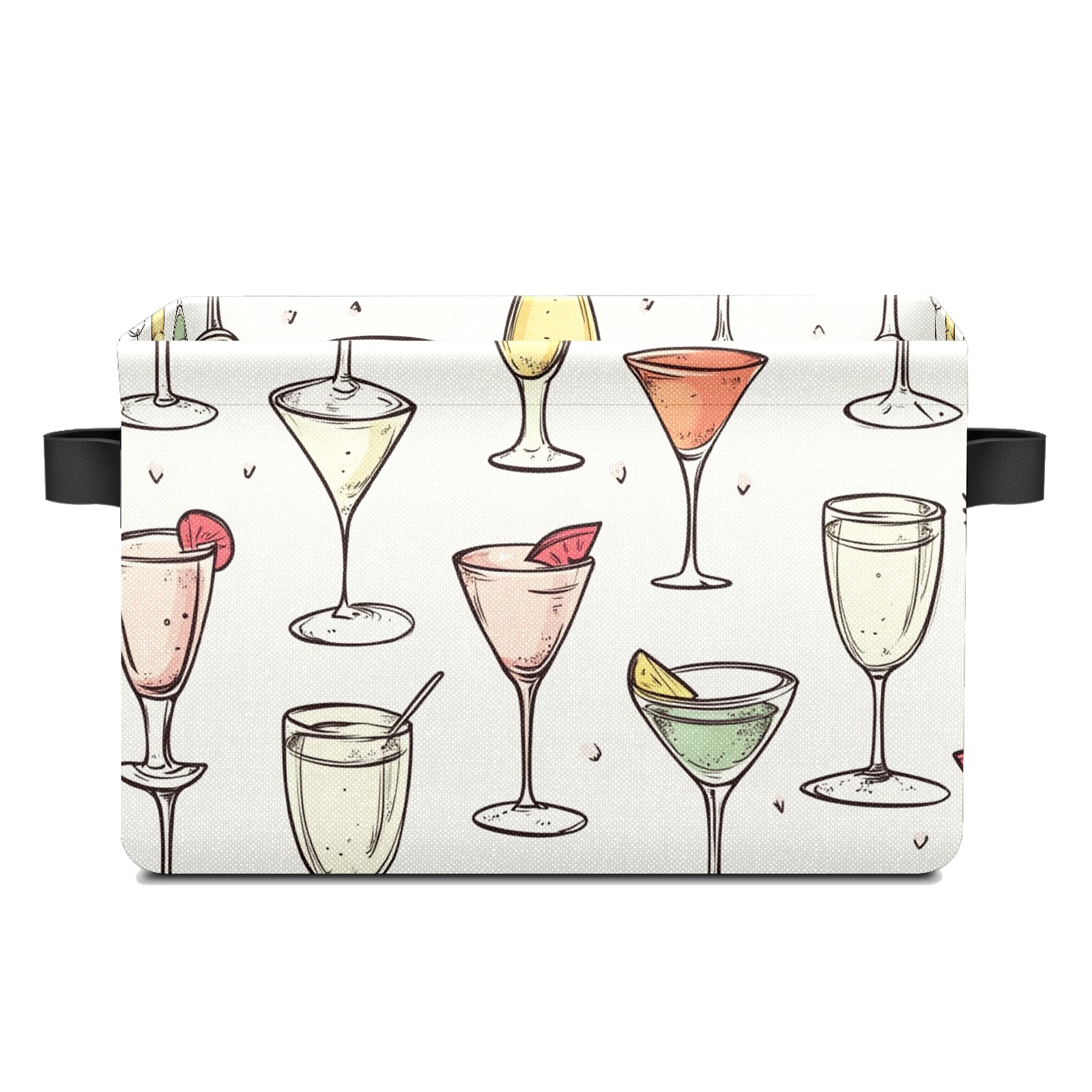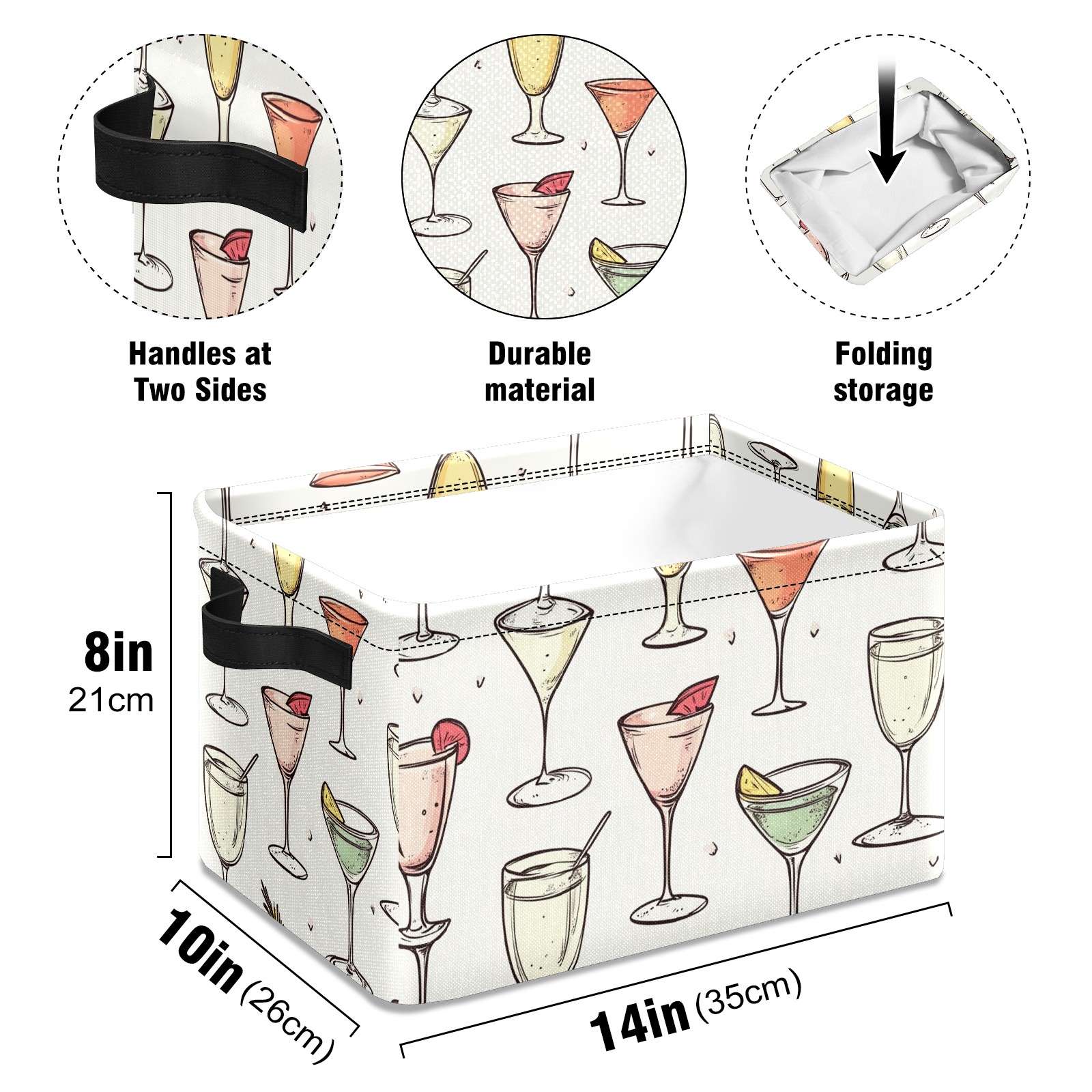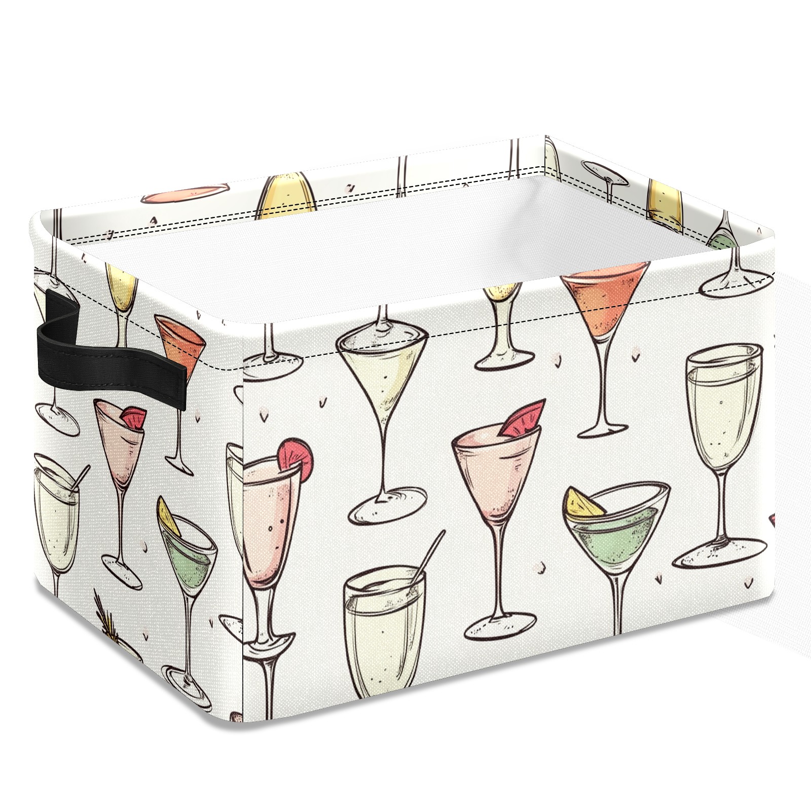 Foldable and Stackable Fabric Storage Basket for Home Organization with Handles, Decorative Closet Bins for Shelves and Laundry Storage( Champagne Glasses)