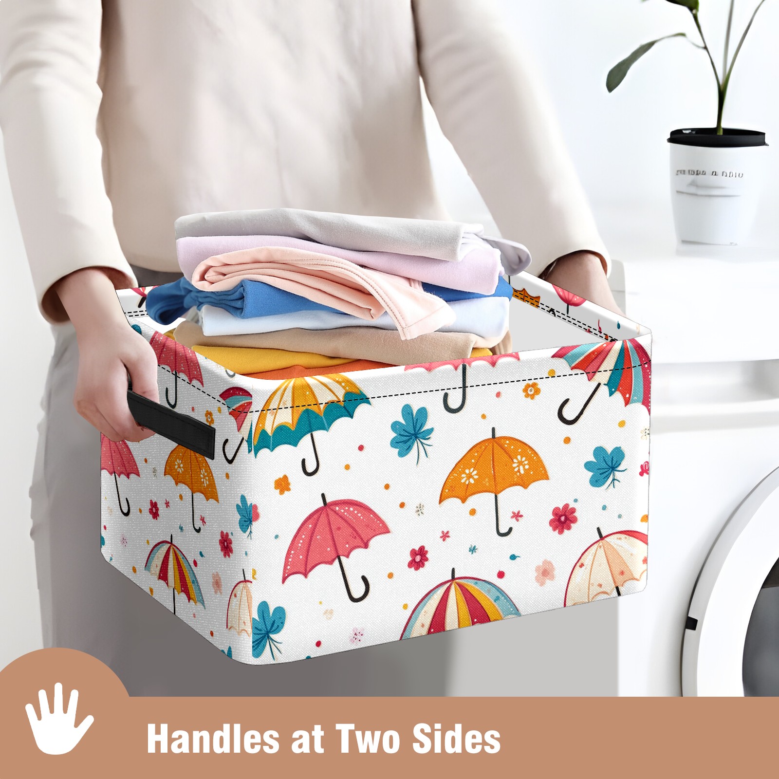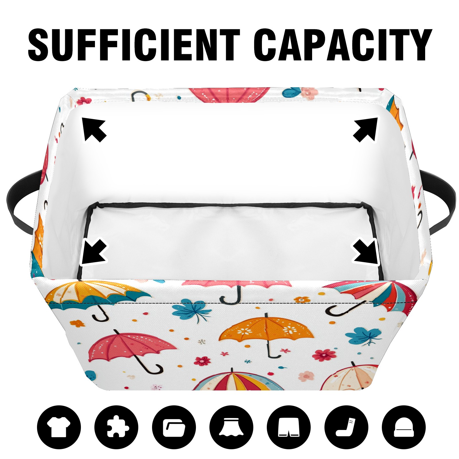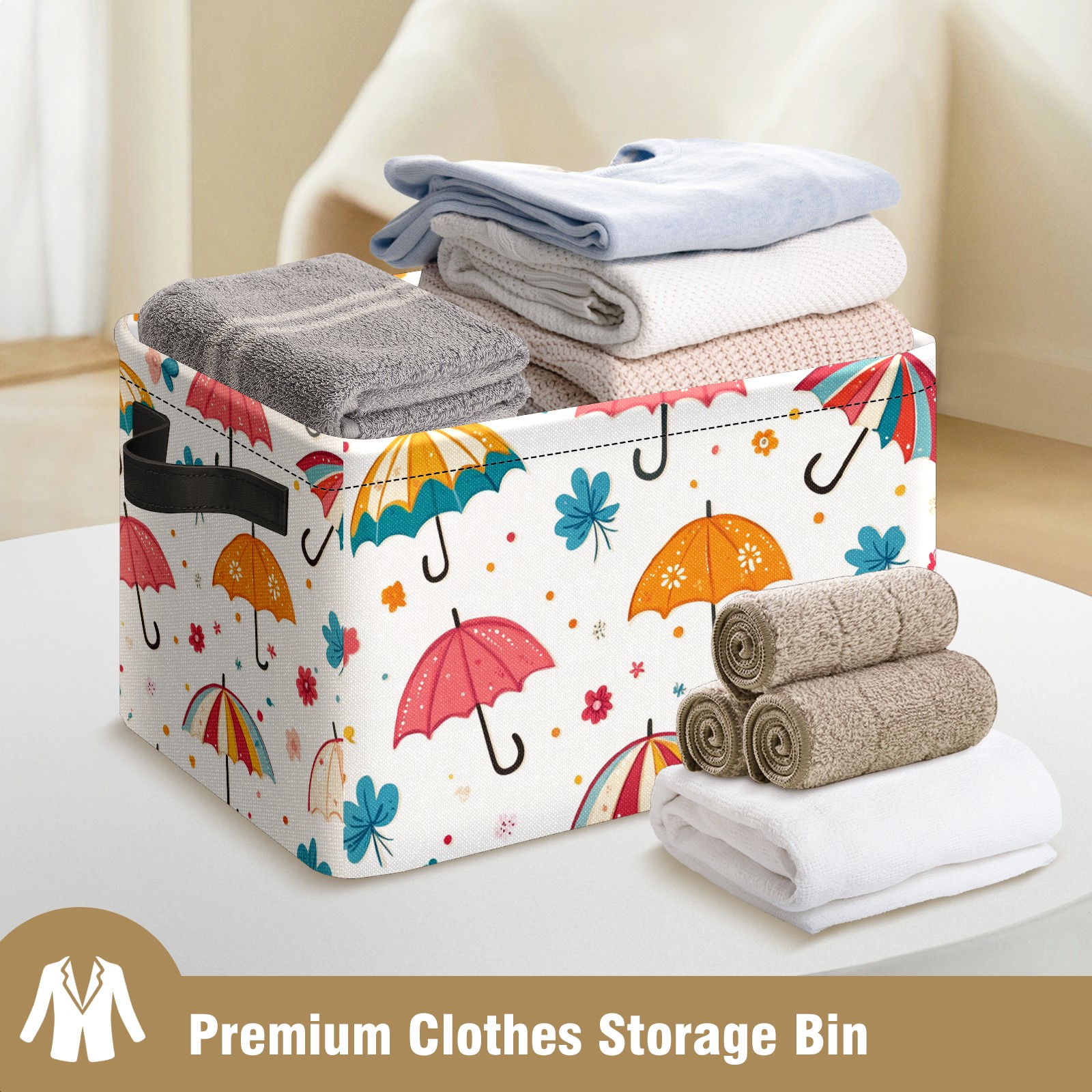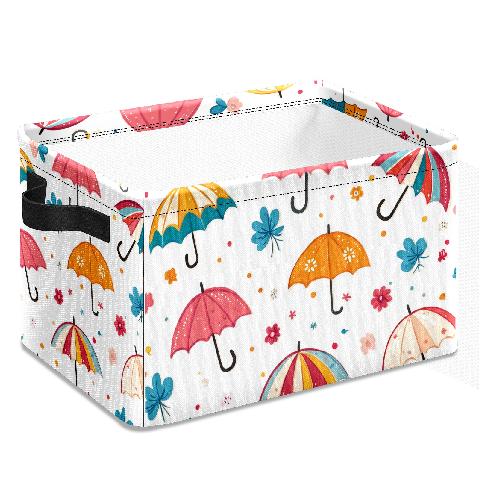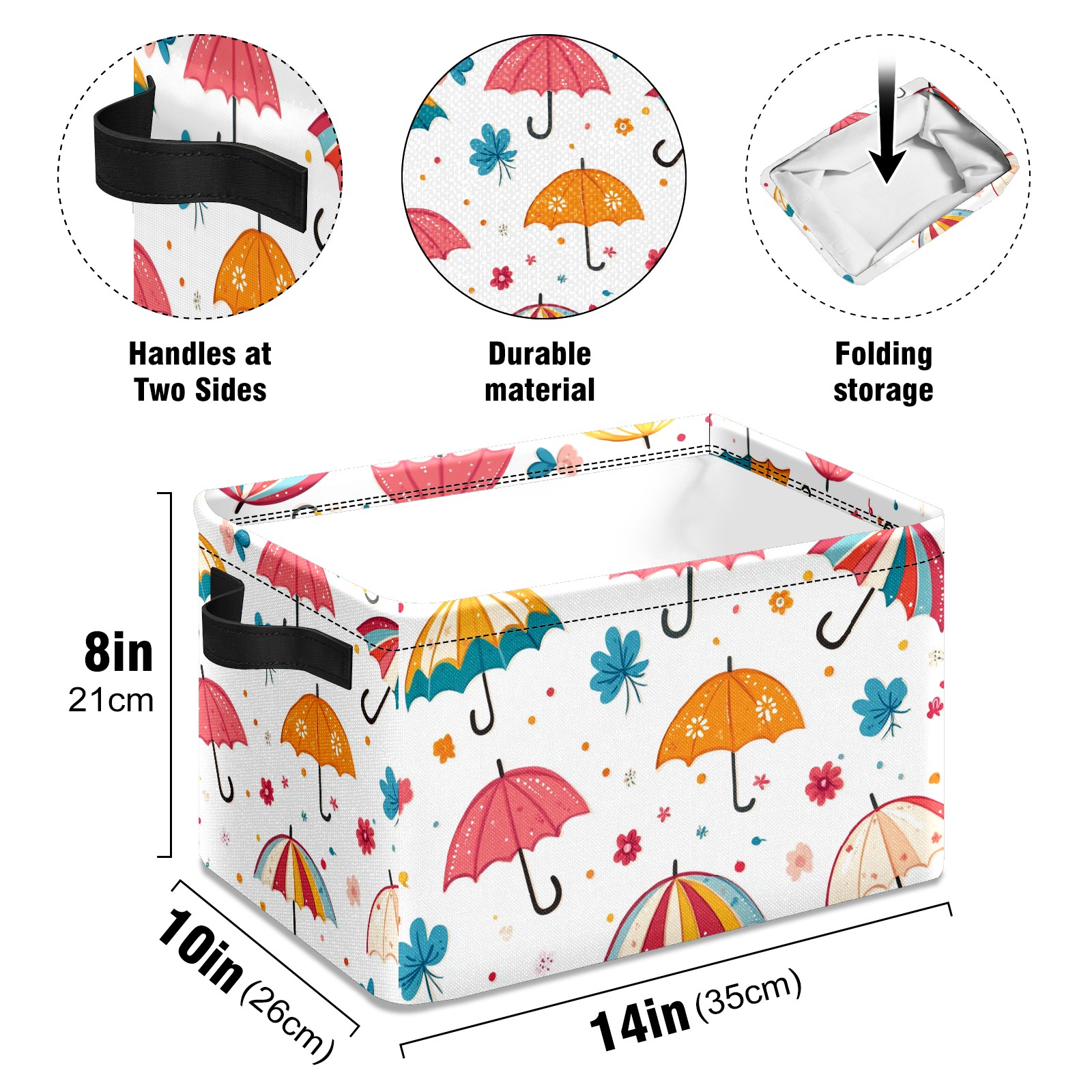 Foldable and Stackable Fabric Storage Basket for Home Organization with Handles, Decorative Closet Bins for Shelves and Laundry Storage( Umbrellas Pattern)