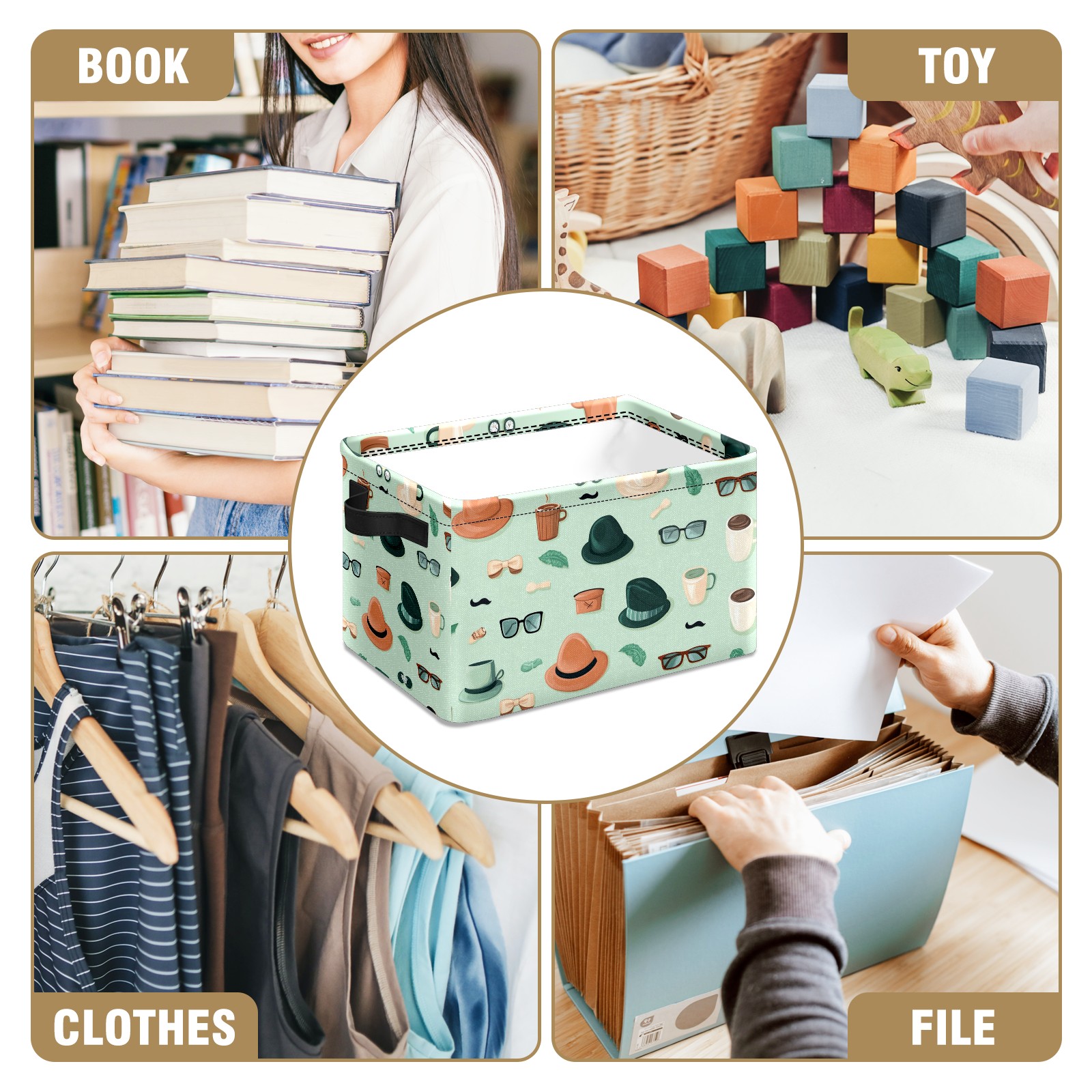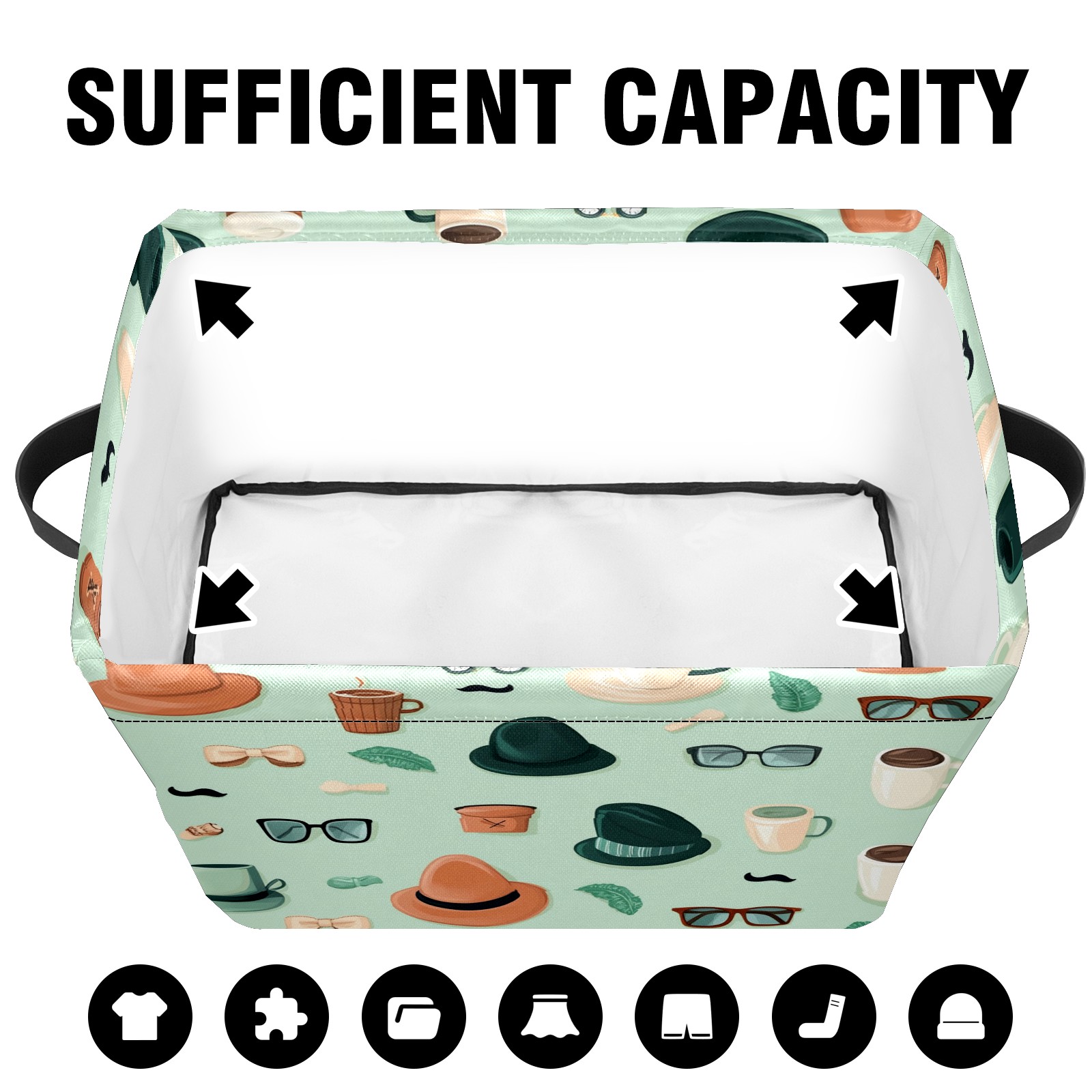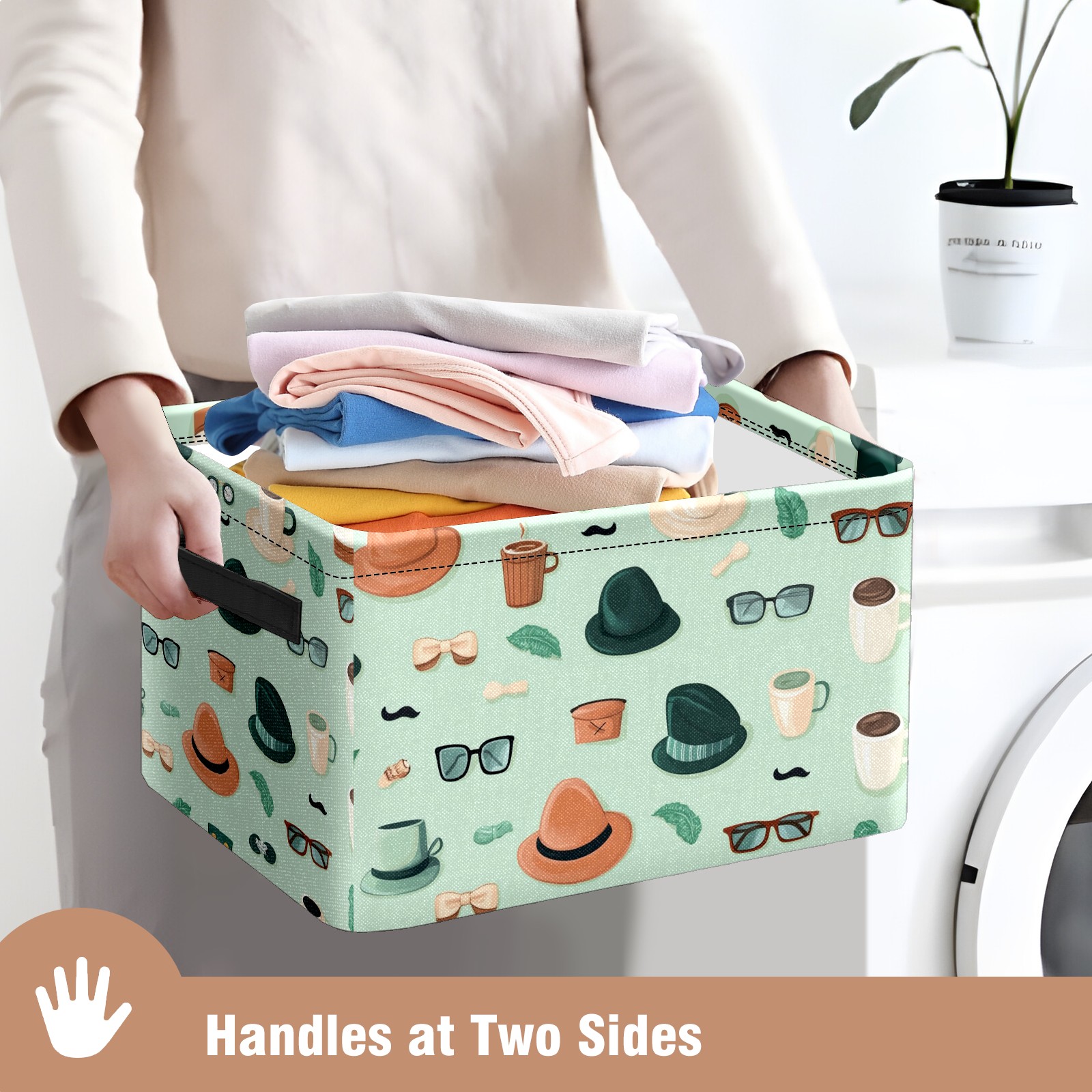 Foldable and Stackable Fabric Storage Basket for Home Organization with Handles, Decorative Closet Bins for Shelves and Laundry Storage( Hats)
