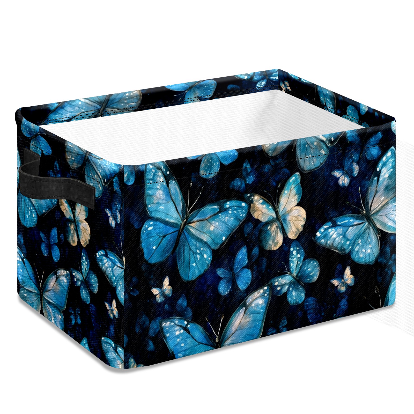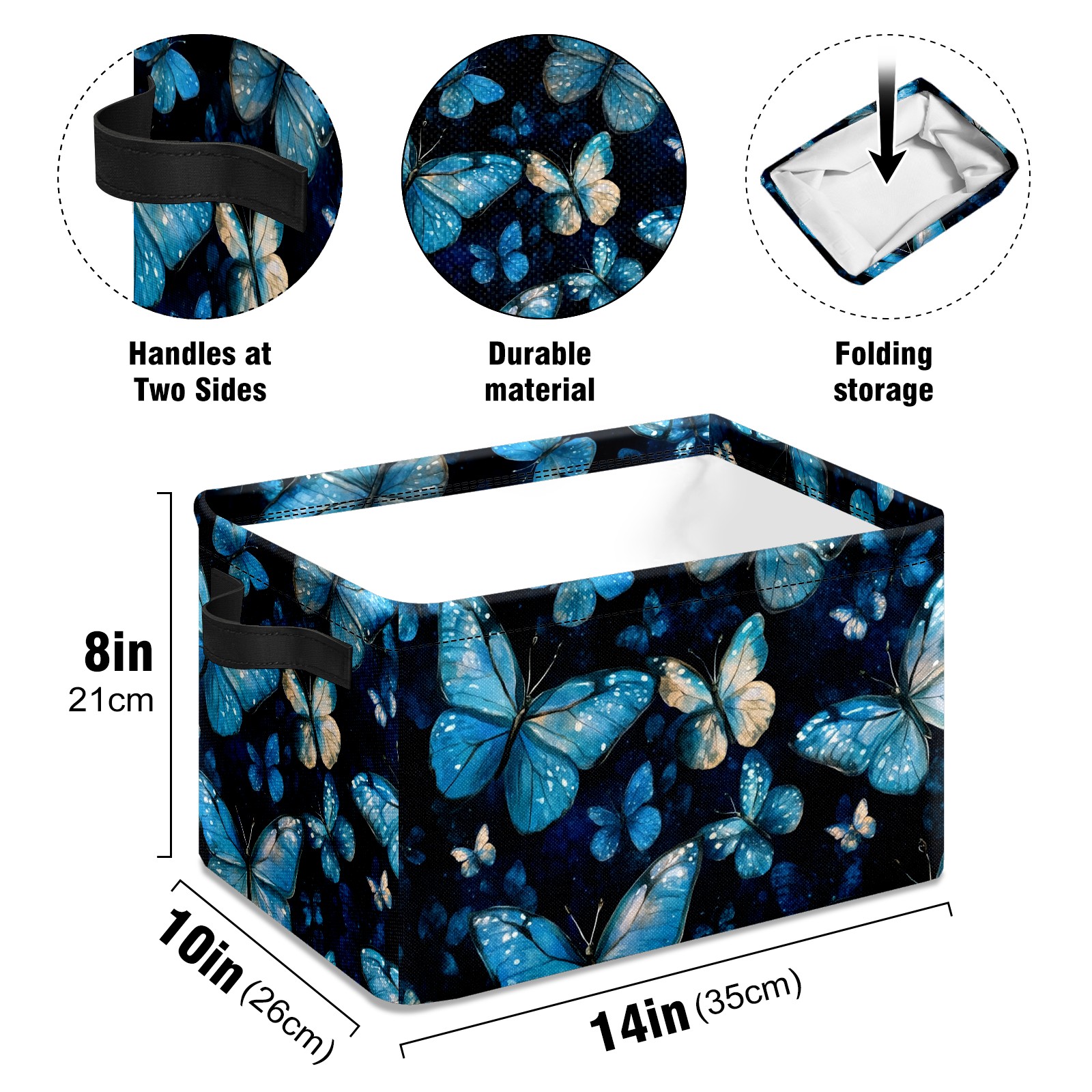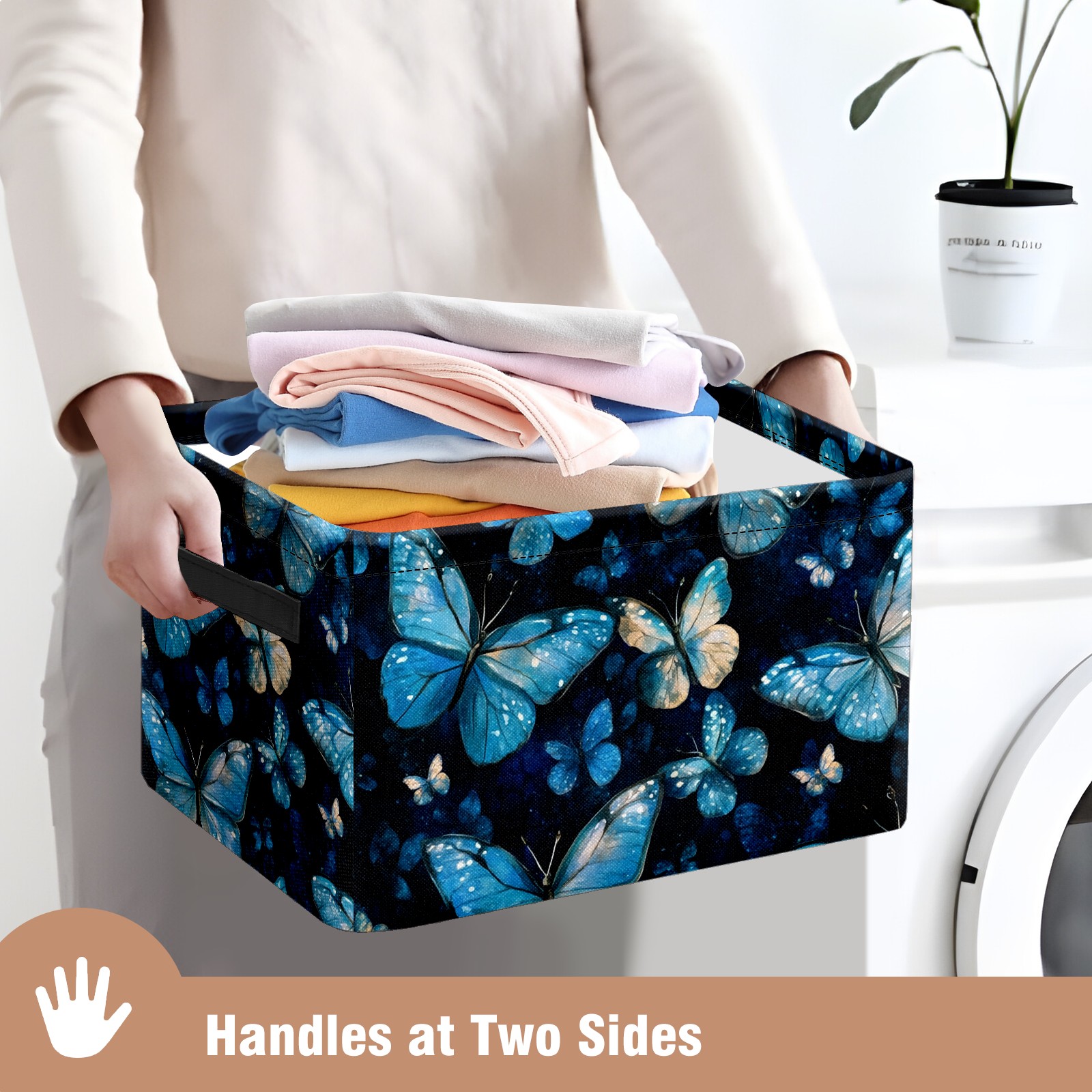 Foldable and Stackable Fabric Storage Basket for Home Organization with Handles, Decorative Closet Bins for Shelves and Laundry Storage( Turquoise And Blue Butterflies)