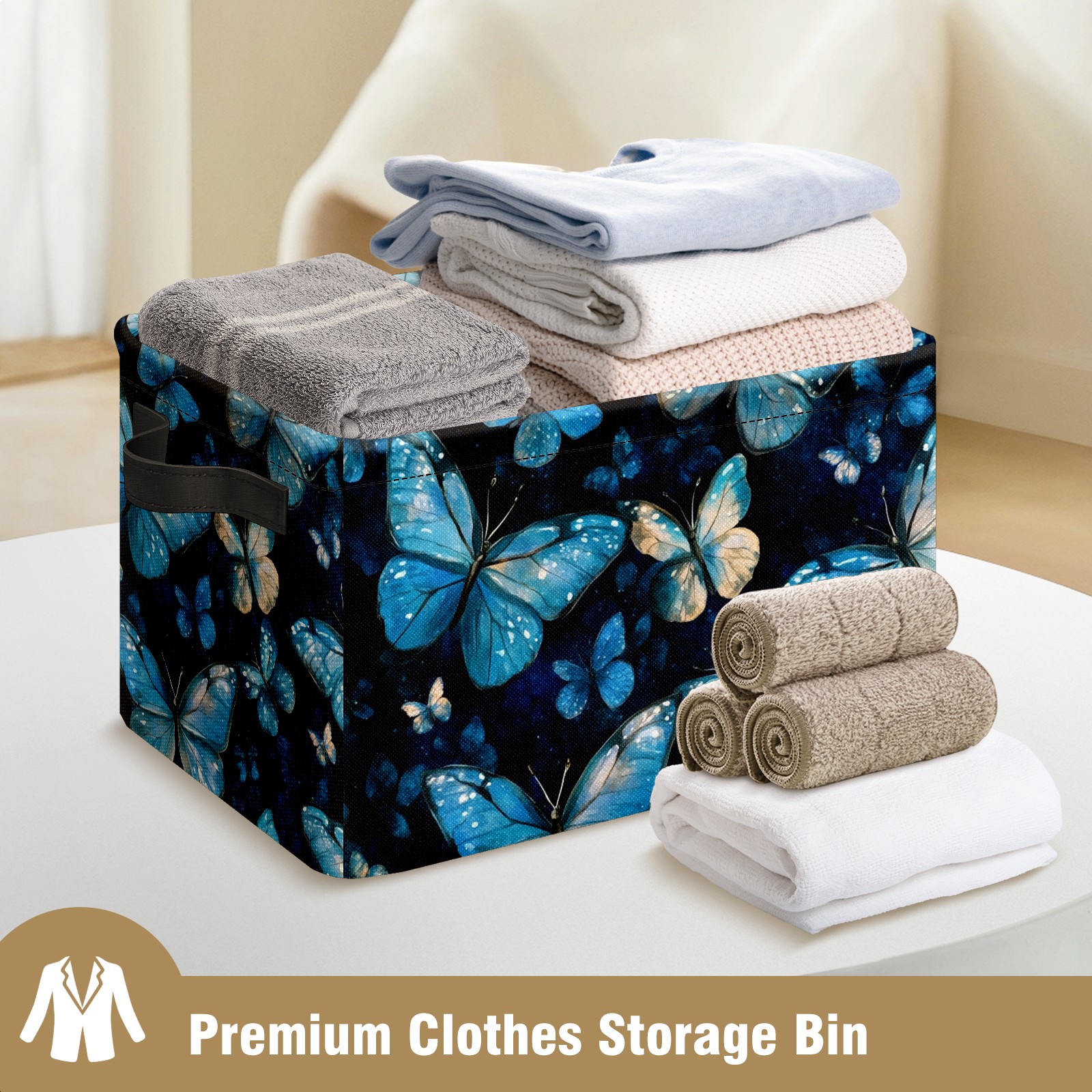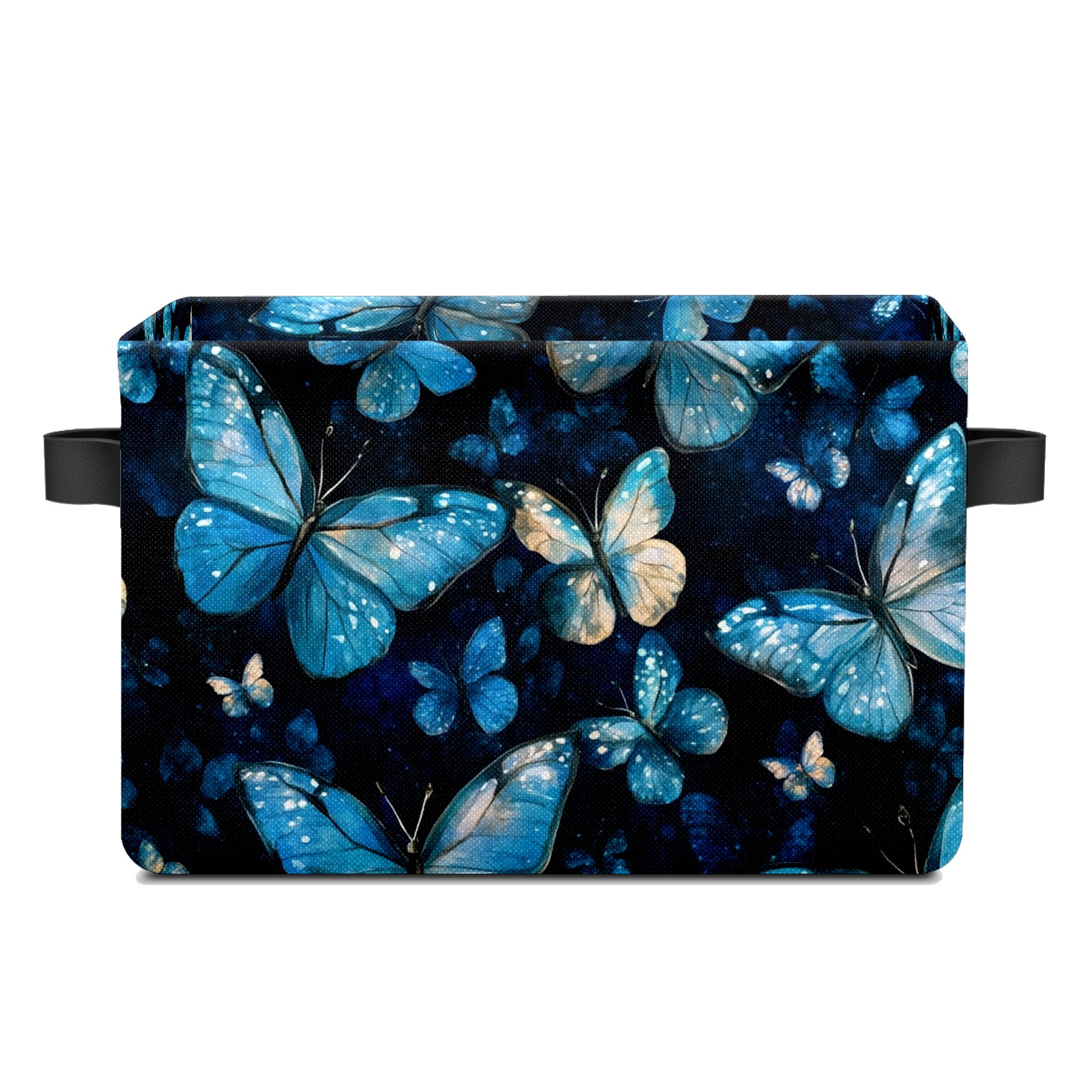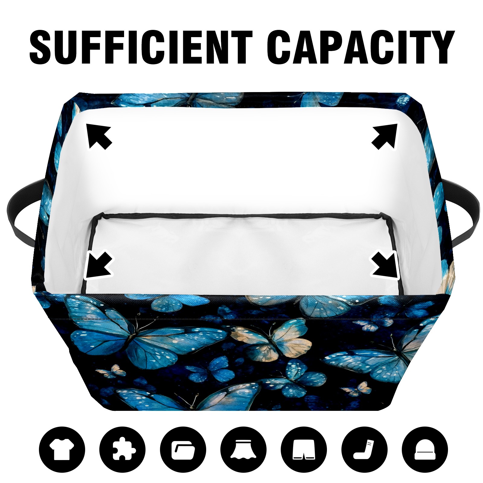 Foldable and Stackable Fabric Storage Basket for Home Organization with Handles, Decorative Closet Bins for Shelves and Laundry Storage( Turquoise And Blue Butterflies)