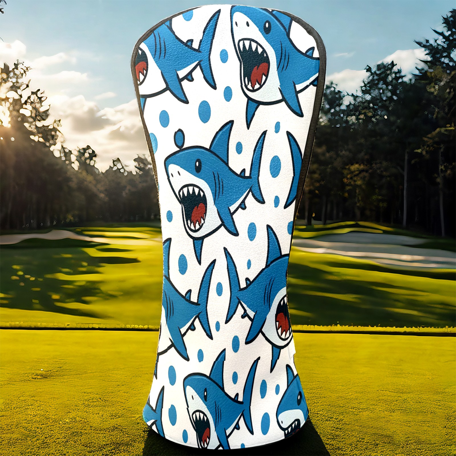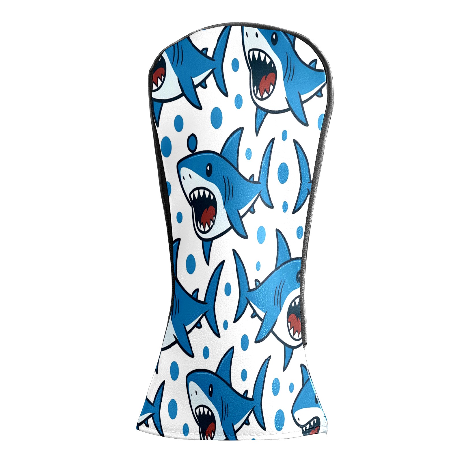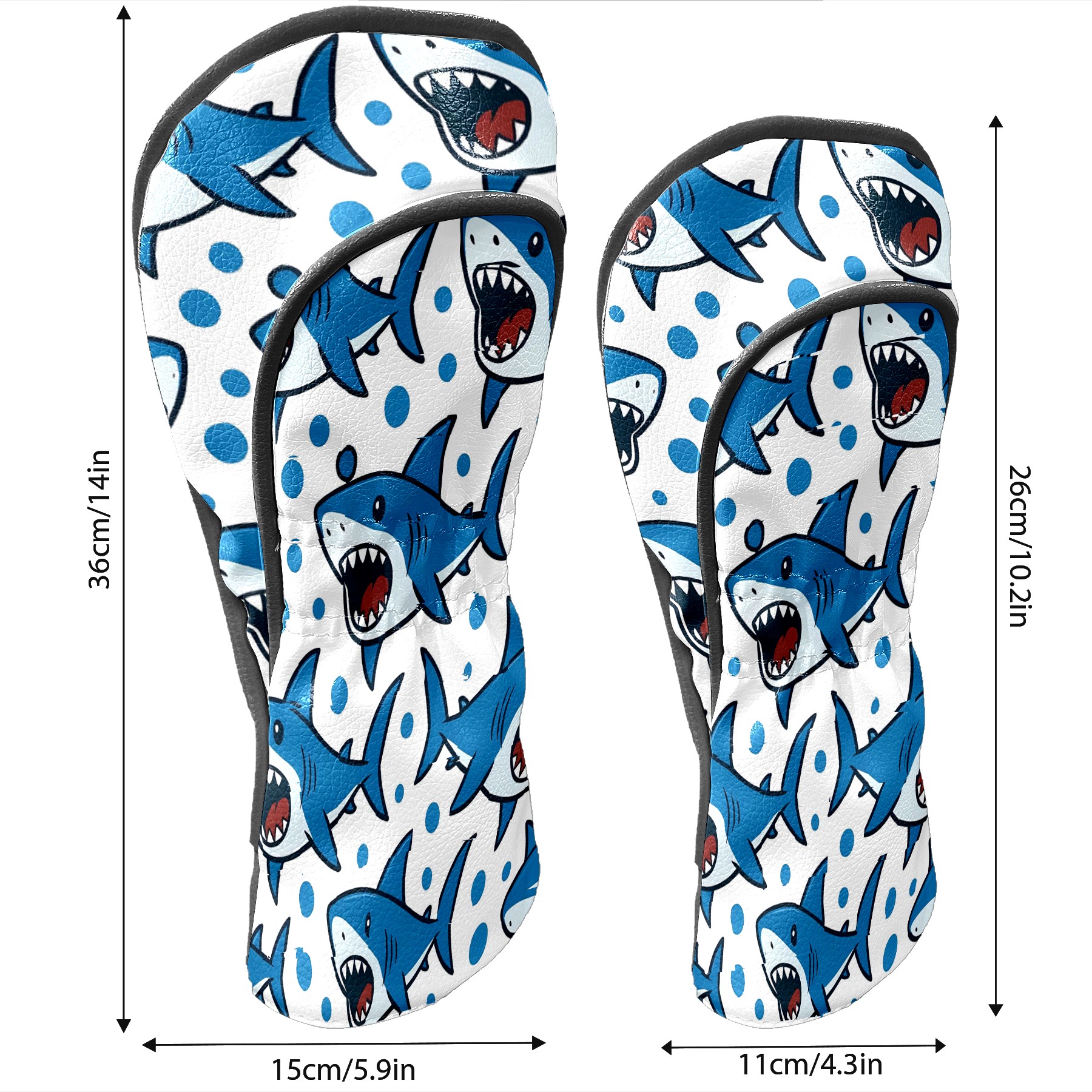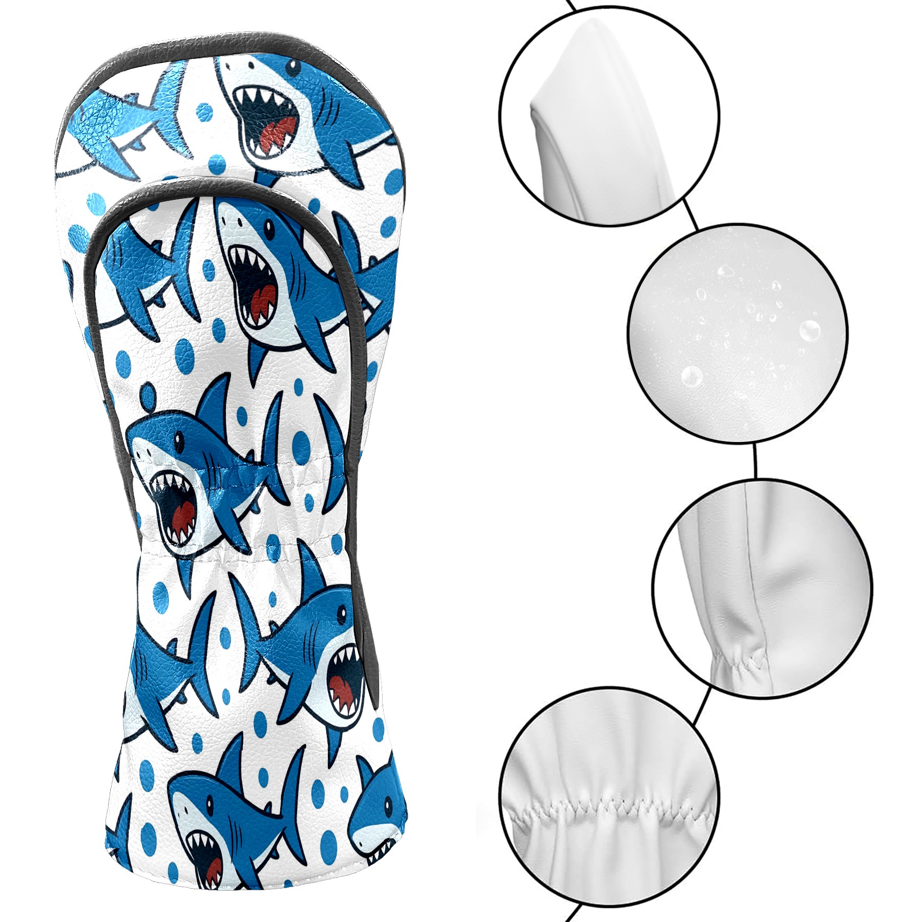 Blue Sharks Golf Club Head Covers - Blue Sharks Design, Premium PU Leather Driver Hybrid Headcovers with Velvet Lining, Waterproof Golf Gifts for Men Women