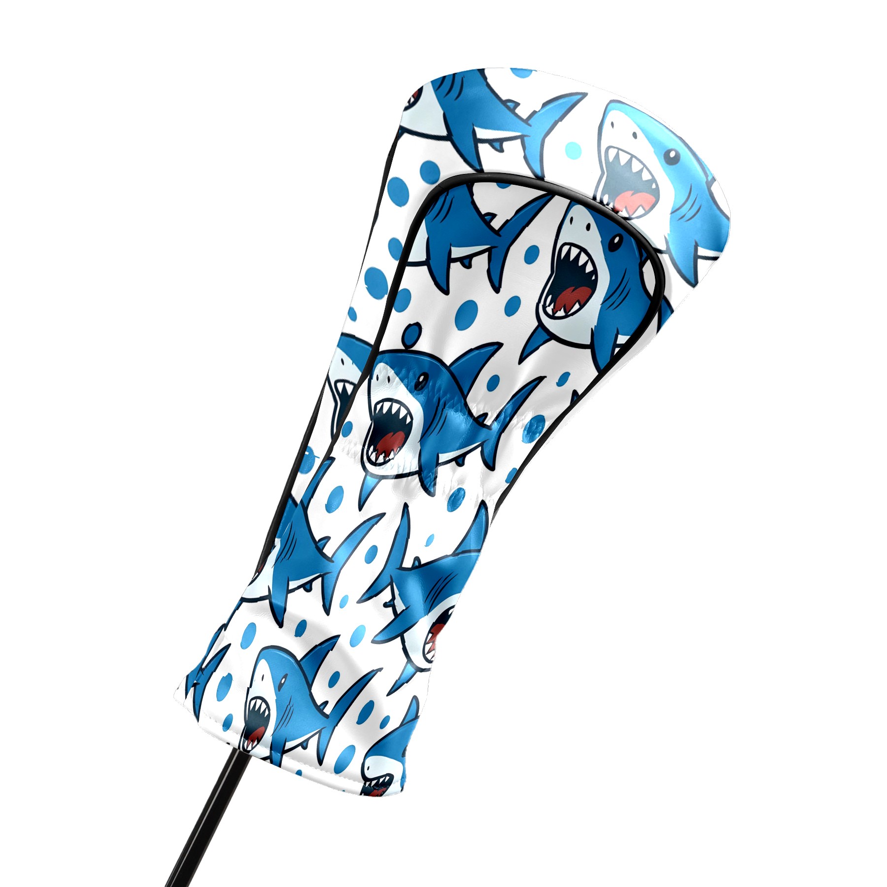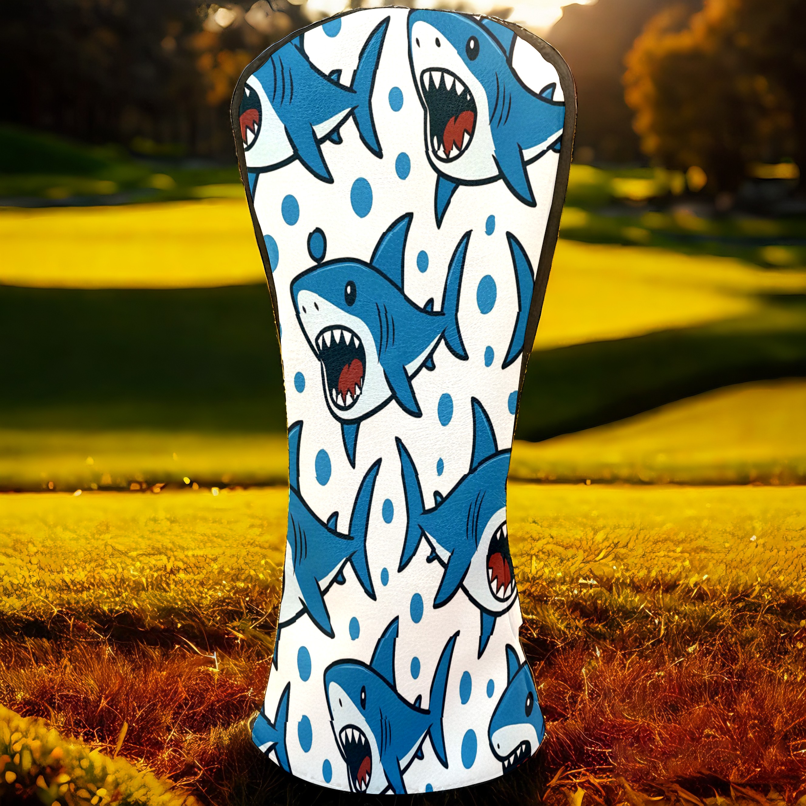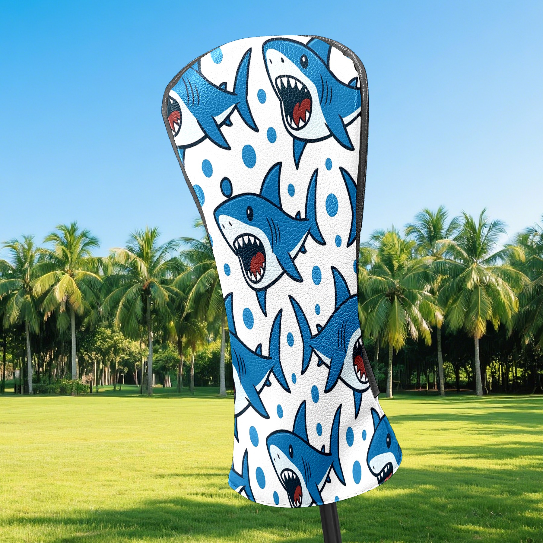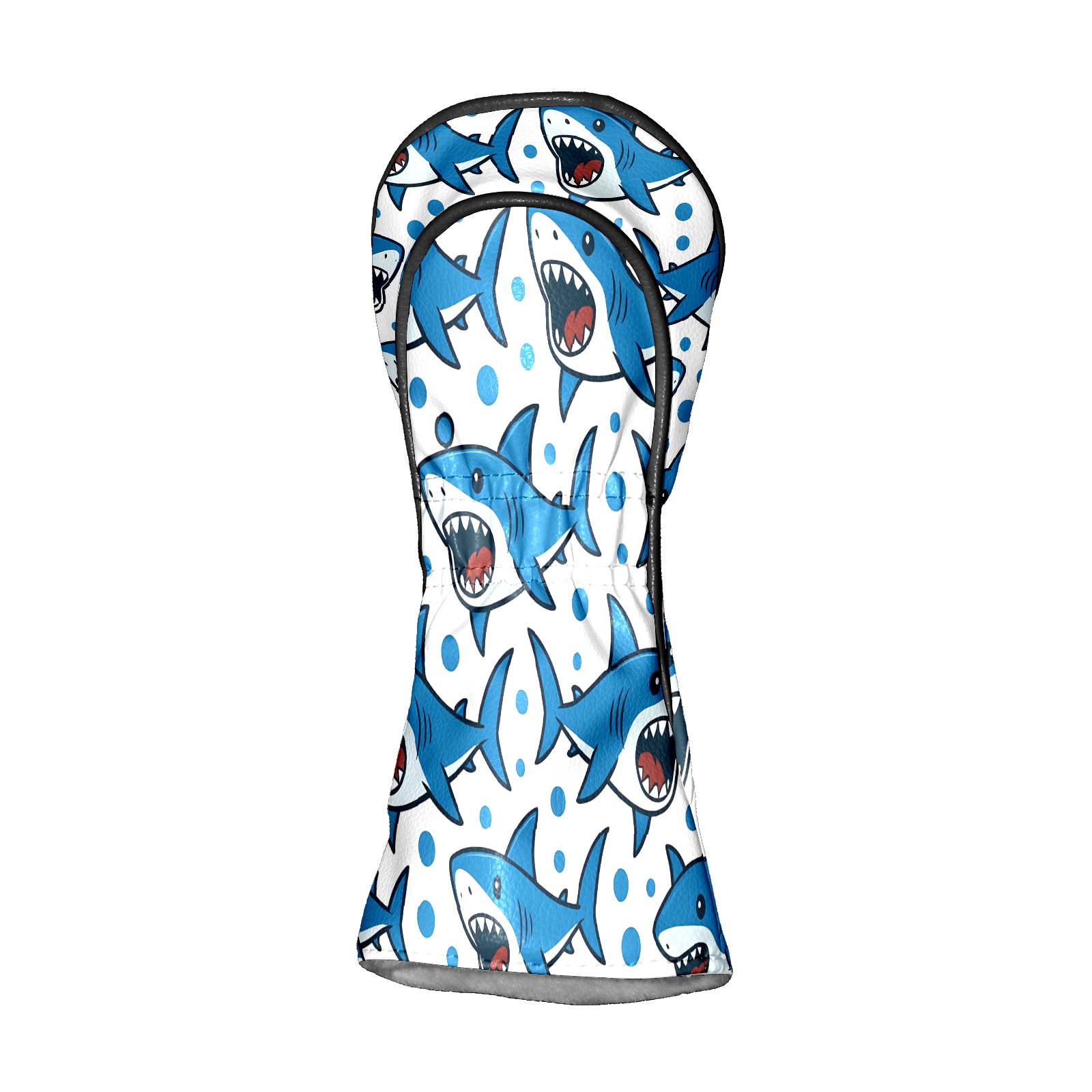 Blue Sharks Golf Club Head Covers - Blue Sharks Design, Premium PU Leather Driver Hybrid Headcovers with Velvet Lining, Waterproof Golf Gifts for Men Women