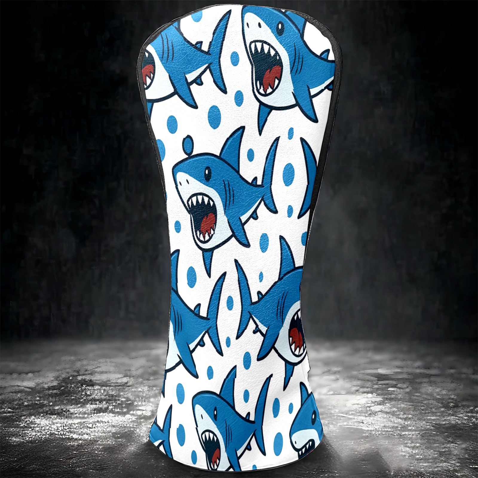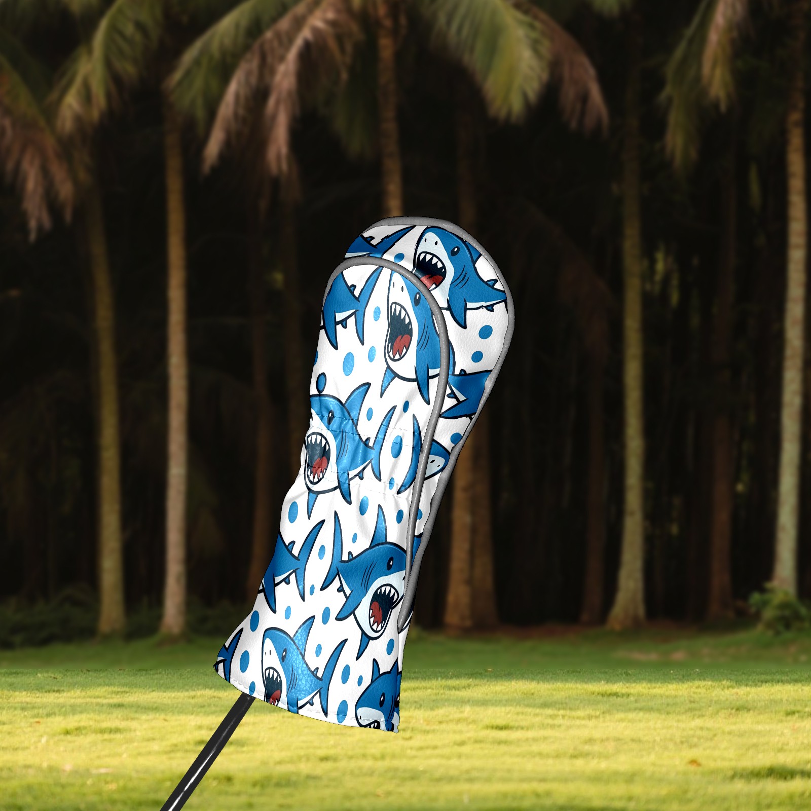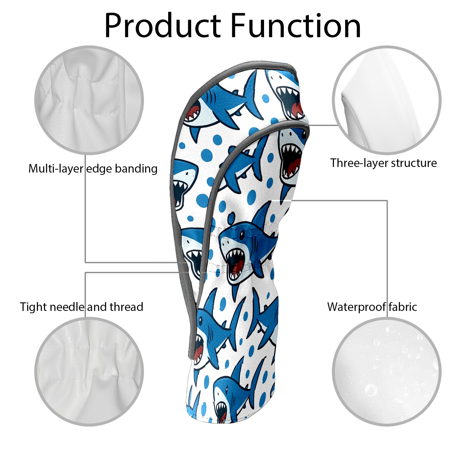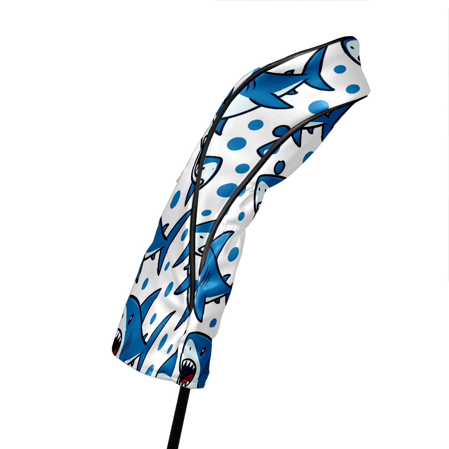 Blue Sharks Golf Club Head Covers - Blue Sharks Design, Premium PU Leather Driver Hybrid Headcovers with Velvet Lining, Waterproof Golf Gifts for Men Women