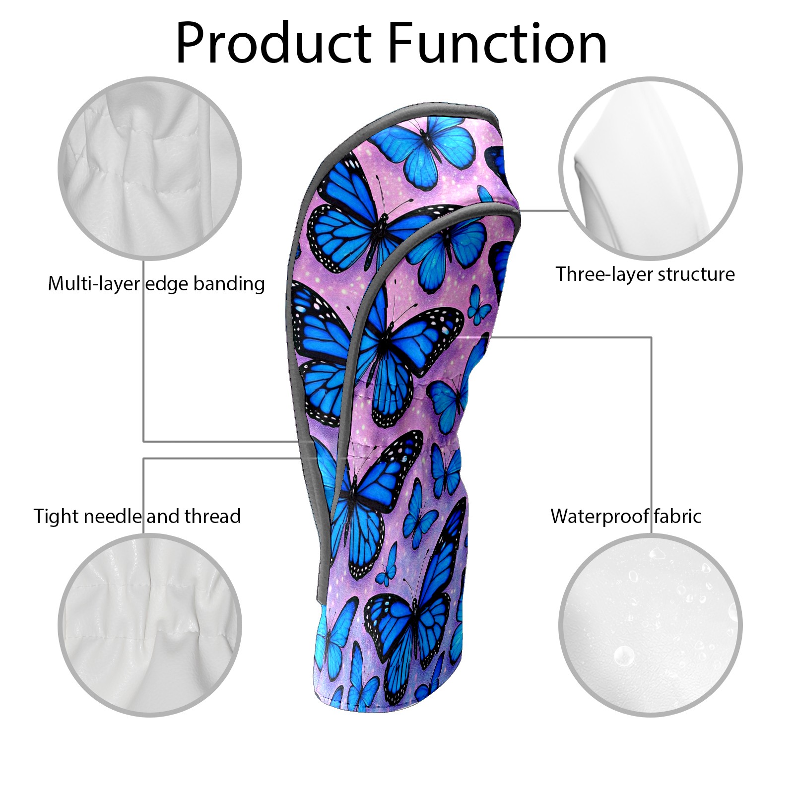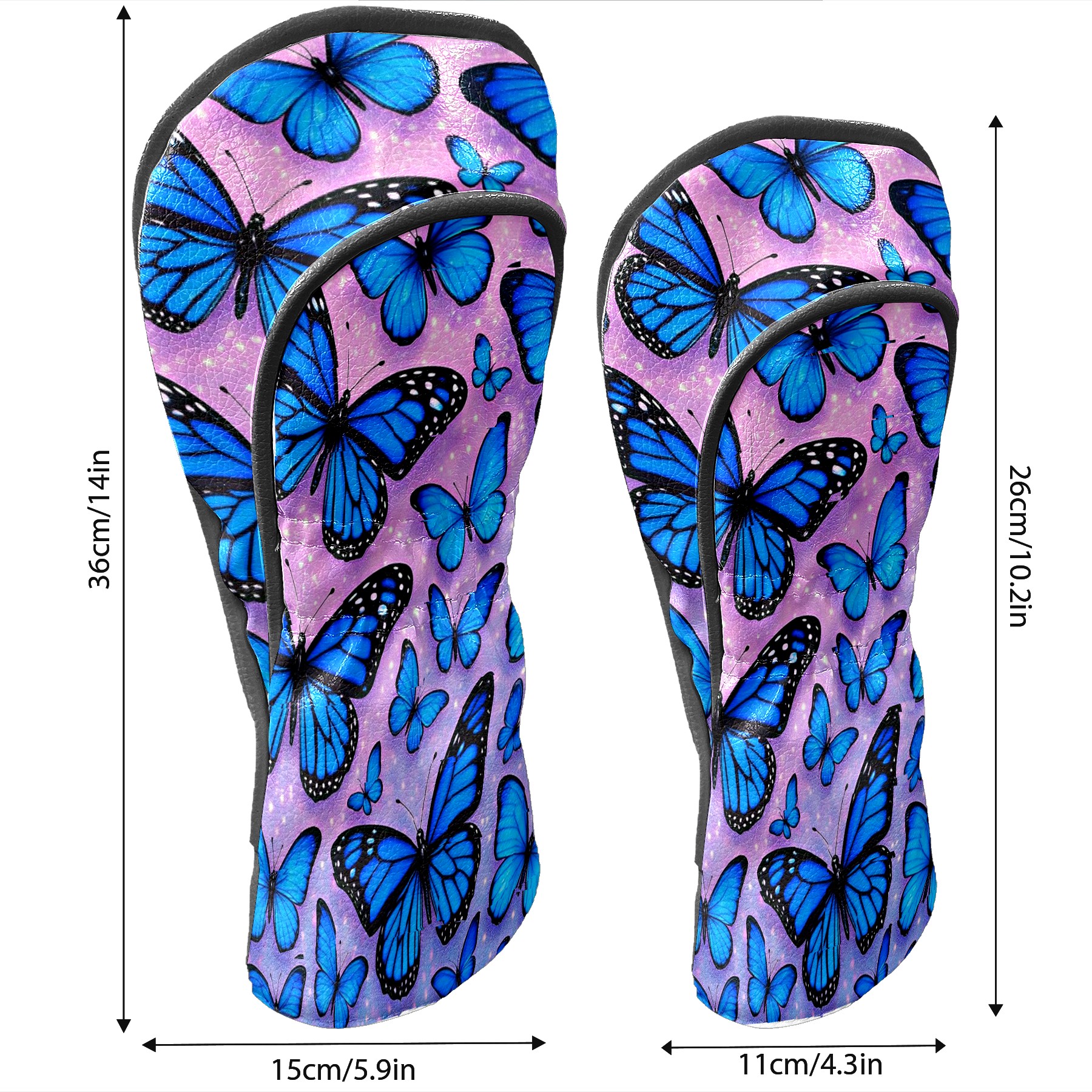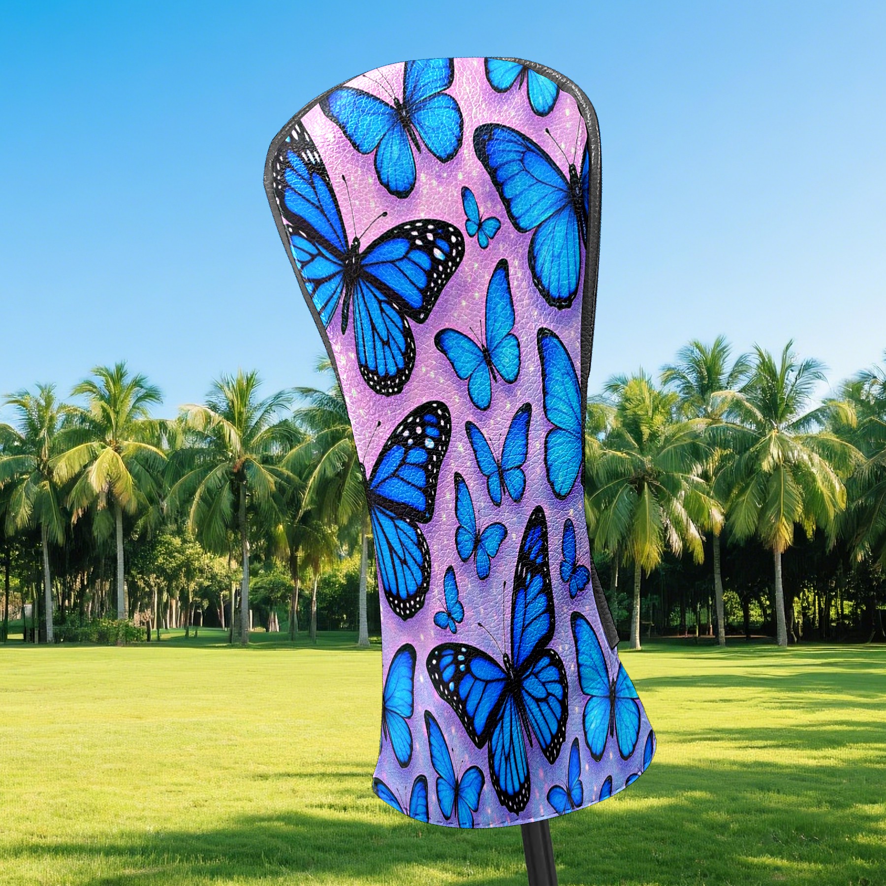 Blue Butterflies Golf Club Head Covers - Blue Butterflies Design, Premium PU Leather Driver Hybrid Headcovers with Velvet Lining, Waterproof Golf Gifts for Men Women