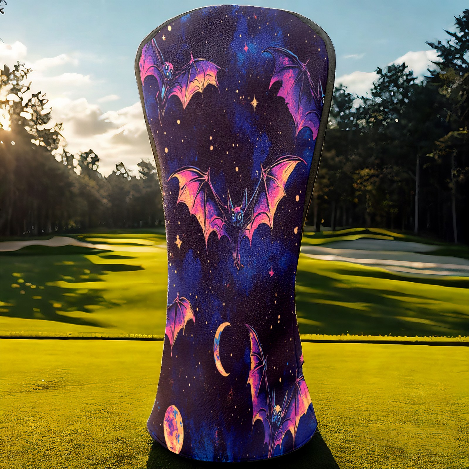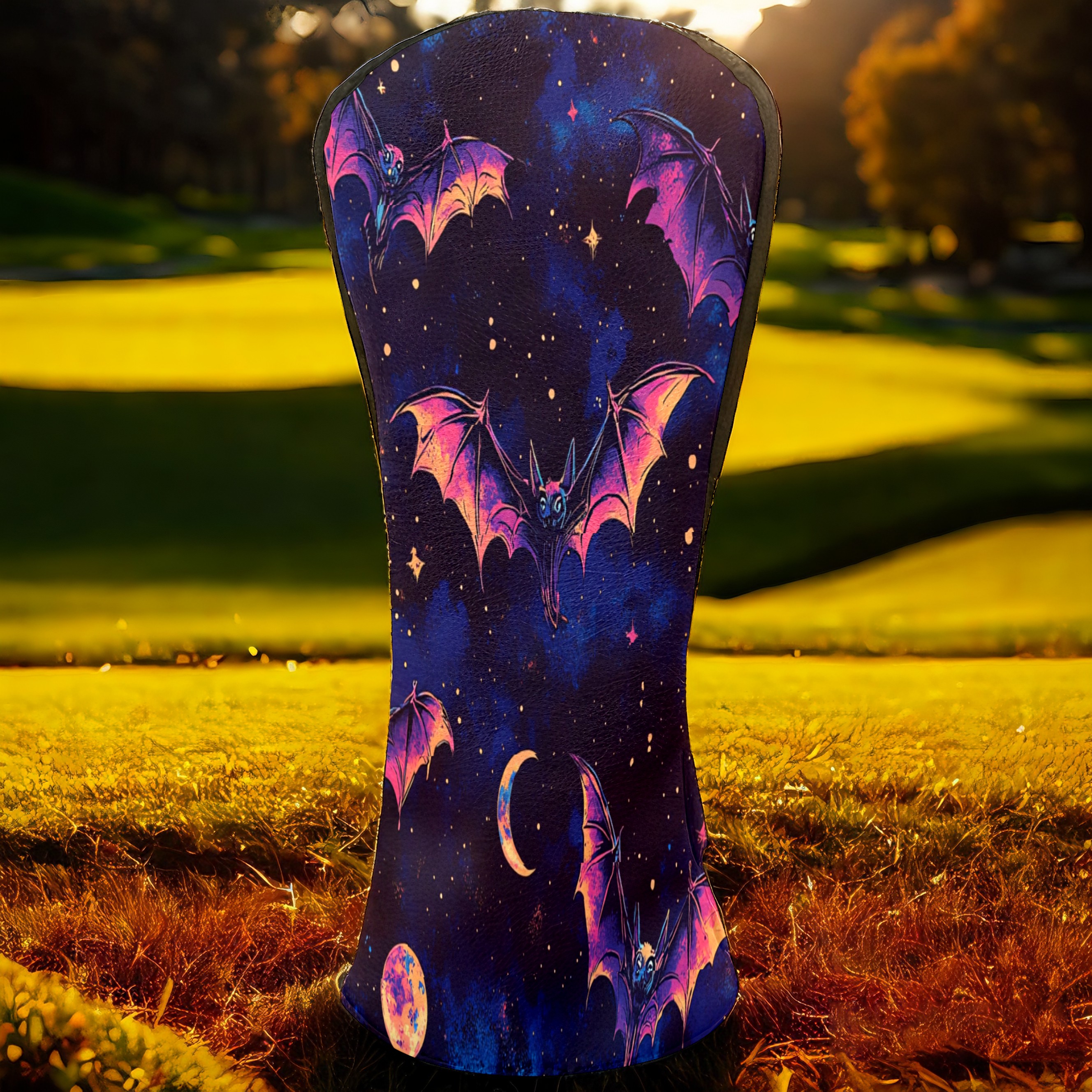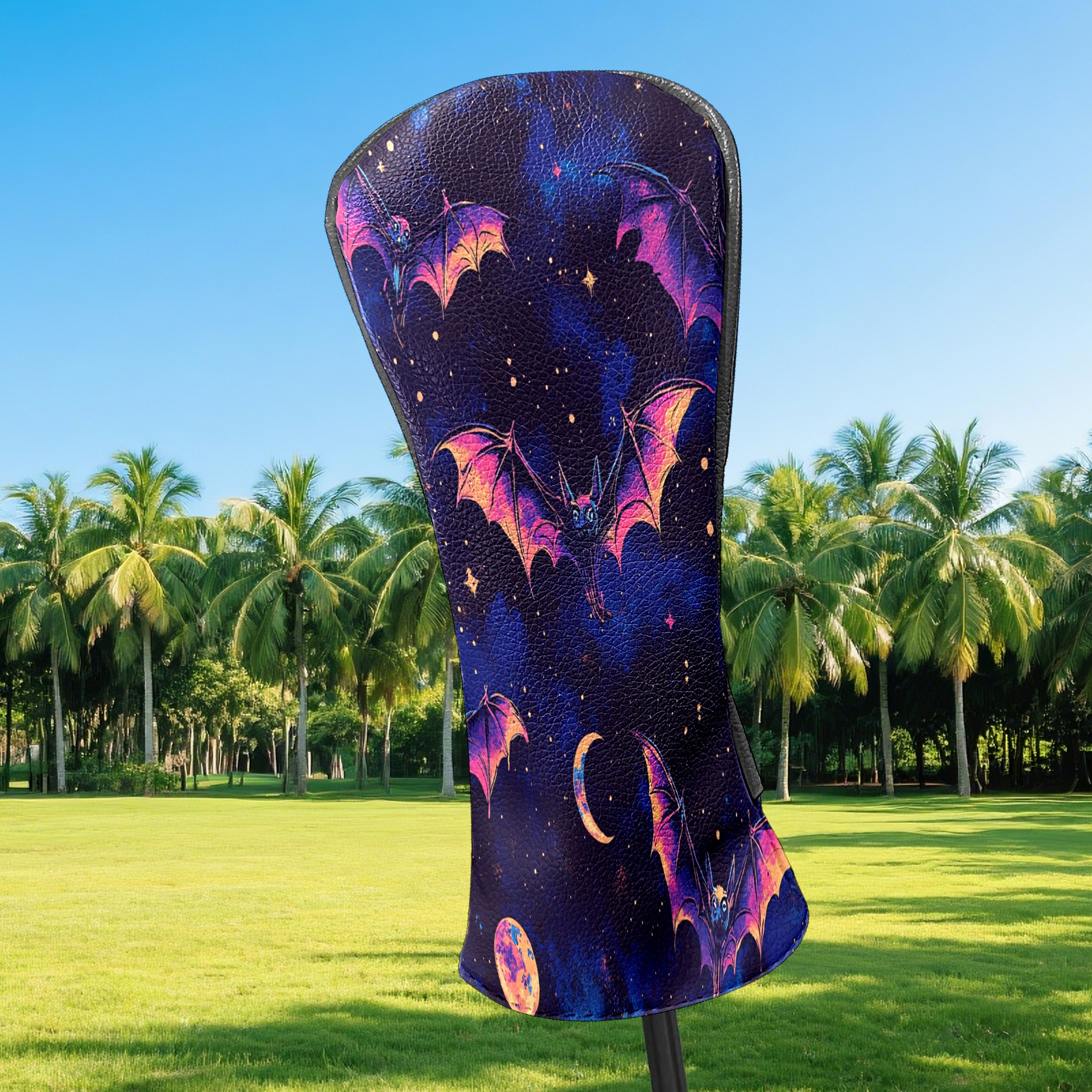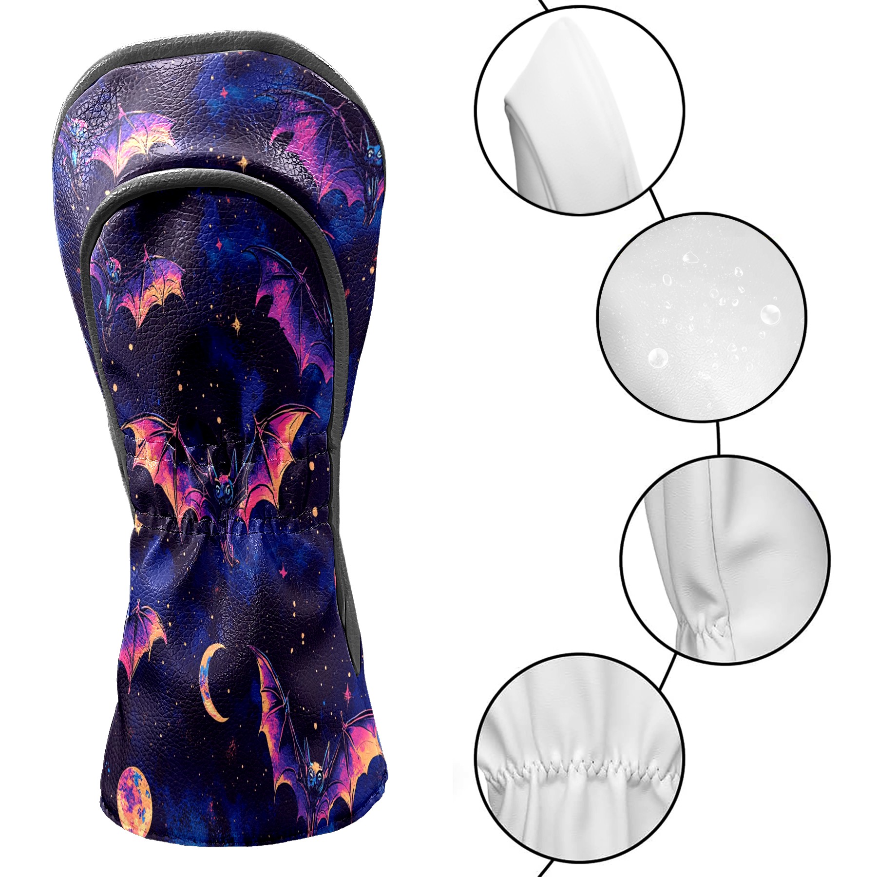 Galaxy Purple Bat Golf Club Head Covers - Galaxy Purple Bat Design, Premium PU Leather Driver Hybrid Headcovers with Velvet Lining, Waterproof Golf Gifts for Men Women