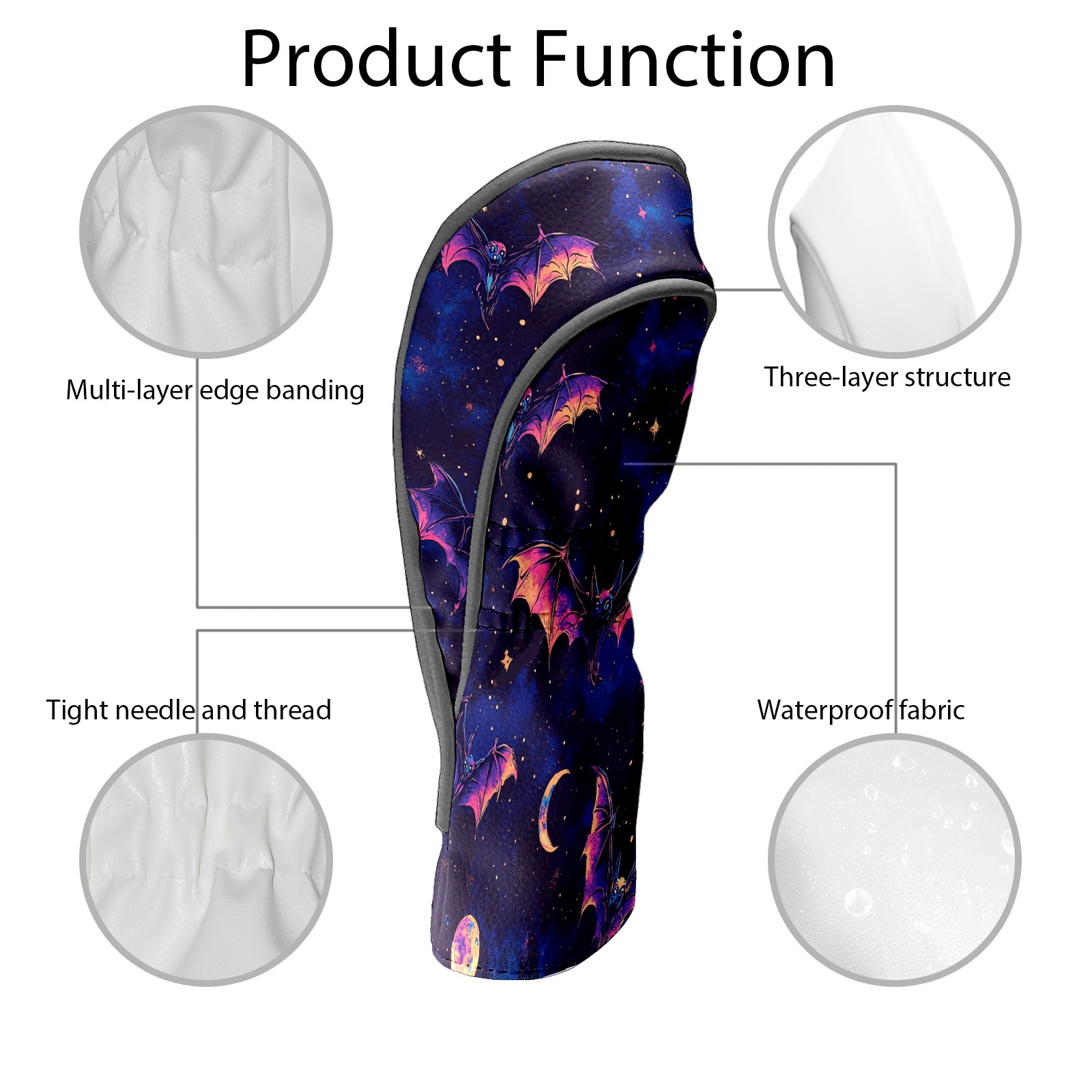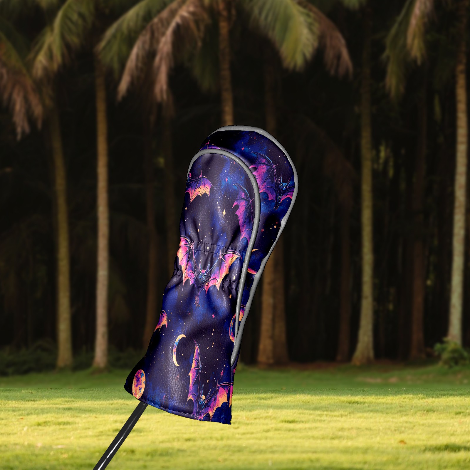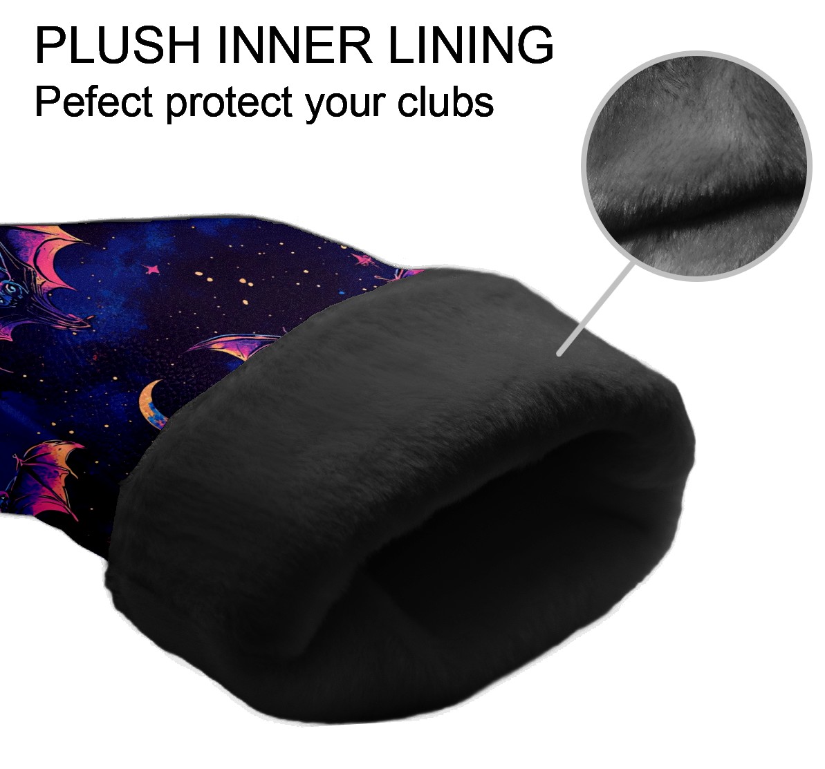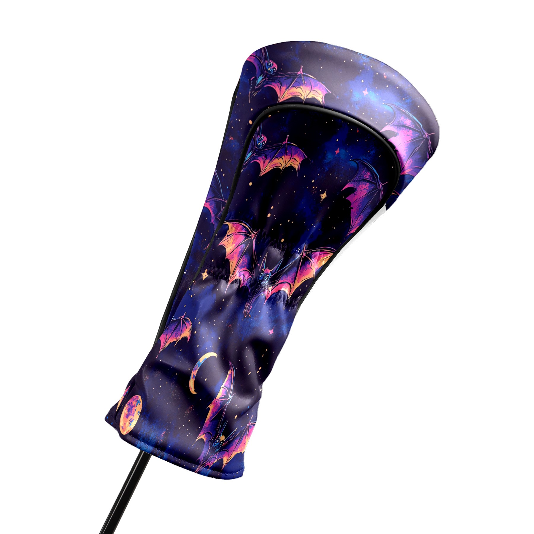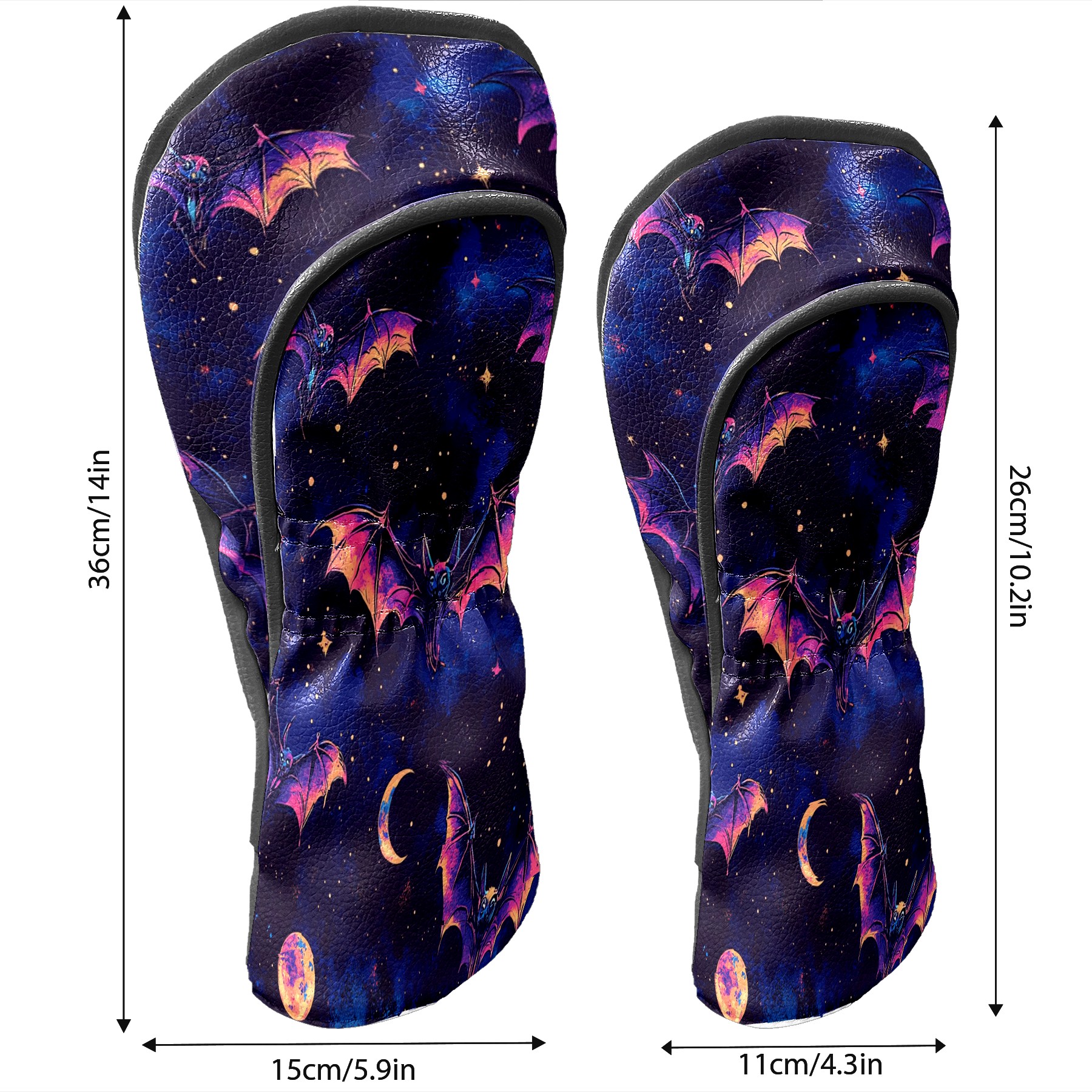 Galaxy Purple Bat Golf Club Head Covers - Galaxy Purple Bat Design, Premium PU Leather Driver Hybrid Headcovers with Velvet Lining, Waterproof Golf Gifts for Men Women