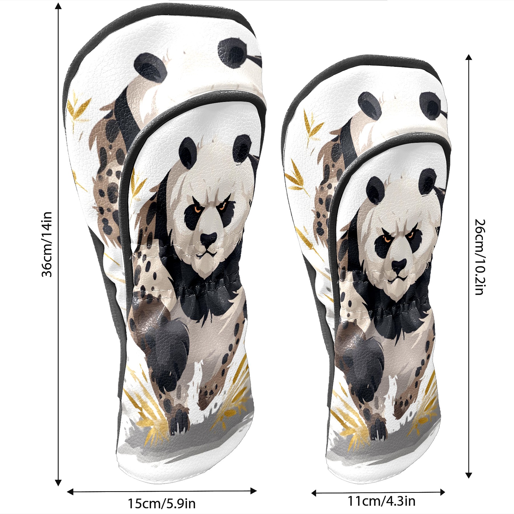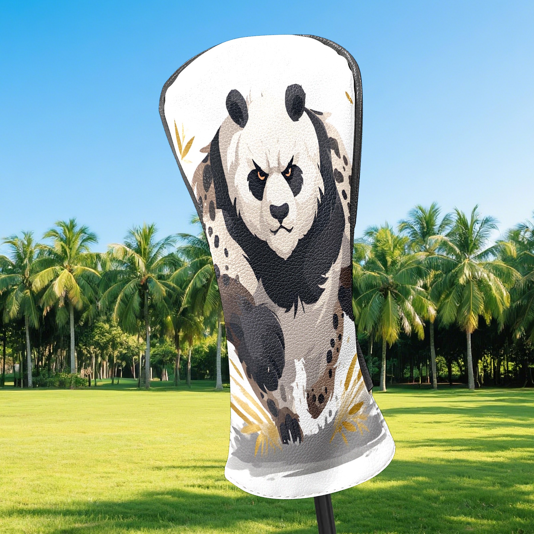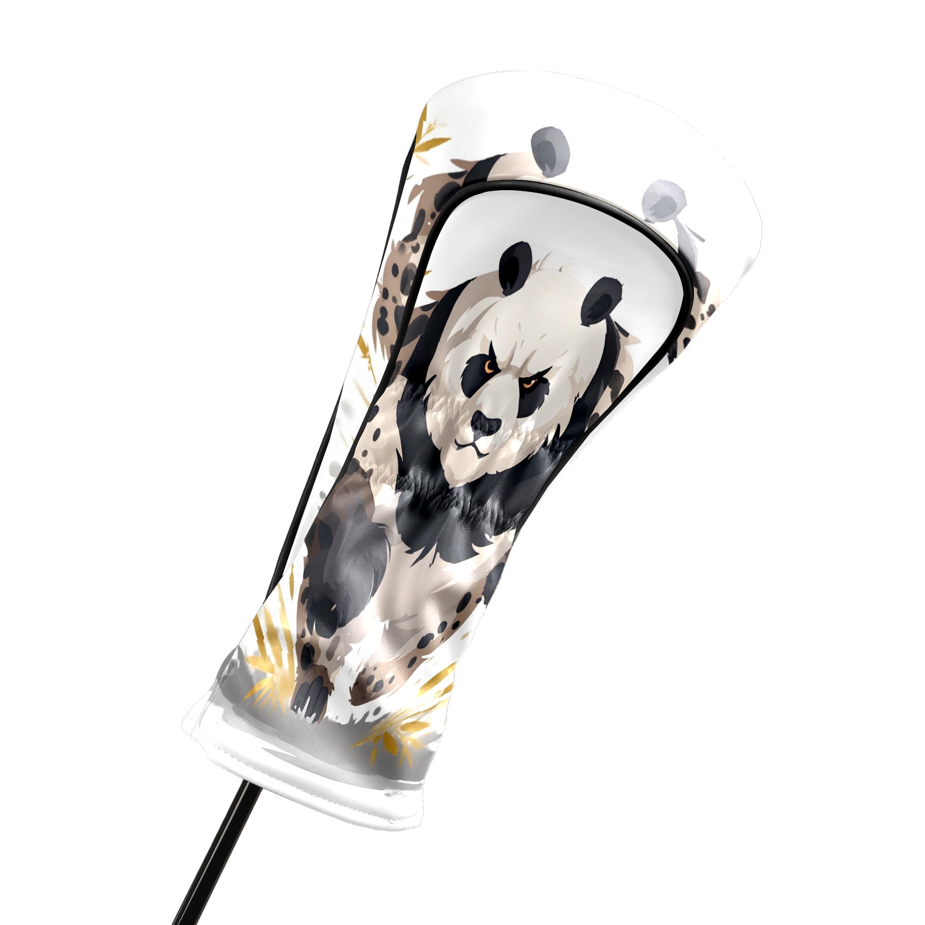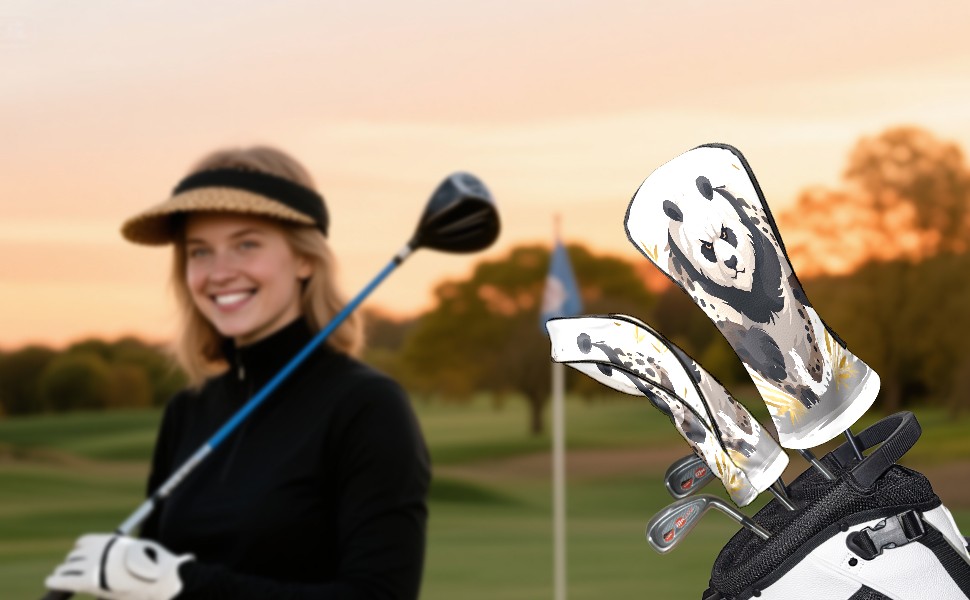 Panda Brown Golf Club Head Covers - Panda Brown Design, Premium PU Leather Driver Hybrid Headcovers with Velvet Lining, Waterproof Golf Gifts for Men Women