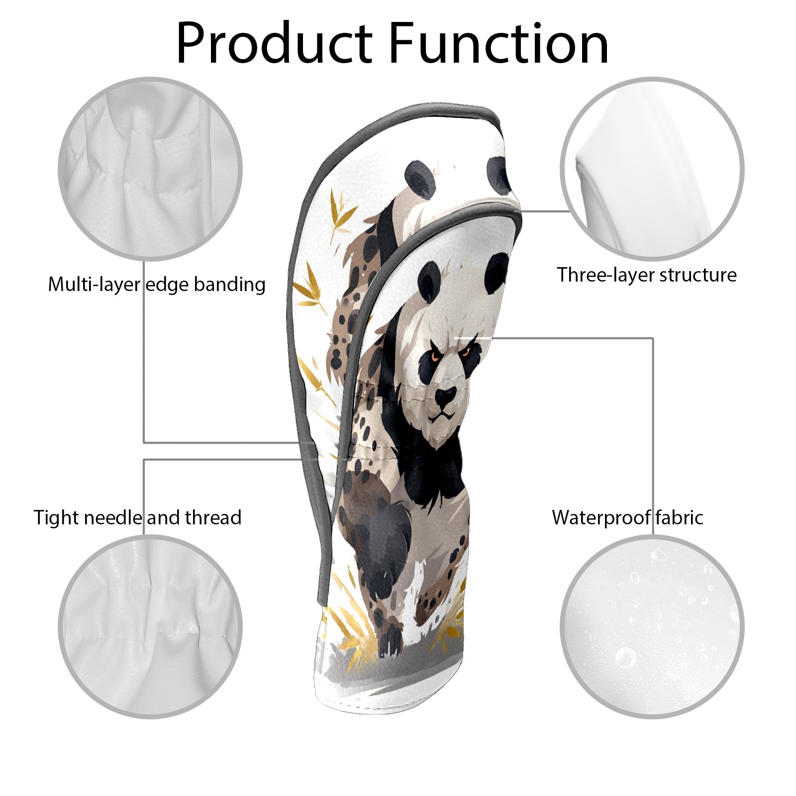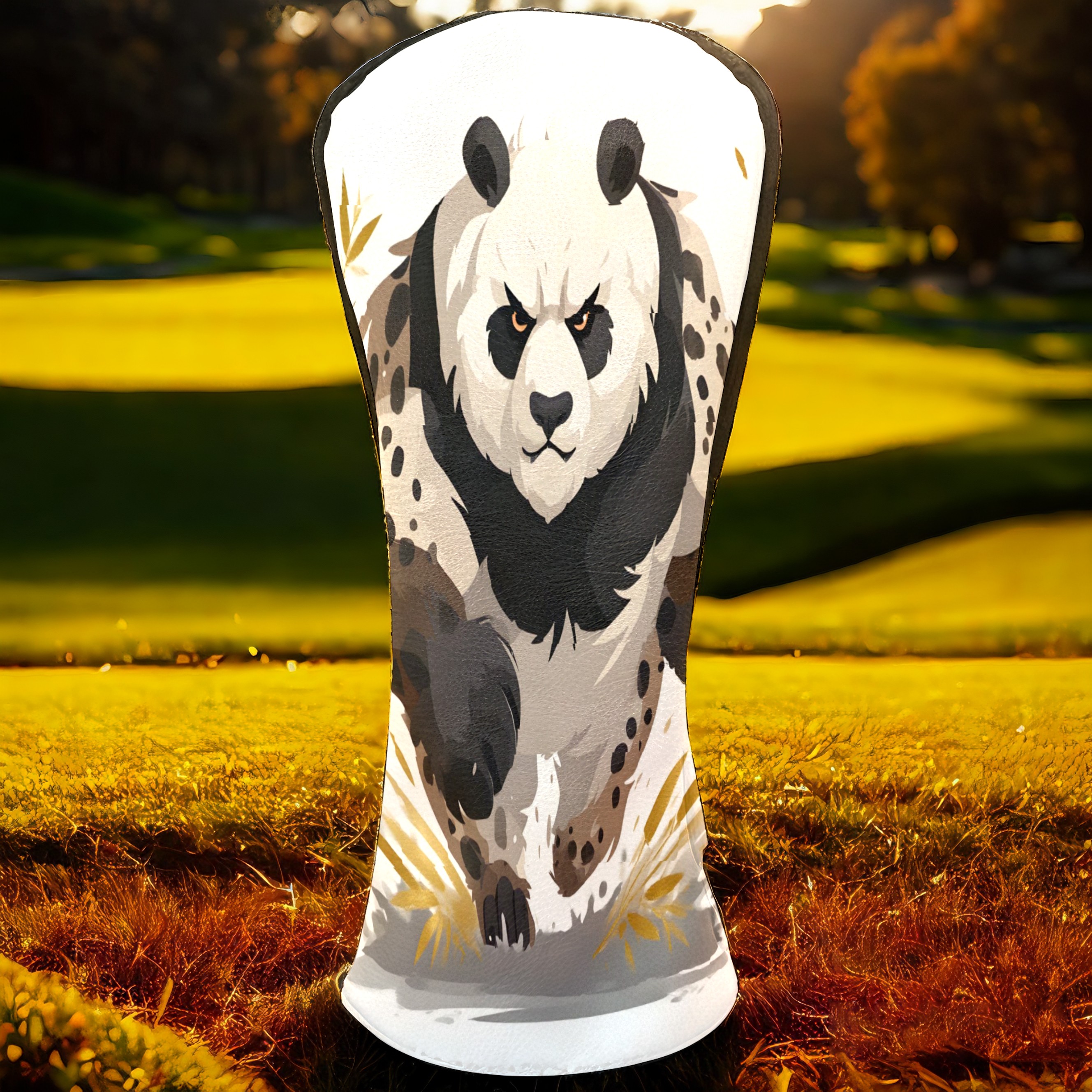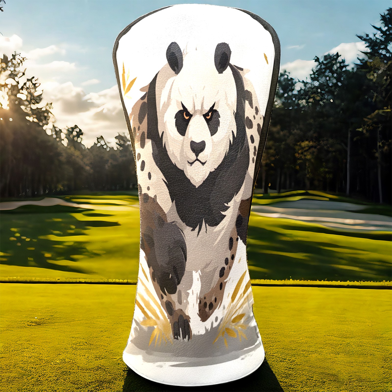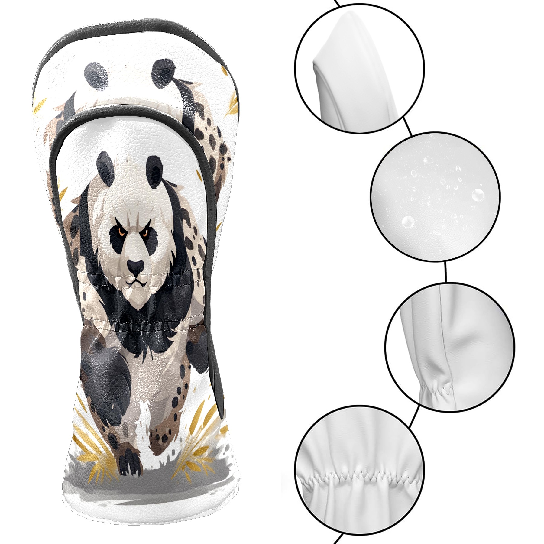 Panda Brown Golf Club Head Covers - Panda Brown Design, Premium PU Leather Driver Hybrid Headcovers with Velvet Lining, Waterproof Golf Gifts for Men Women