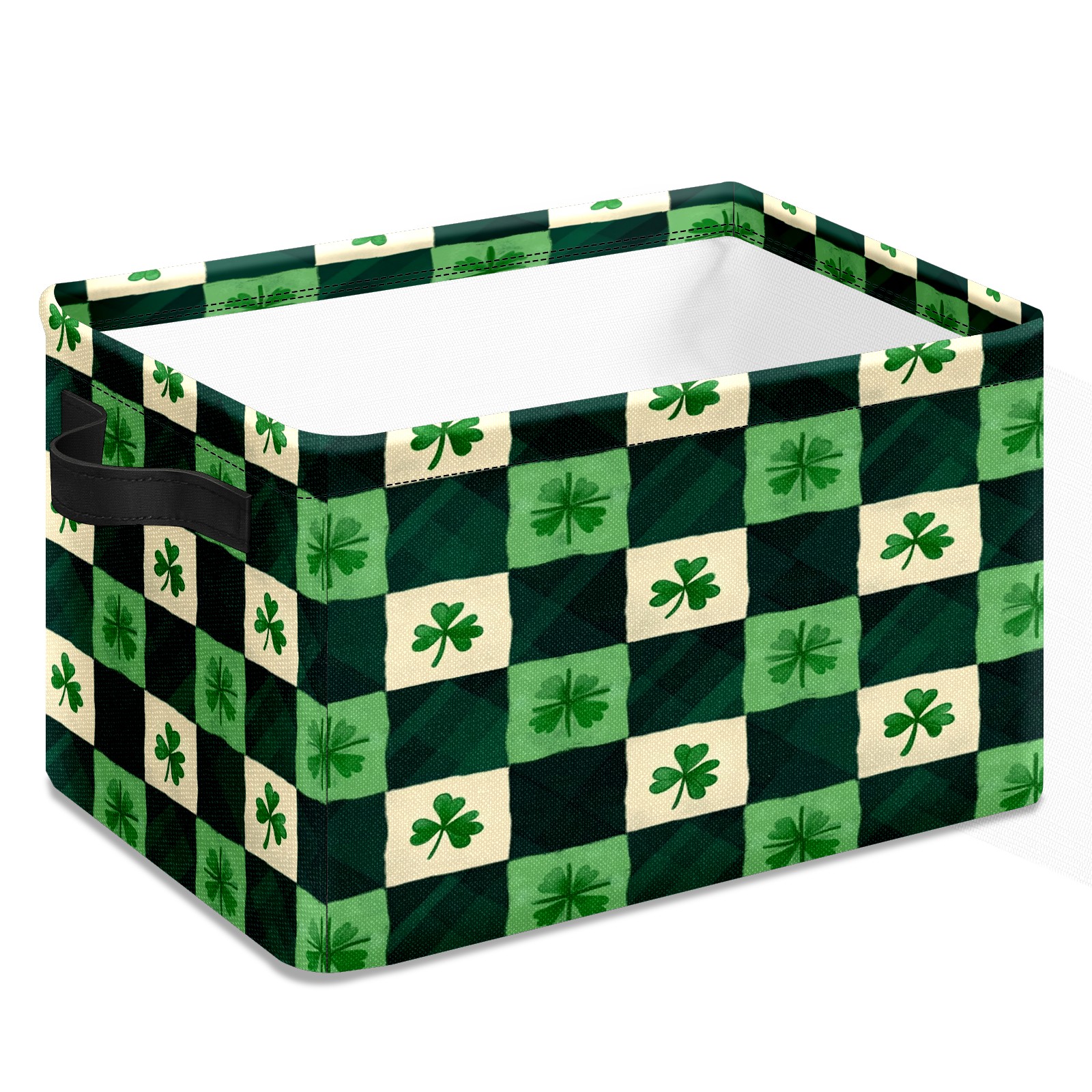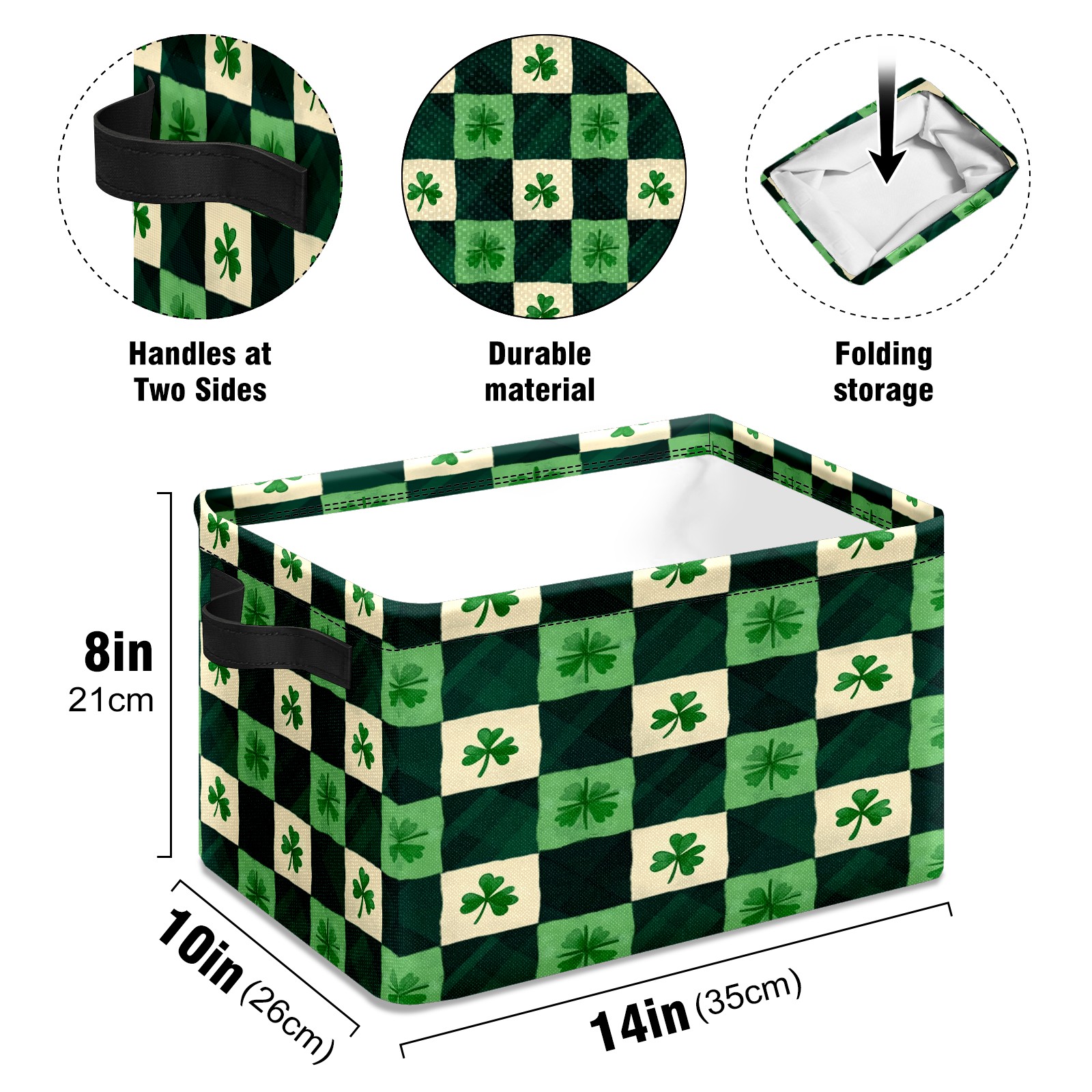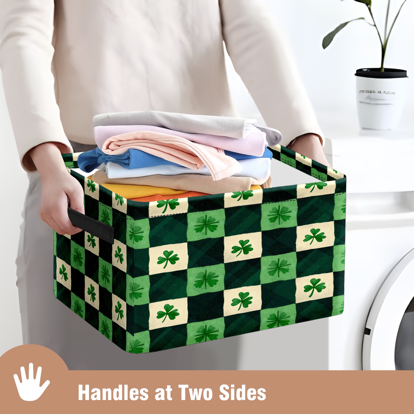 Foldable and Stackable Fabric Storage Basket for Home Organization with Handles, Decorative Closet Bins for Shelves and Laundry Storage( St.patricks Day Checkered)
