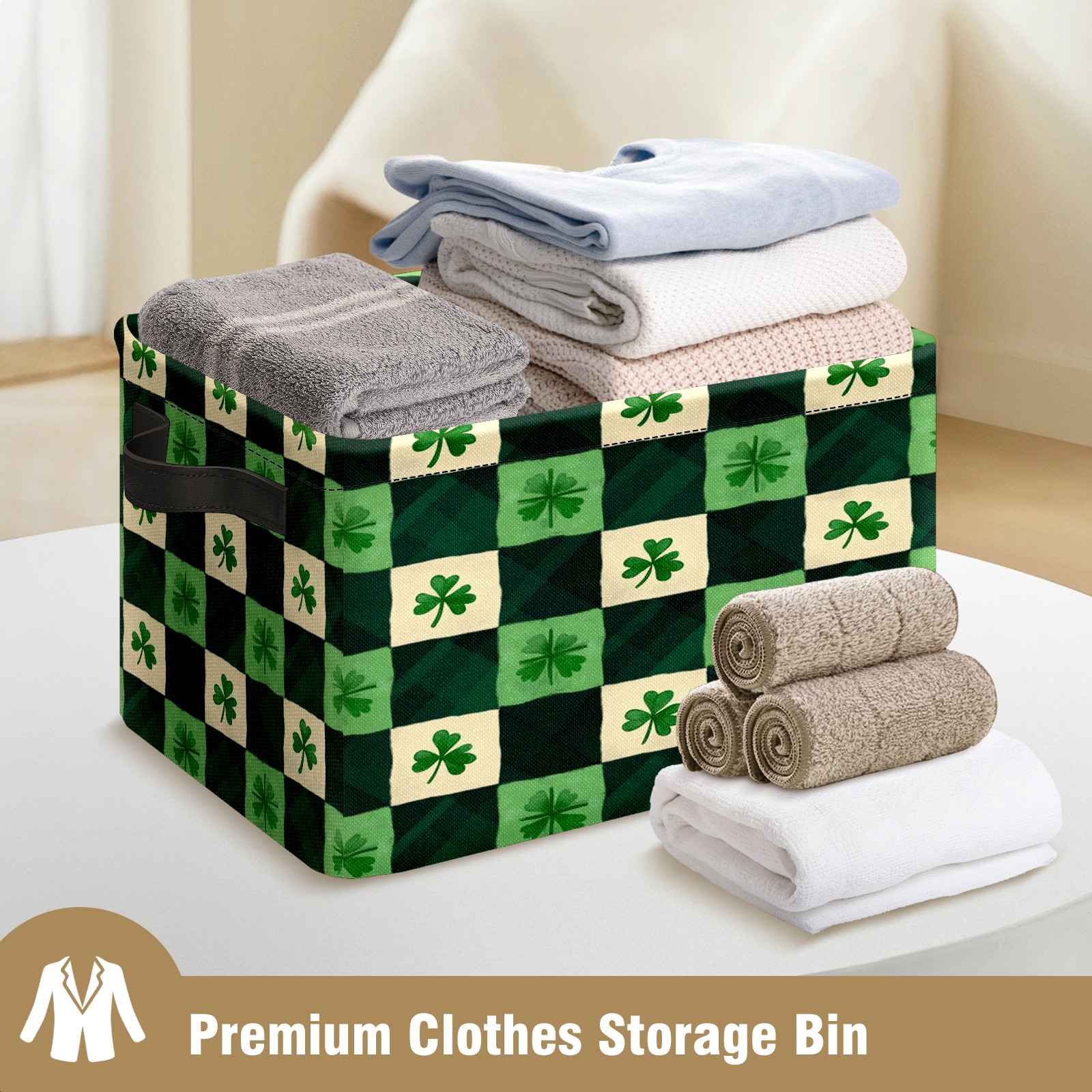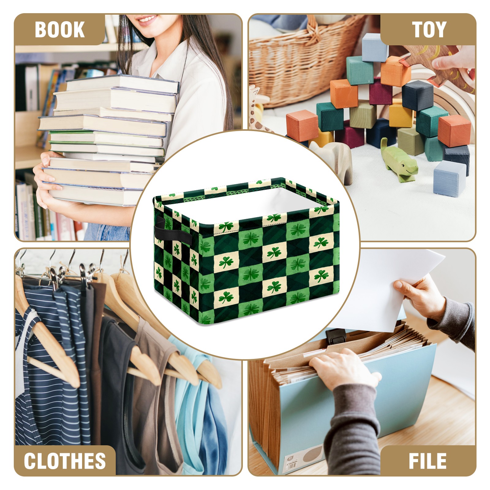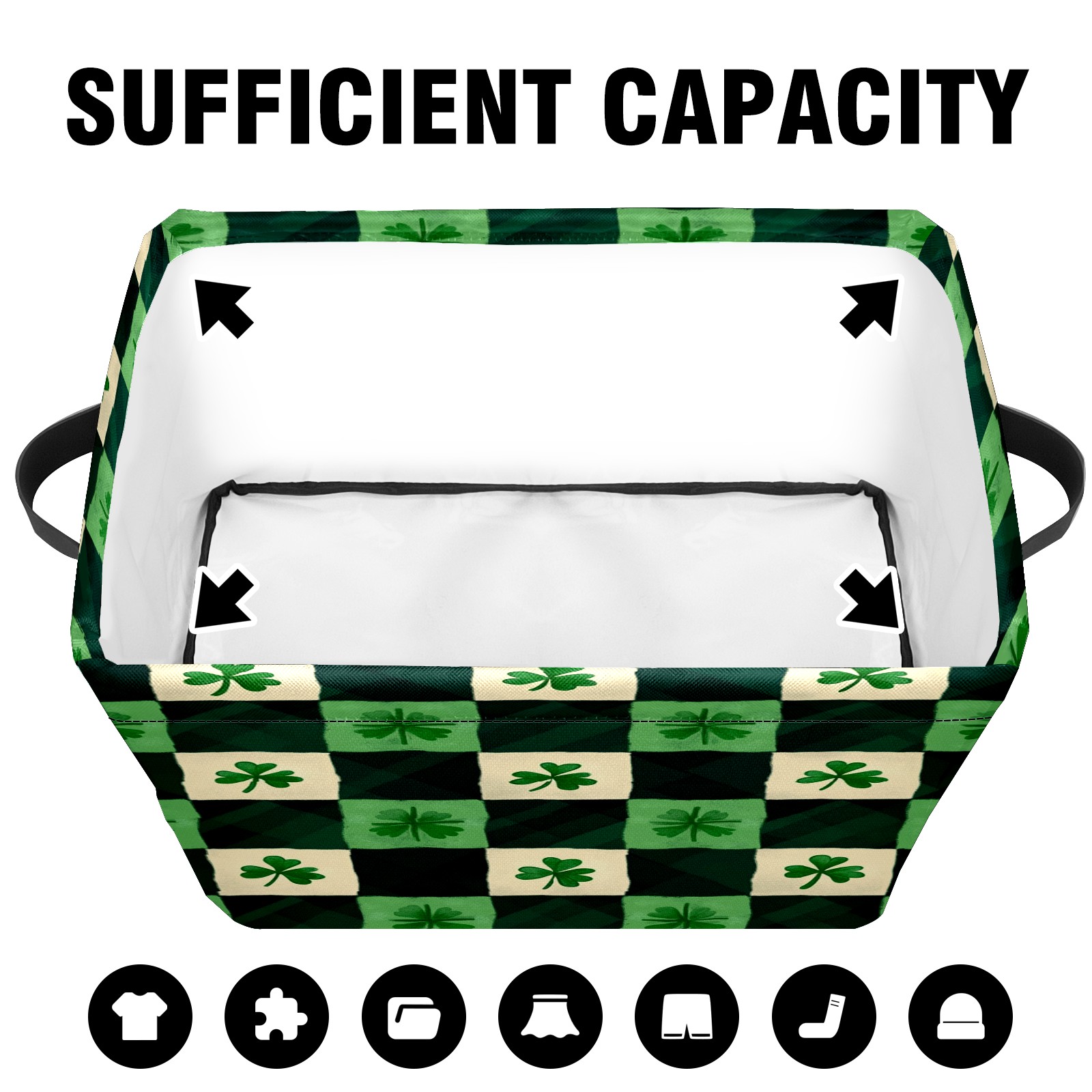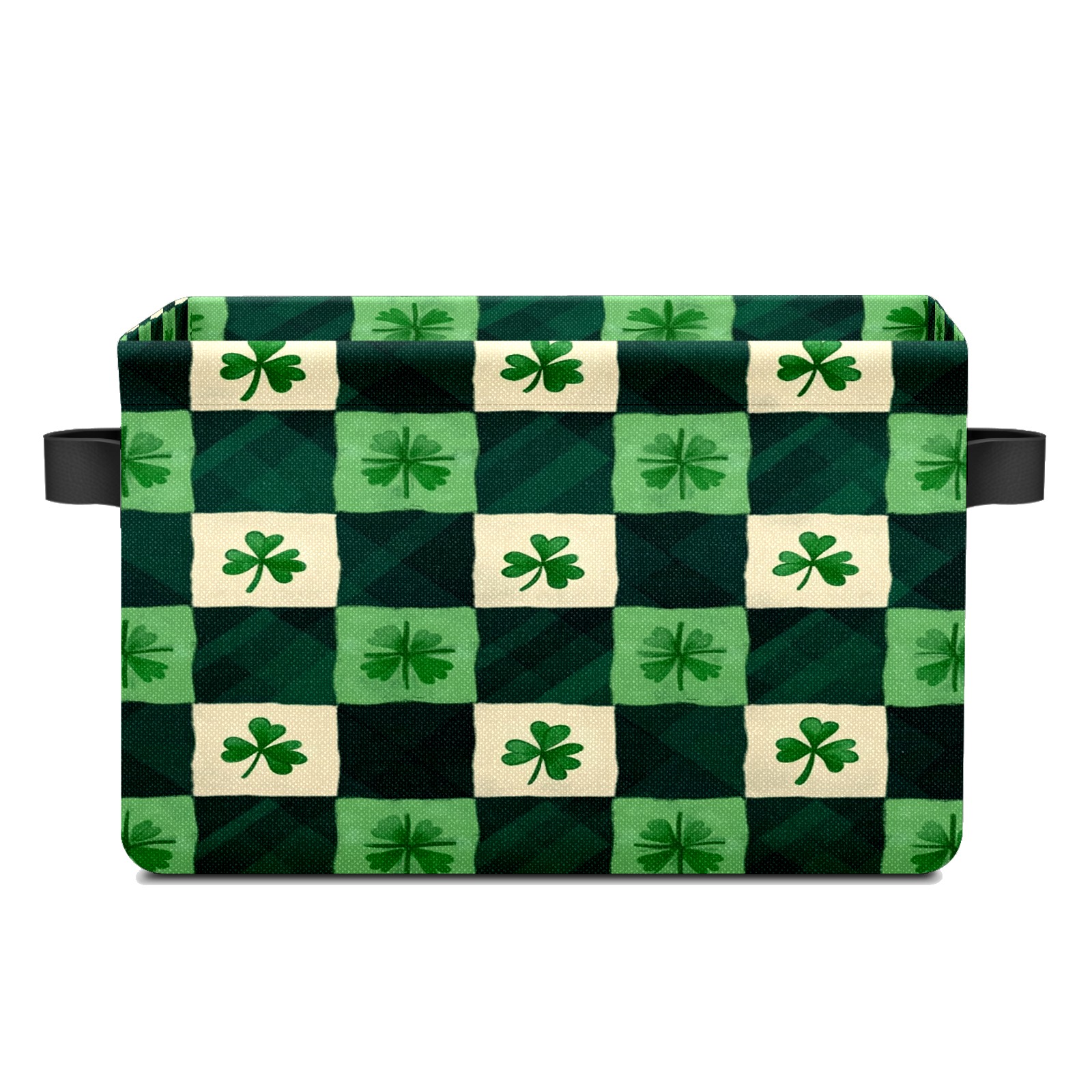 Foldable and Stackable Fabric Storage Basket for Home Organization with Handles, Decorative Closet Bins for Shelves and Laundry Storage( St.patricks Day Checkered)