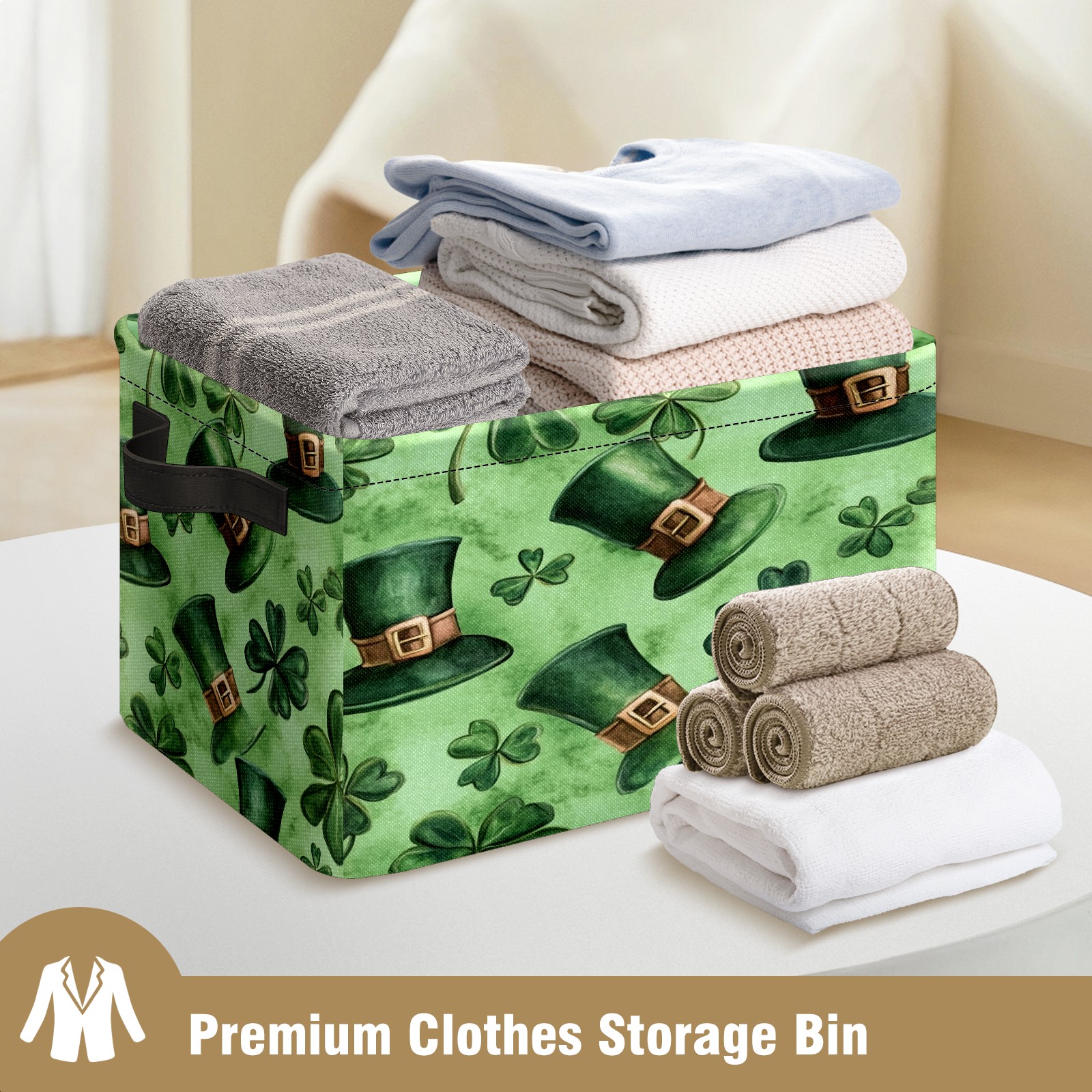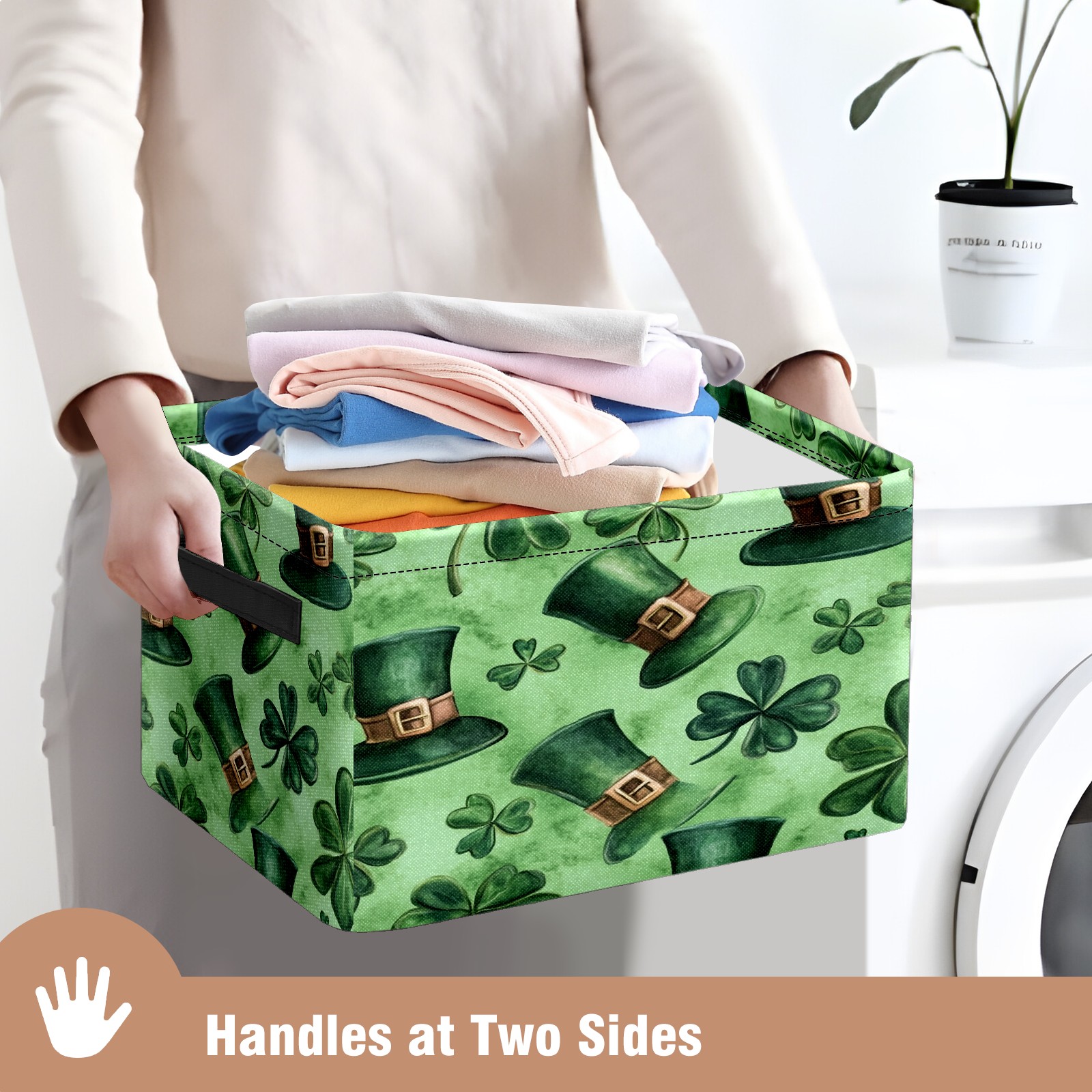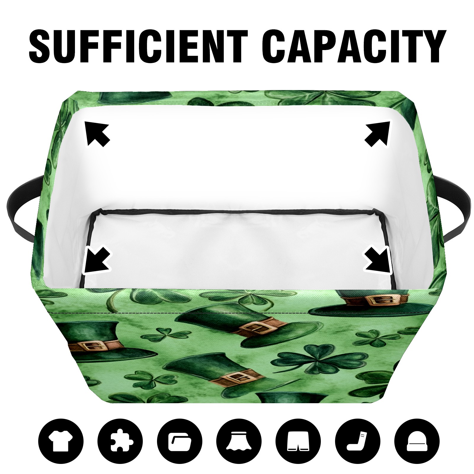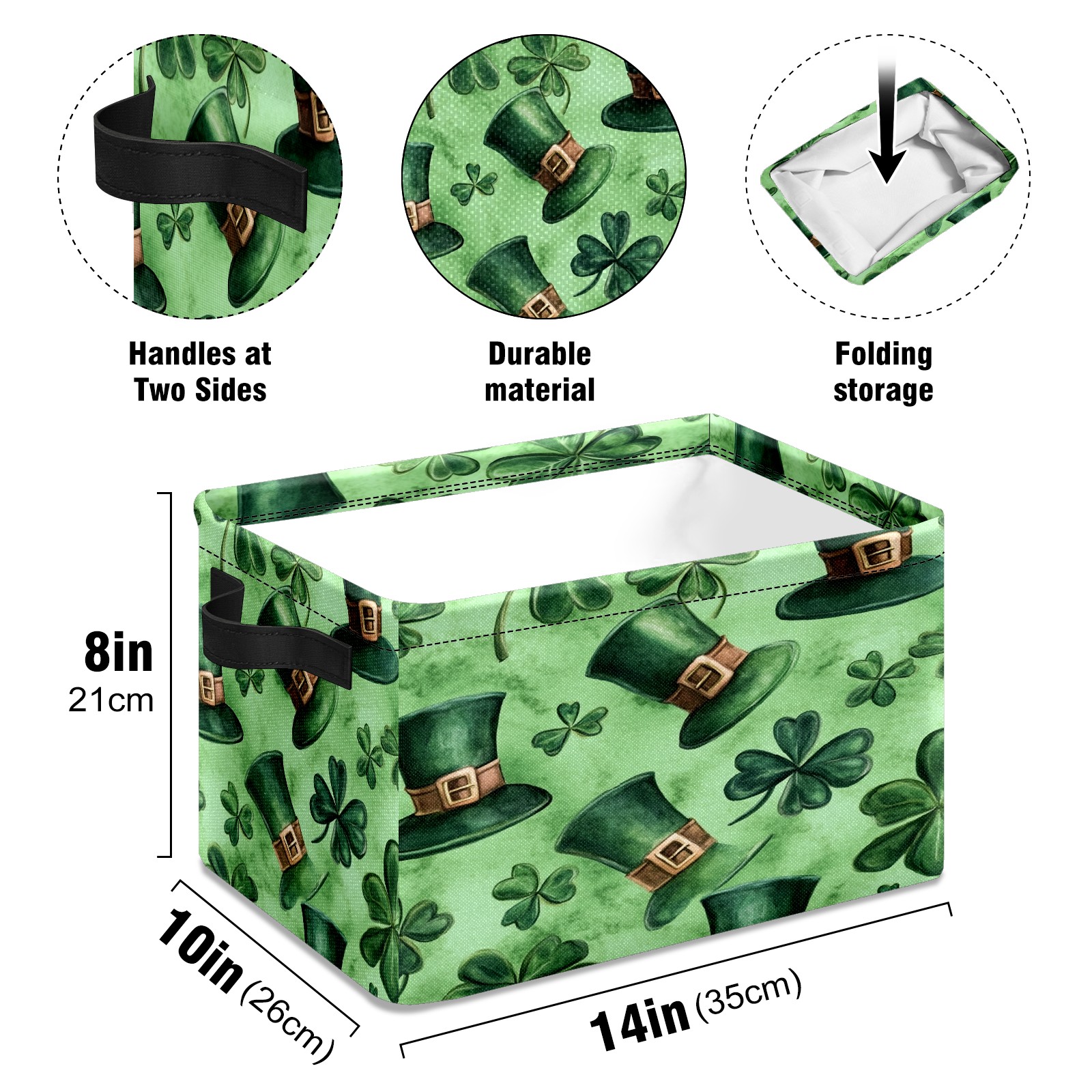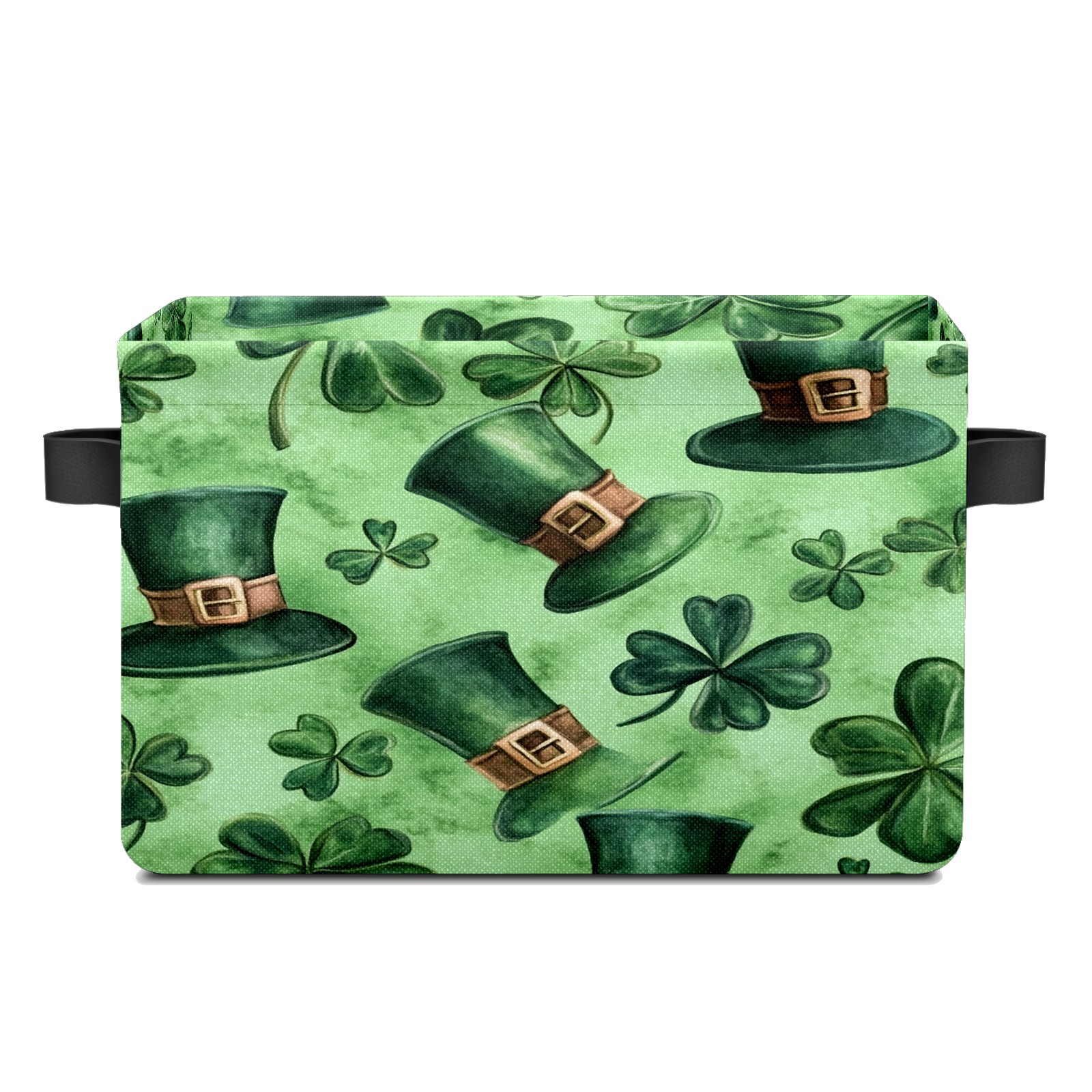 Foldable and Stackable Fabric Storage Basket for Home Organization with Handles, Decorative Closet Bins for Shelves and Laundry Storage( Watercolor Shamrock Hats)