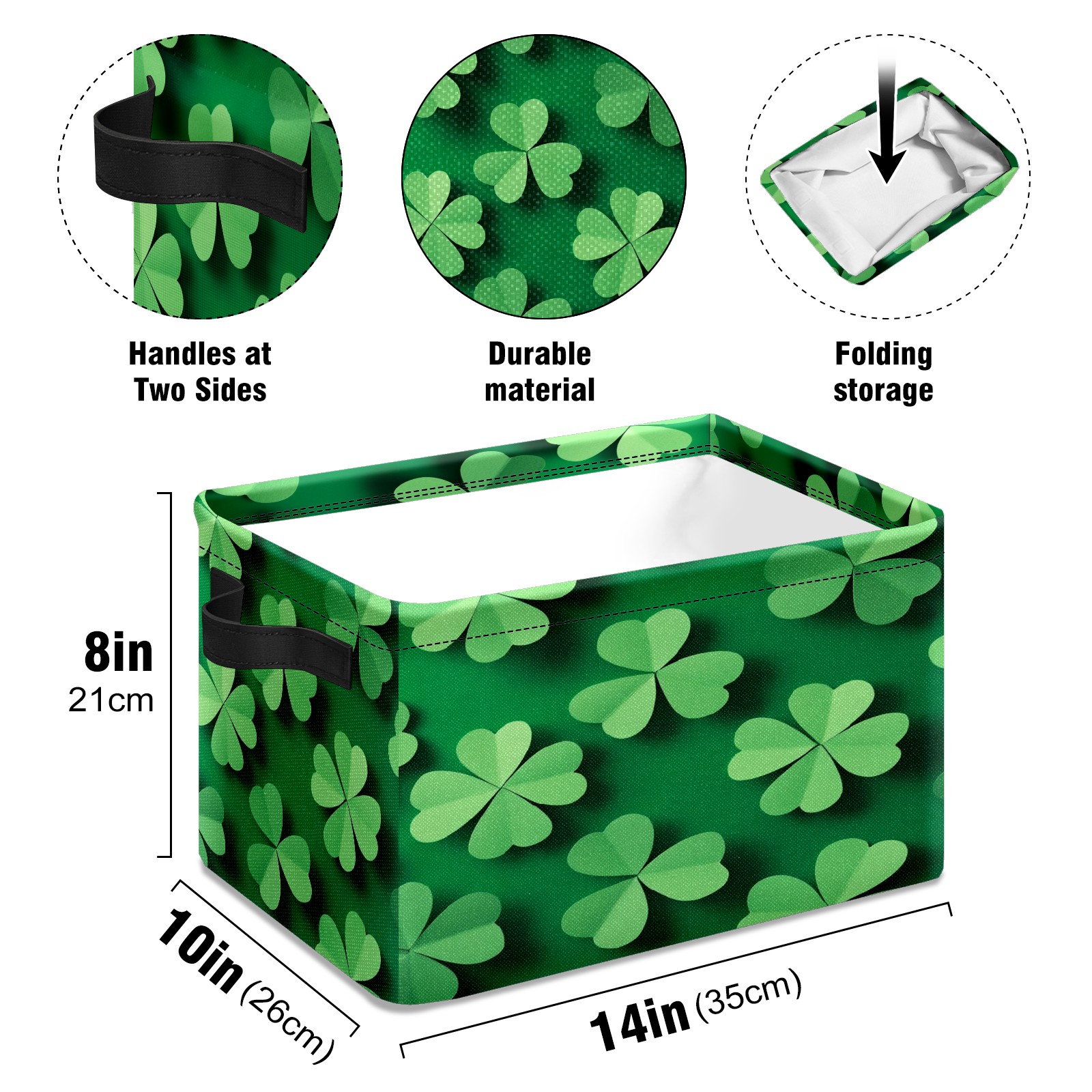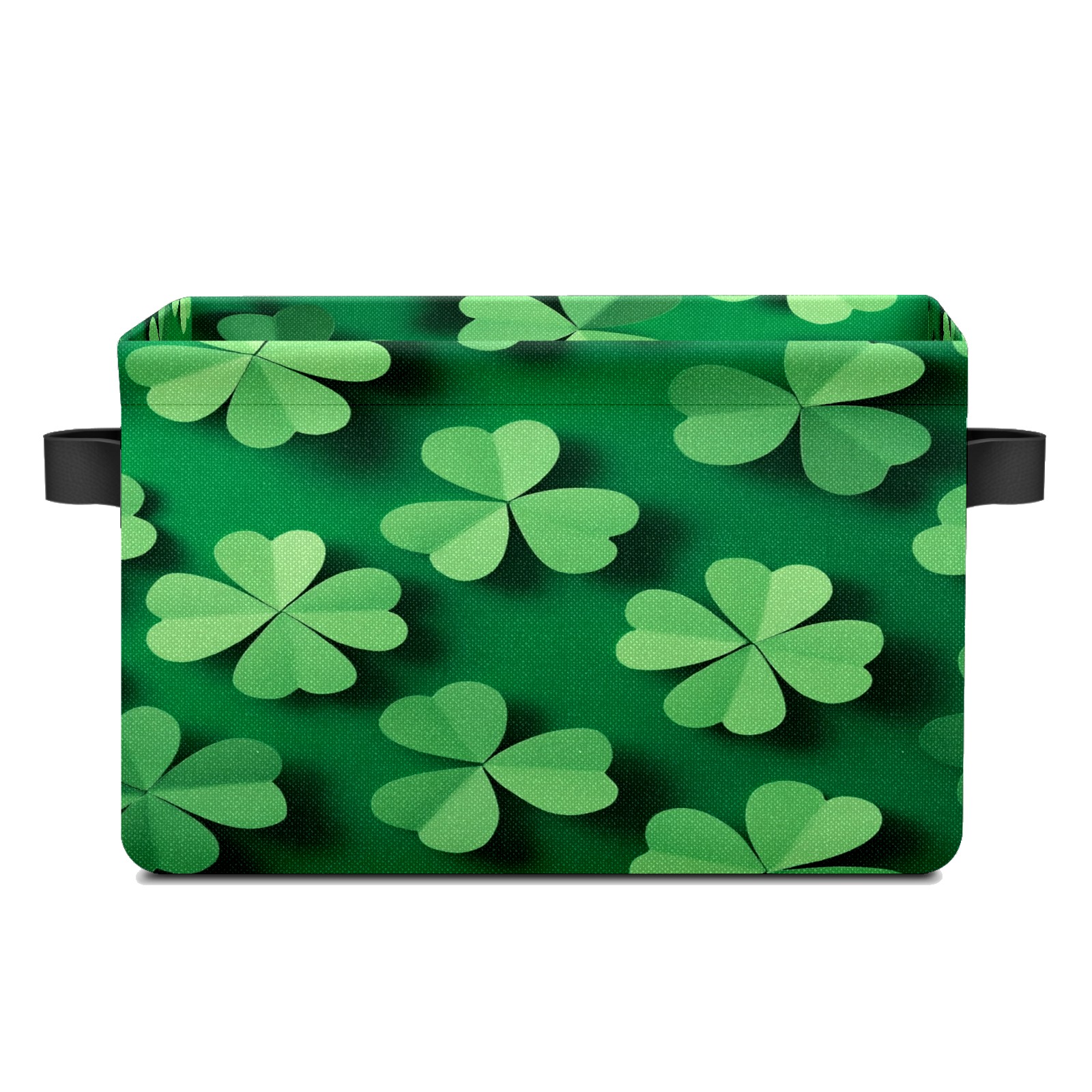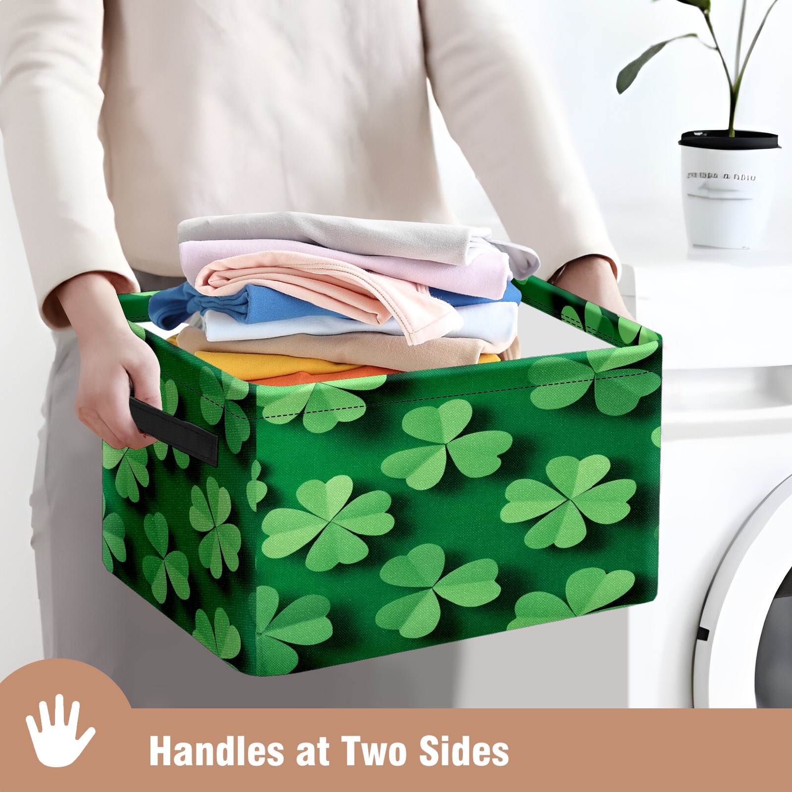 Foldable and Stackable Fabric Storage Basket for Home Organization with Handles, Decorative Closet Bins for Shelves and Laundry Storage( Green Shamrock)