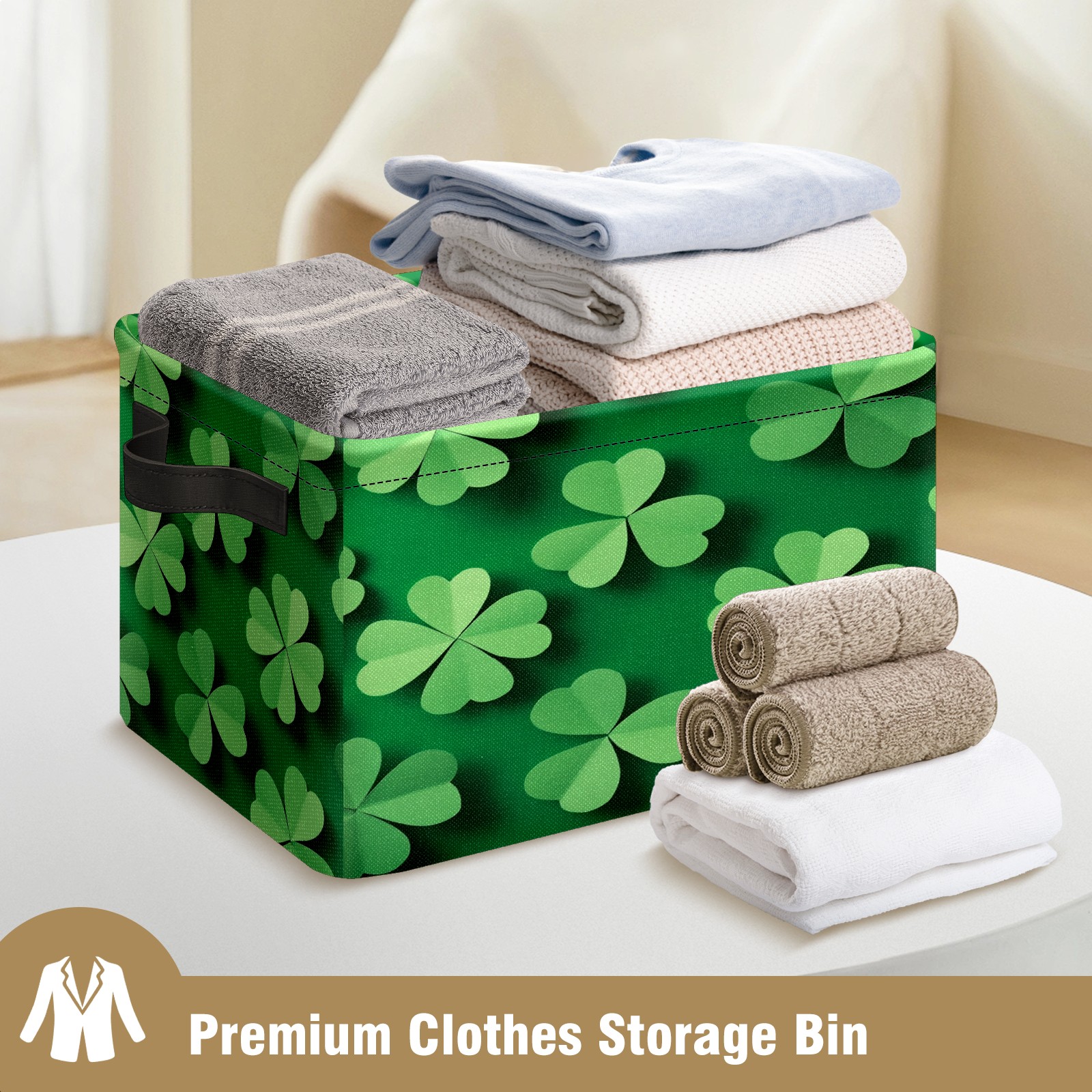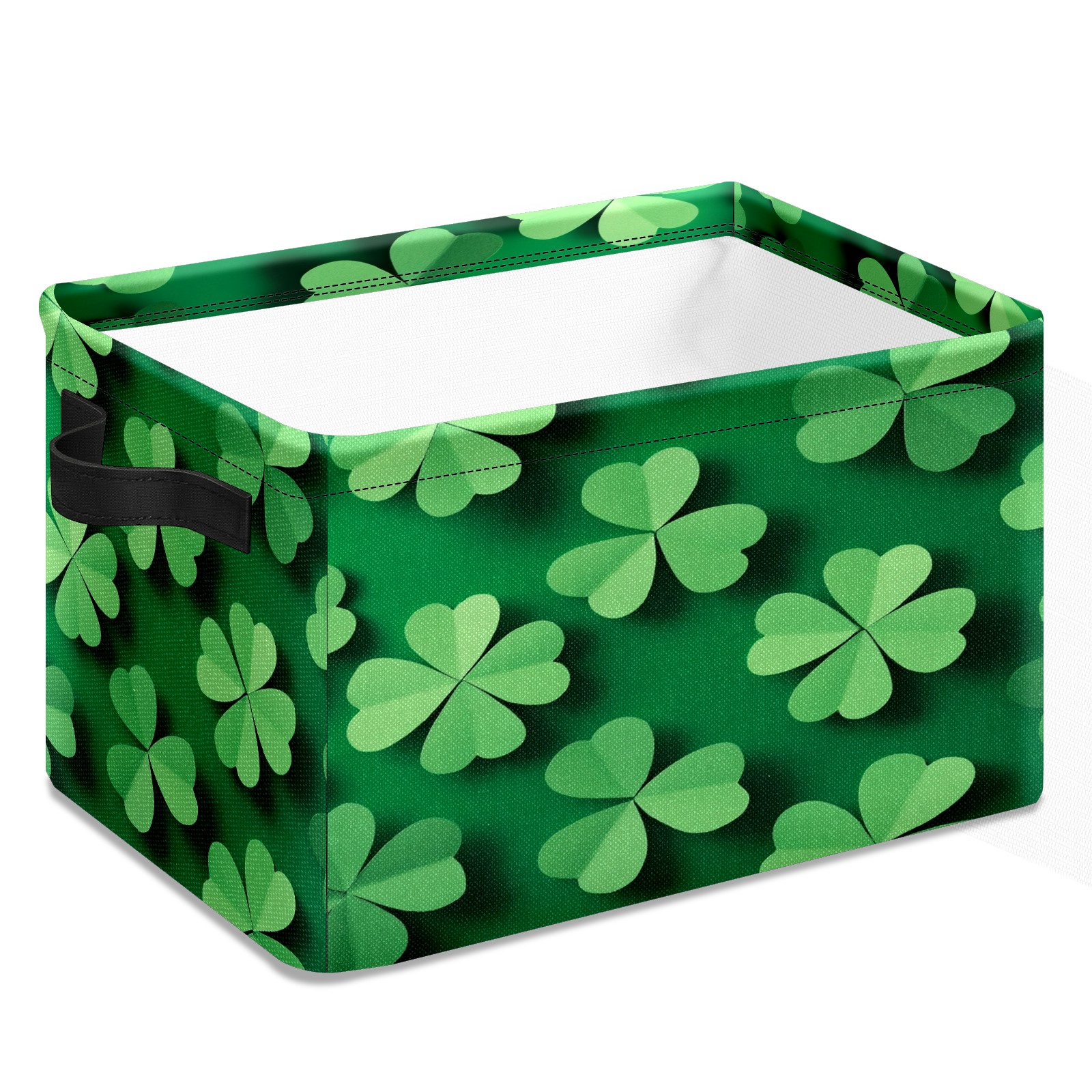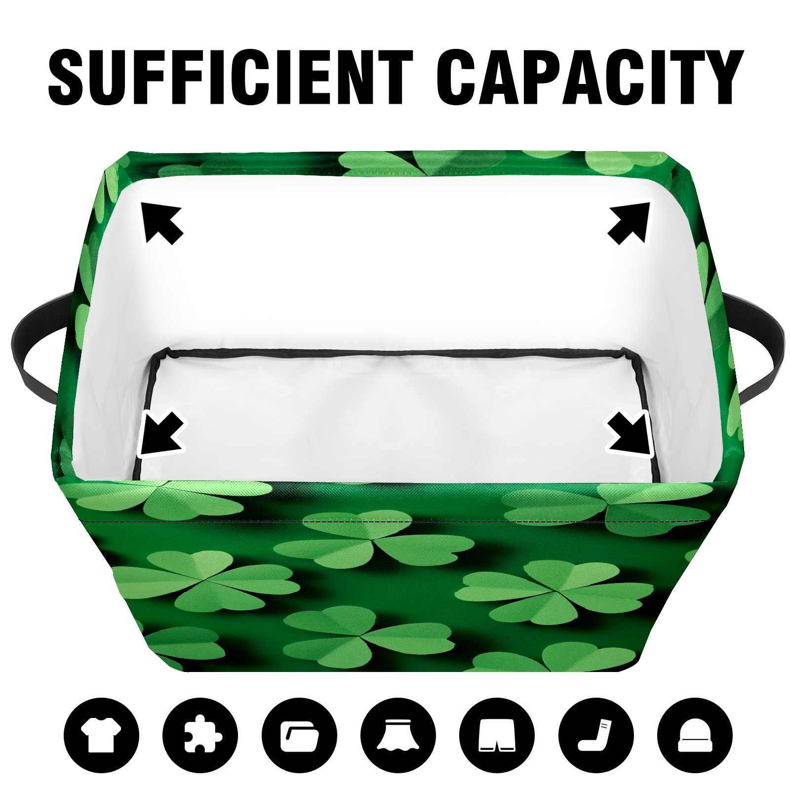 Foldable and Stackable Fabric Storage Basket for Home Organization with Handles, Decorative Closet Bins for Shelves and Laundry Storage( Green Shamrock)