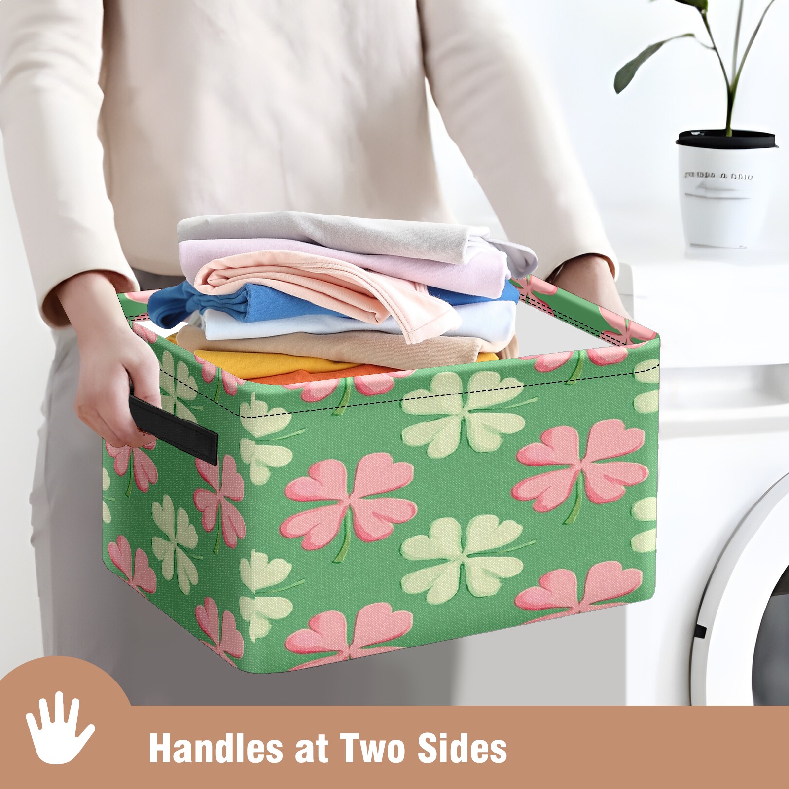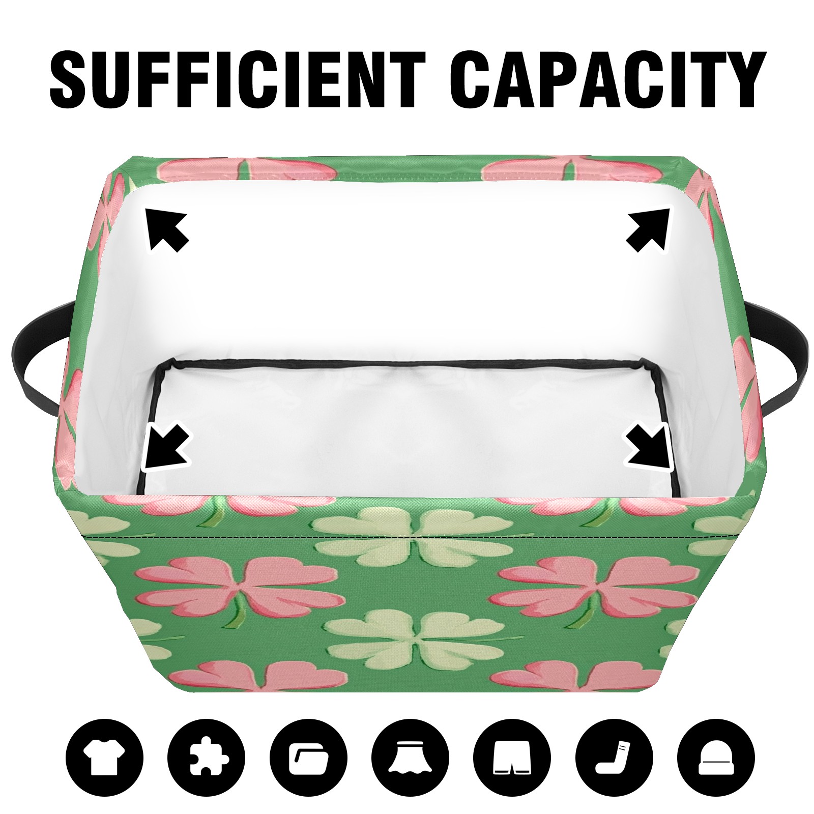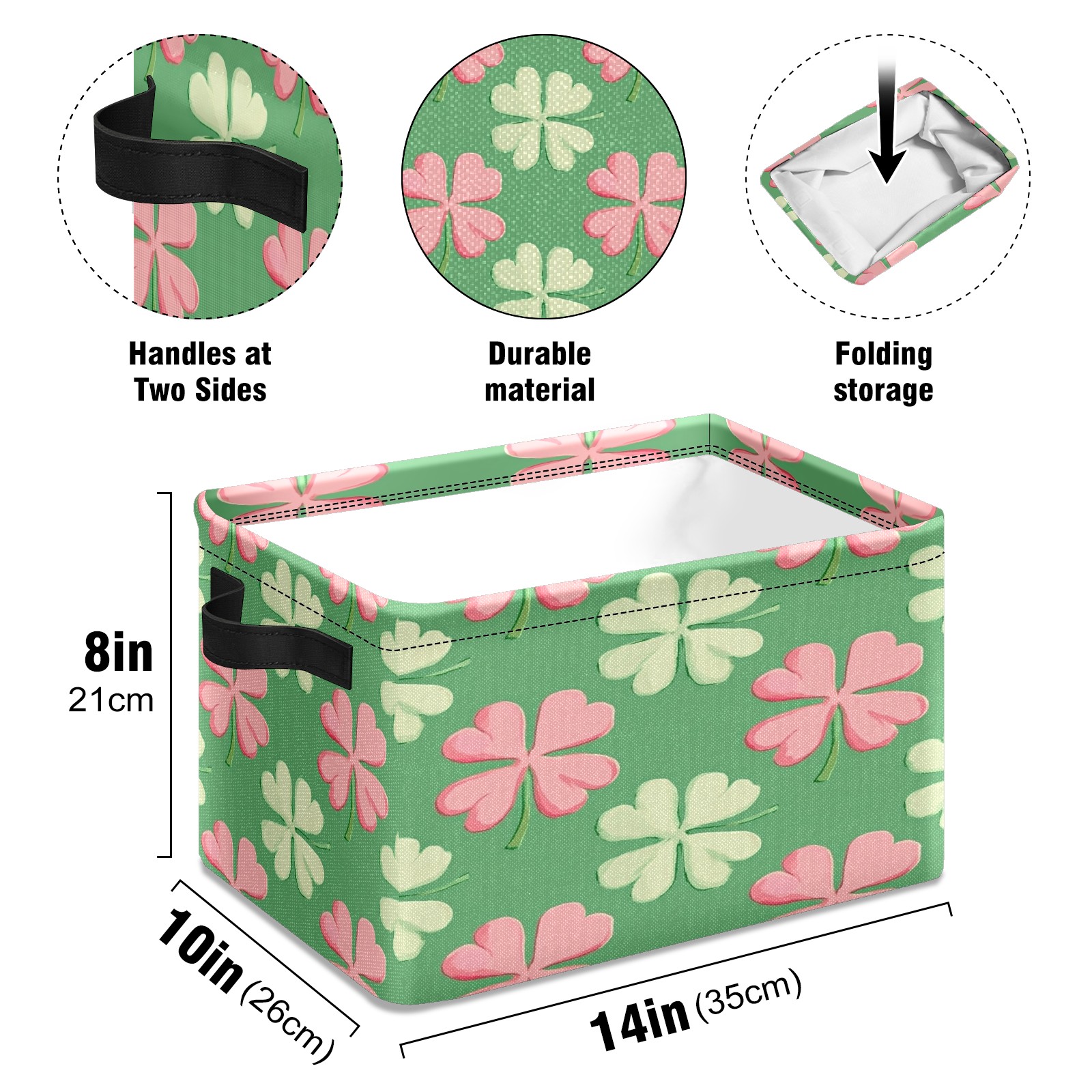 Foldable and Stackable Fabric Storage Basket for Home Organization with Handles, Decorative Closet Bins for Shelves and Laundry Storage( Shamrocks With Pink Stripes)