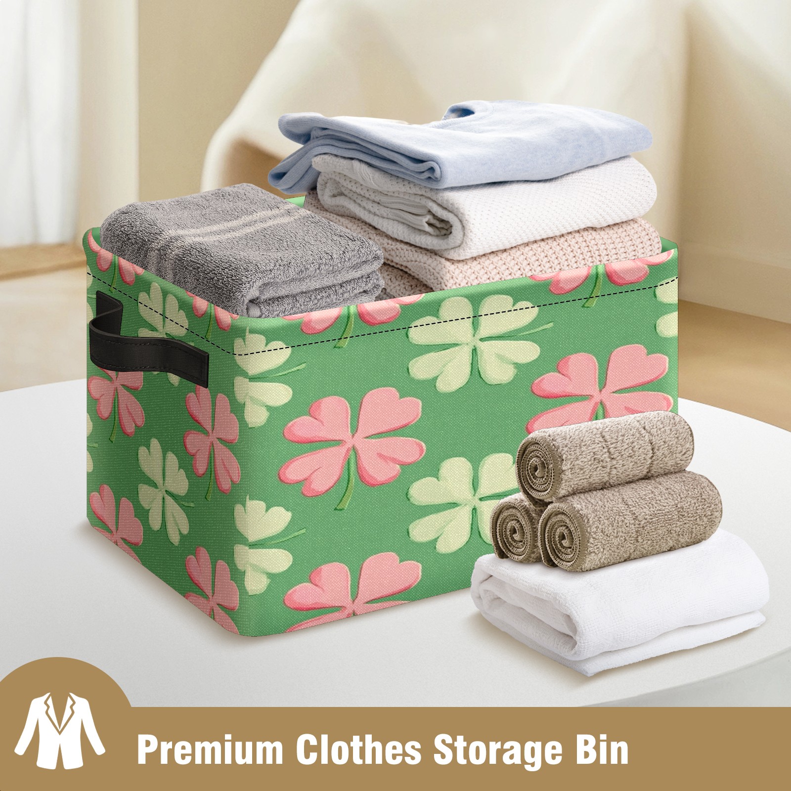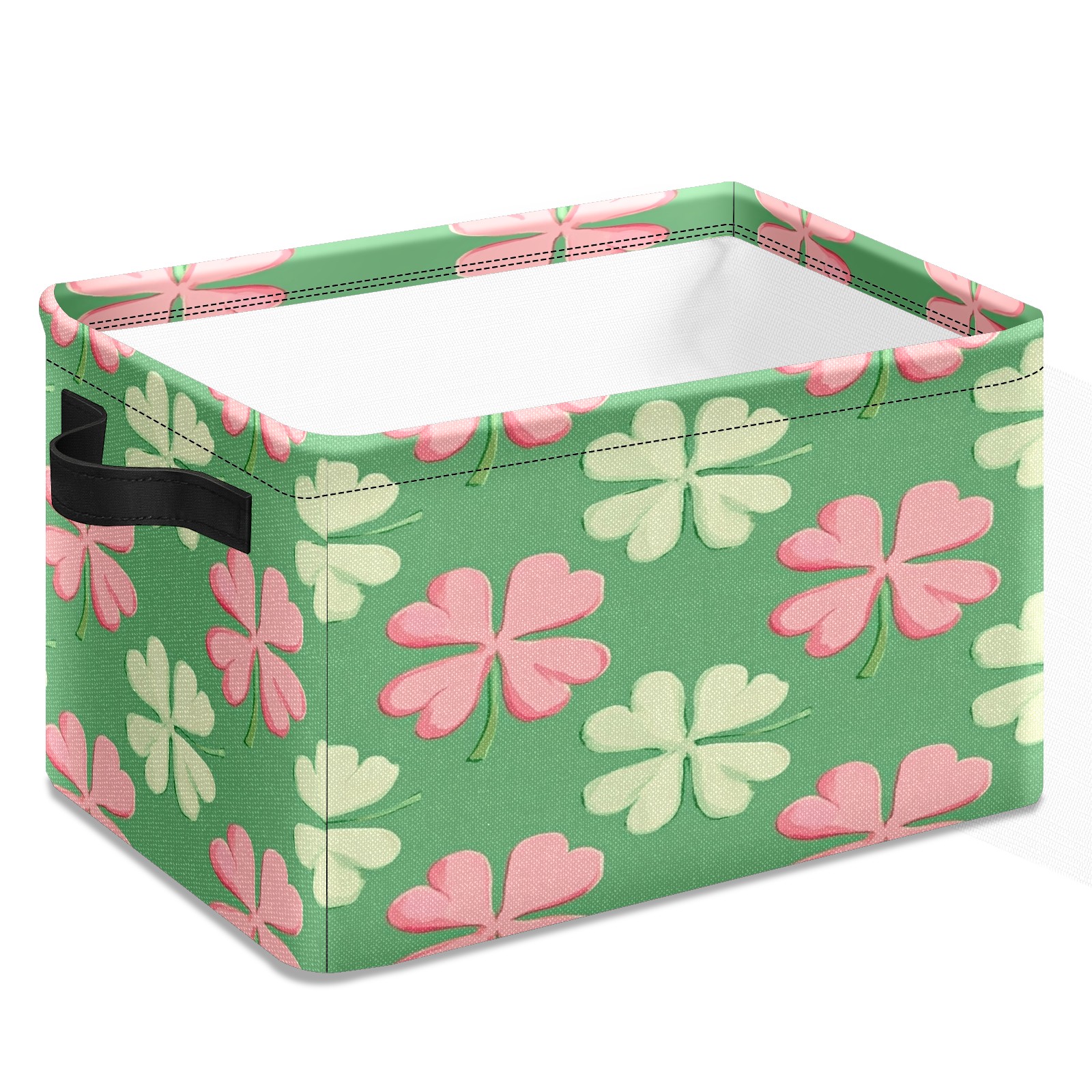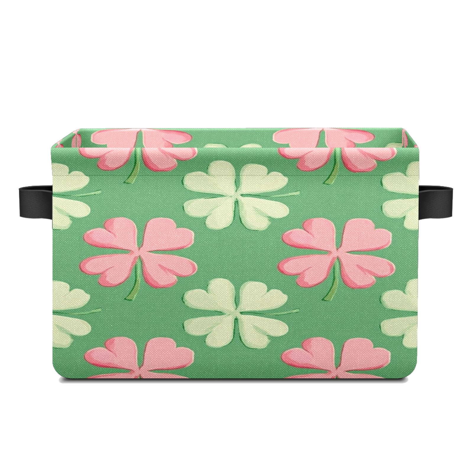 Foldable and Stackable Fabric Storage Basket for Home Organization with Handles, Decorative Closet Bins for Shelves and Laundry Storage( Shamrocks With Pink Stripes)