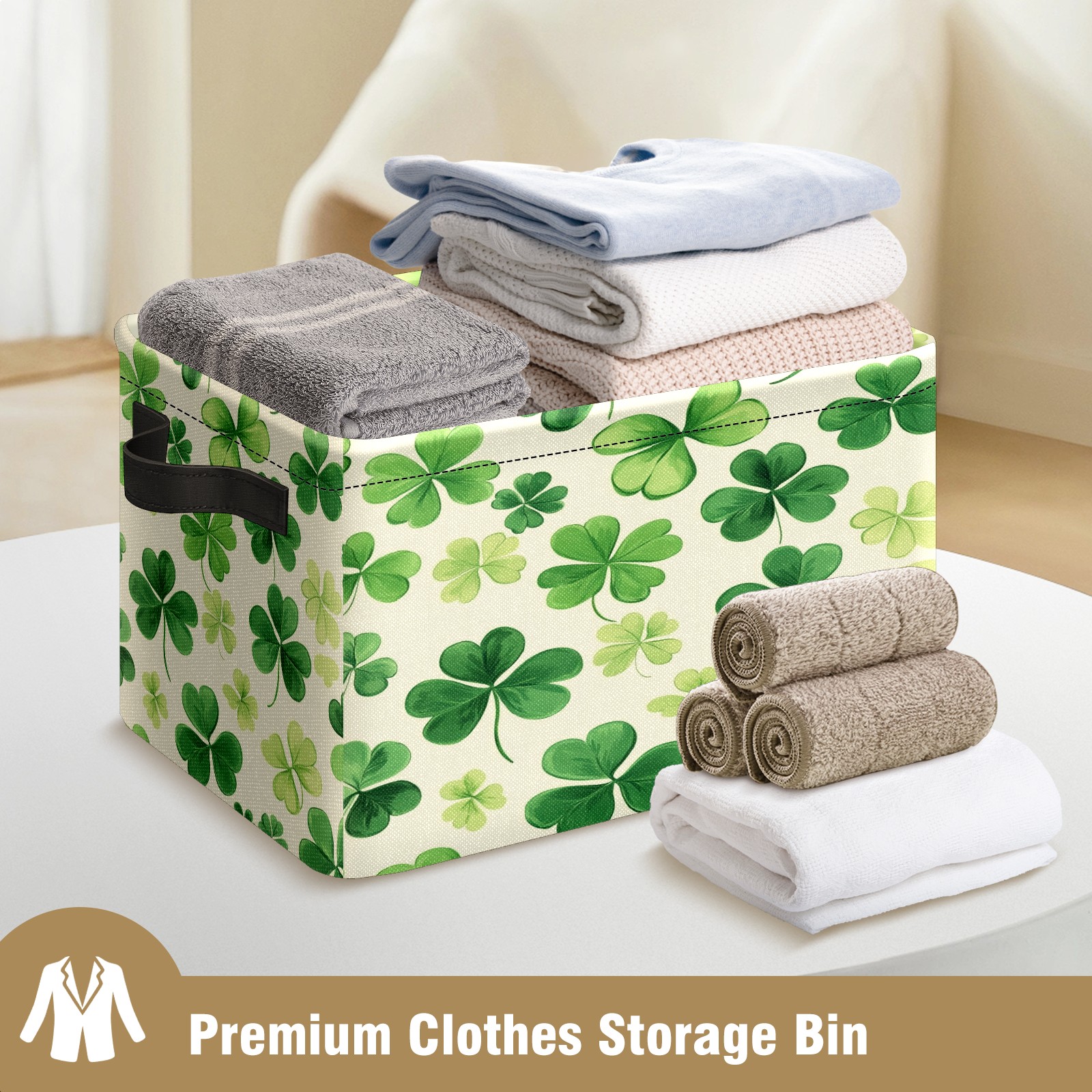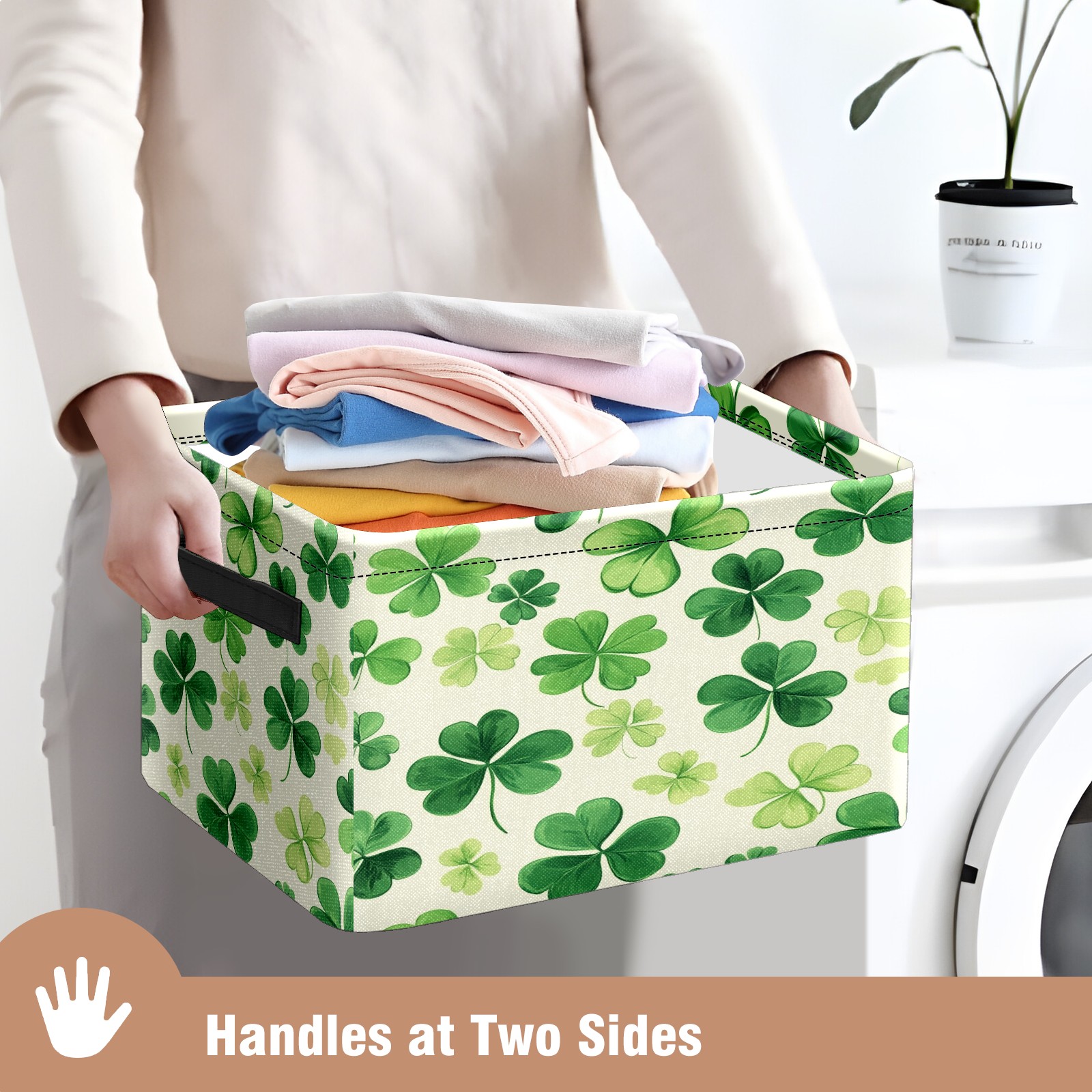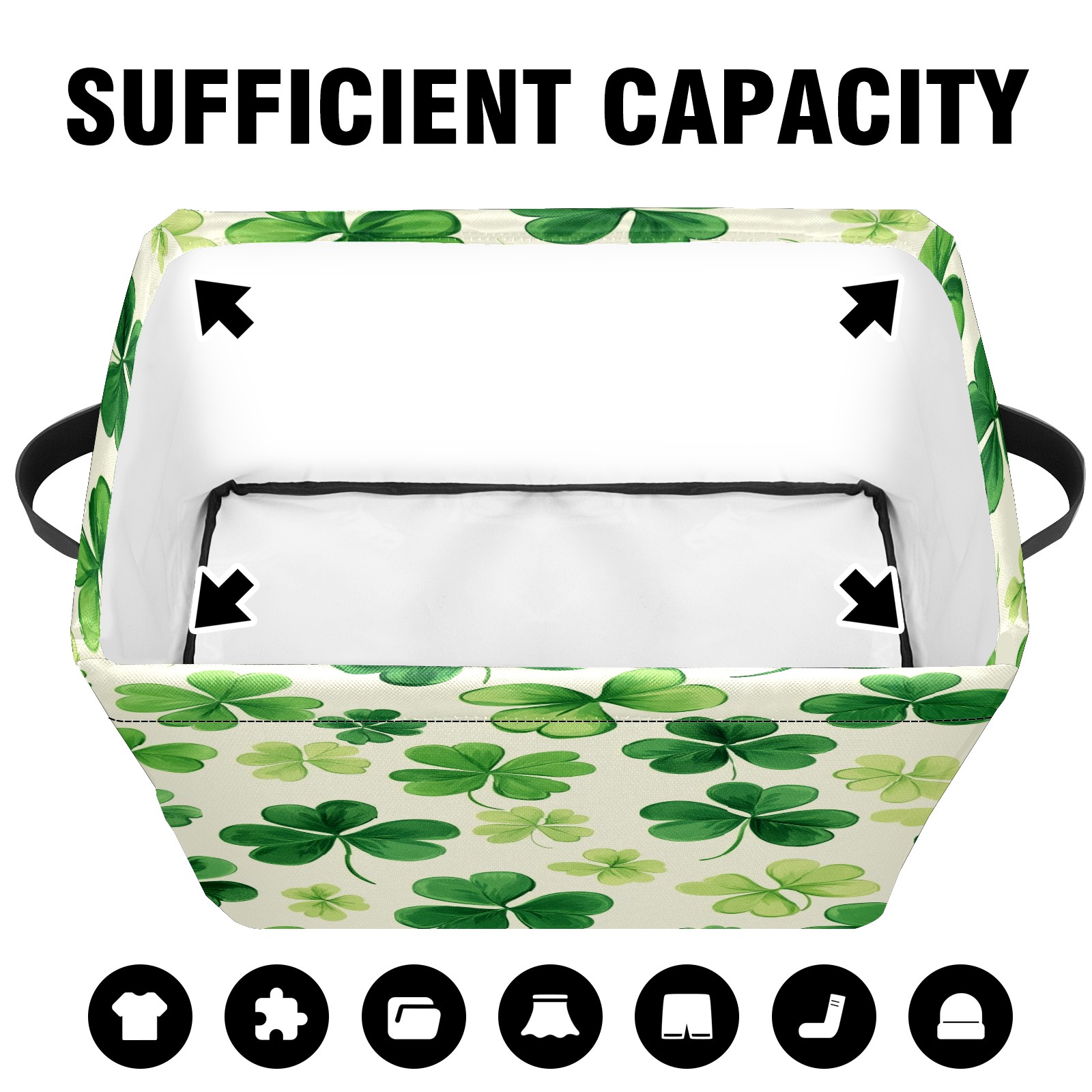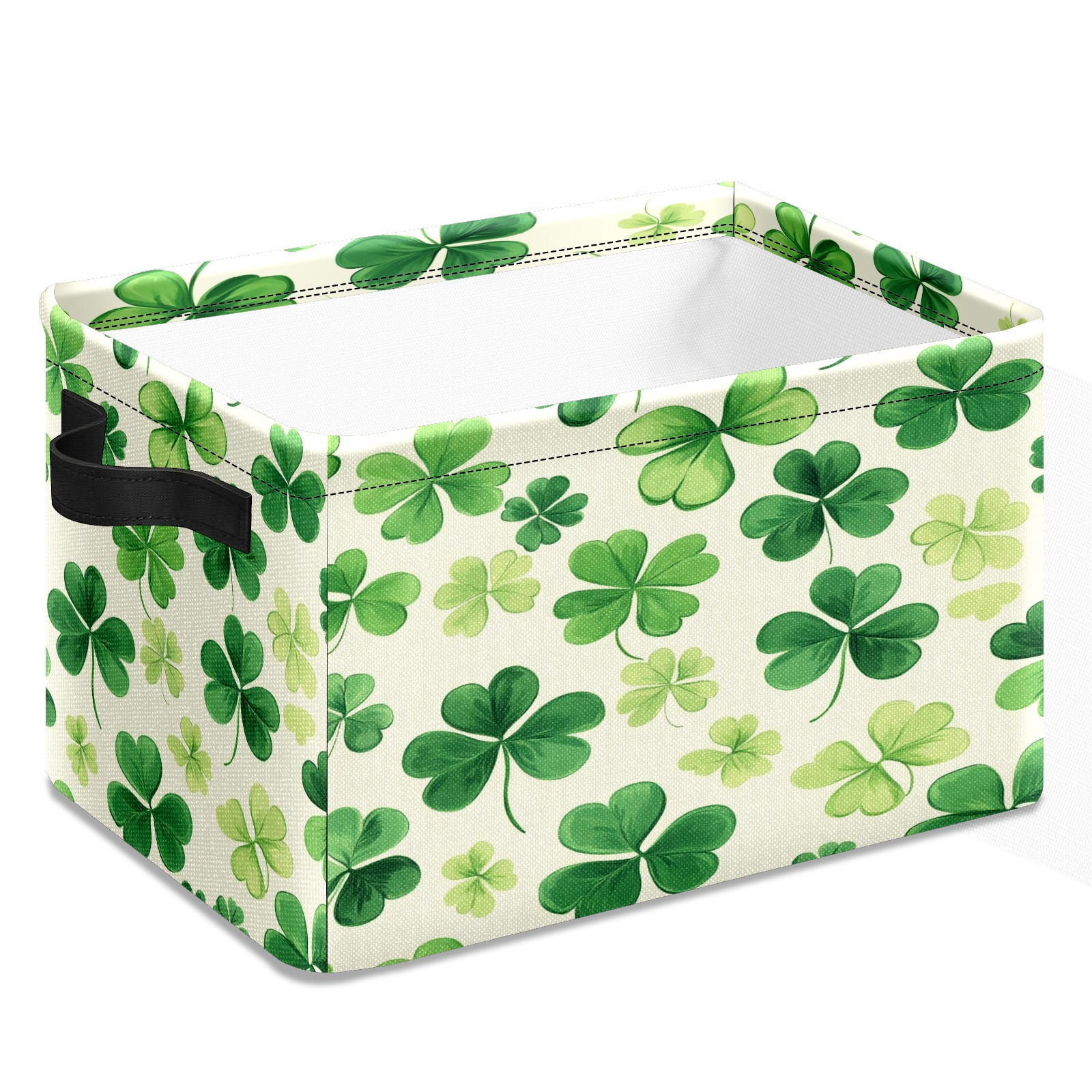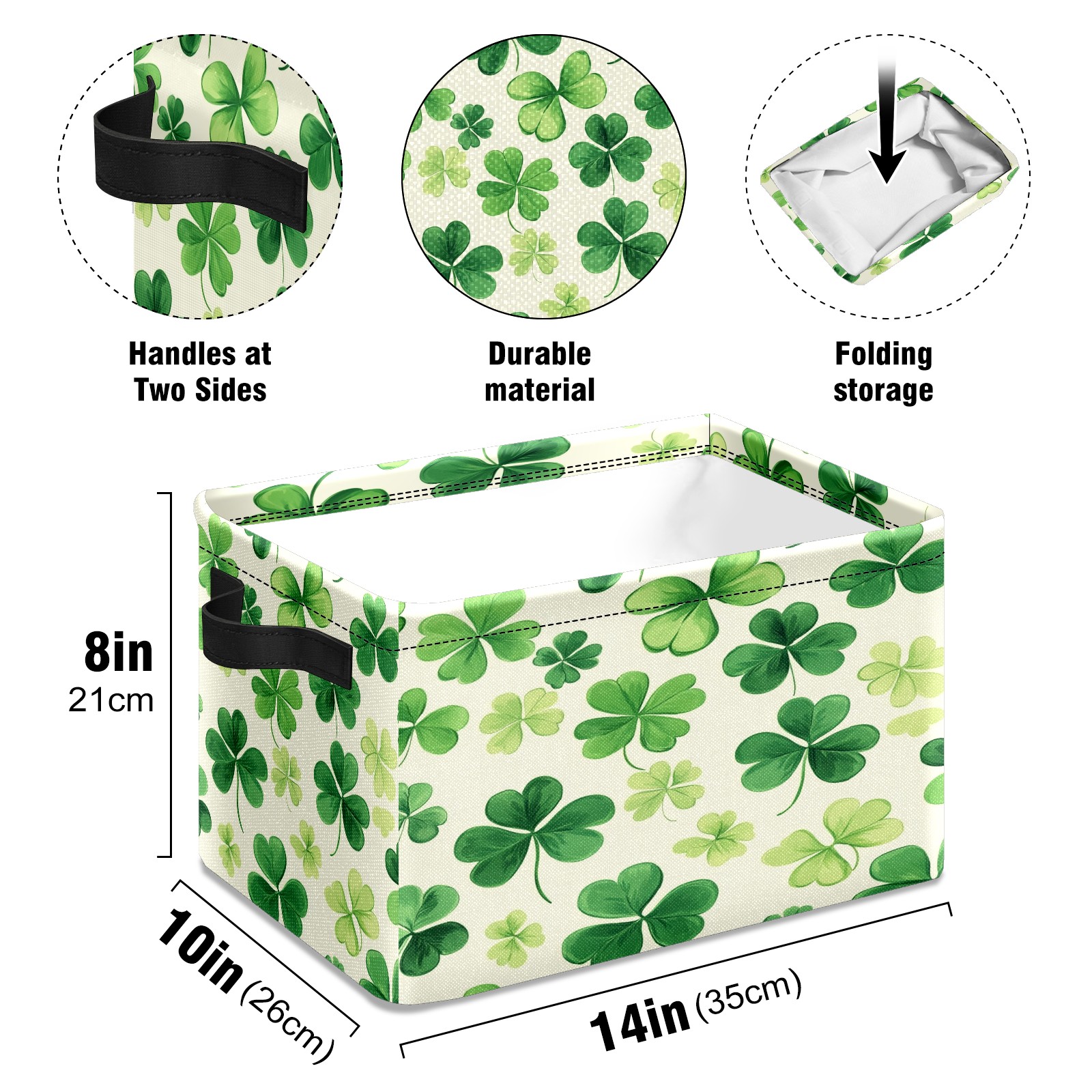 Foldable and Stackable Fabric Storage Basket for Home Organization with Handles, Decorative Closet Bins for Shelves and Laundry Storage( Shamrocks)