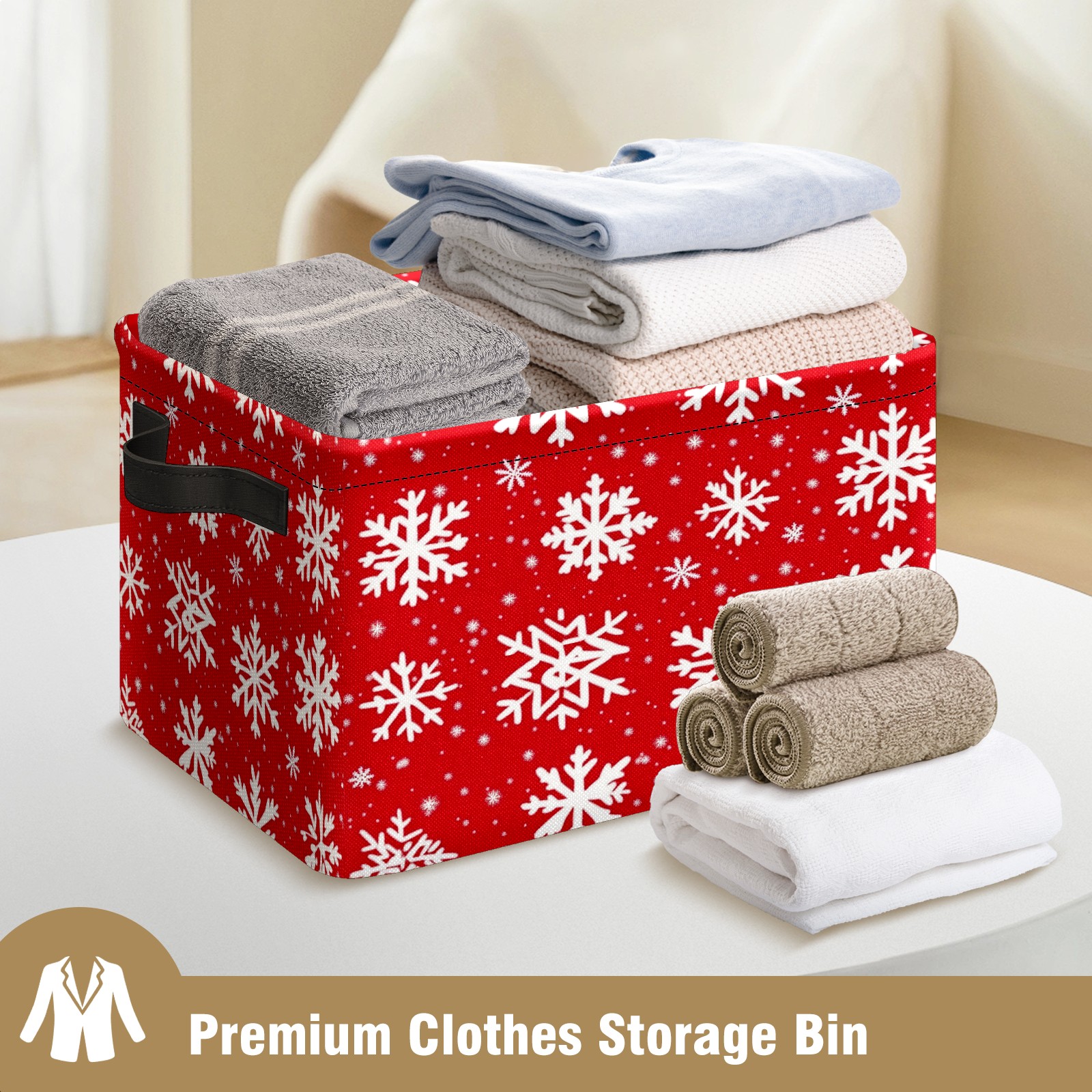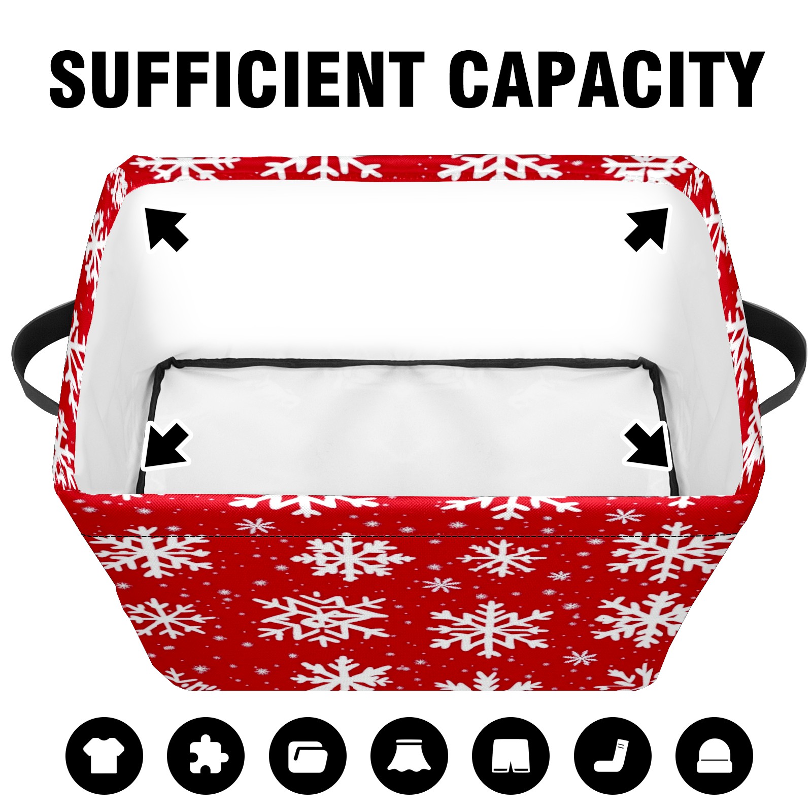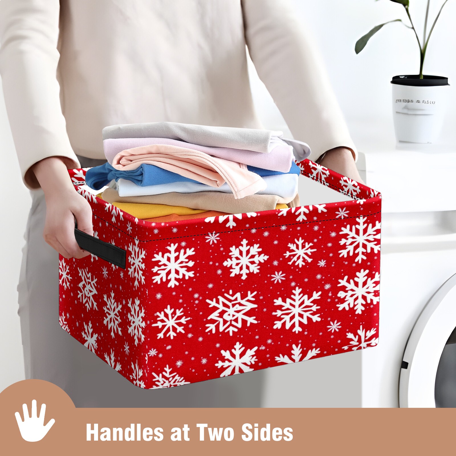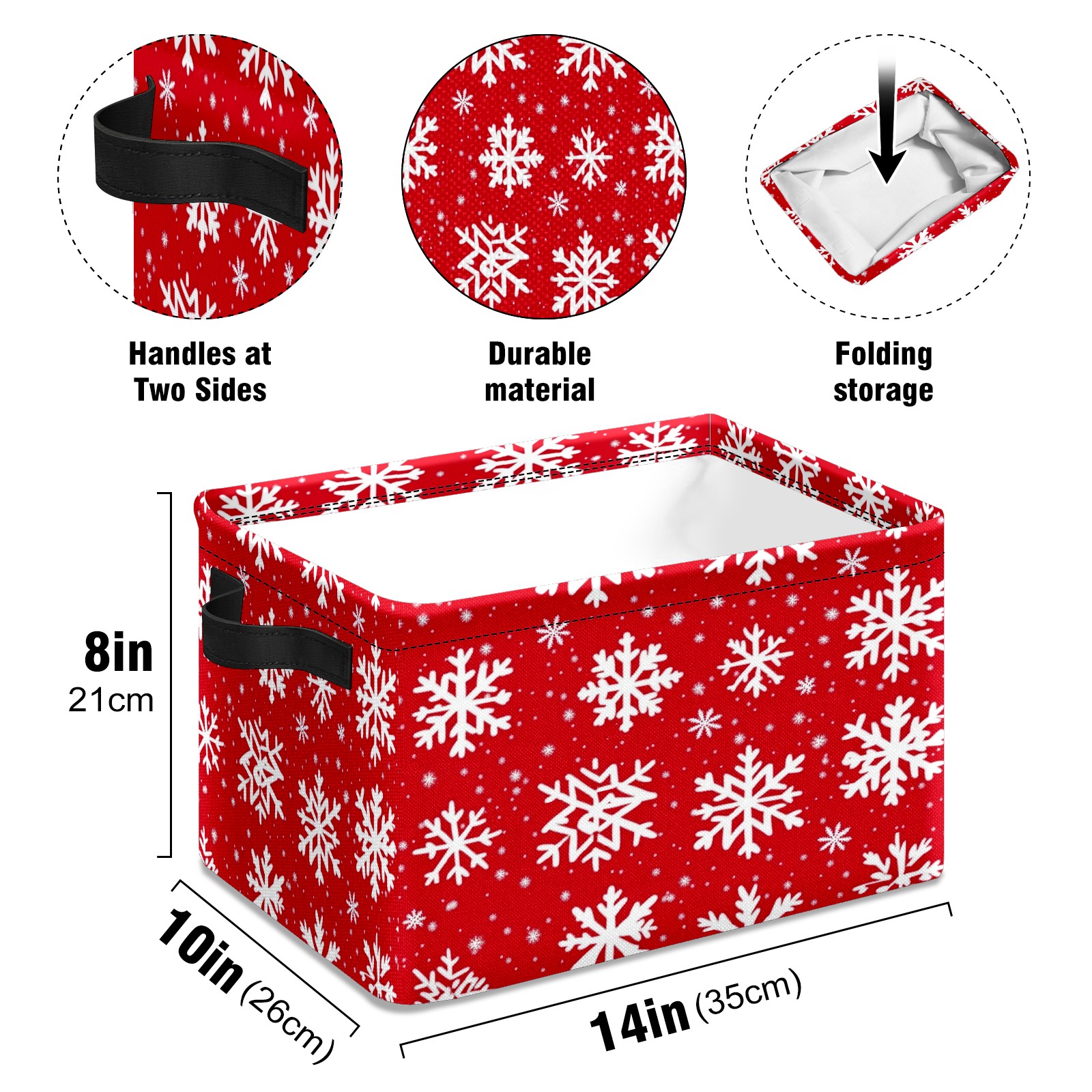 Foldable and Stackable Fabric Storage Basket for Home Organization with Handles, Decorative Closet Bins for Shelves and Laundry Storage( White Snowflakes)