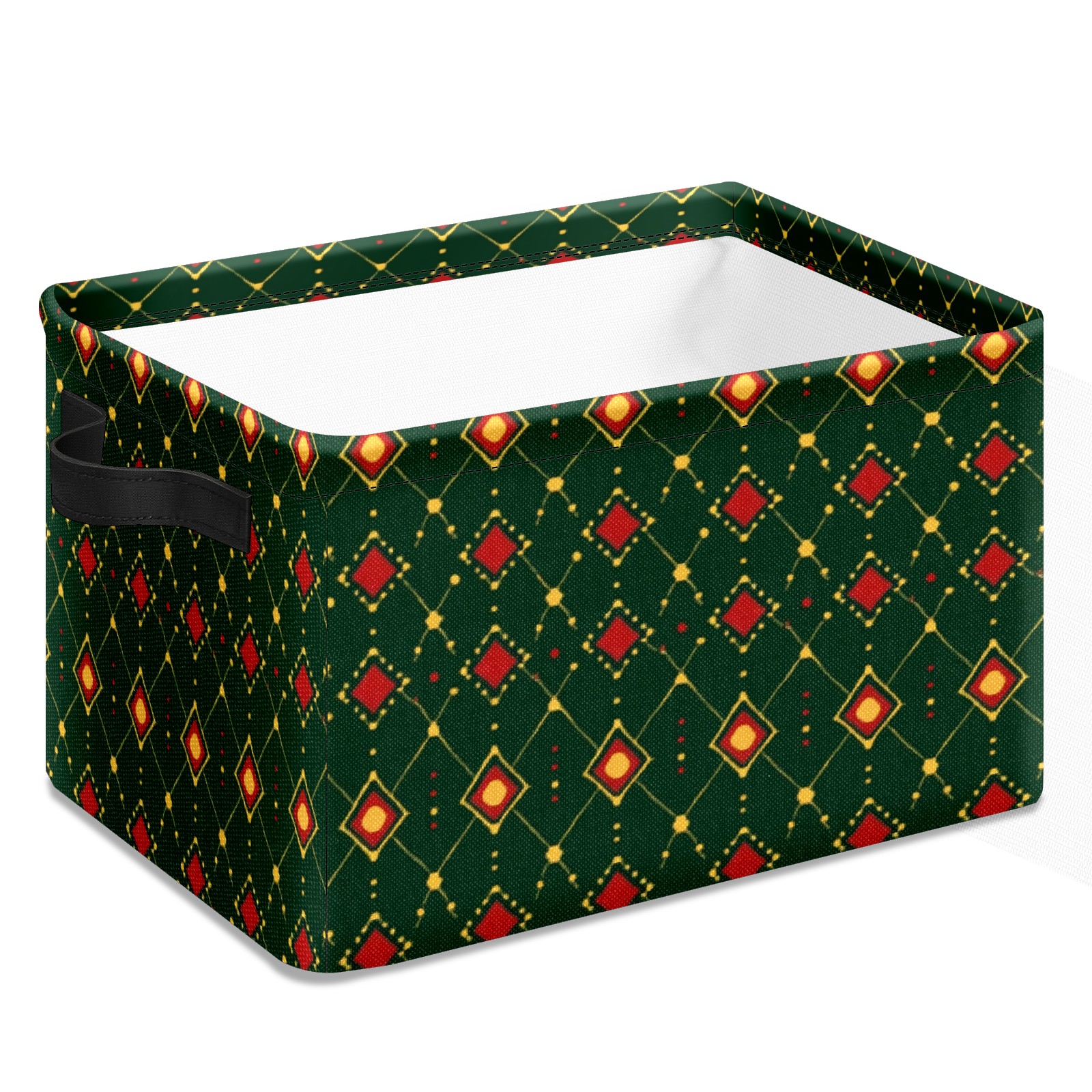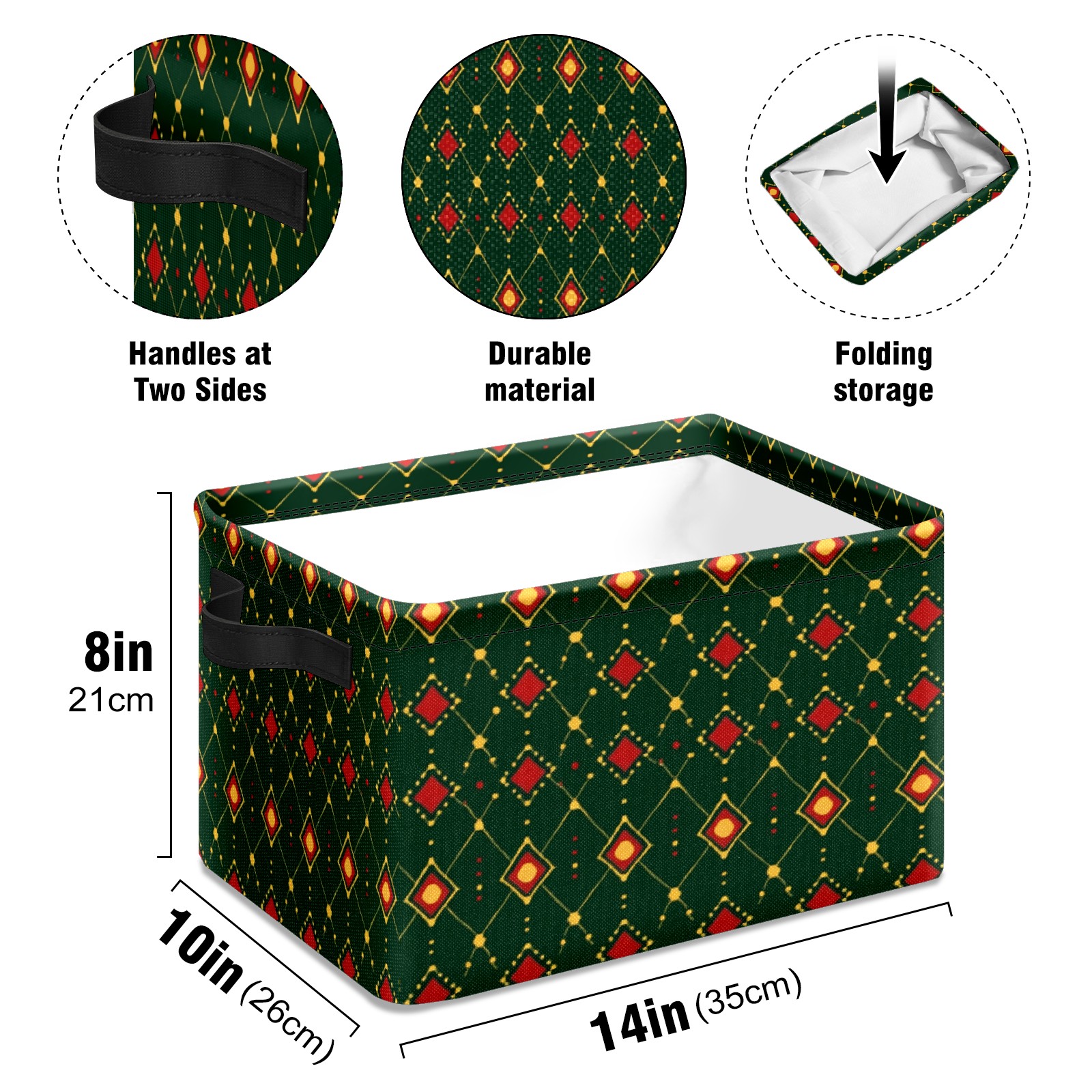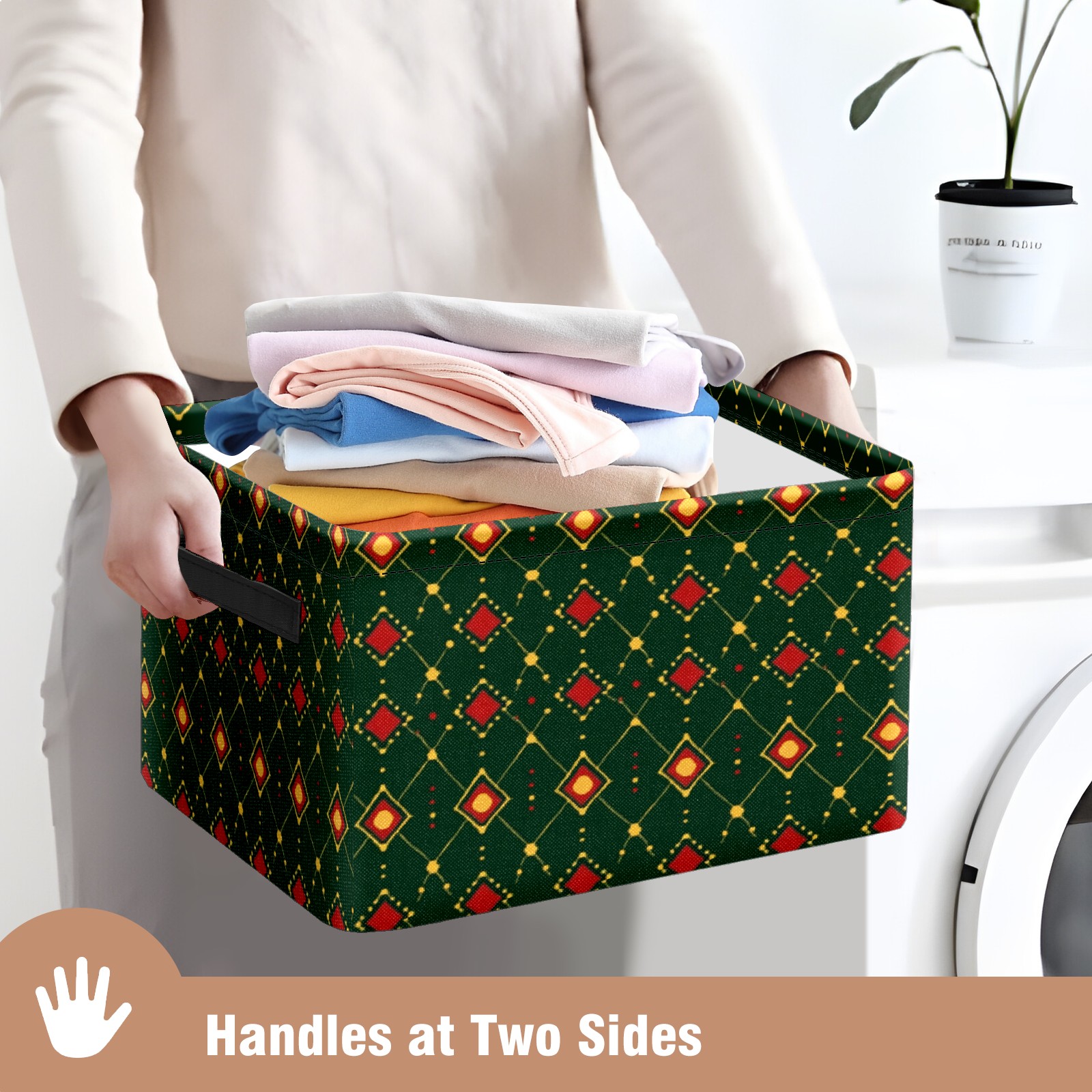 Foldable and Stackable Fabric Storage Basket for Home Organization with Handles, Decorative Closet Bins for Shelves and Laundry Storage( Green And Red Christmas)