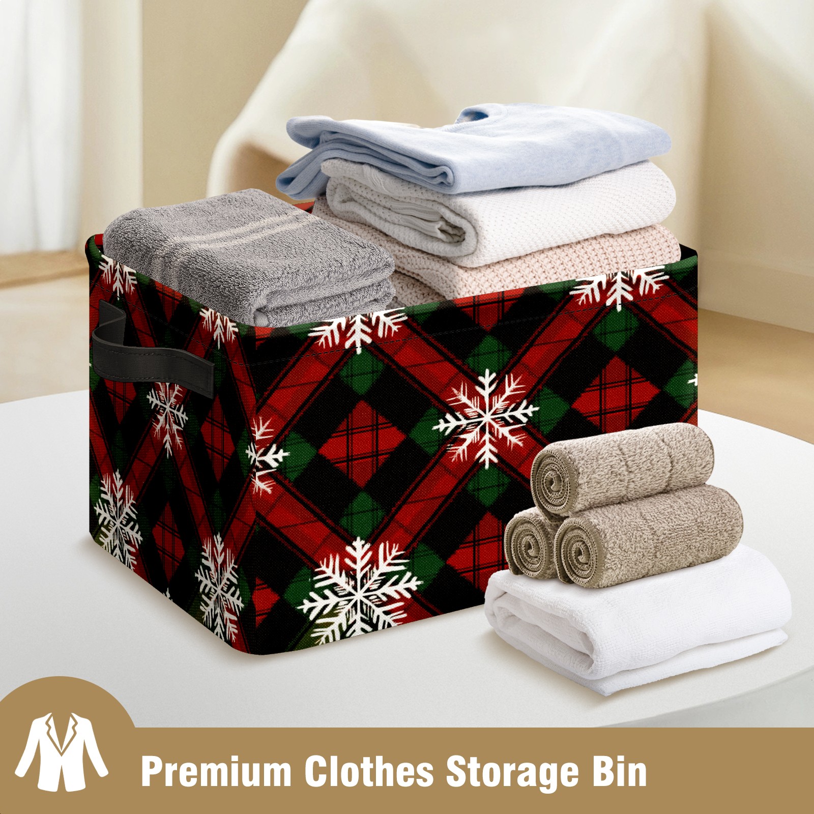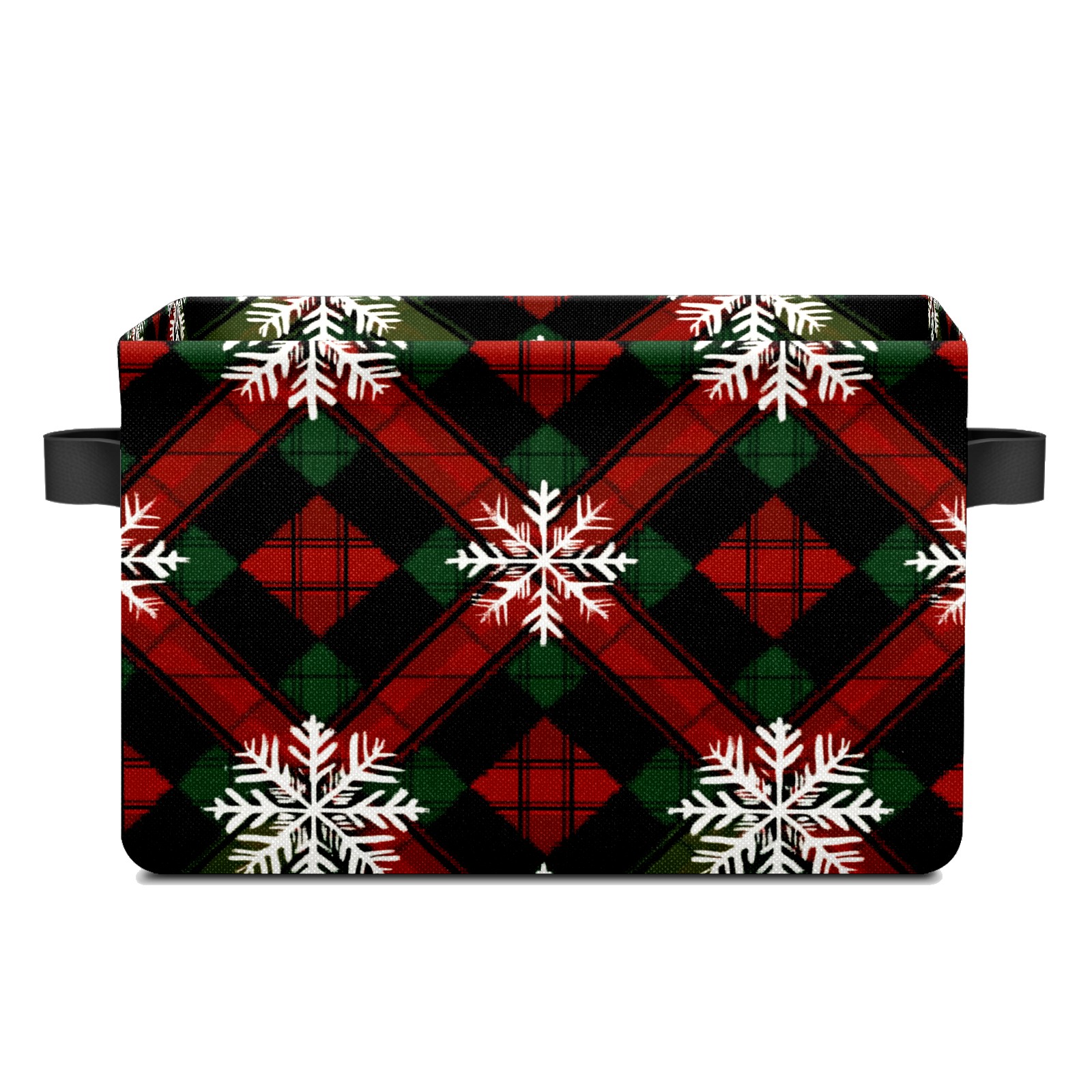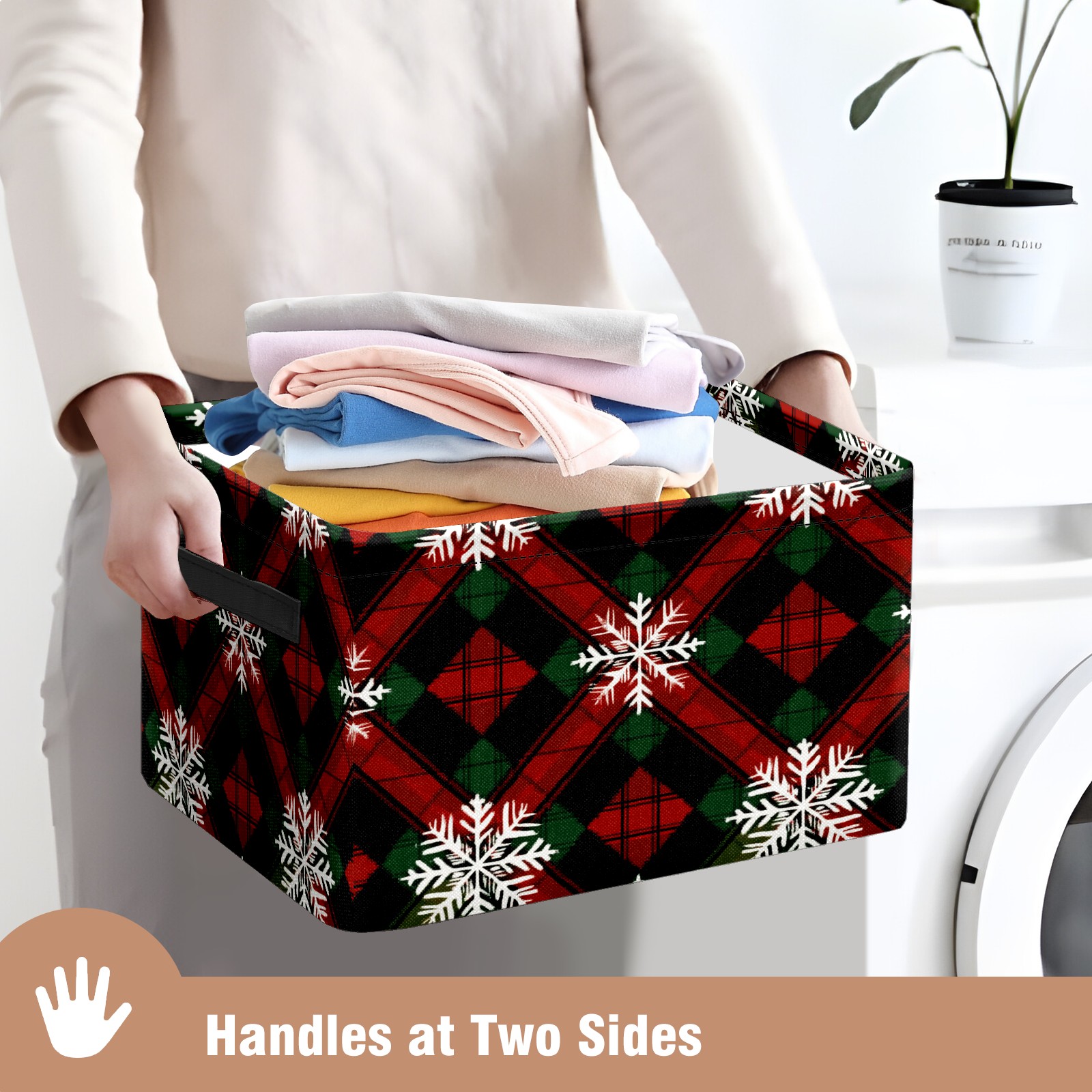 Foldable and Stackable Fabric Storage Basket for Home Organization with Handles, Decorative Closet Bins for Shelves and Laundry Storage( Red Green And Black Tartan)