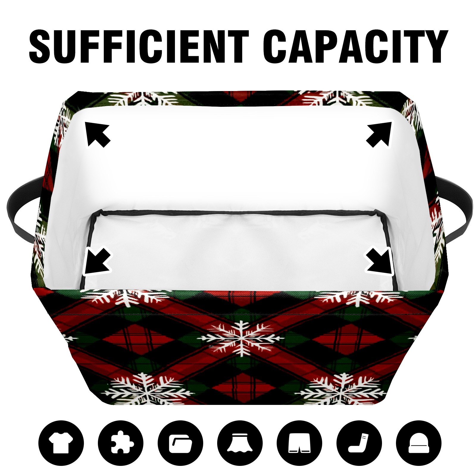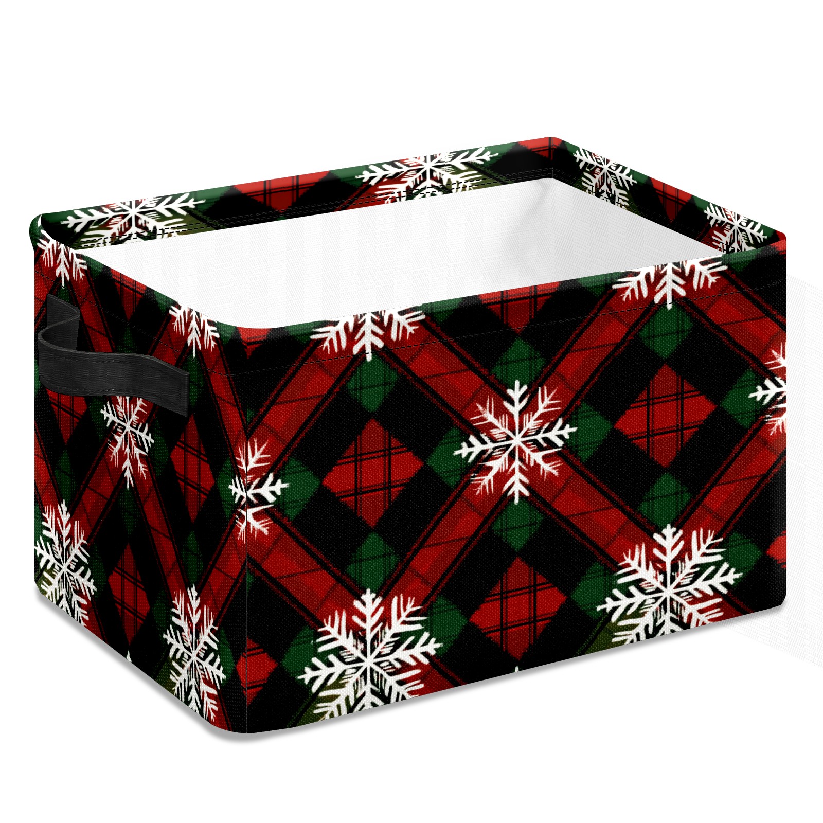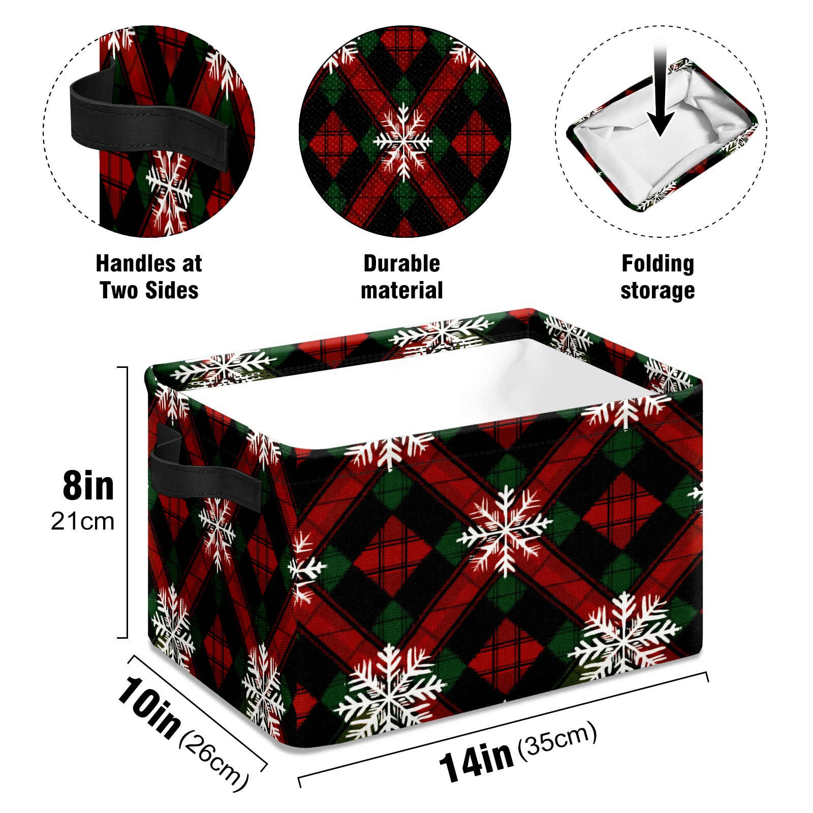 Foldable and Stackable Fabric Storage Basket for Home Organization with Handles, Decorative Closet Bins for Shelves and Laundry Storage( Red Green And Black Tartan)