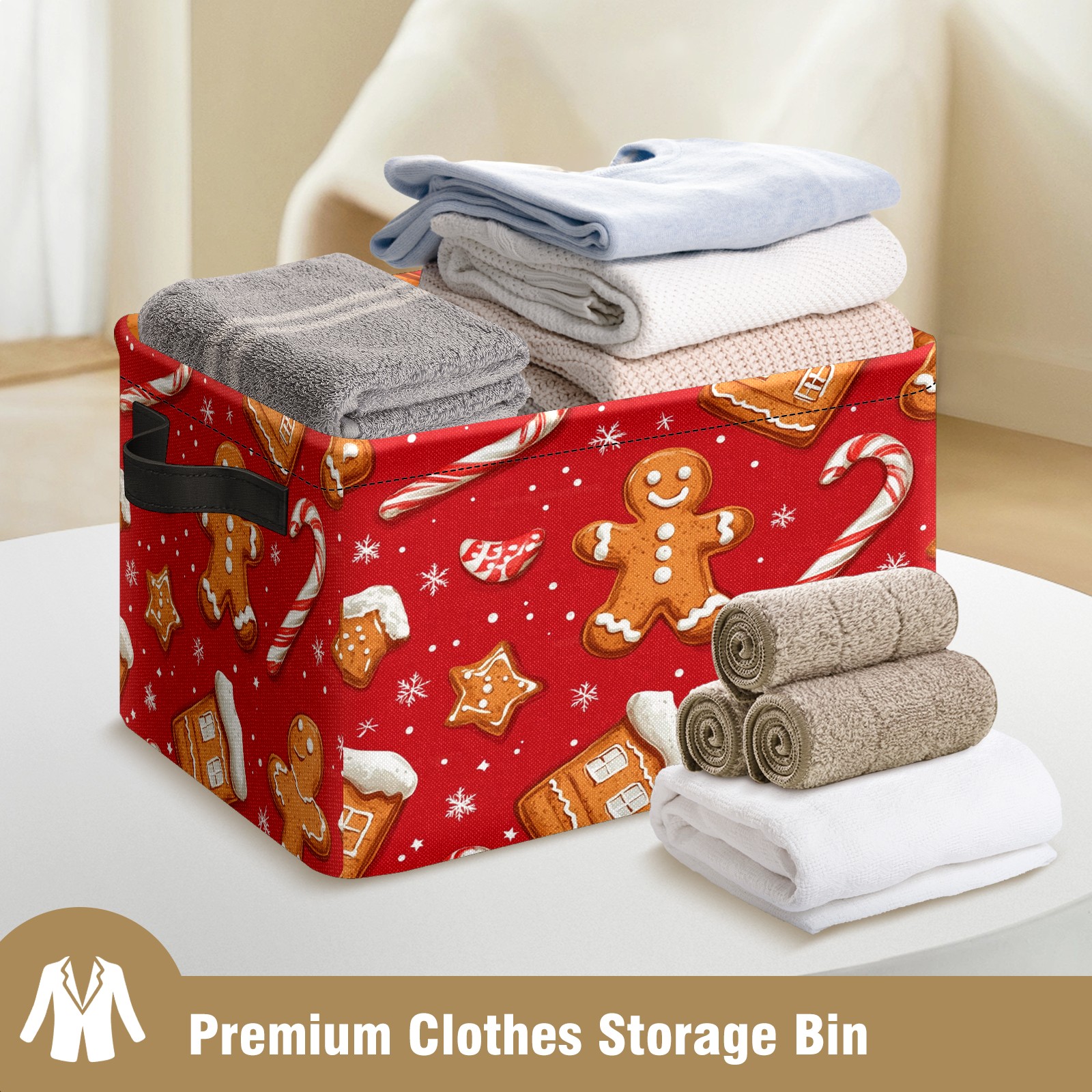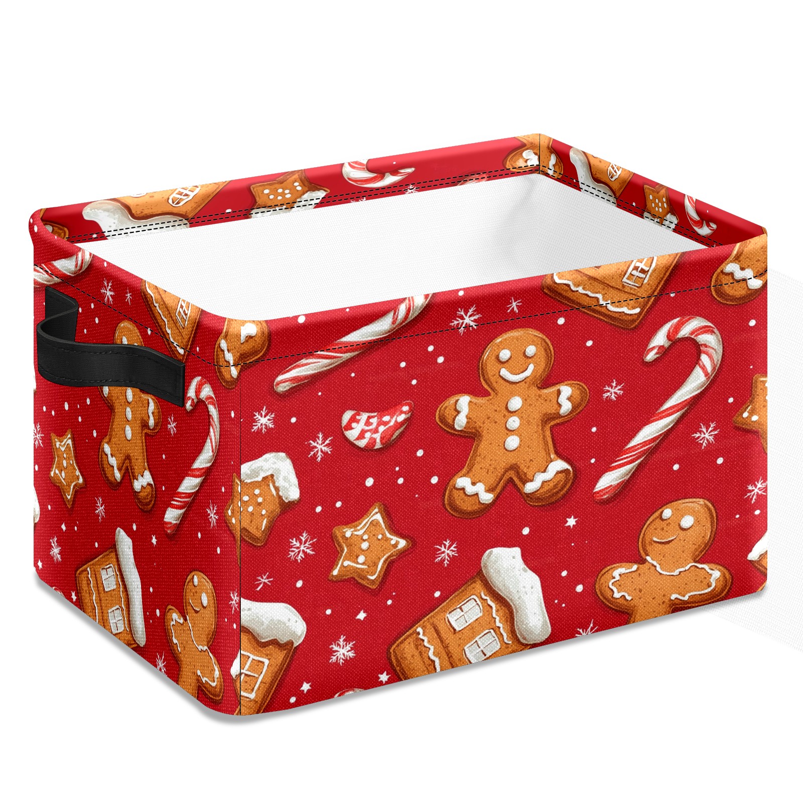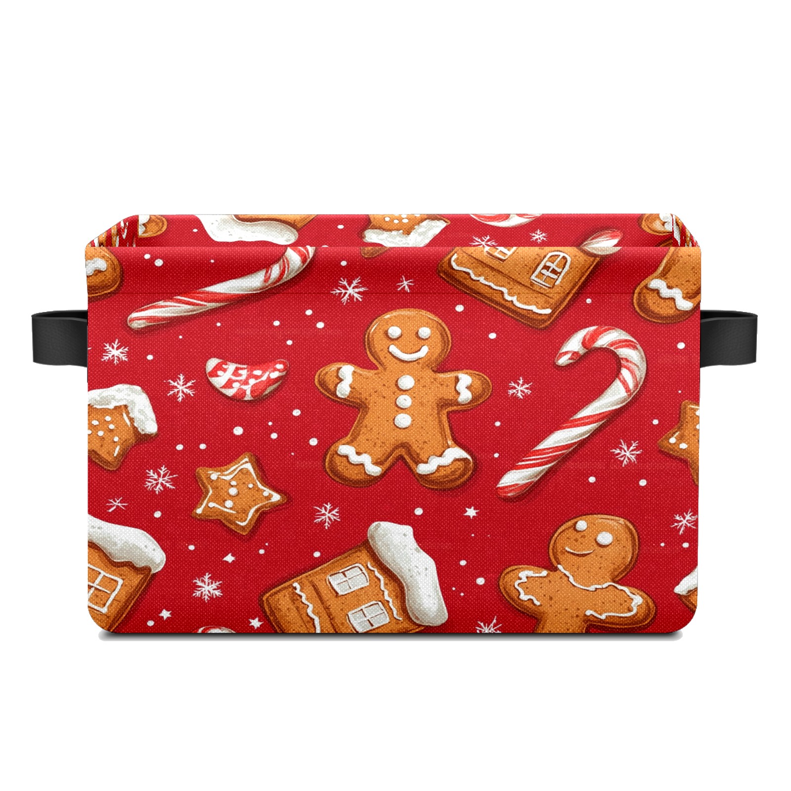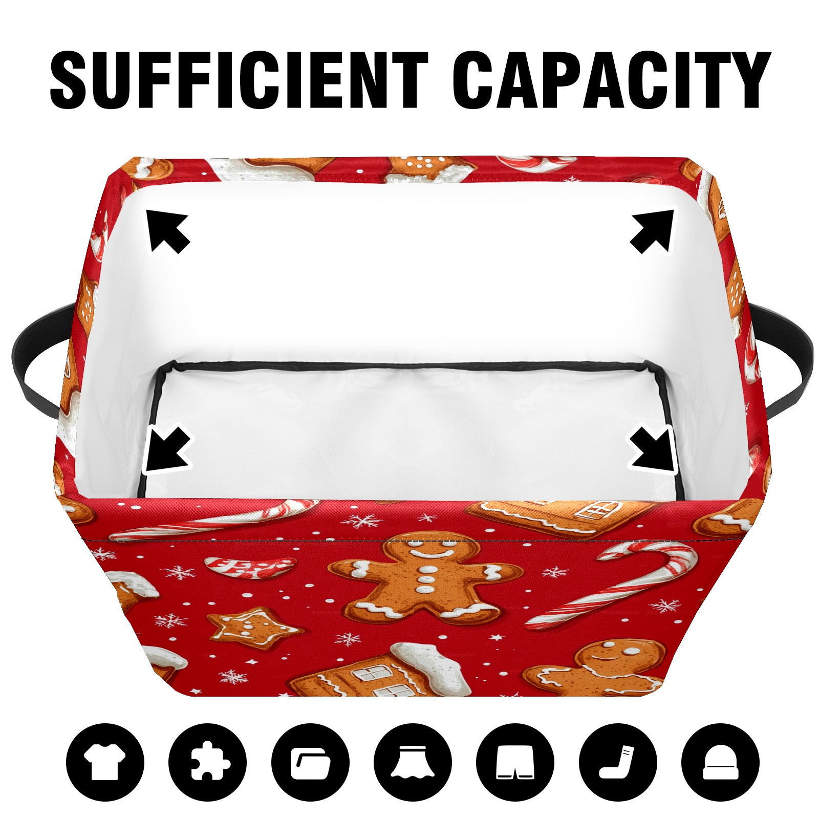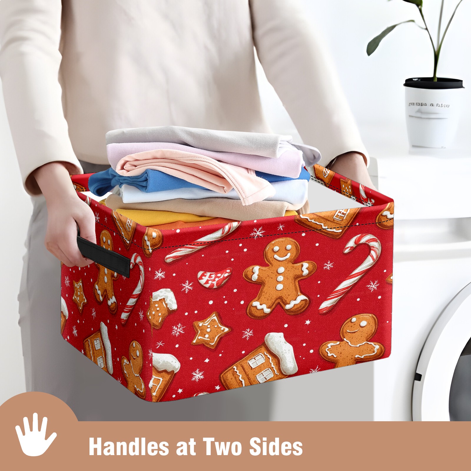 Foldable and Stackable Fabric Storage Basket for Home Organization with Handles, Decorative Closet Bins for Shelves and Laundry Storage( Cookies And Candy Cane)