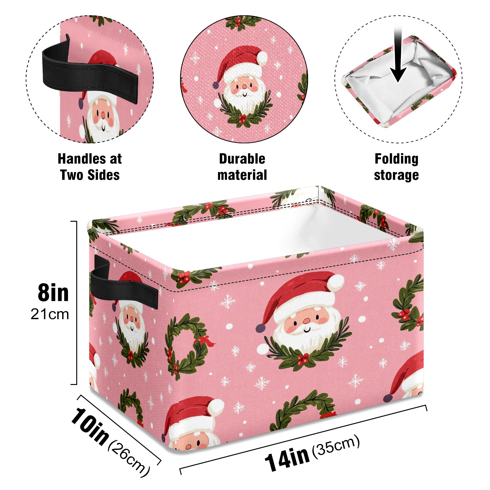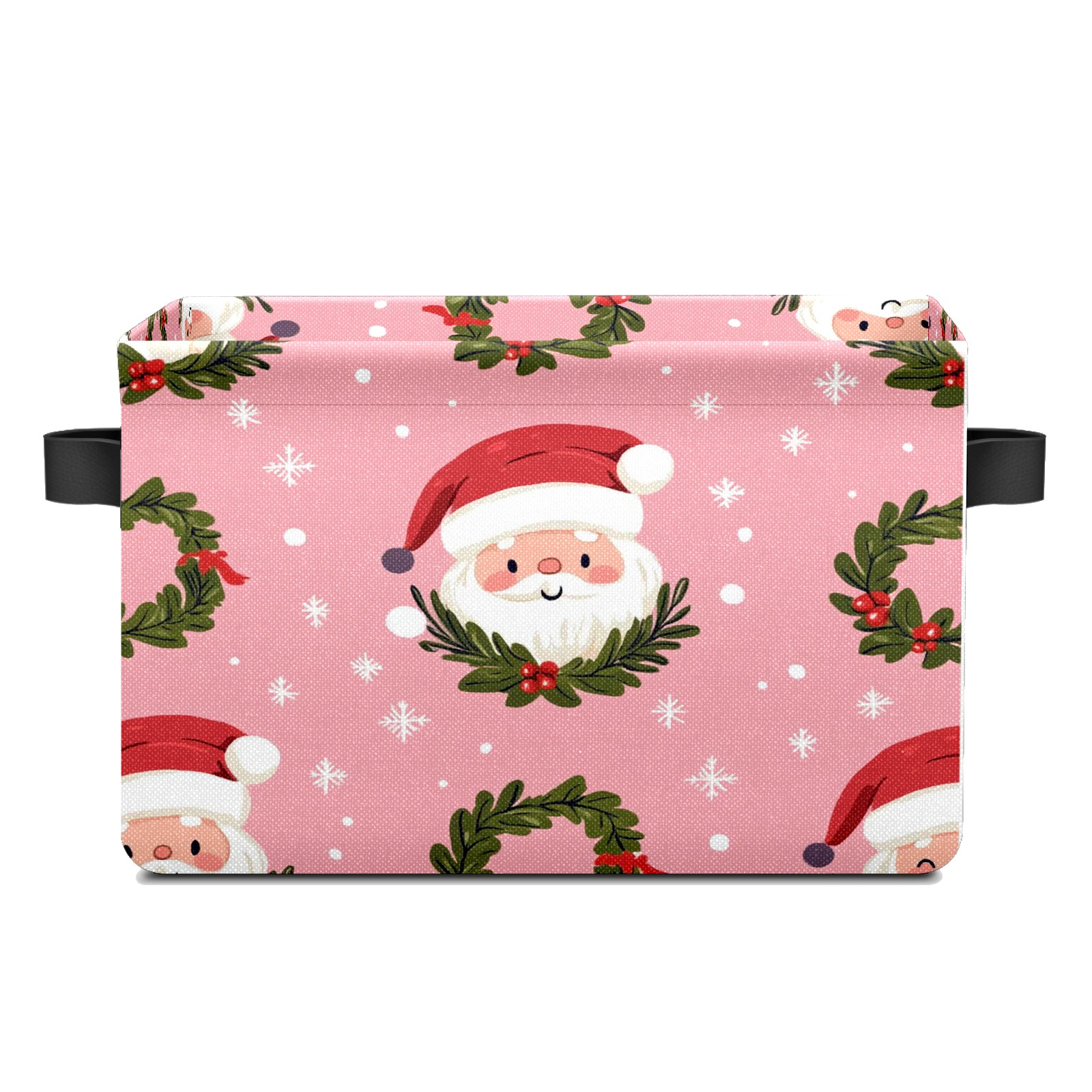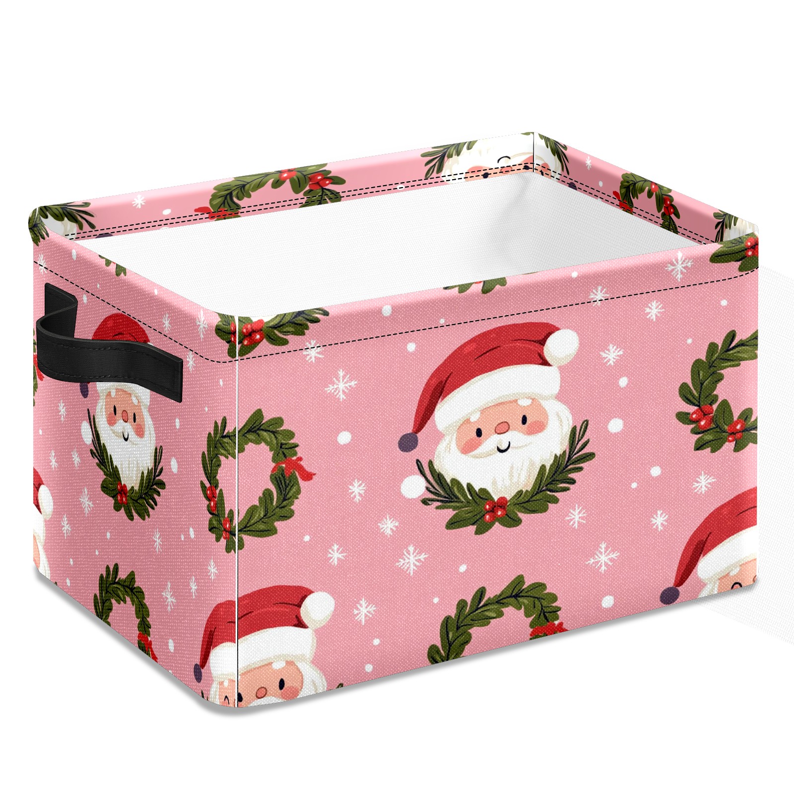 Foldable and Stackable Fabric Storage Basket for Home Organization with Handles, Decorative Closet Bins for Shelves and Laundry Storage( Cute Santa And Wreath)