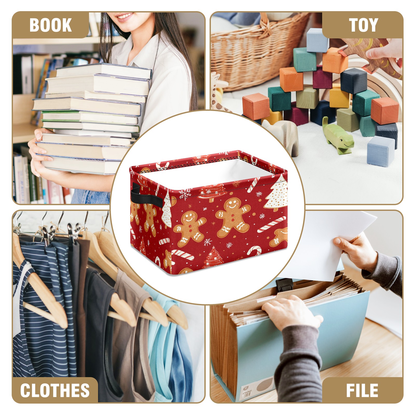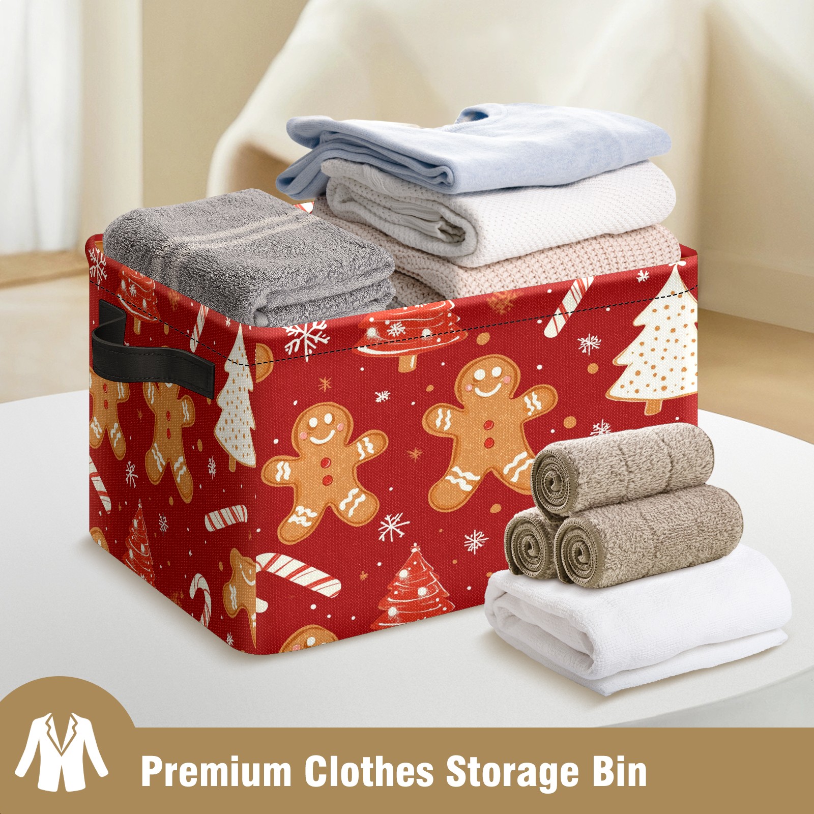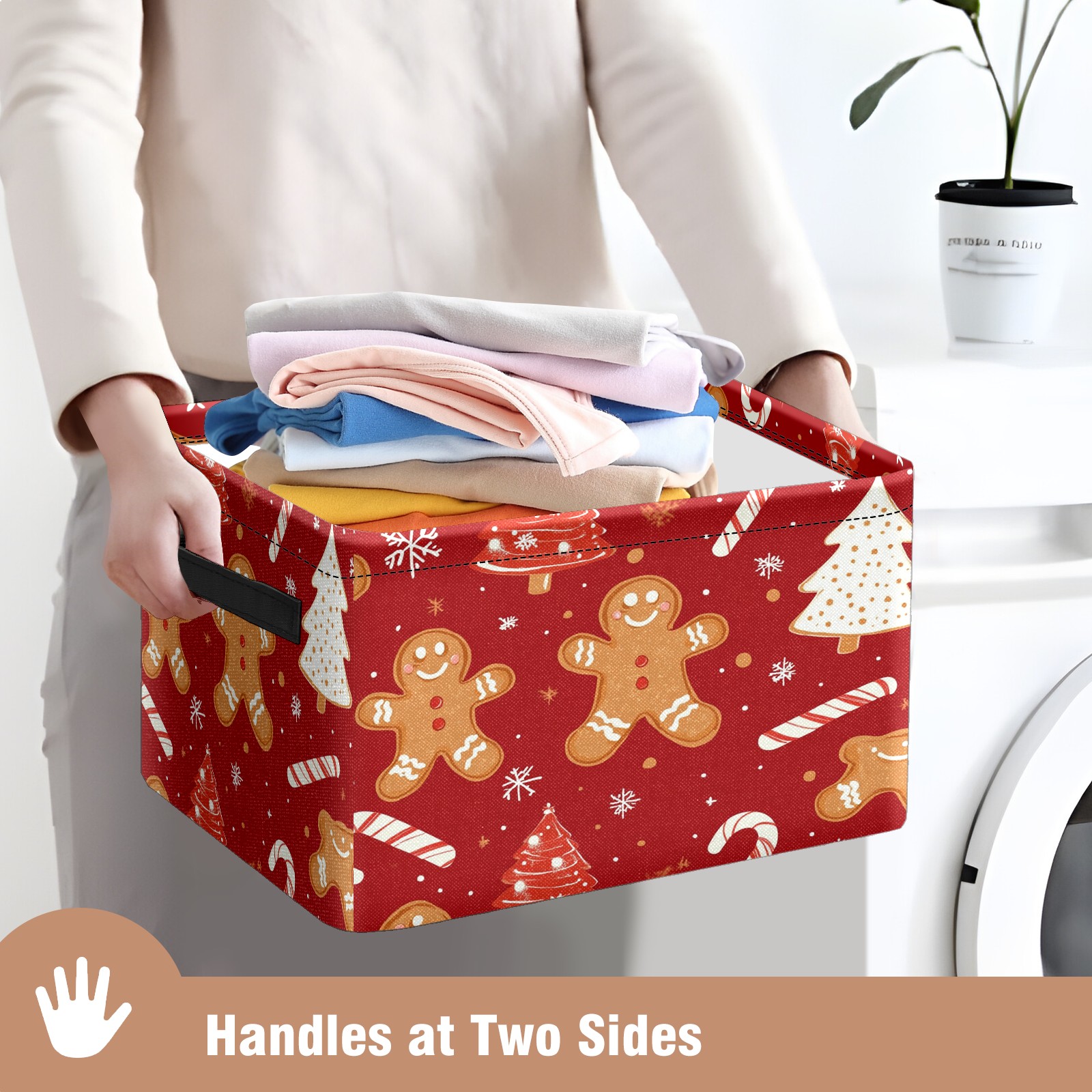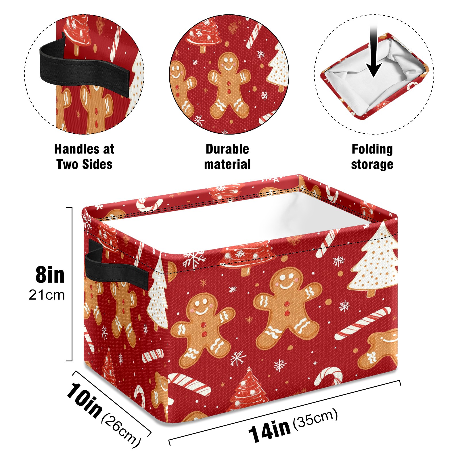 Foldable and Stackable Fabric Storage Basket for Home Organization with Handles, Decorative Closet Bins for Shelves and Laundry Storage( Christmas Tree And Candy Cane)