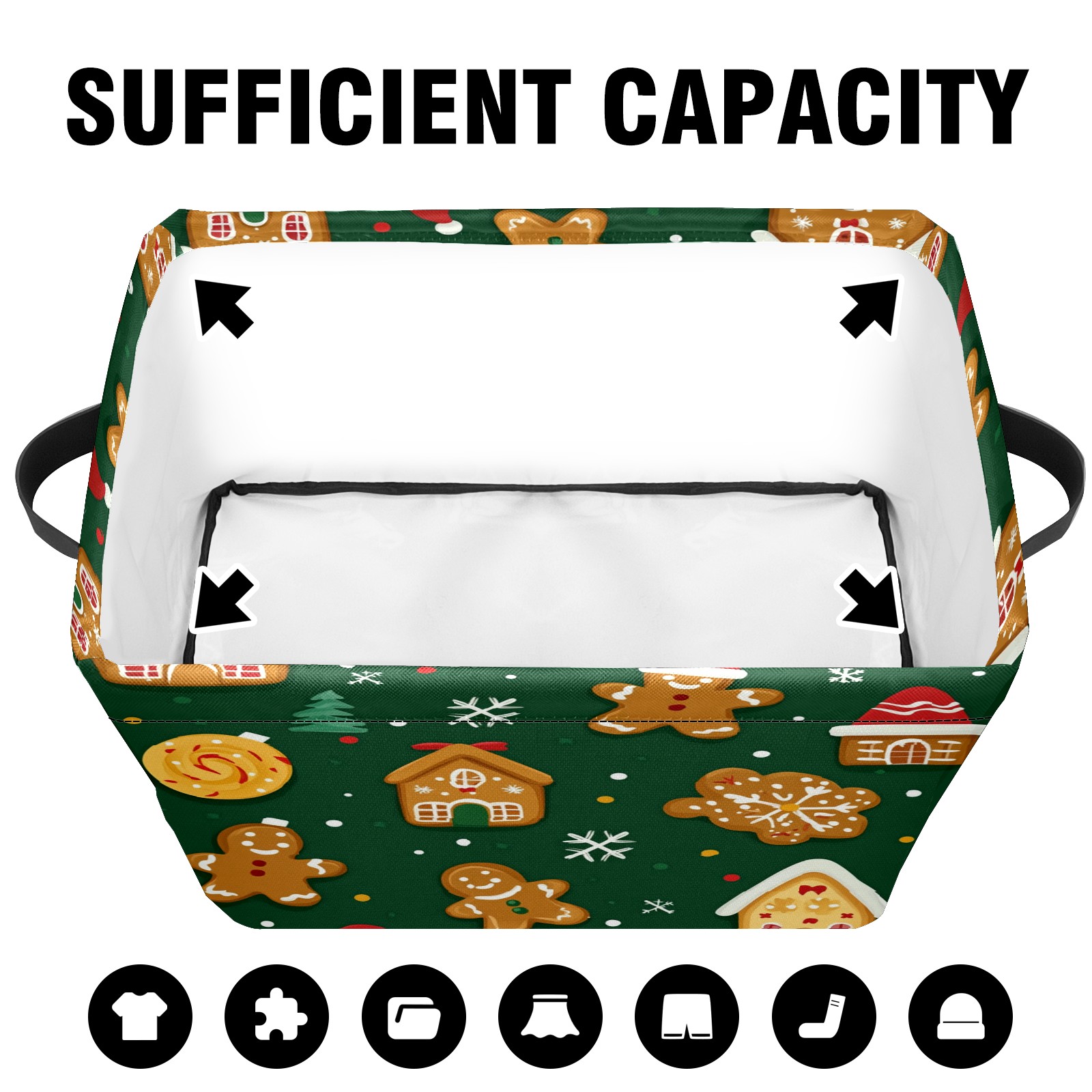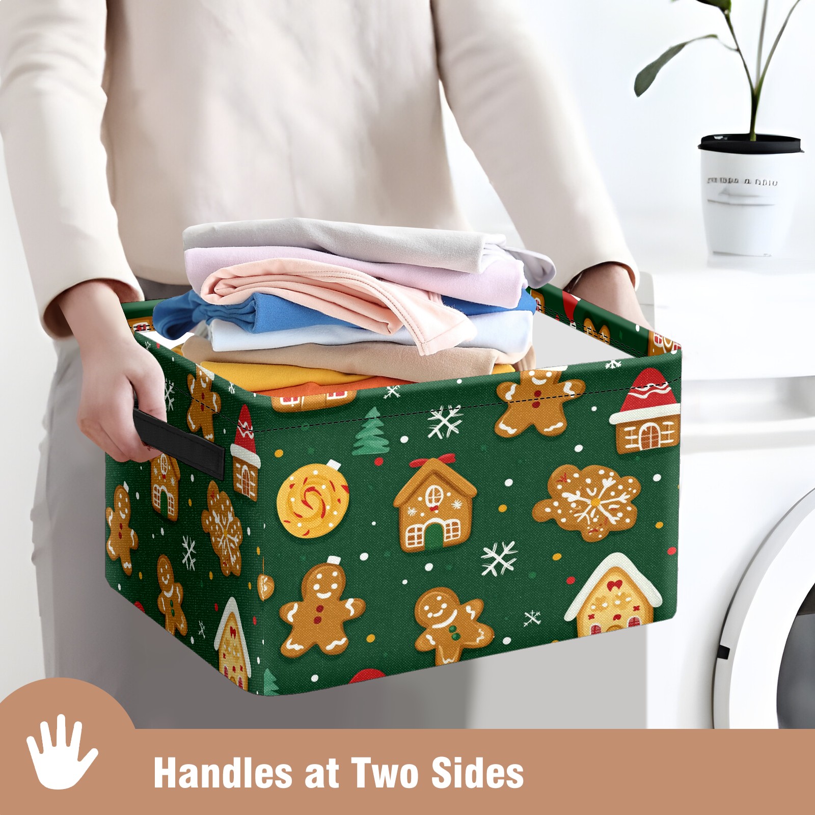 Foldable and Stackable Fabric Storage Basket for Home Organization with Handles, Decorative Closet Bins for Shelves and Laundry Storage( Christmas Pattern)