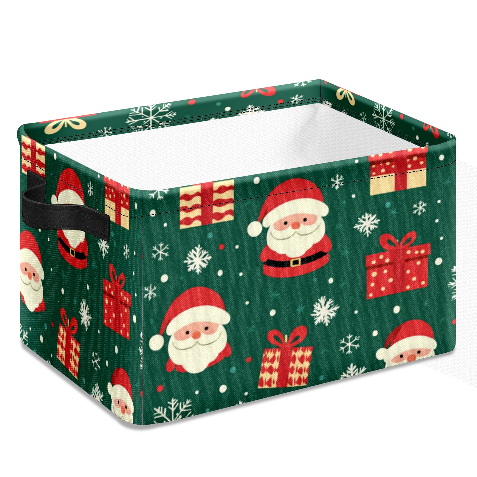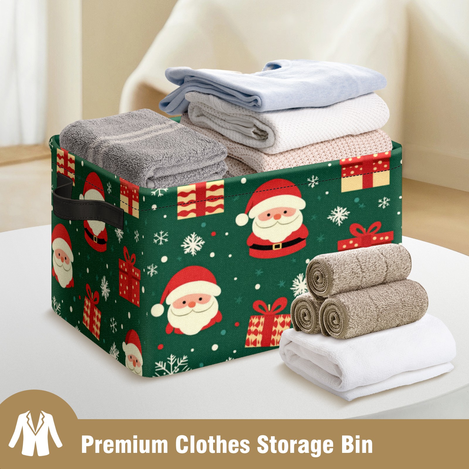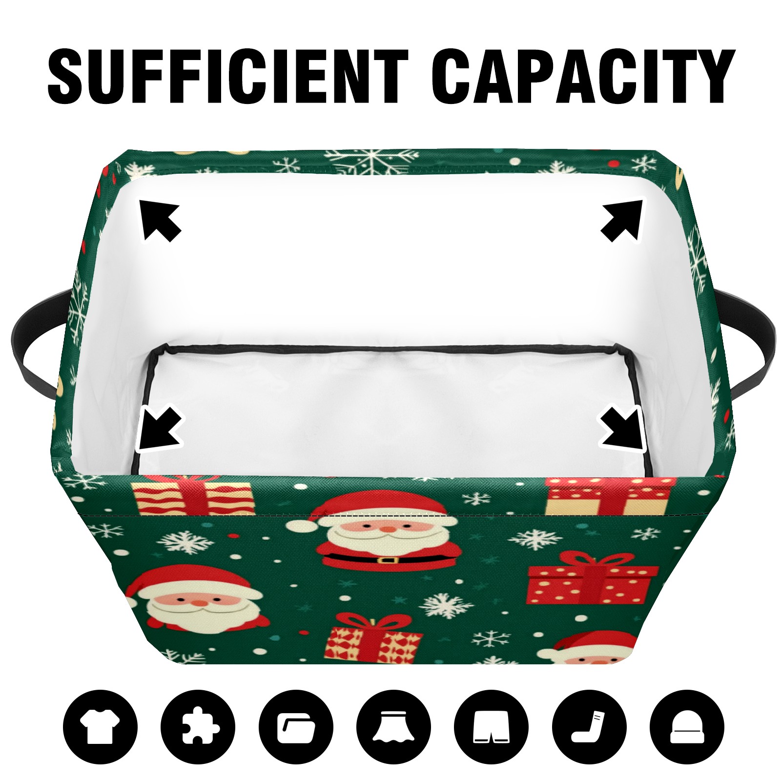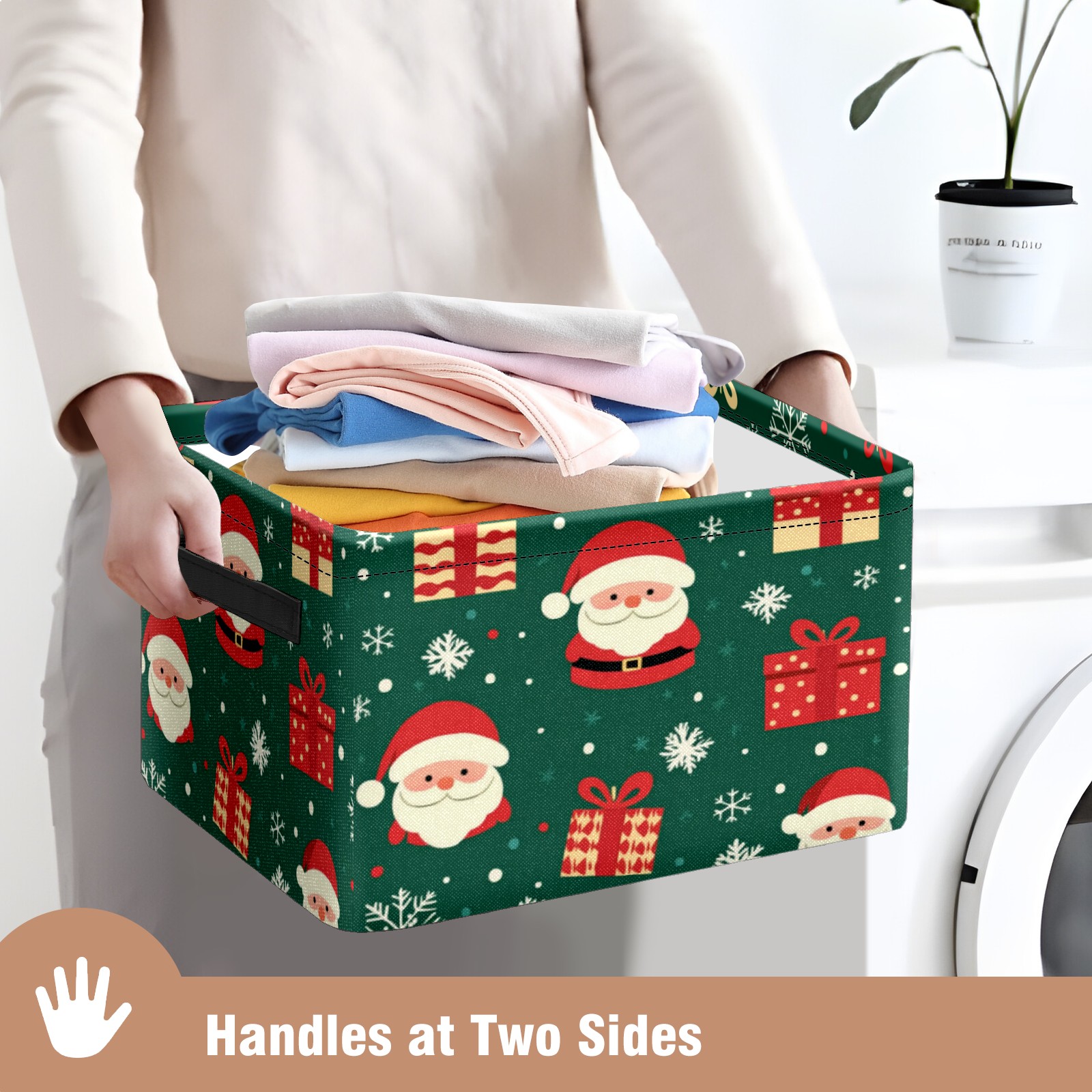 Foldable and Stackable Fabric Storage Basket for Home Organization with Handles, Decorative Closet Bins for Shelves and Laundry Storage( Christmas Gifts And Santa Claus)