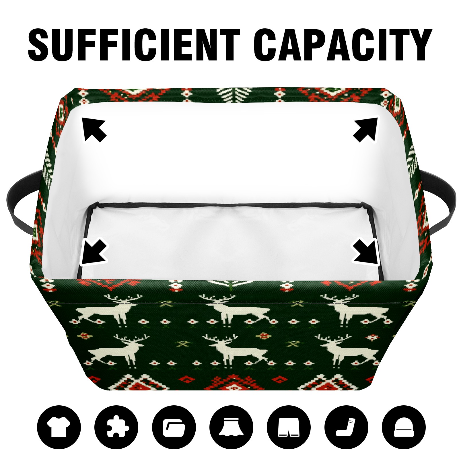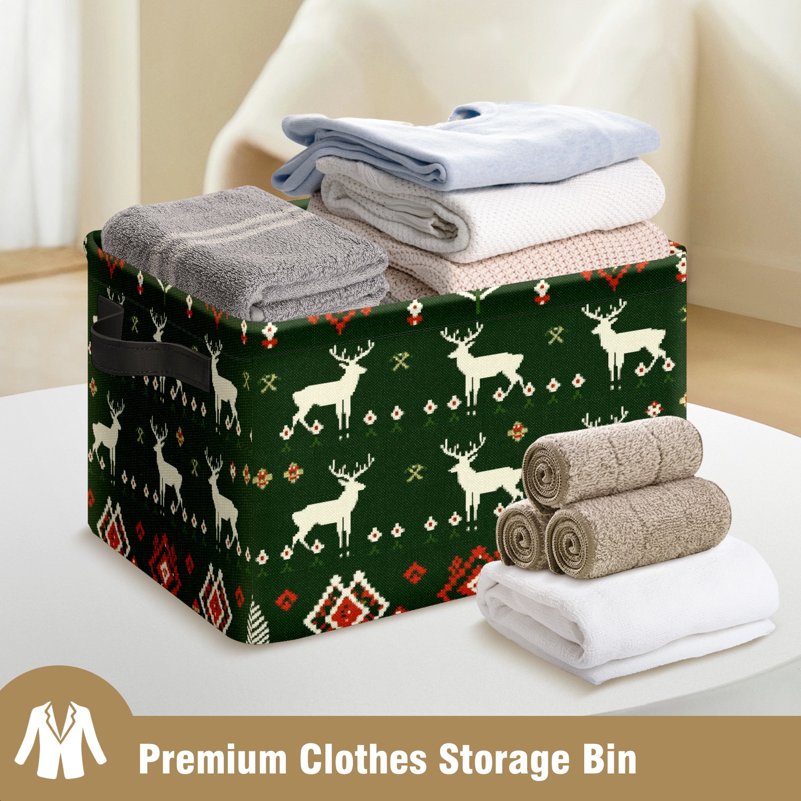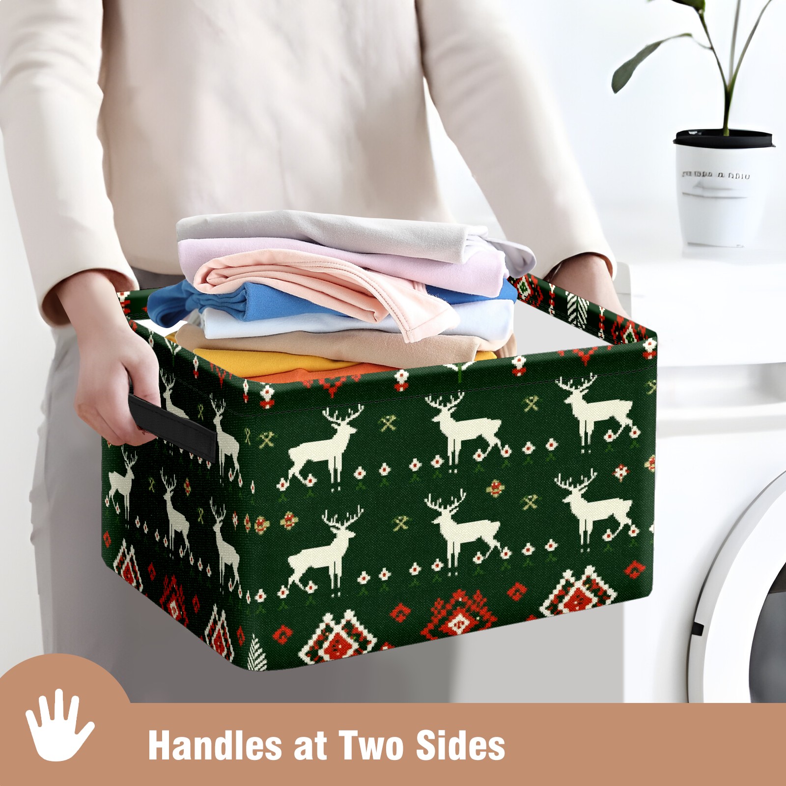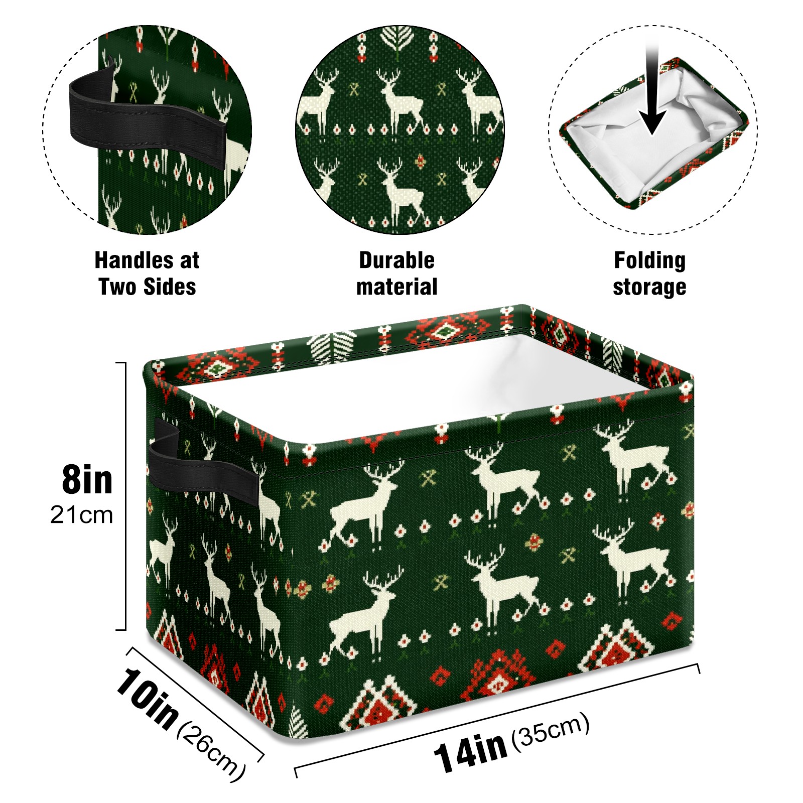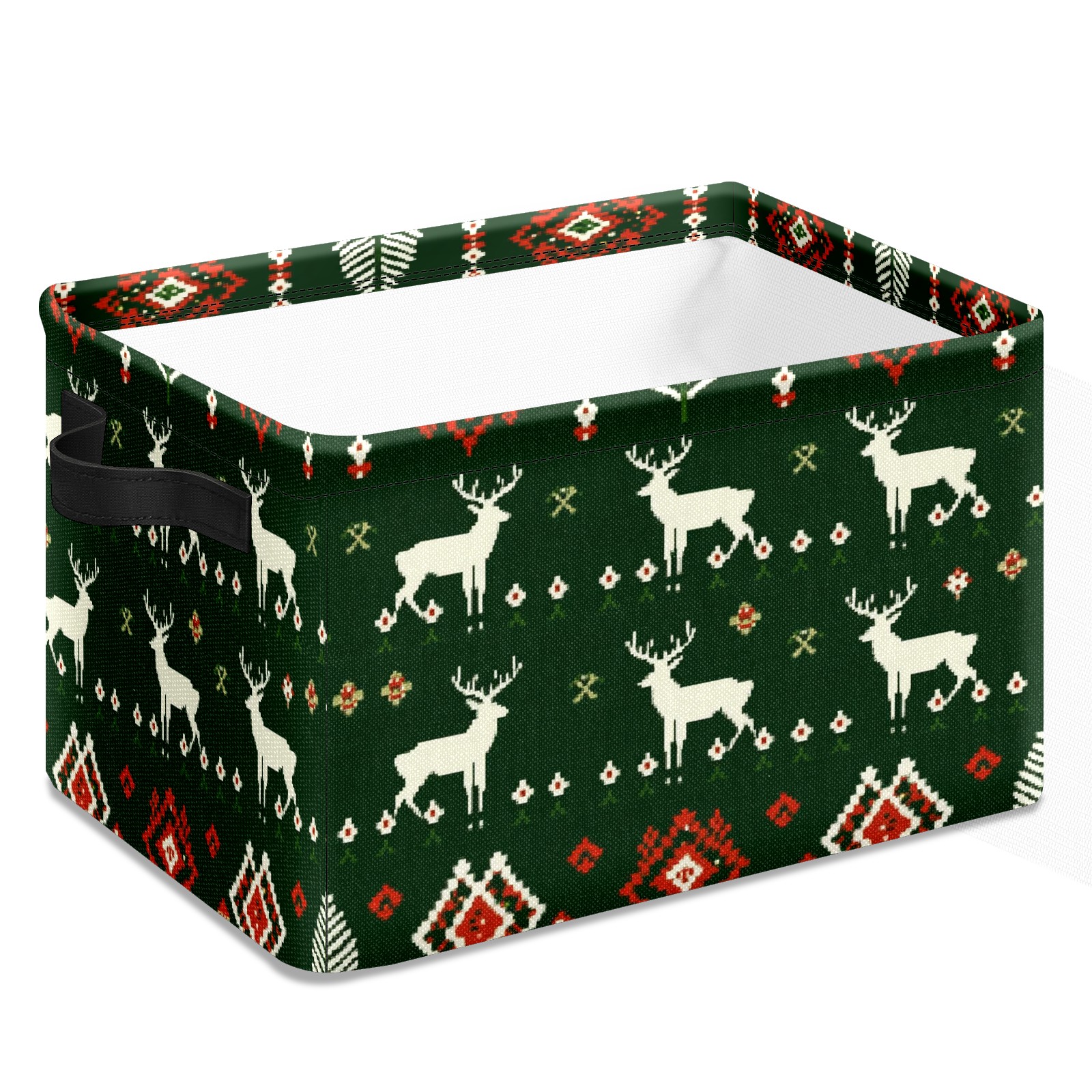 Foldable and Stackable Fabric Storage Basket for Home Organization with Handles, Decorative Closet Bins for Shelves and Laundry Storage( Christmas Sweater Pattern)