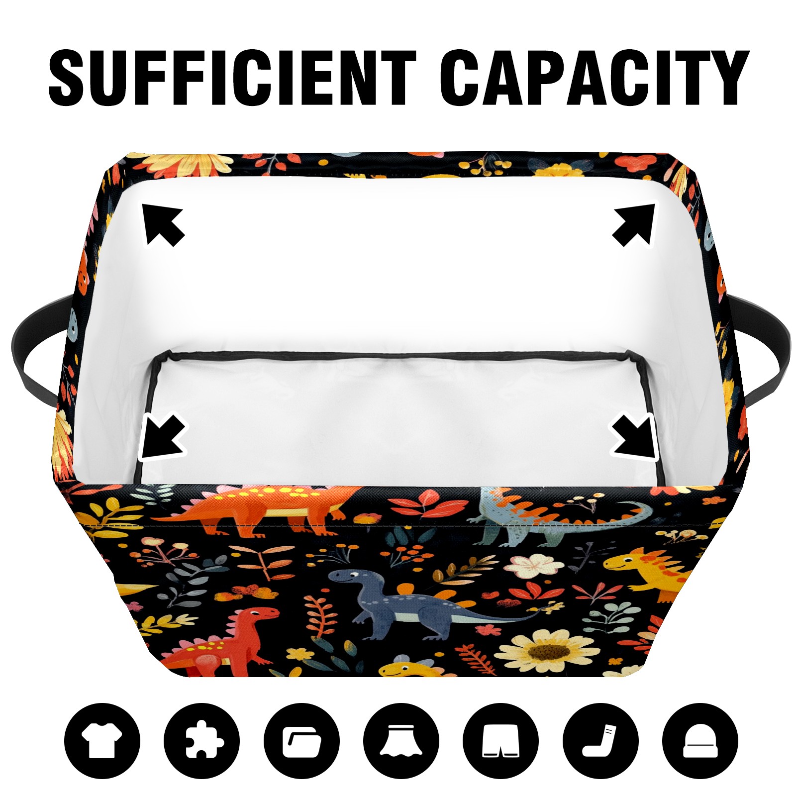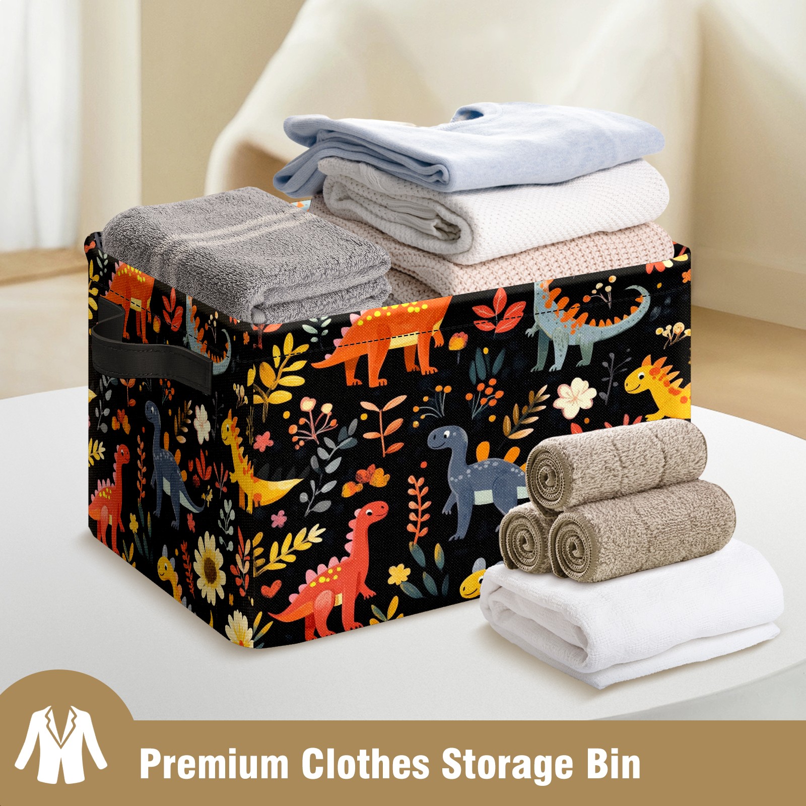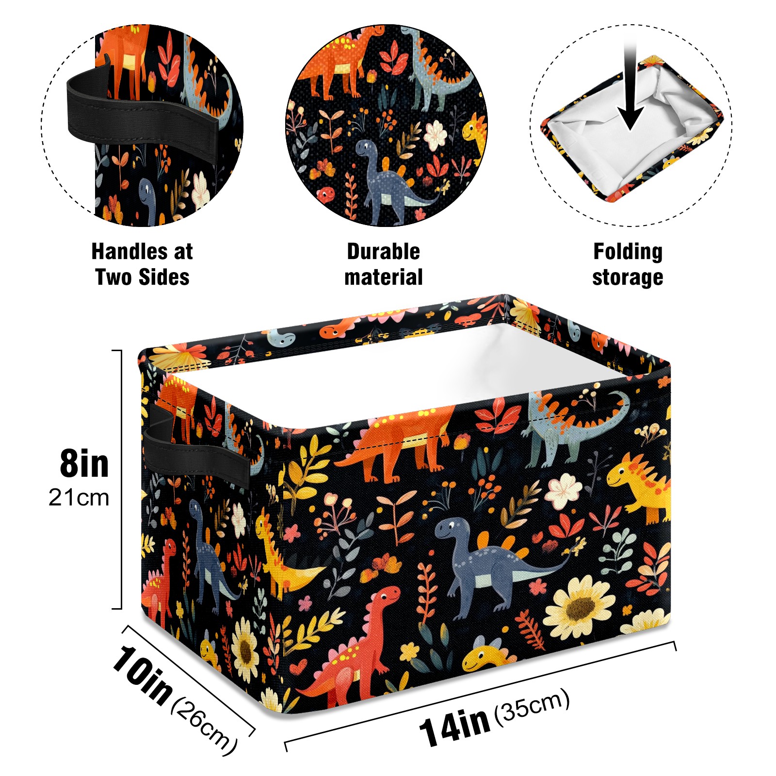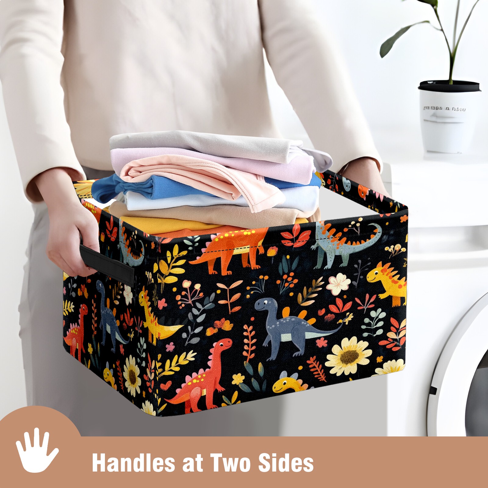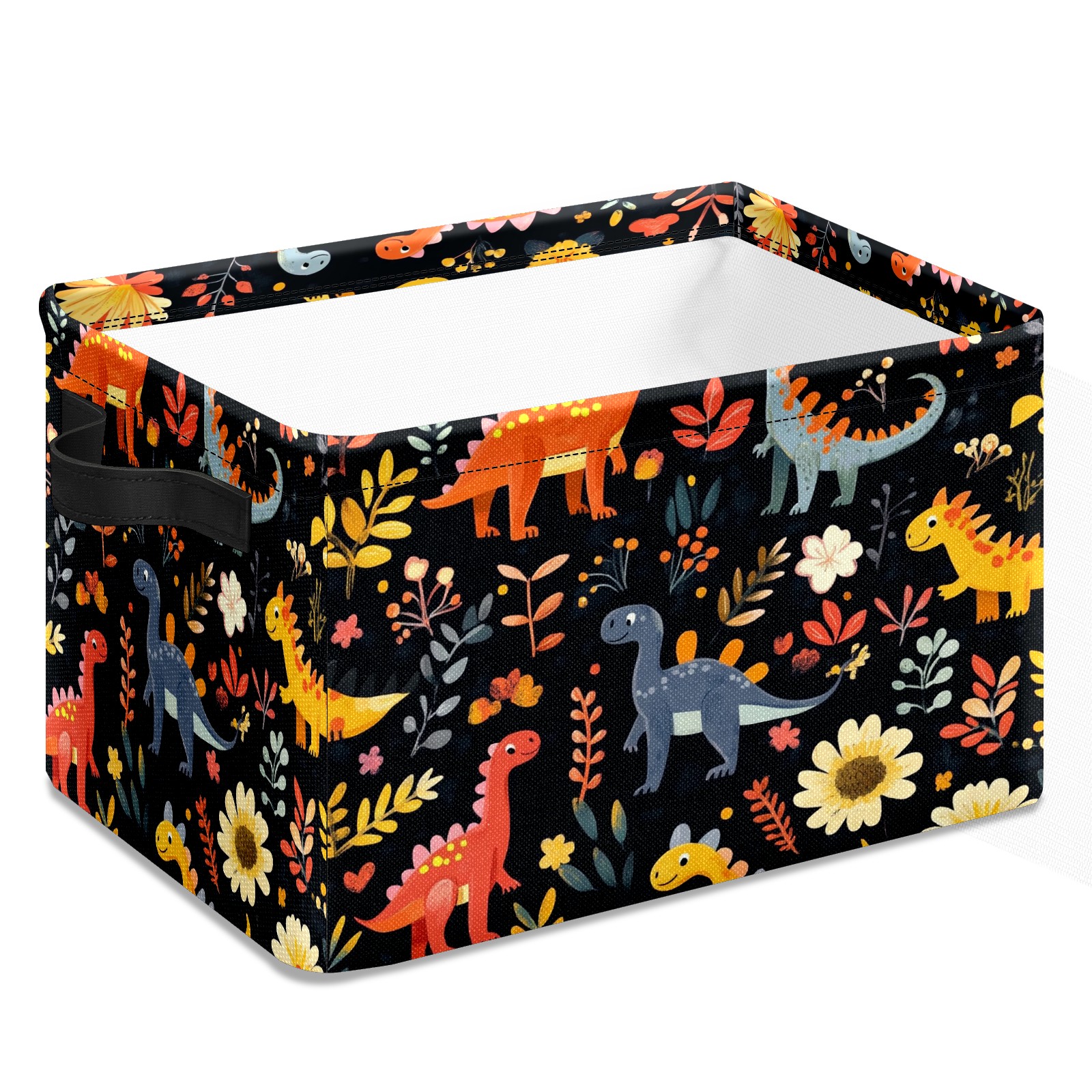 Foldable and Stackable Fabric Storage Basket for Home Organization with Handles, Decorative Closet Bins for Shelves and Laundry Storage( Playful Dinosaurs Pattern)