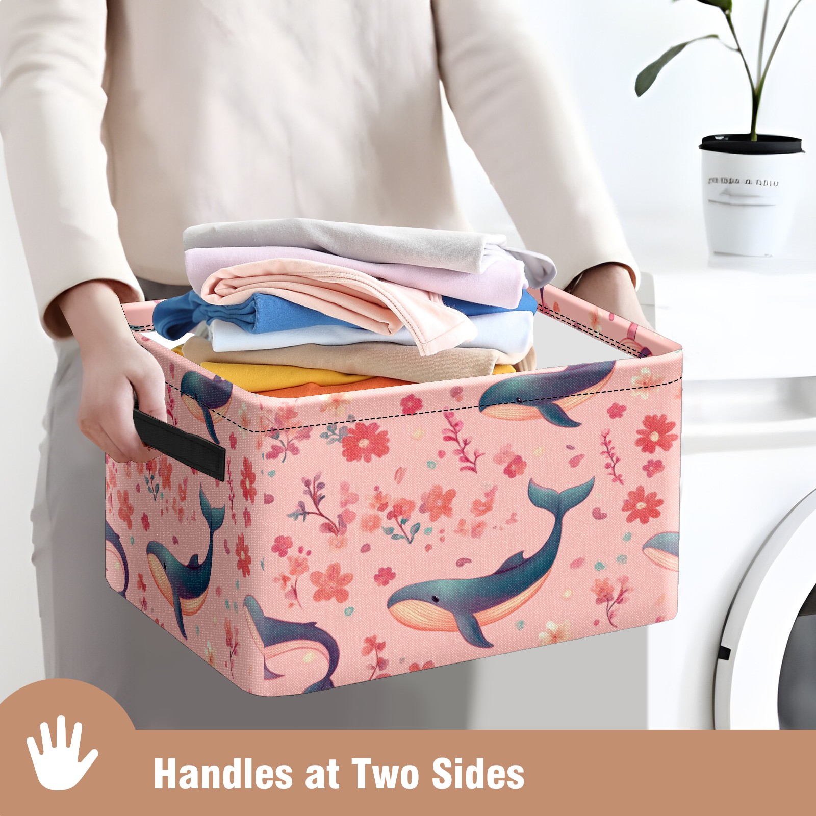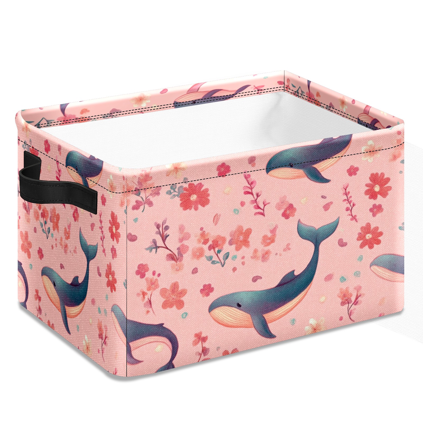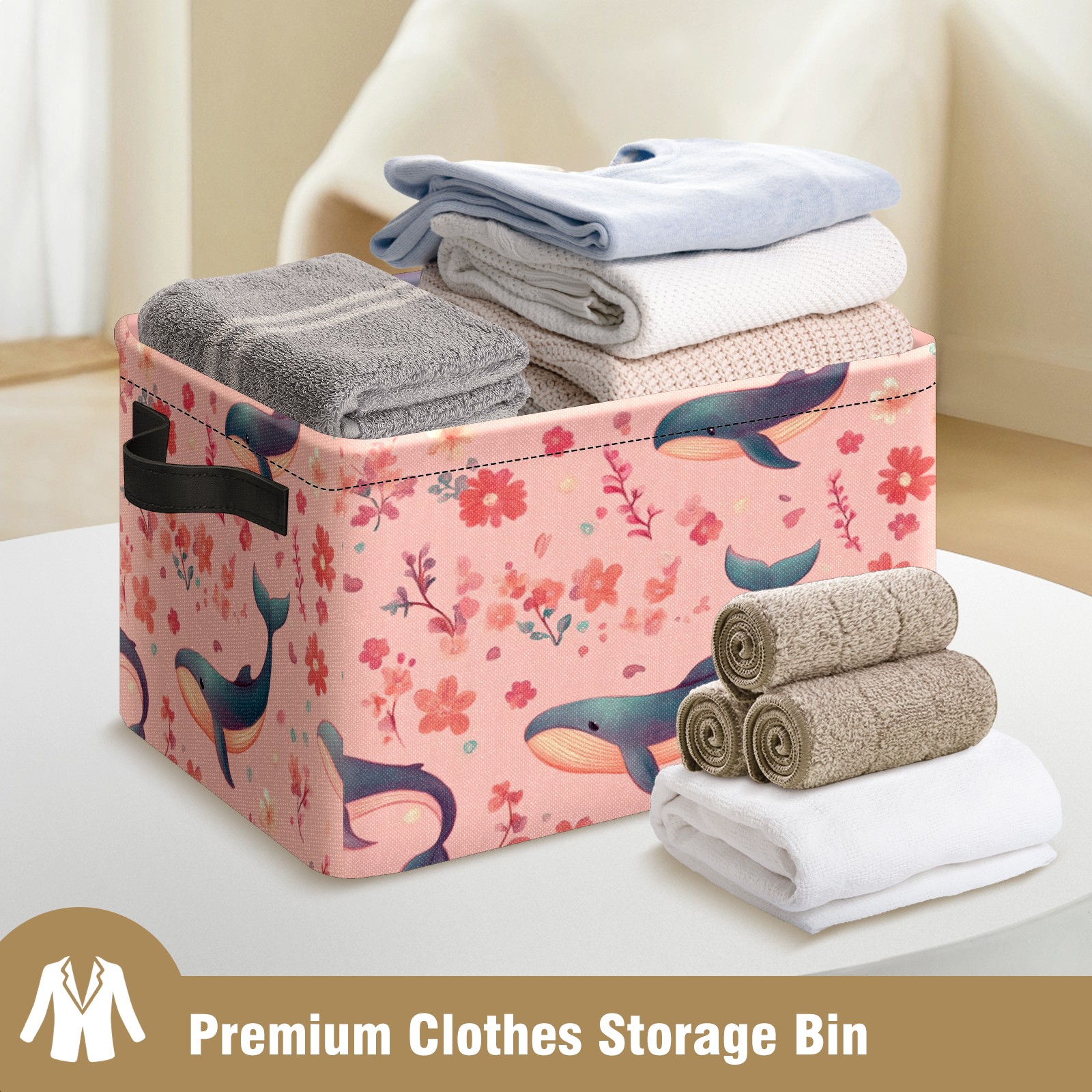 Foldable and Stackable Fabric Storage Basket for Home Organization with Handles, Decorative Closet Bins for Shelves and Laundry Storage( Pastel-pink Whale)