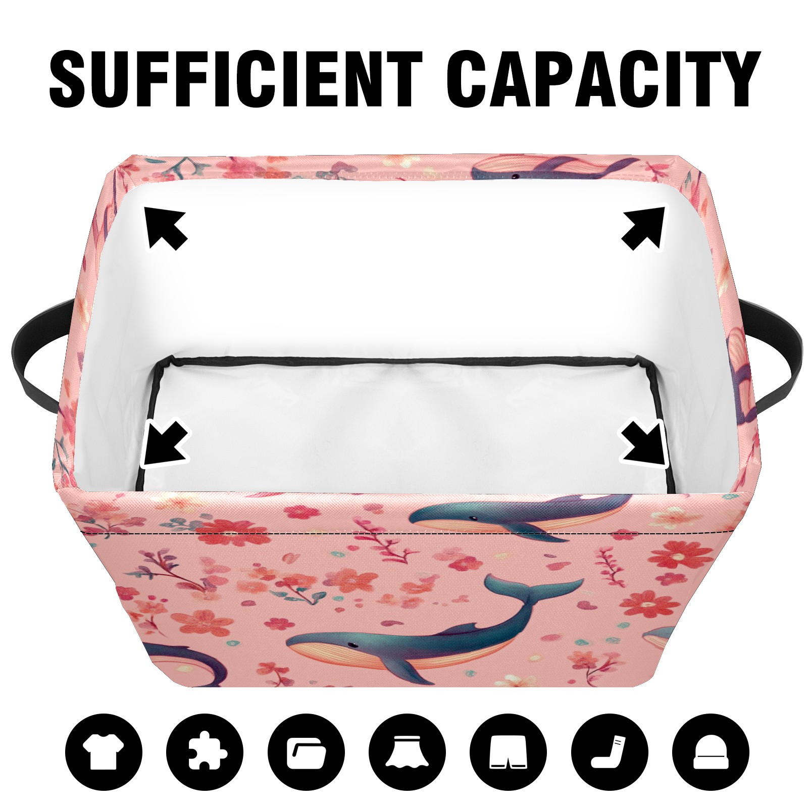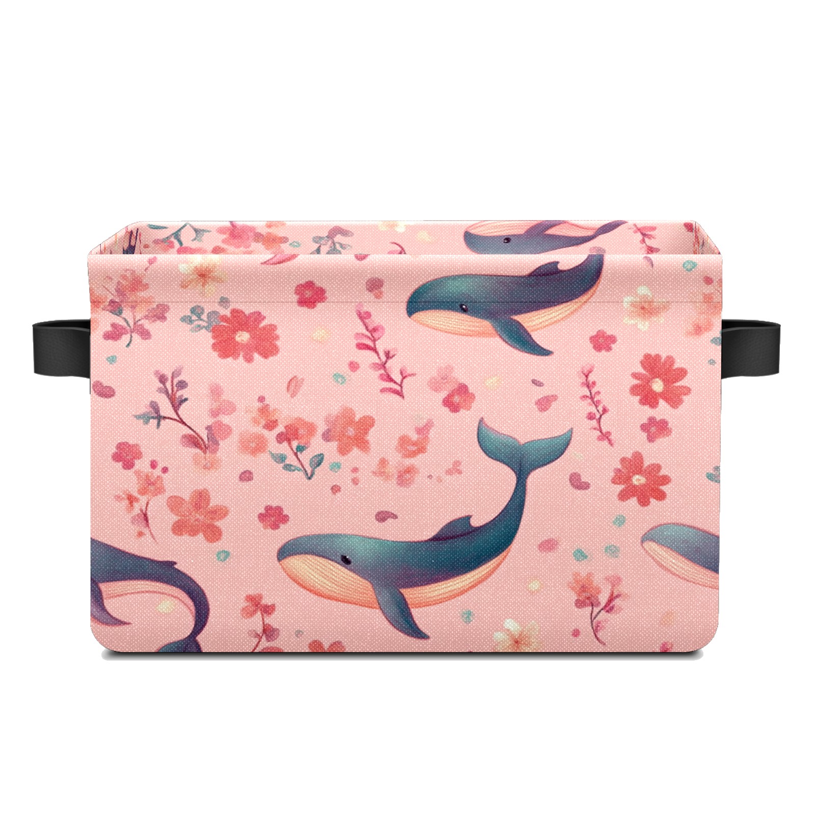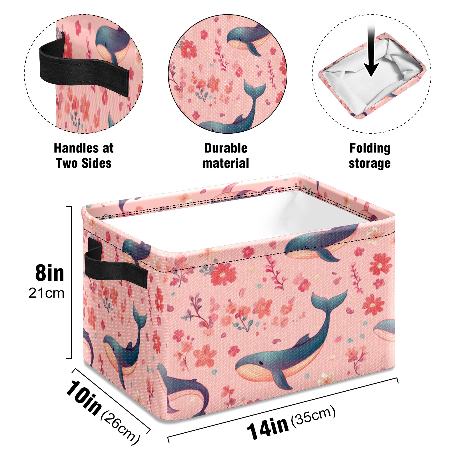 Foldable and Stackable Fabric Storage Basket for Home Organization with Handles, Decorative Closet Bins for Shelves and Laundry Storage( Pastel-pink Whale)