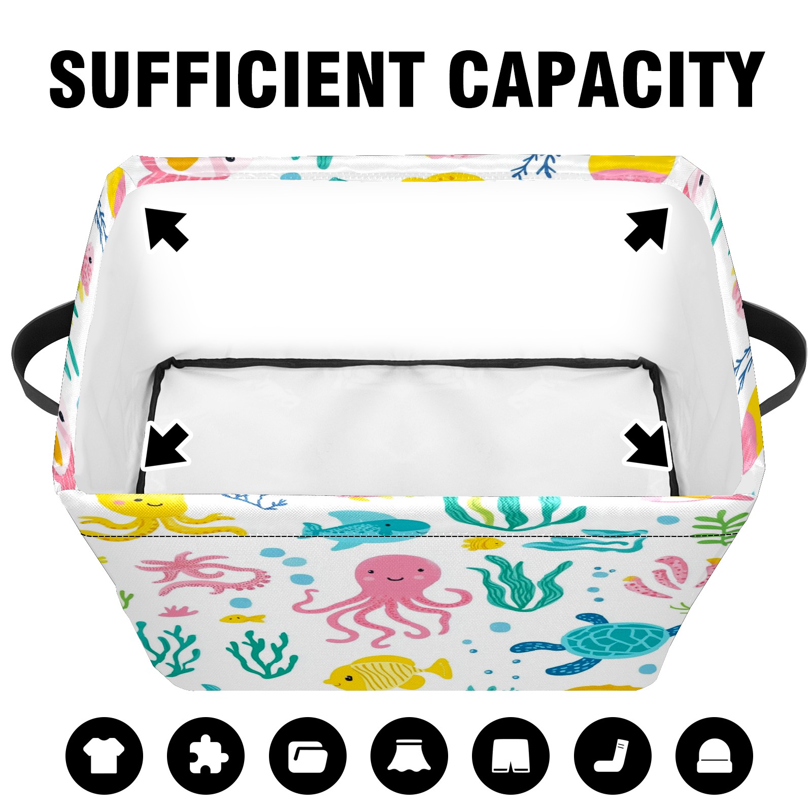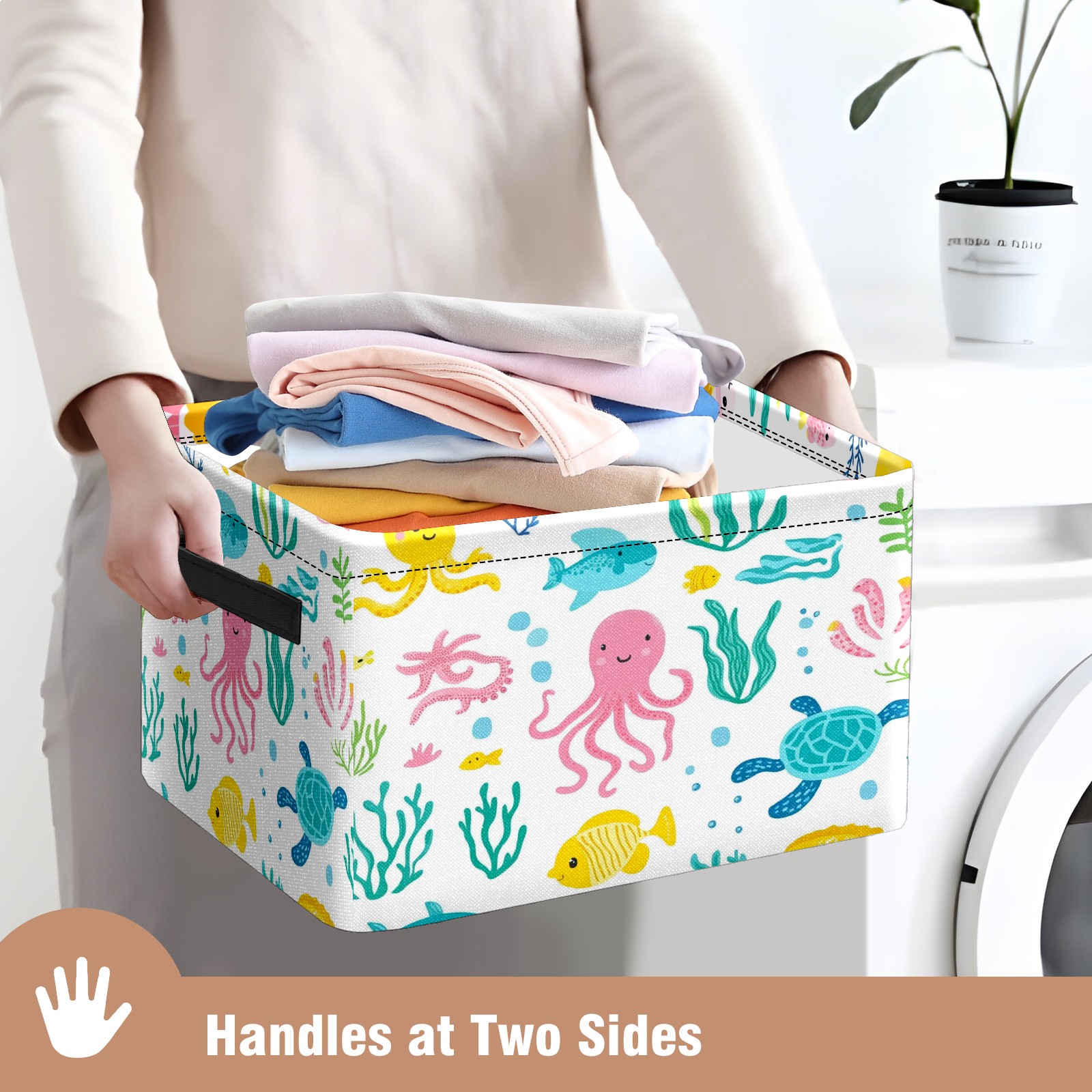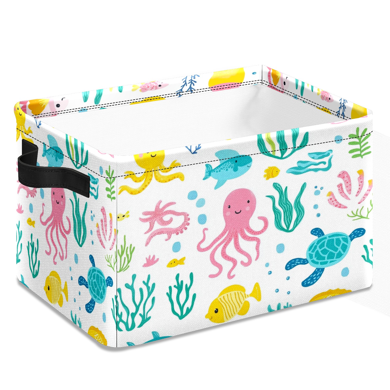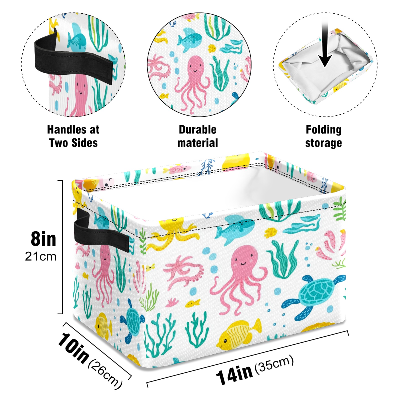 Foldable and Stackable Fabric Storage Basket for Home Organization with Handles, Decorative Closet Bins for Shelves and Laundry Storage( Sea Elements)