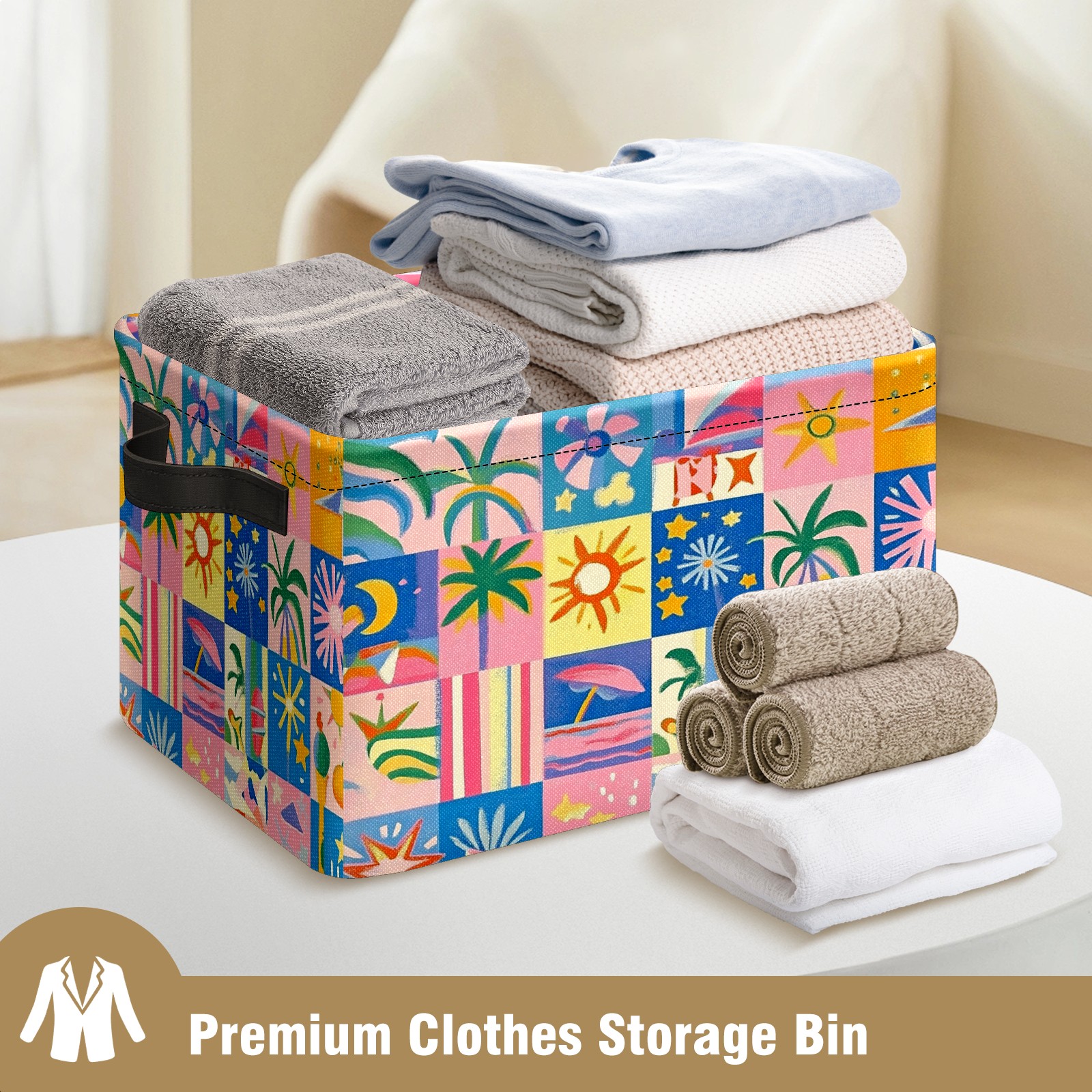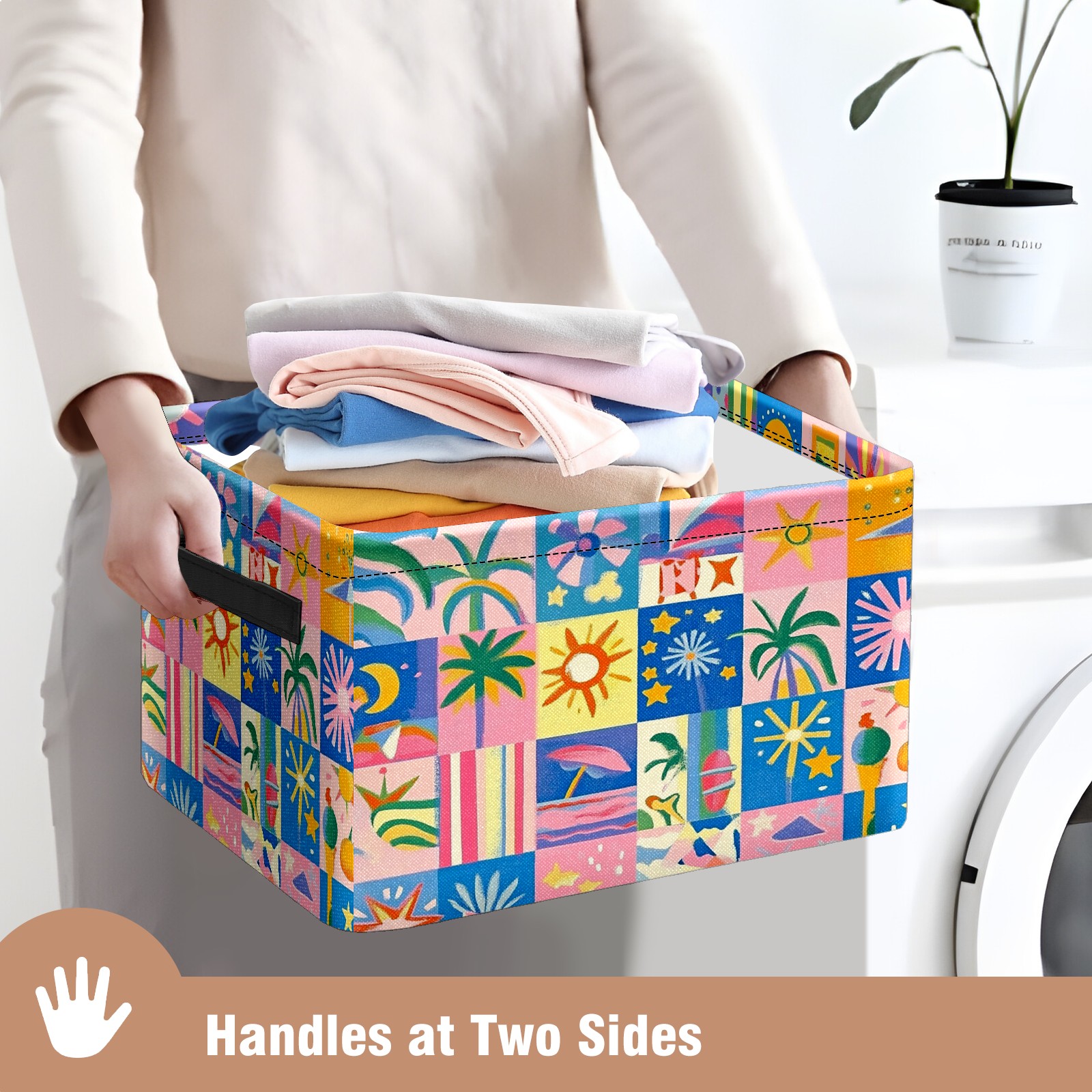 Foldable and Stackable Fabric Storage Basket for Home Organization with Handles, Decorative Closet Bins for Shelves and Laundry Storage( Vibrant And Colorful)