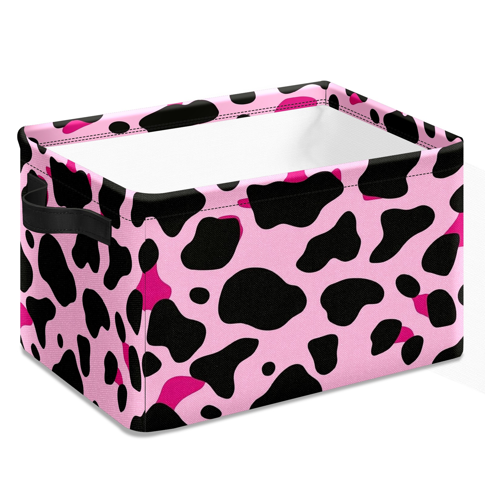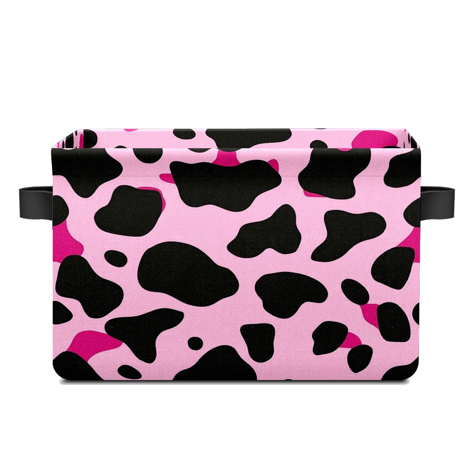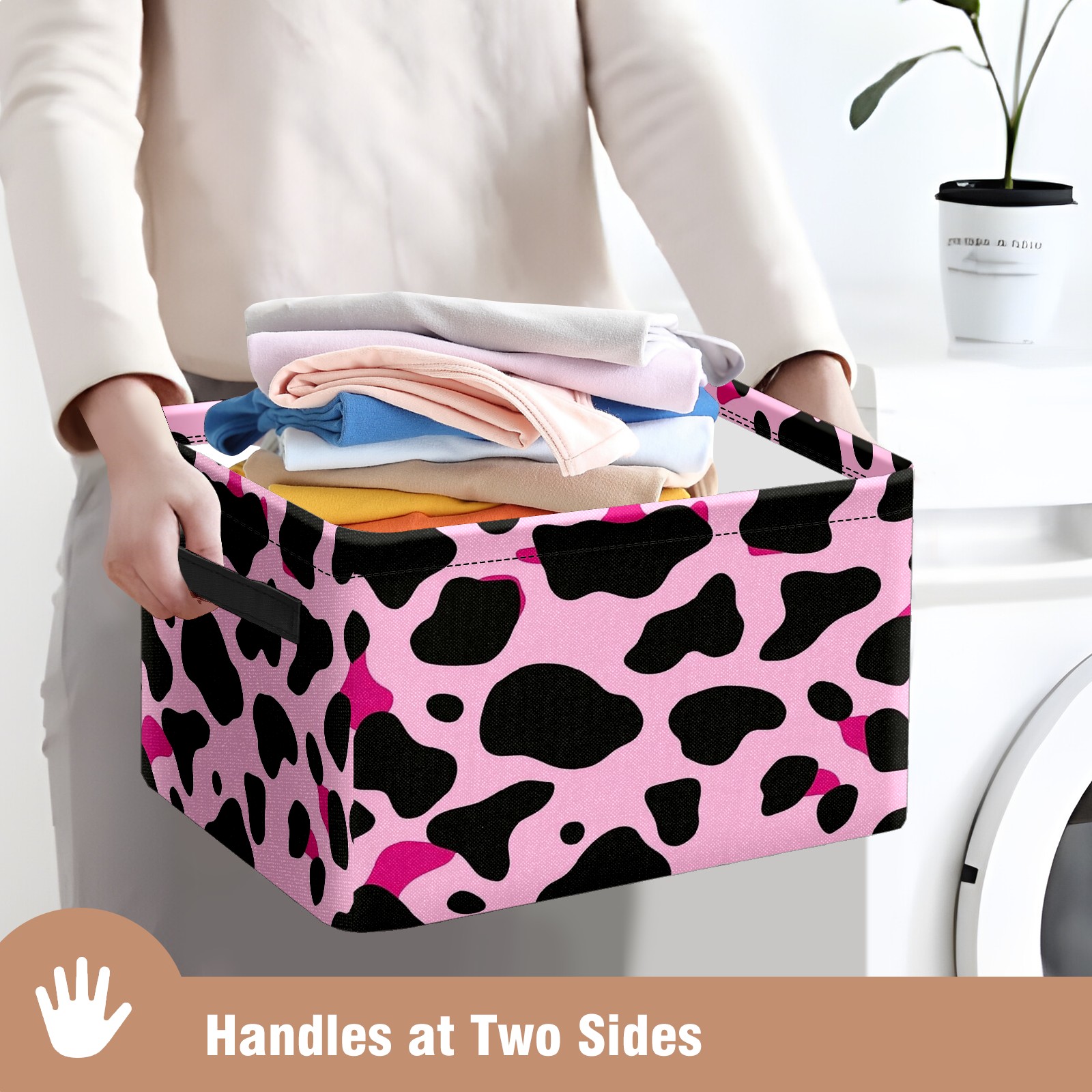 Foldable and Stackable Fabric Storage Basket for Home Organization with Handles, Decorative Closet Bins for Shelves and Laundry Storage( Pink And Black Cow Print Pattern)