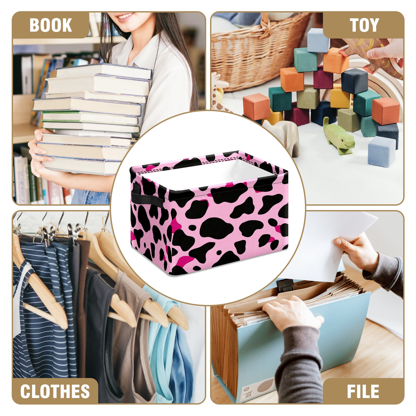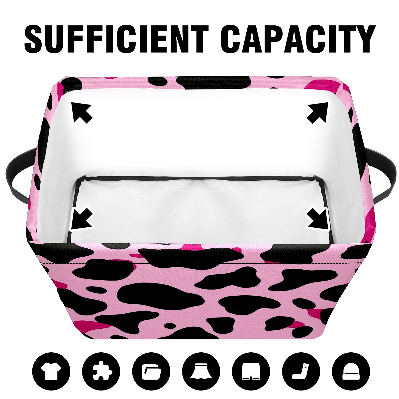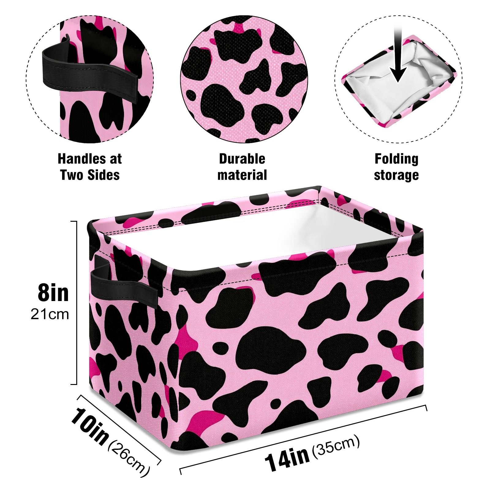 Foldable and Stackable Fabric Storage Basket for Home Organization with Handles, Decorative Closet Bins for Shelves and Laundry Storage( Pink And Black Cow Print Pattern)