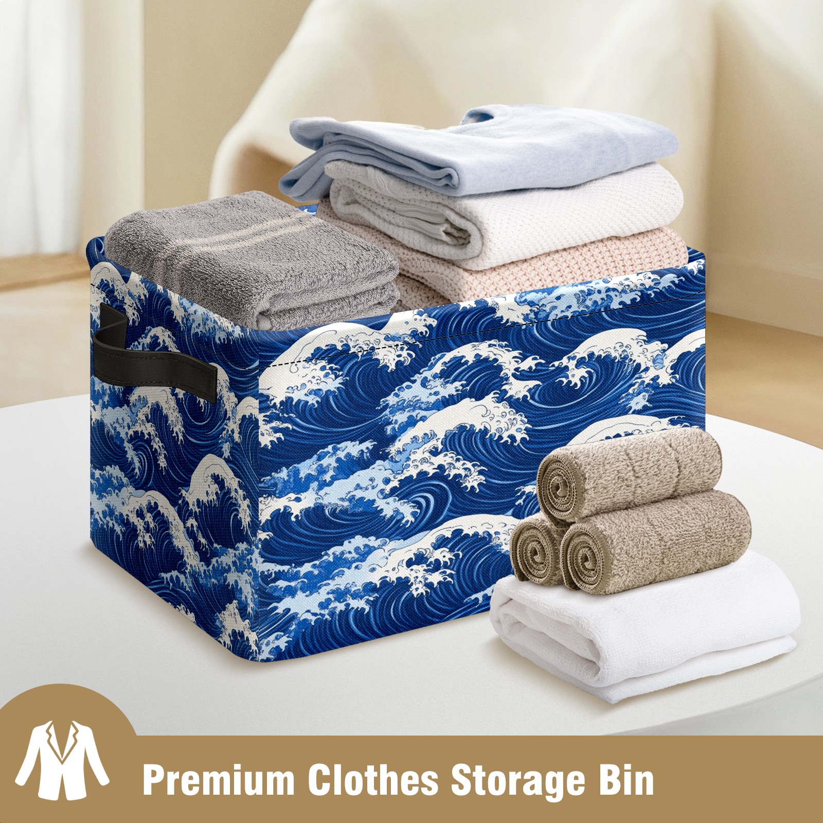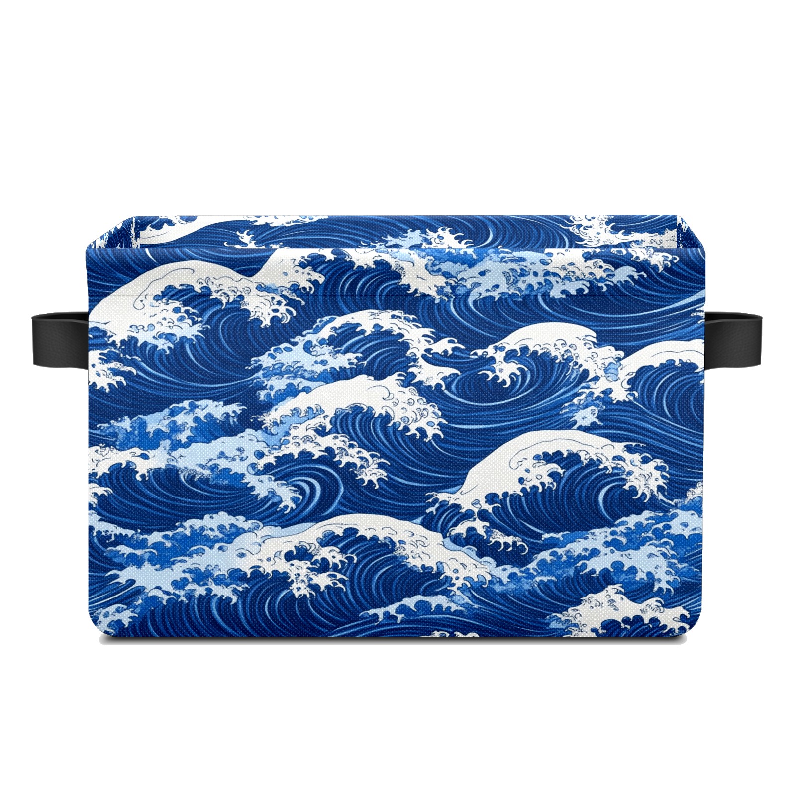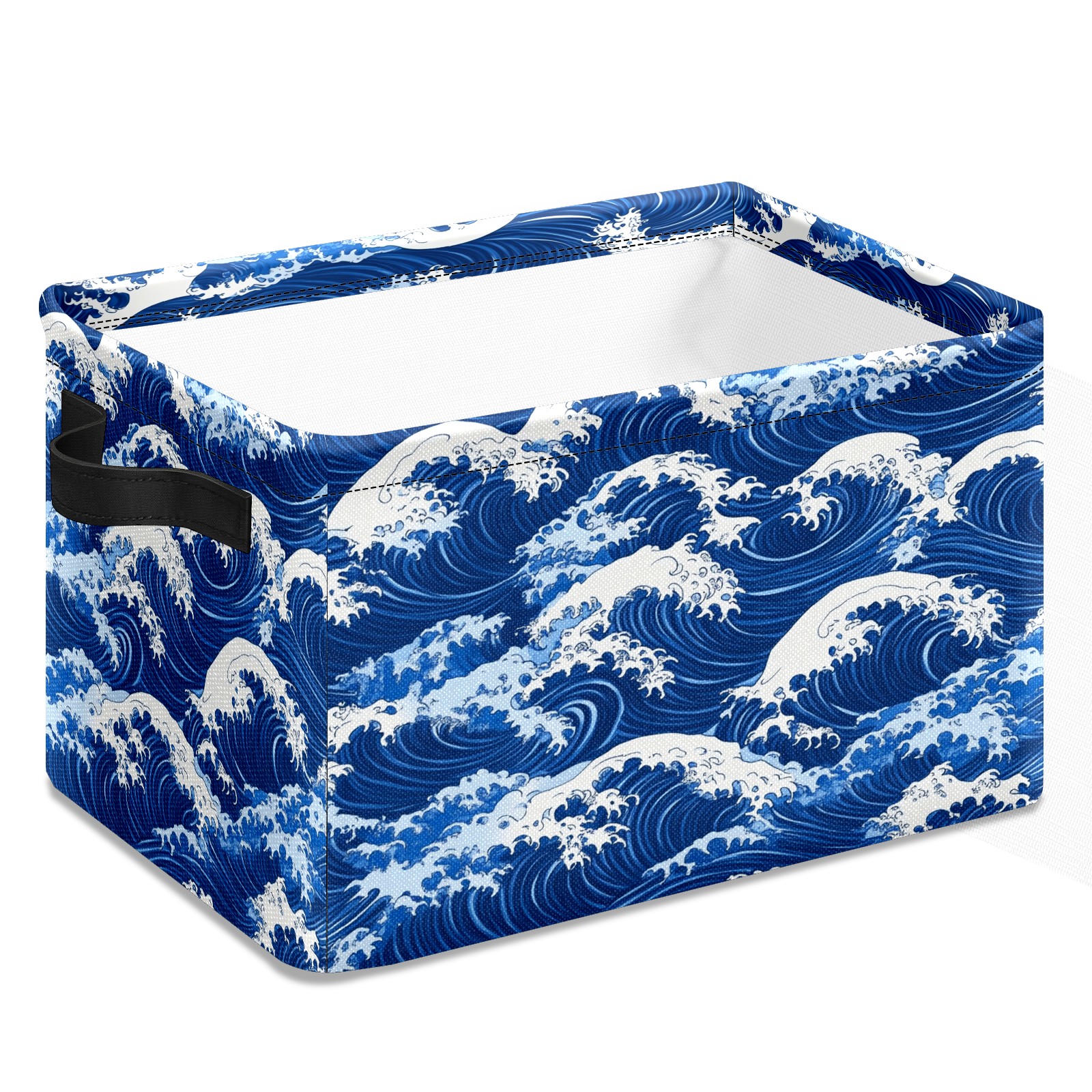 Foldable and Stackable Fabric Storage Basket for Home Organization with Handles, Decorative Closet Bins for Shelves and Laundry Storage( Blue And White Ocean Wave)
