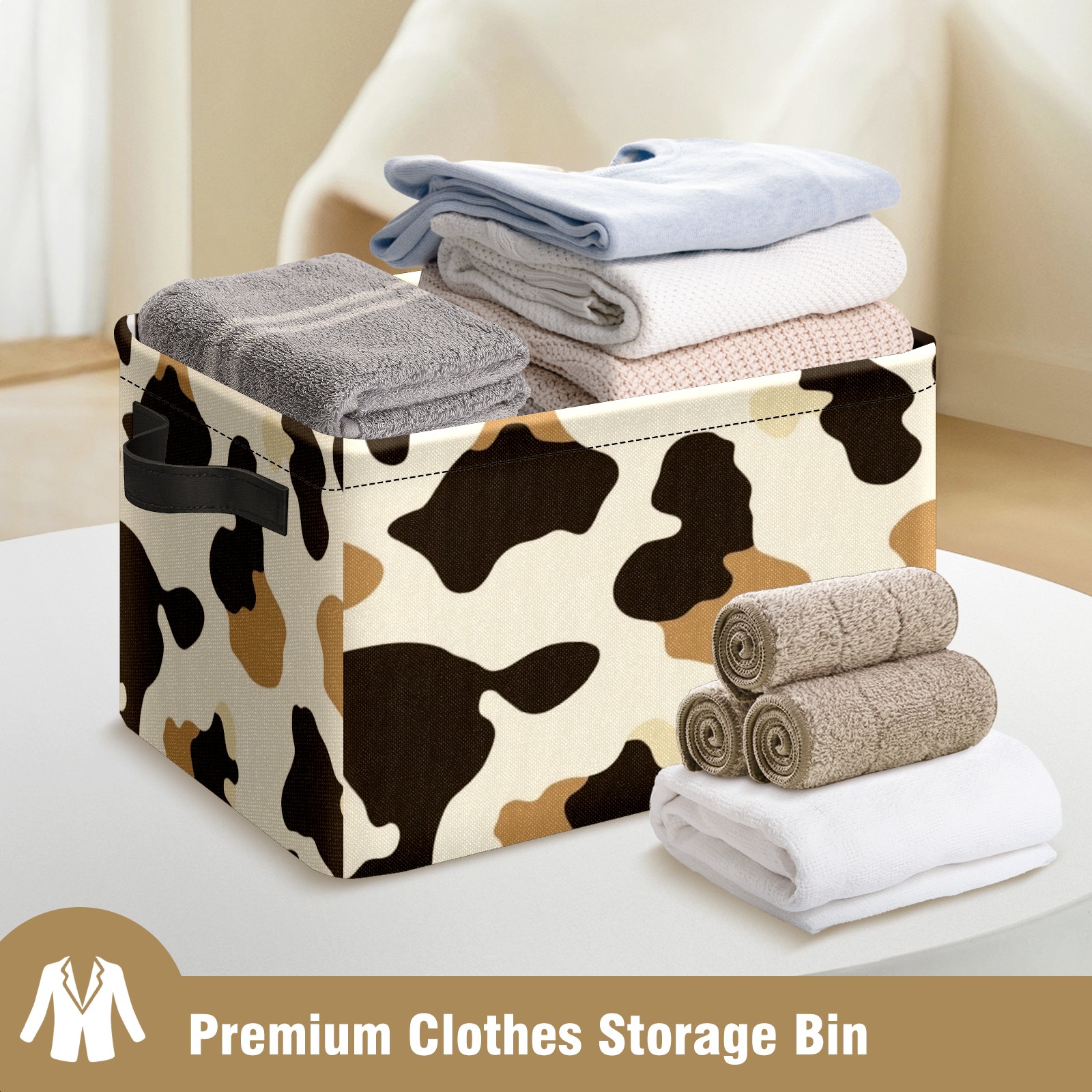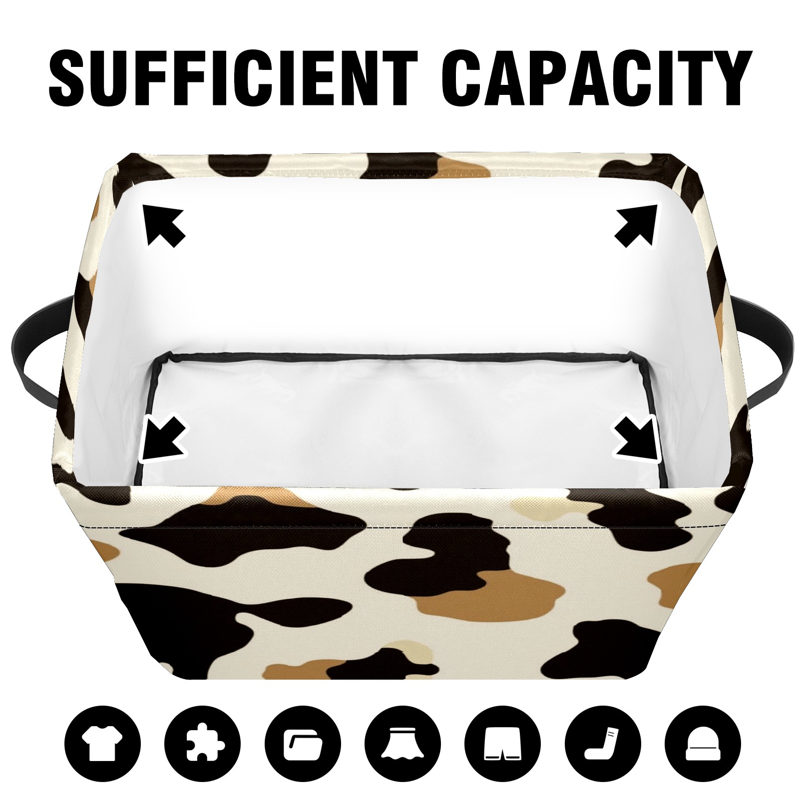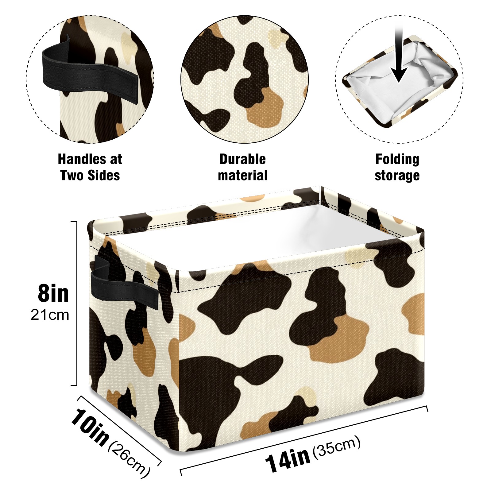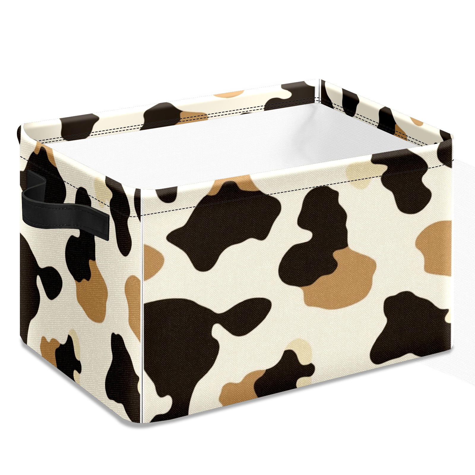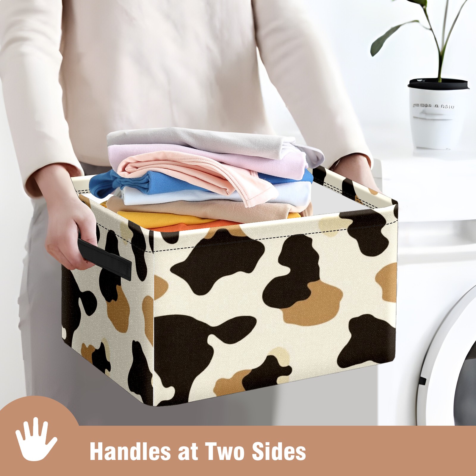 Foldable and Stackable Fabric Storage Basket for Home Organization with Handles, Decorative Closet Bins for Shelves and Laundry Storage( Cow Print)