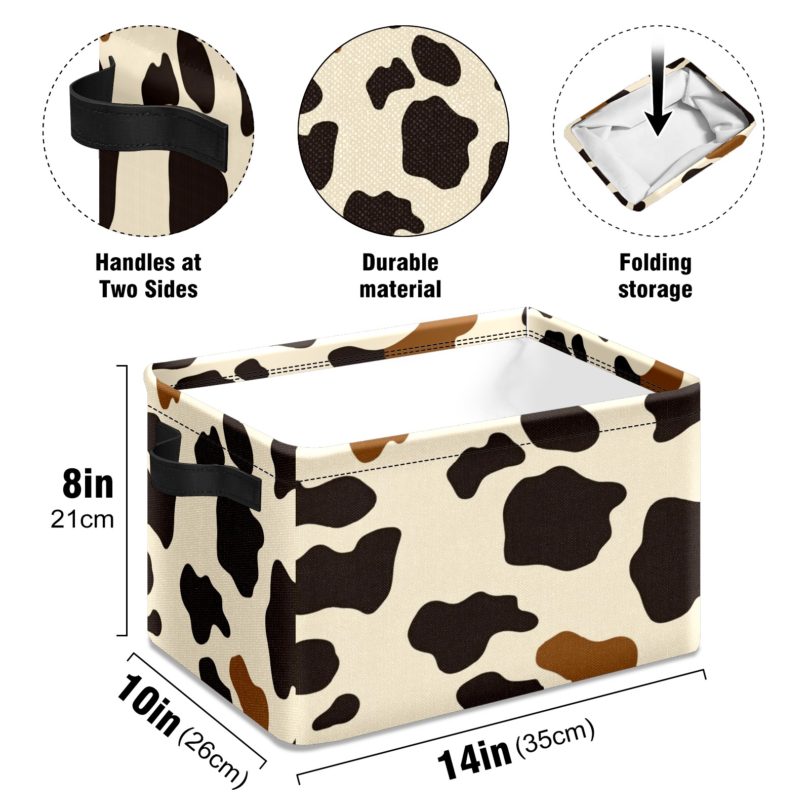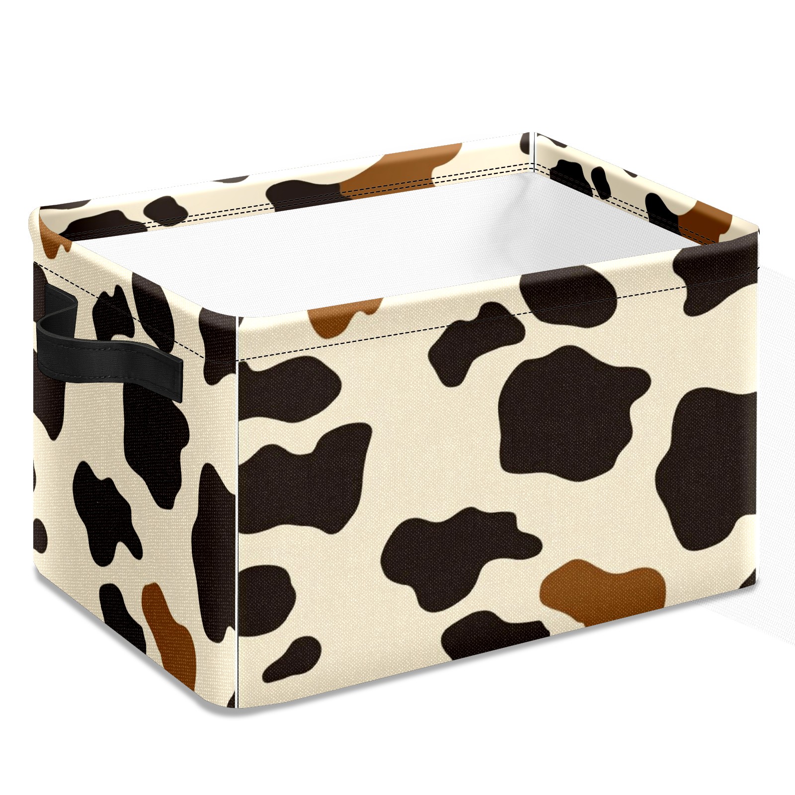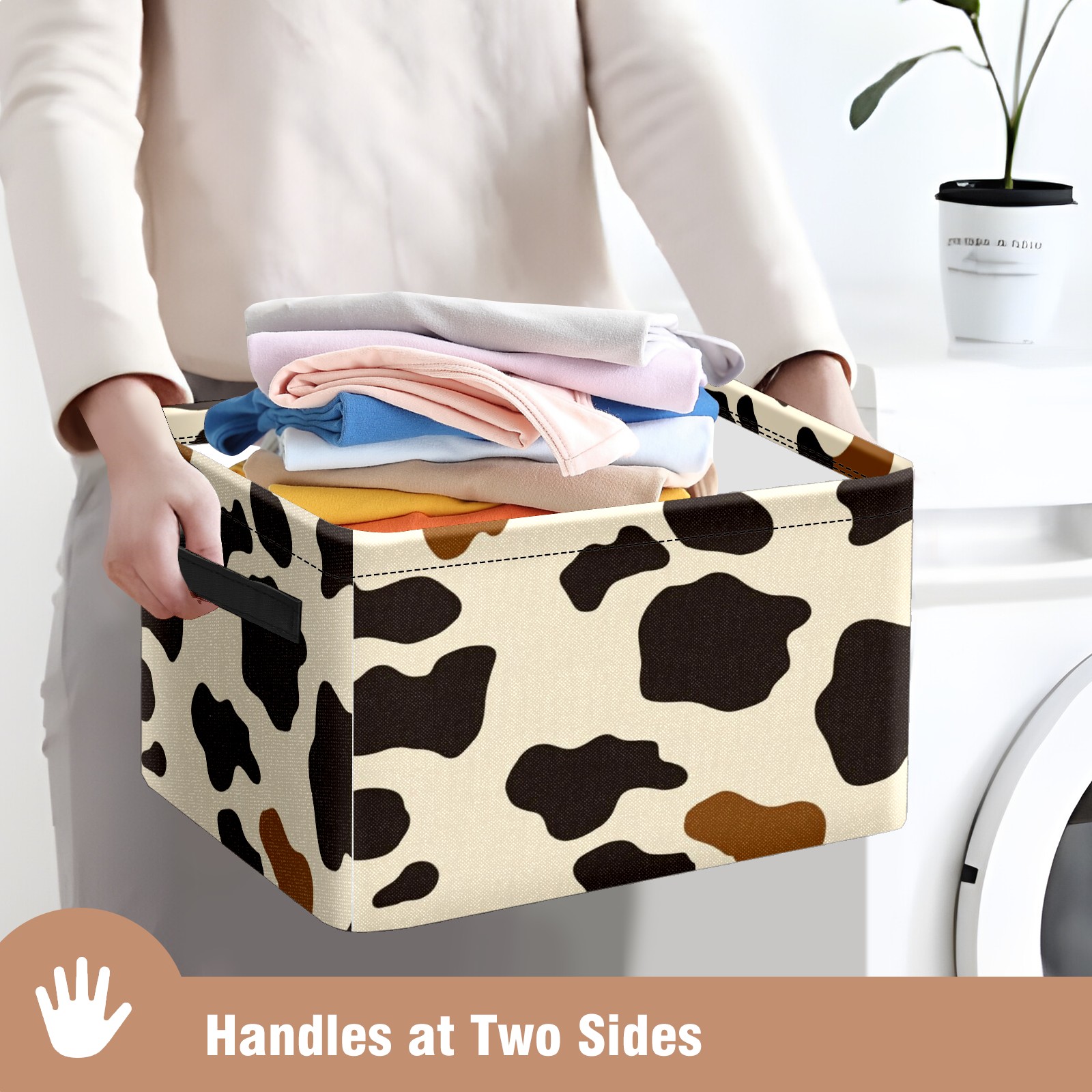 Foldable and Stackable Fabric Storage Basket for Home Organization with Handles, Decorative Closet Bins for Shelves and Laundry Storage( Cow Print Pattern)
