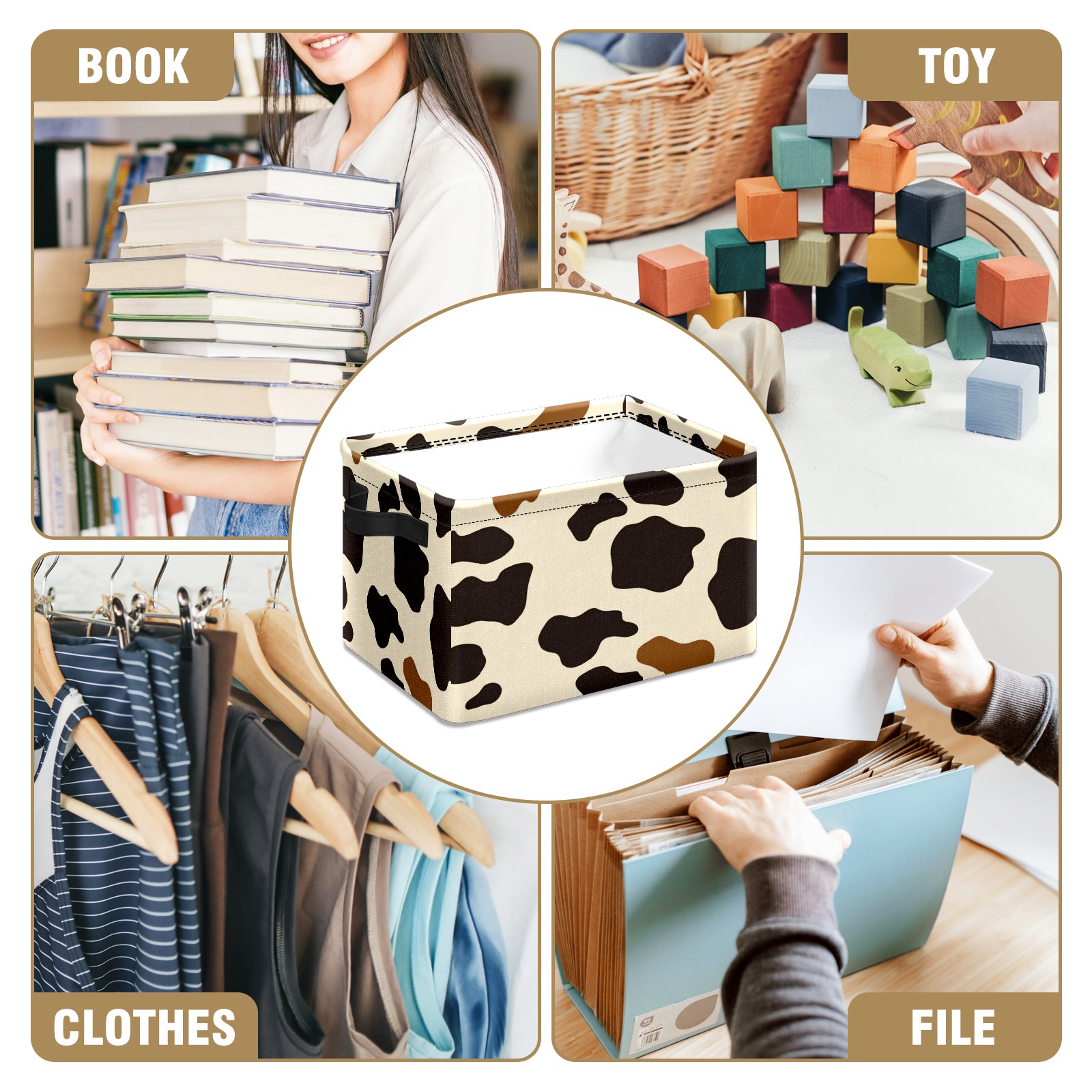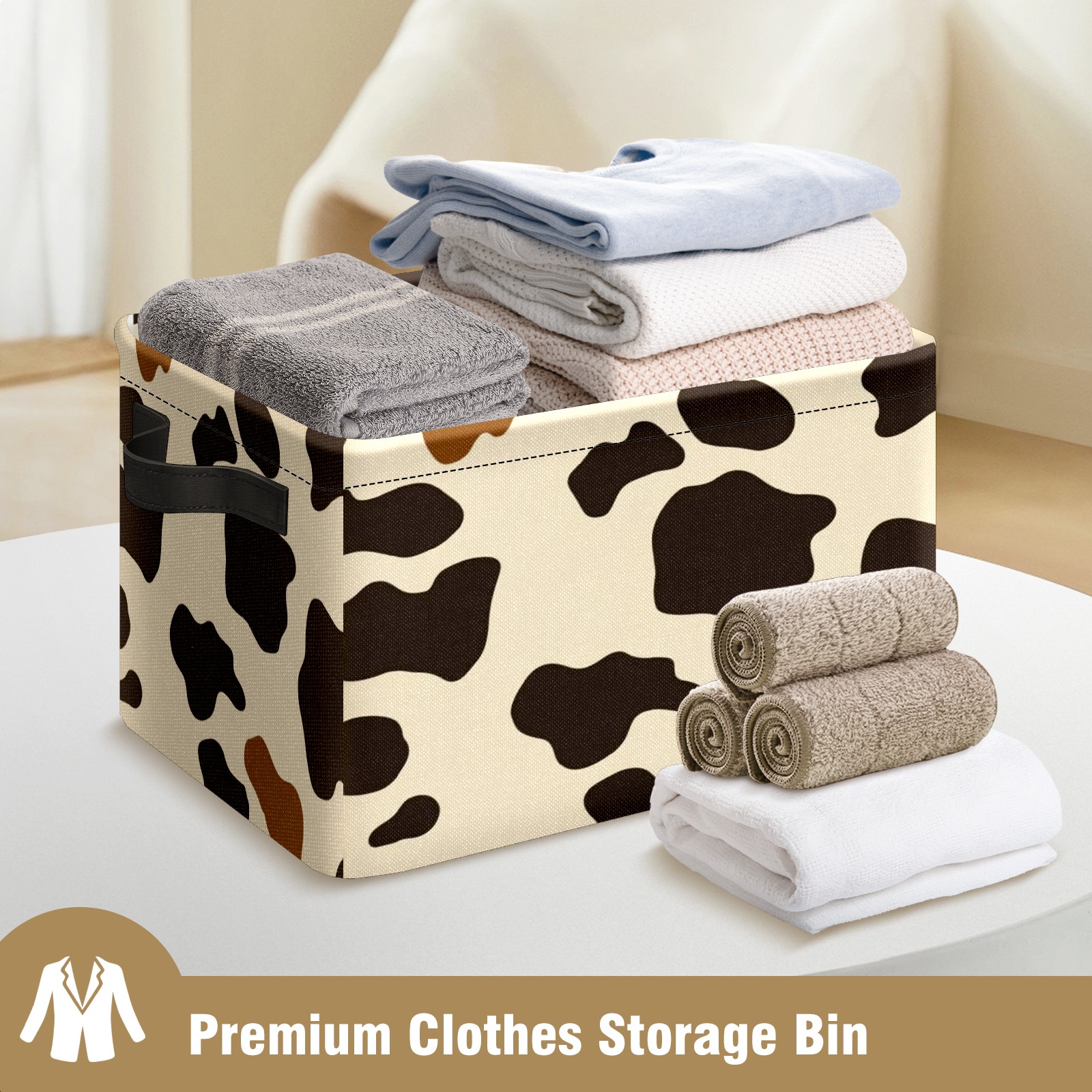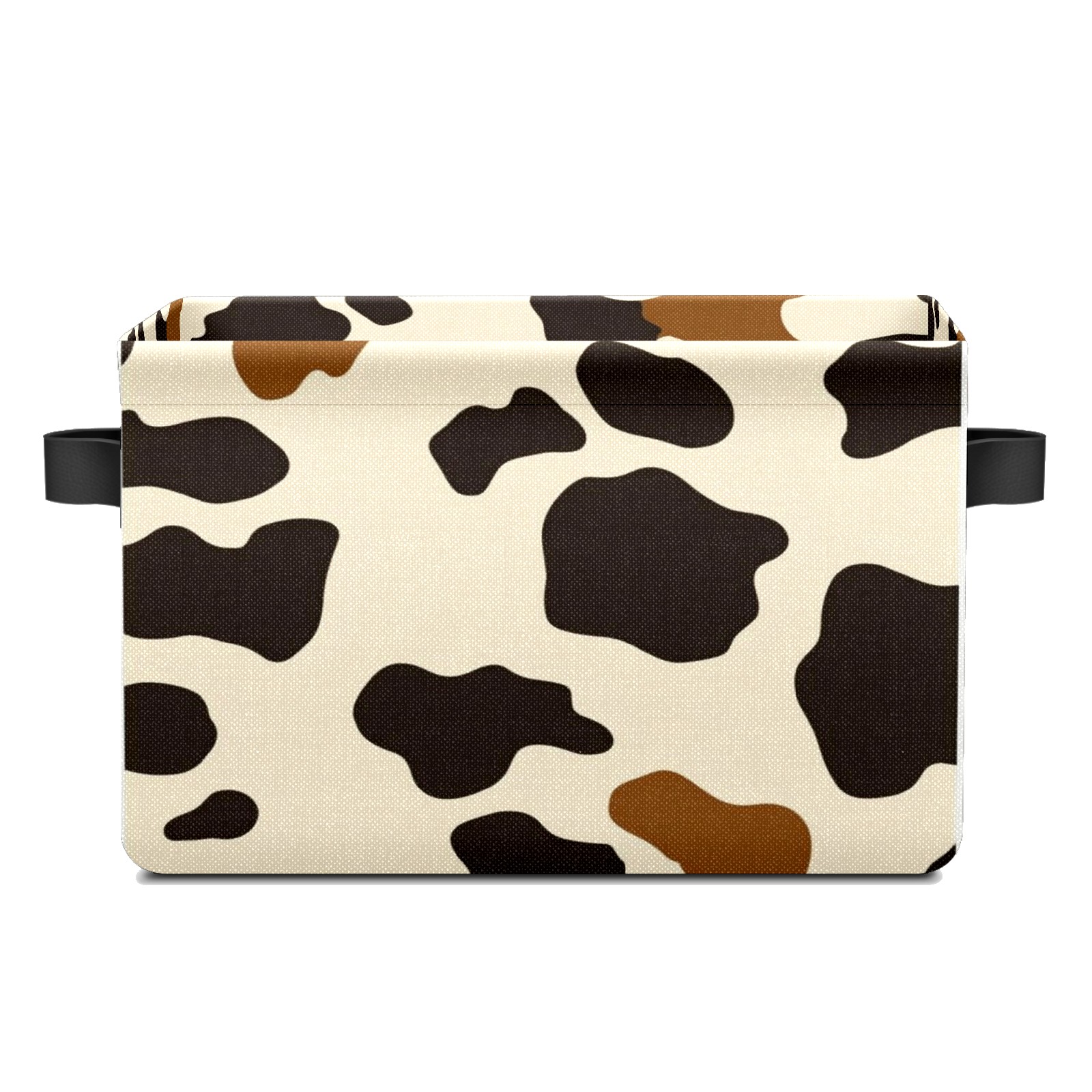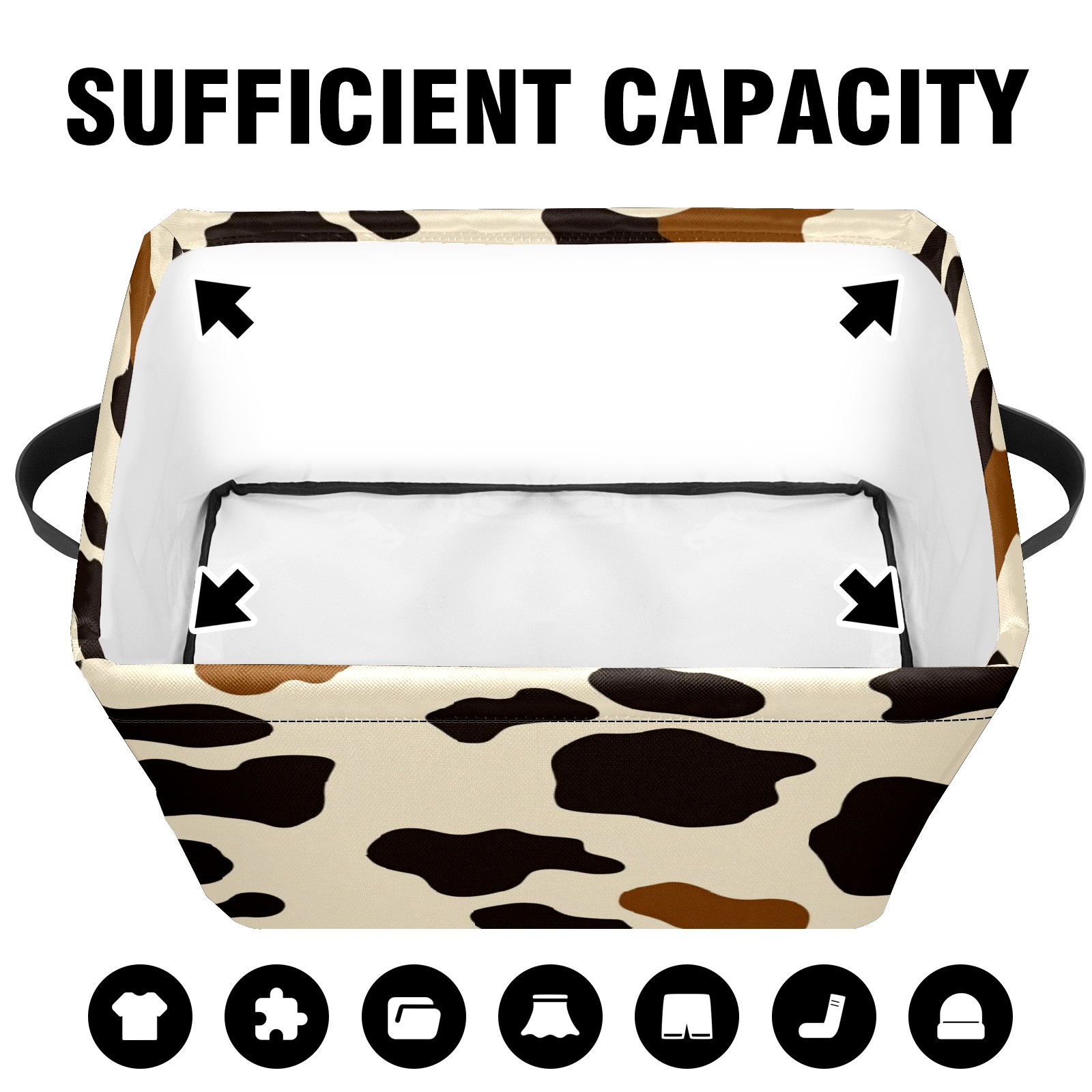 Foldable and Stackable Fabric Storage Basket for Home Organization with Handles, Decorative Closet Bins for Shelves and Laundry Storage( Cow Print Pattern)