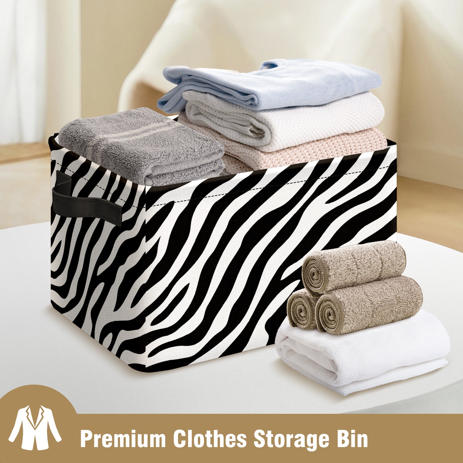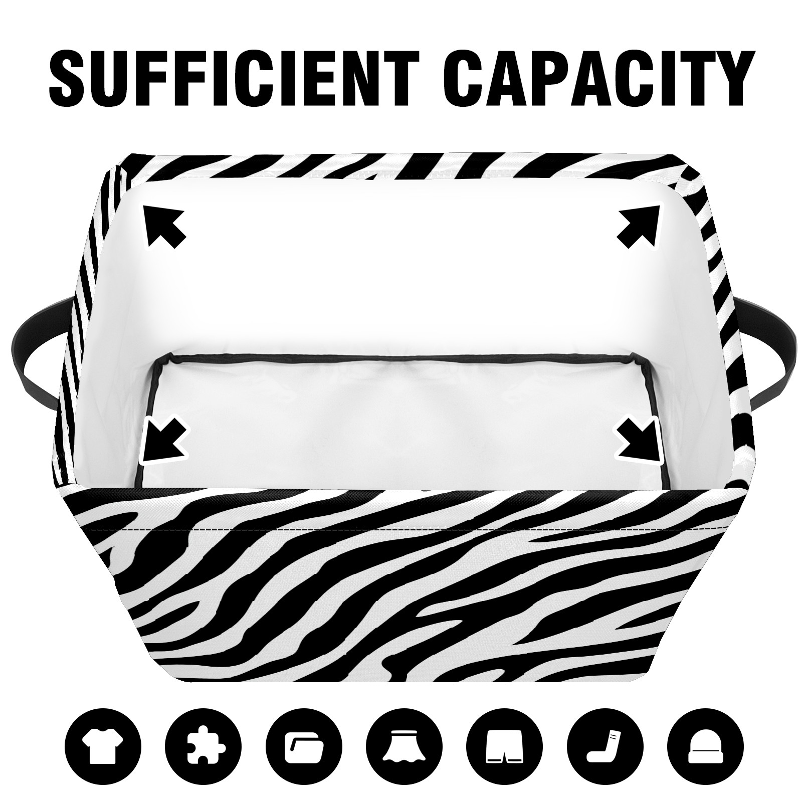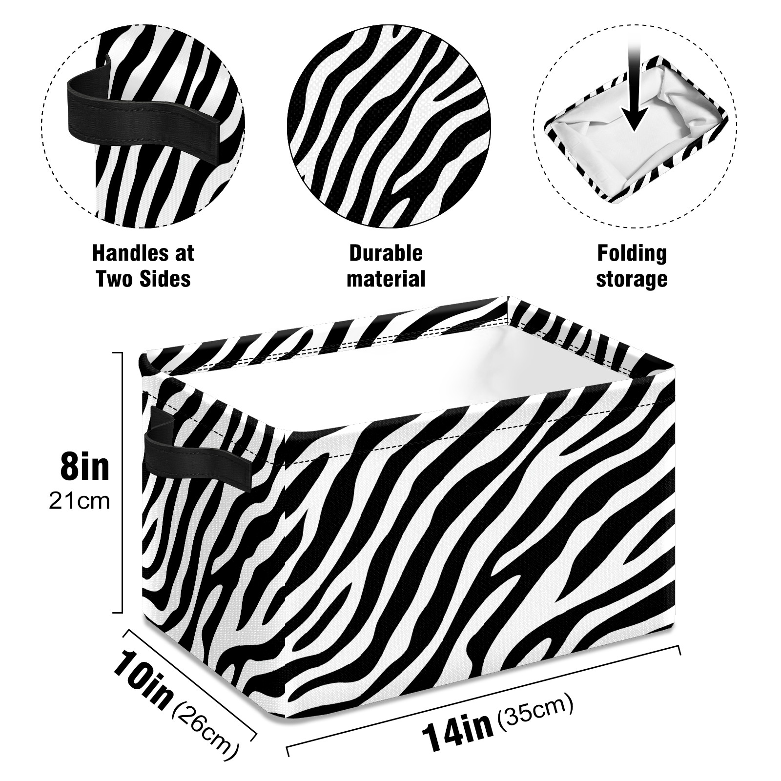 Foldable and Stackable Fabric Storage Basket for Home Organization with Handles, Decorative Closet Bins for Shelves and Laundry Storage( Black And White Zebra Print)