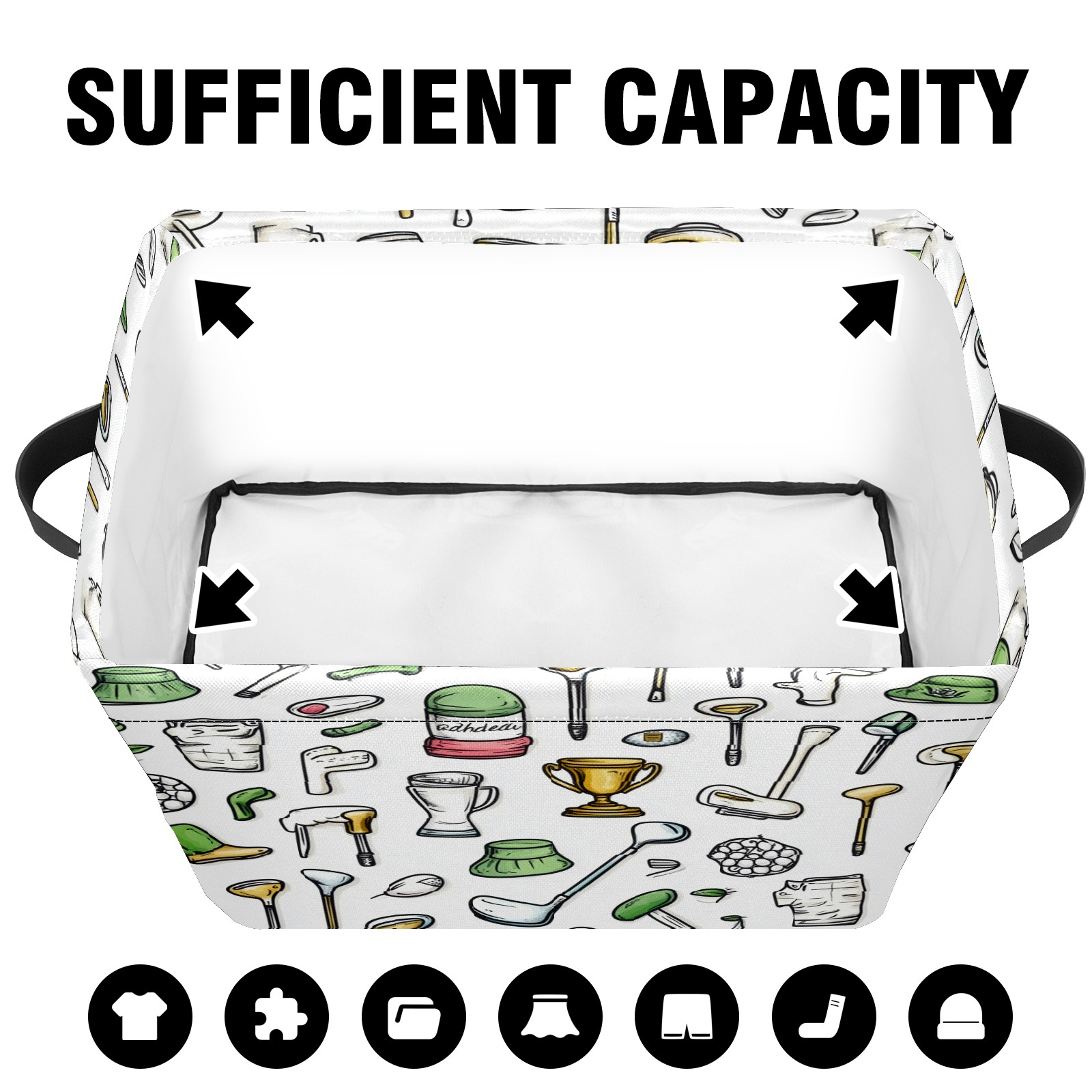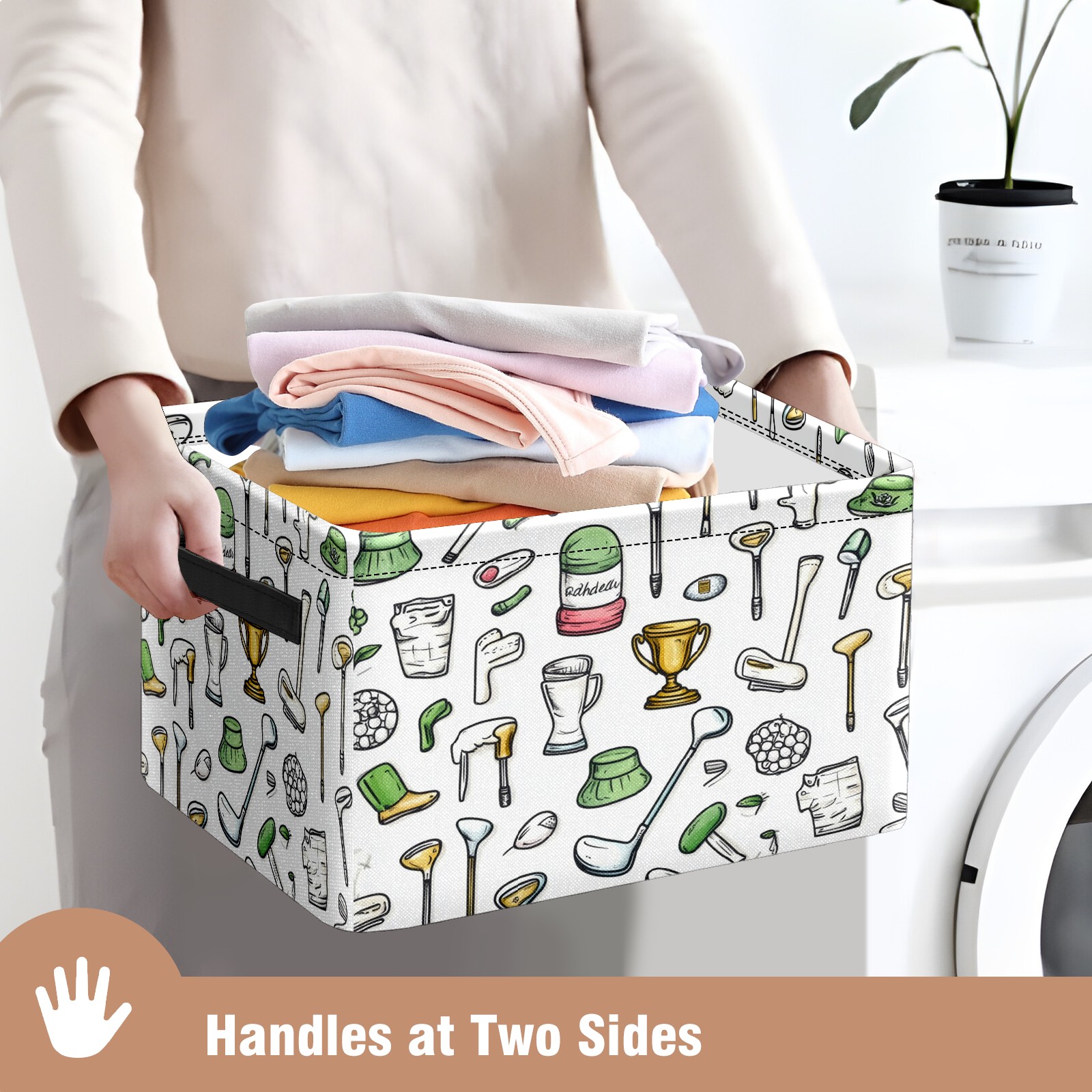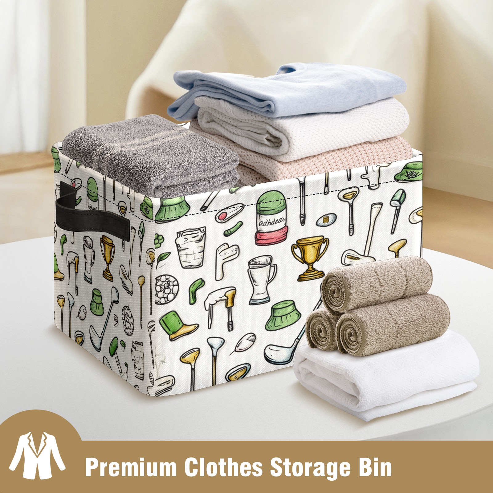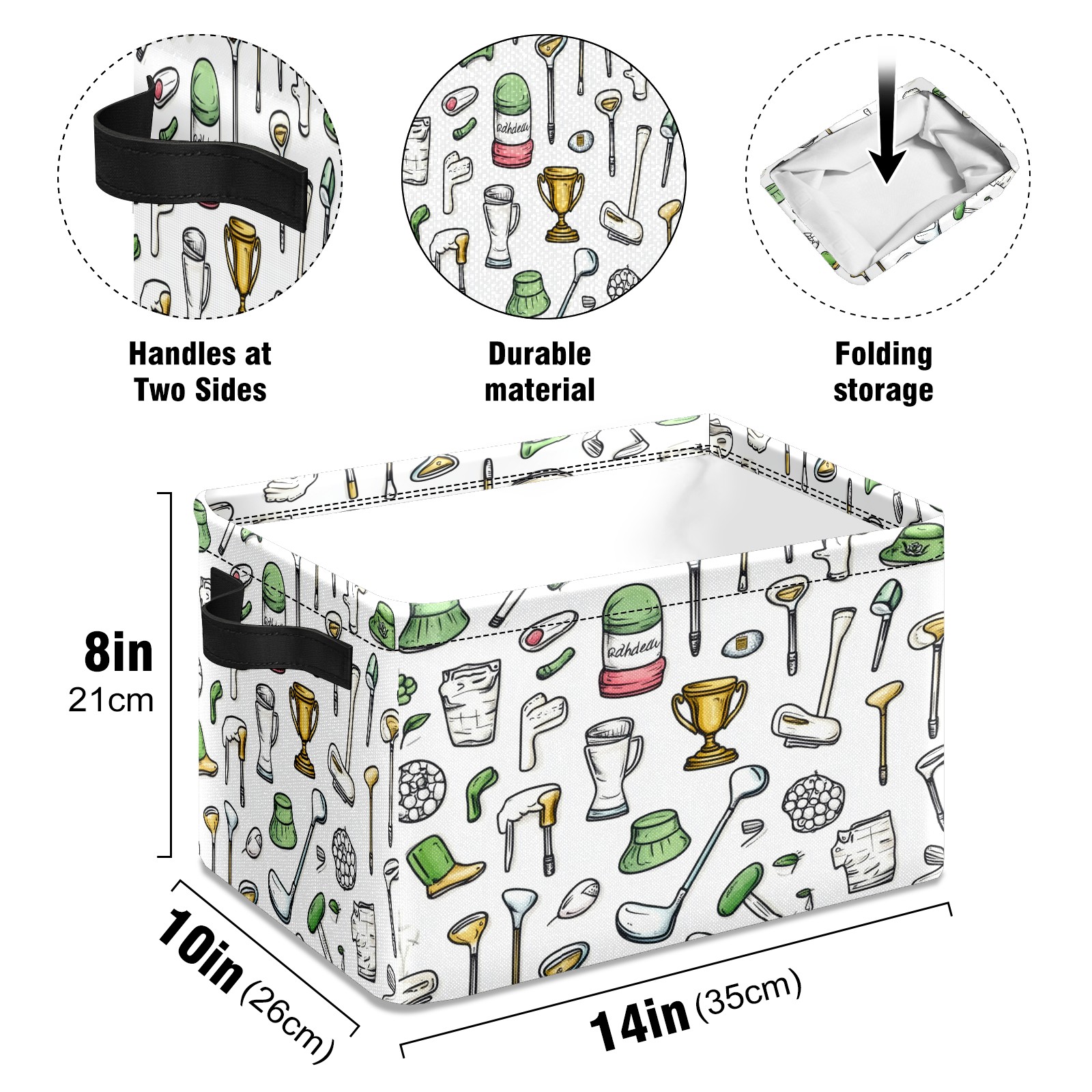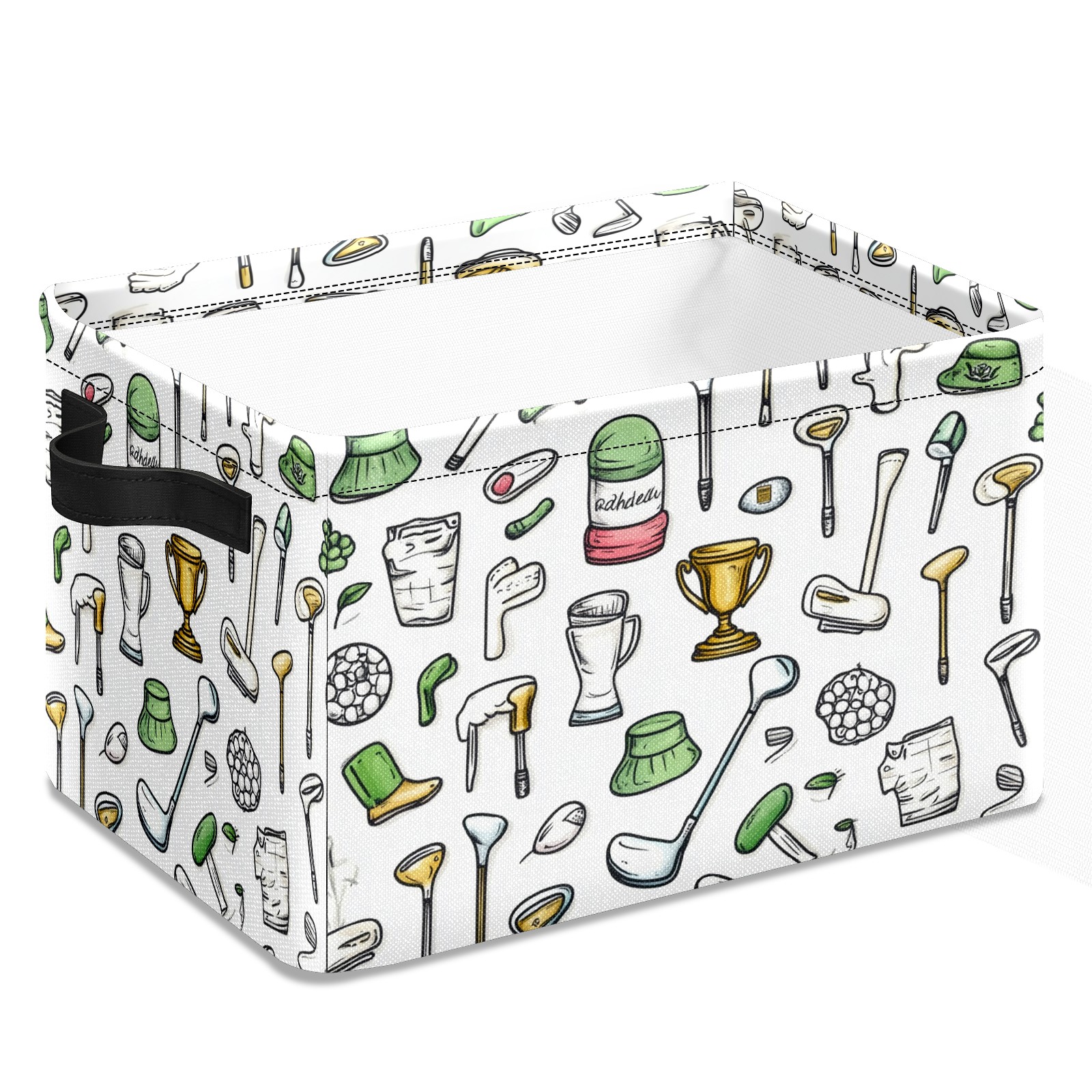 Foldable and Stackable Fabric Storage Basket for Home Organization with Handles, Decorative Closet Bins for Shelves and Laundry Storage( Hand-drawn Golf Elements)